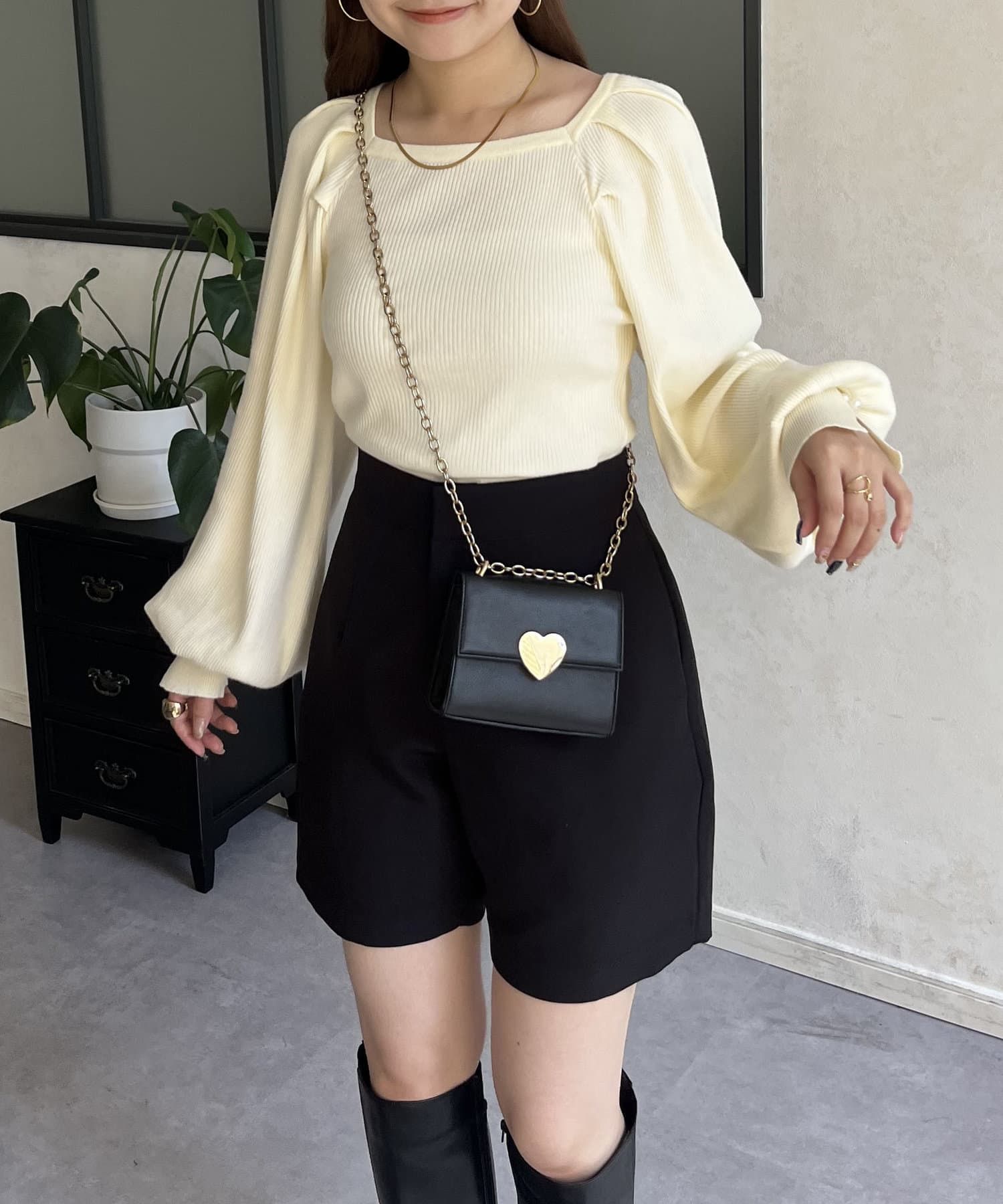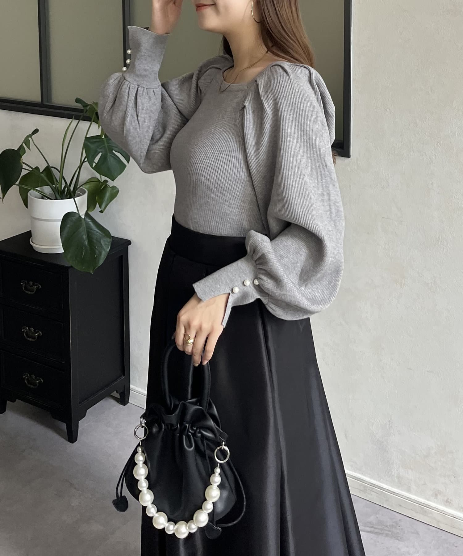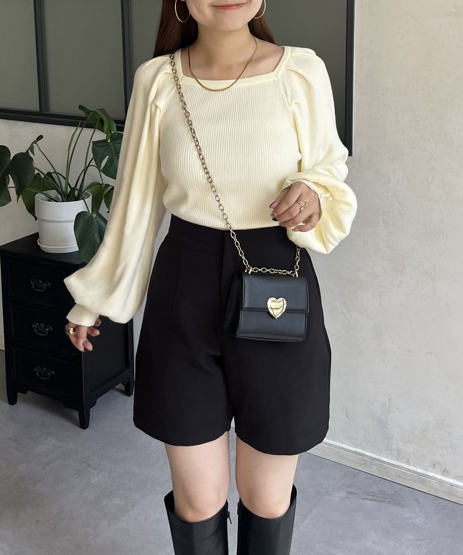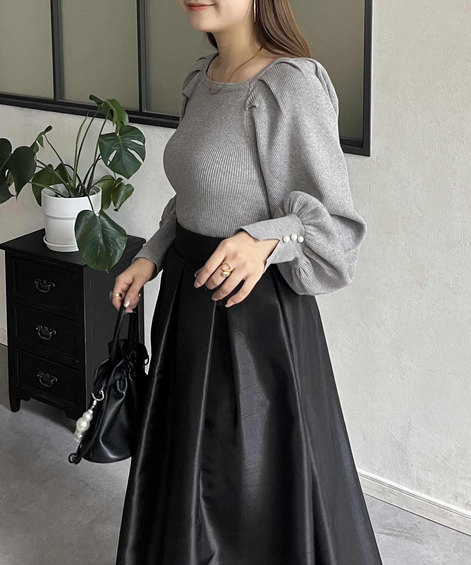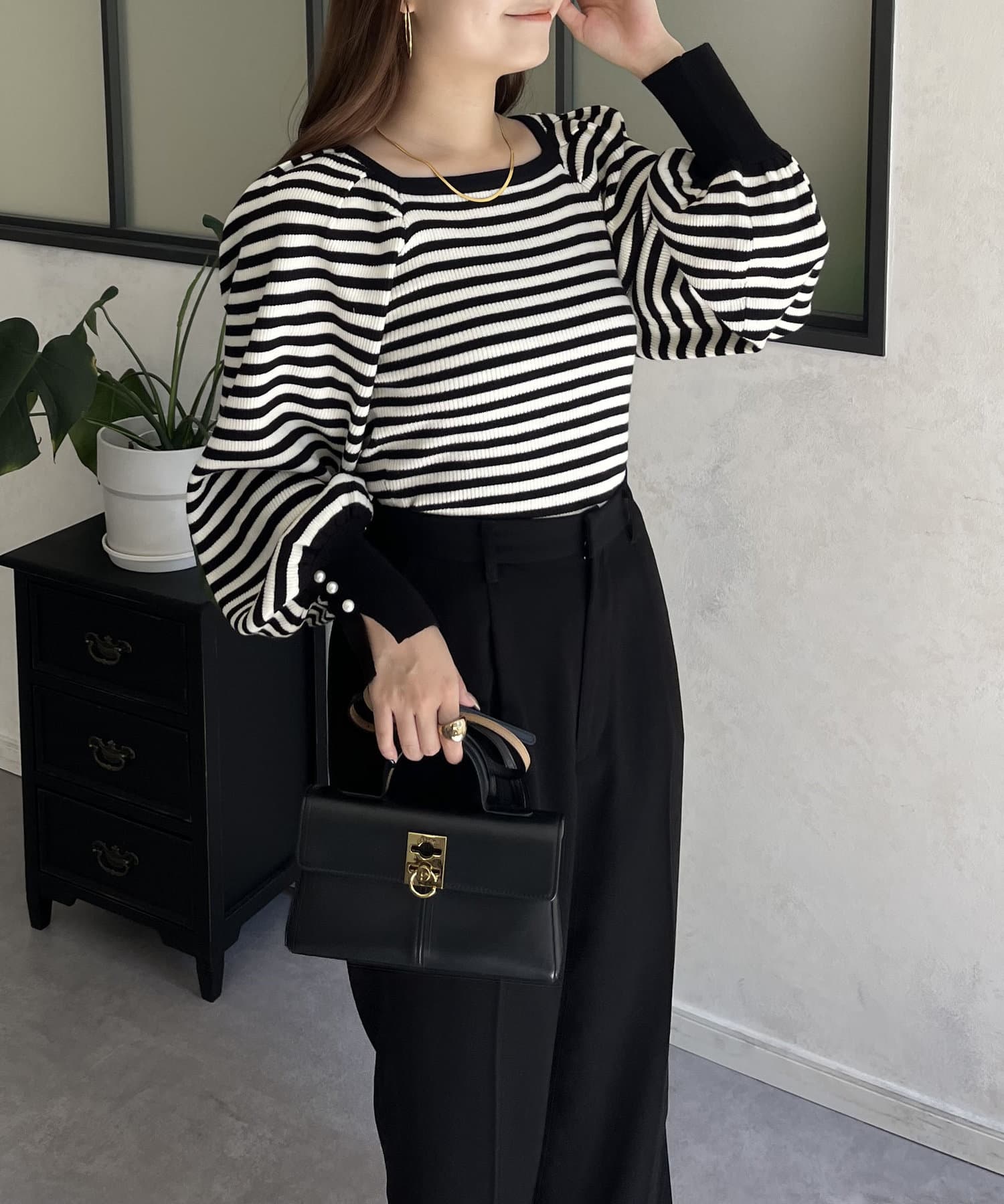 • prose verse(プロズヴェール) 袖パールパフスリーブスクエアネックニット
