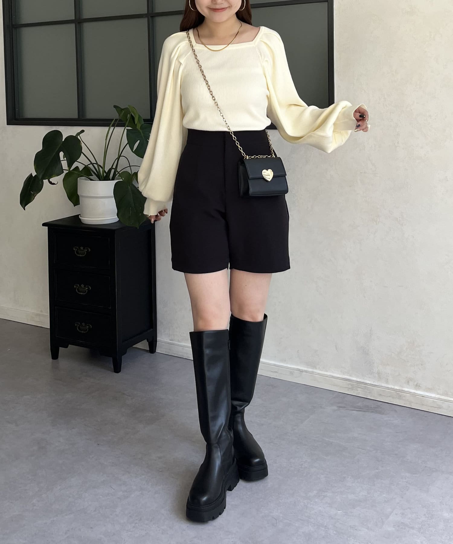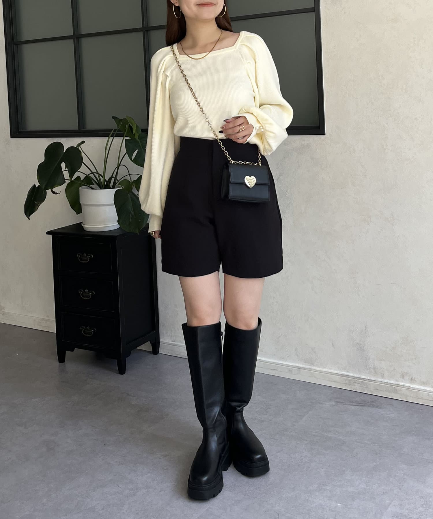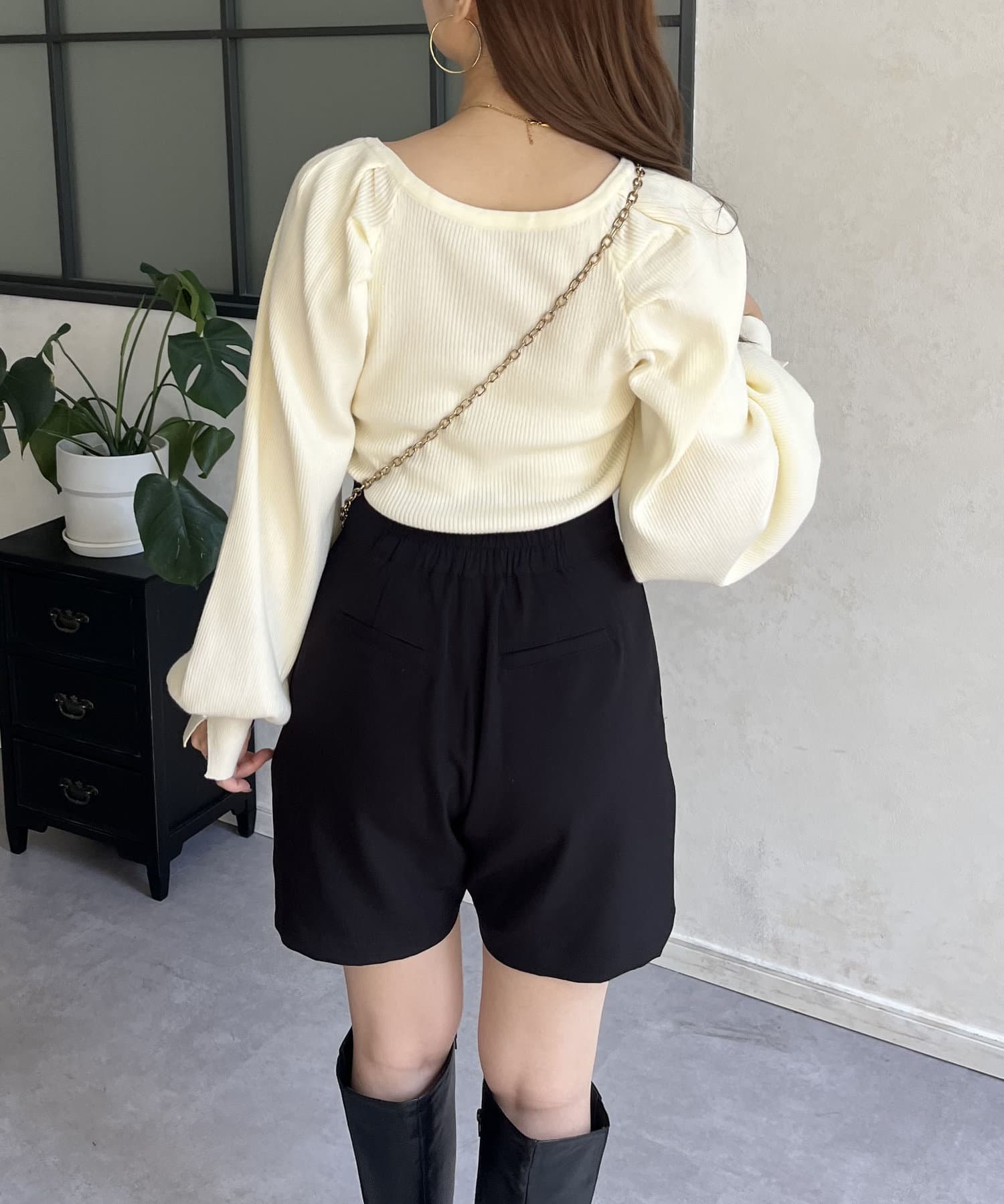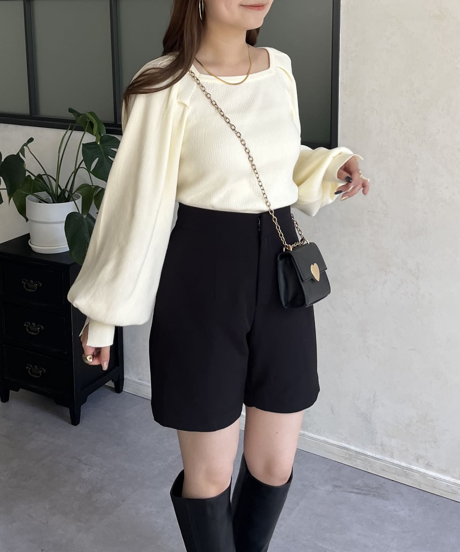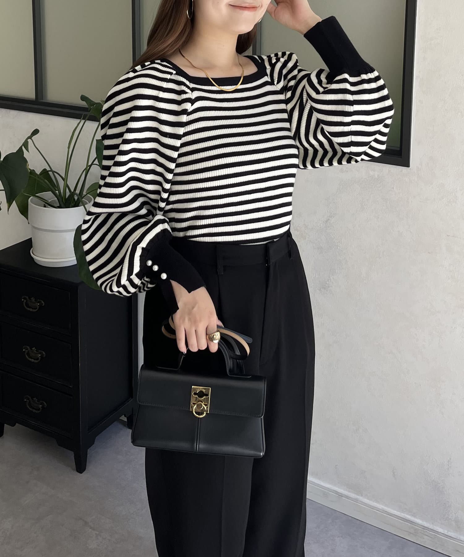 • prose verse(プロズヴェール) 袖パールパフスリーブスクエアネックニット