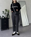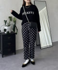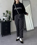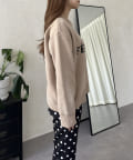 ロゴがスタイリングのポイントになるニットトップス
