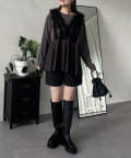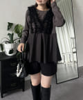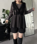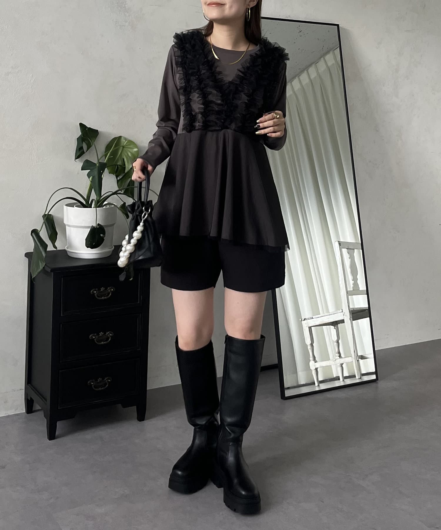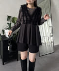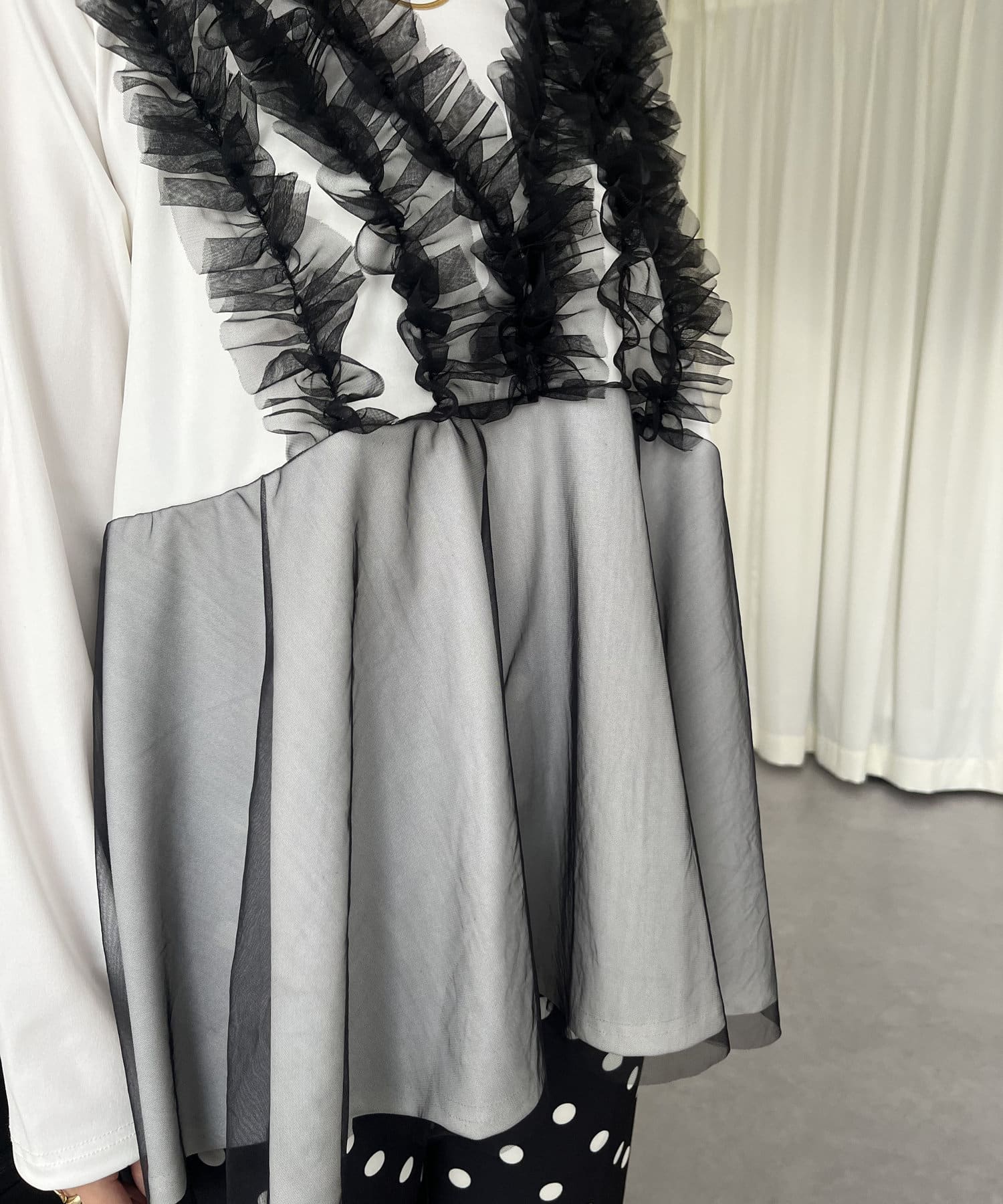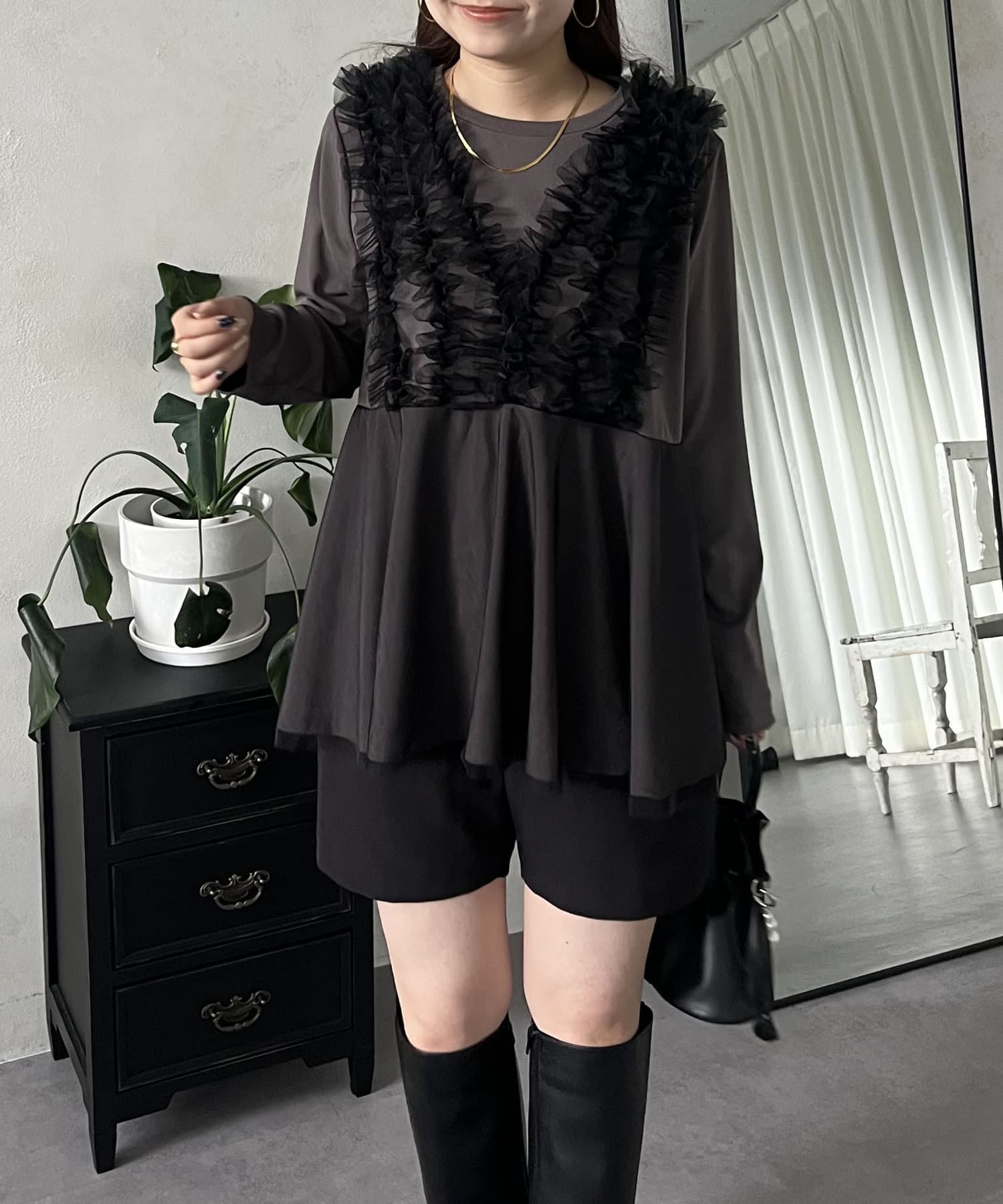 チュールフリルドッキングペプラムトップス