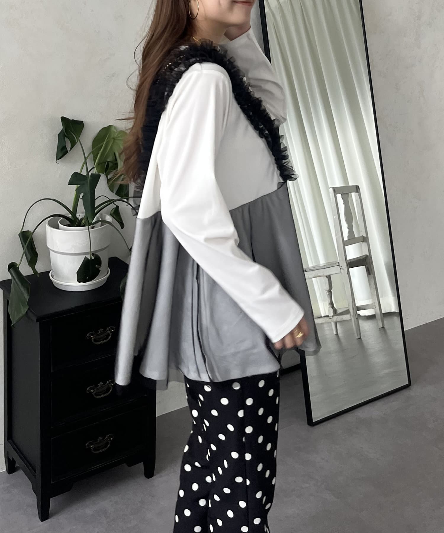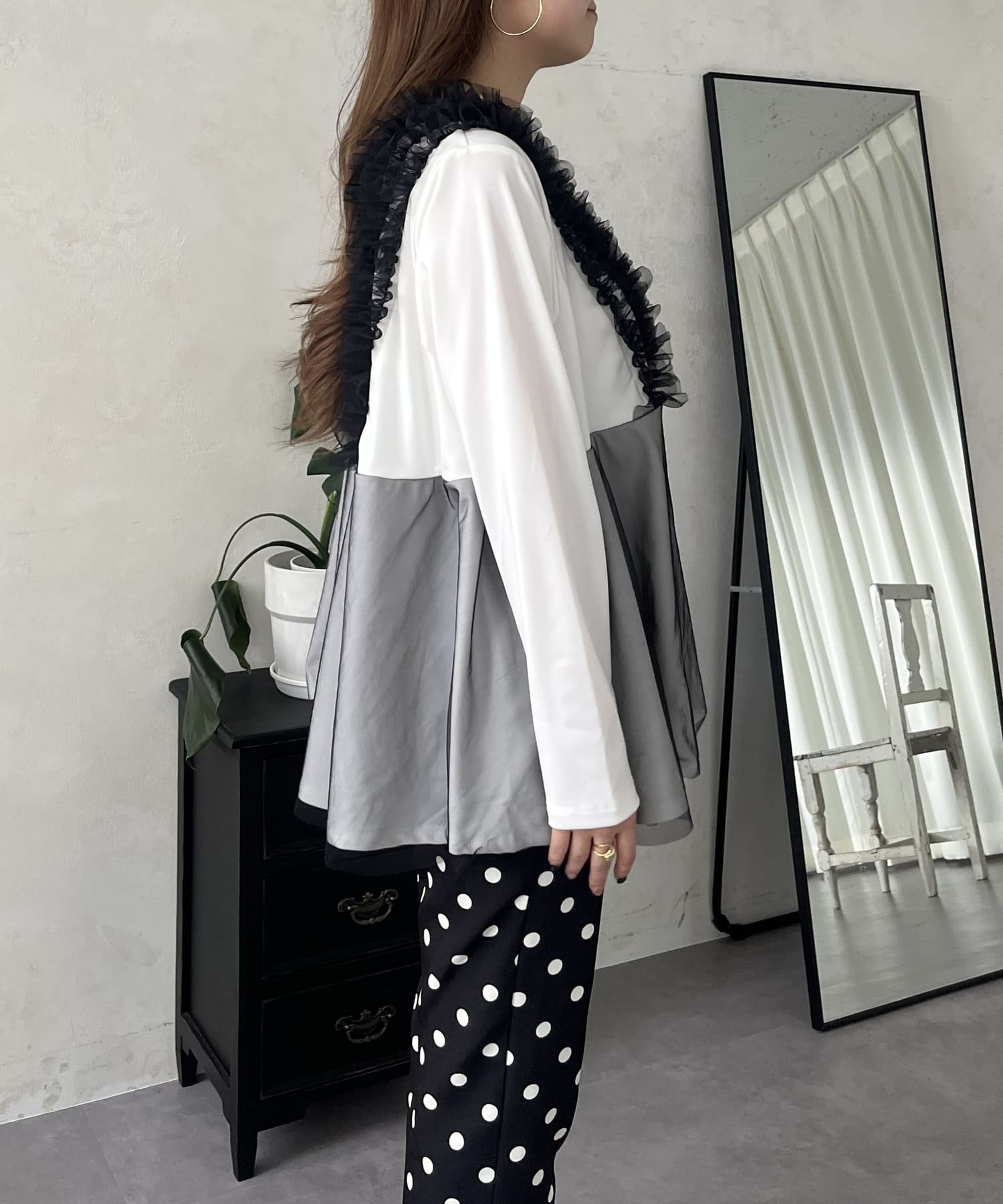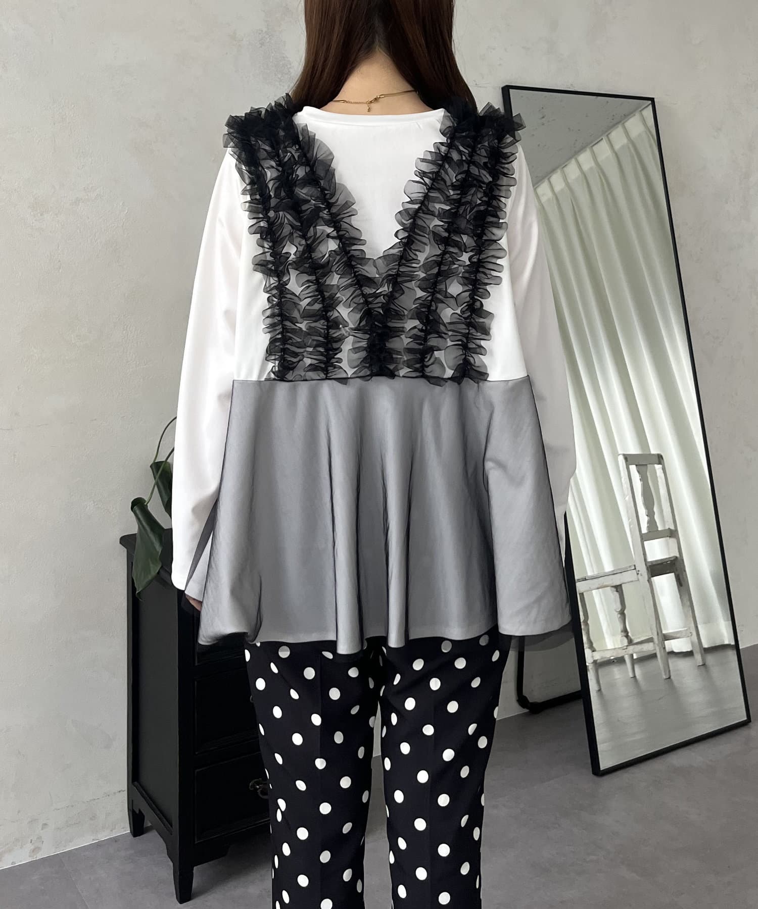 TOP > prose verse > レディース > トップス > Tシャツ/カットソー > チュールフリルドッキングペプラムトップス