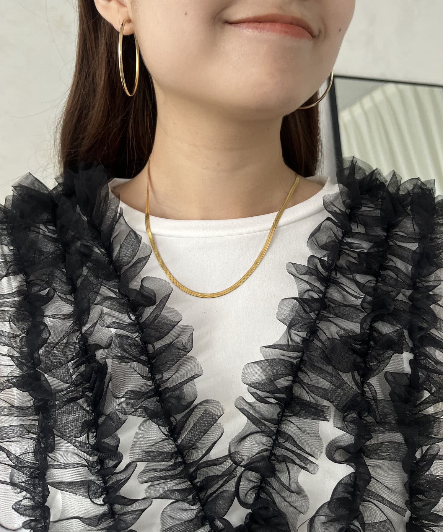 ●チュールフリルが顔回りを華やかに