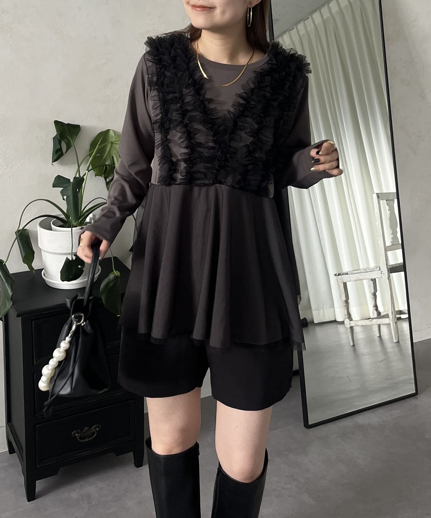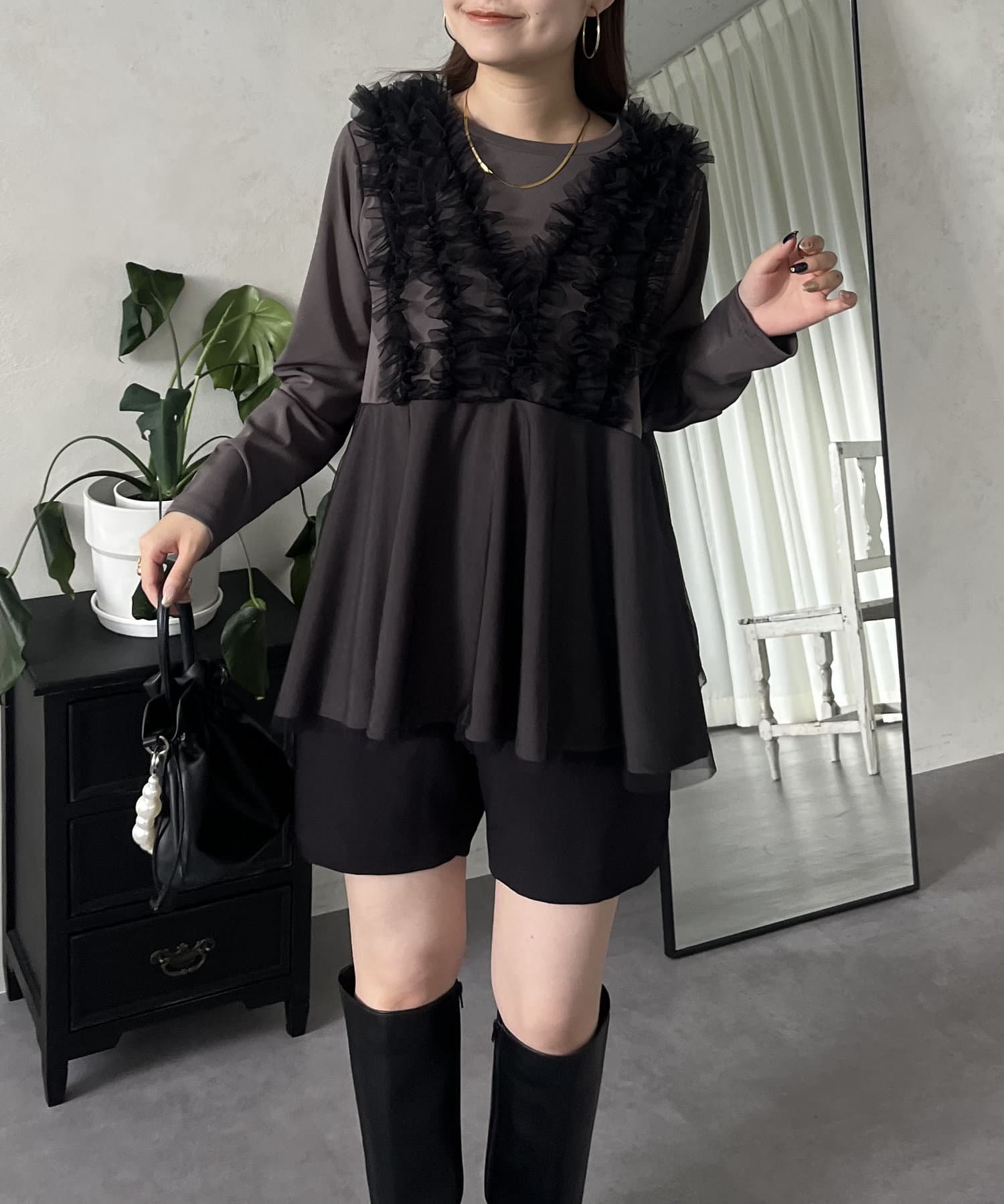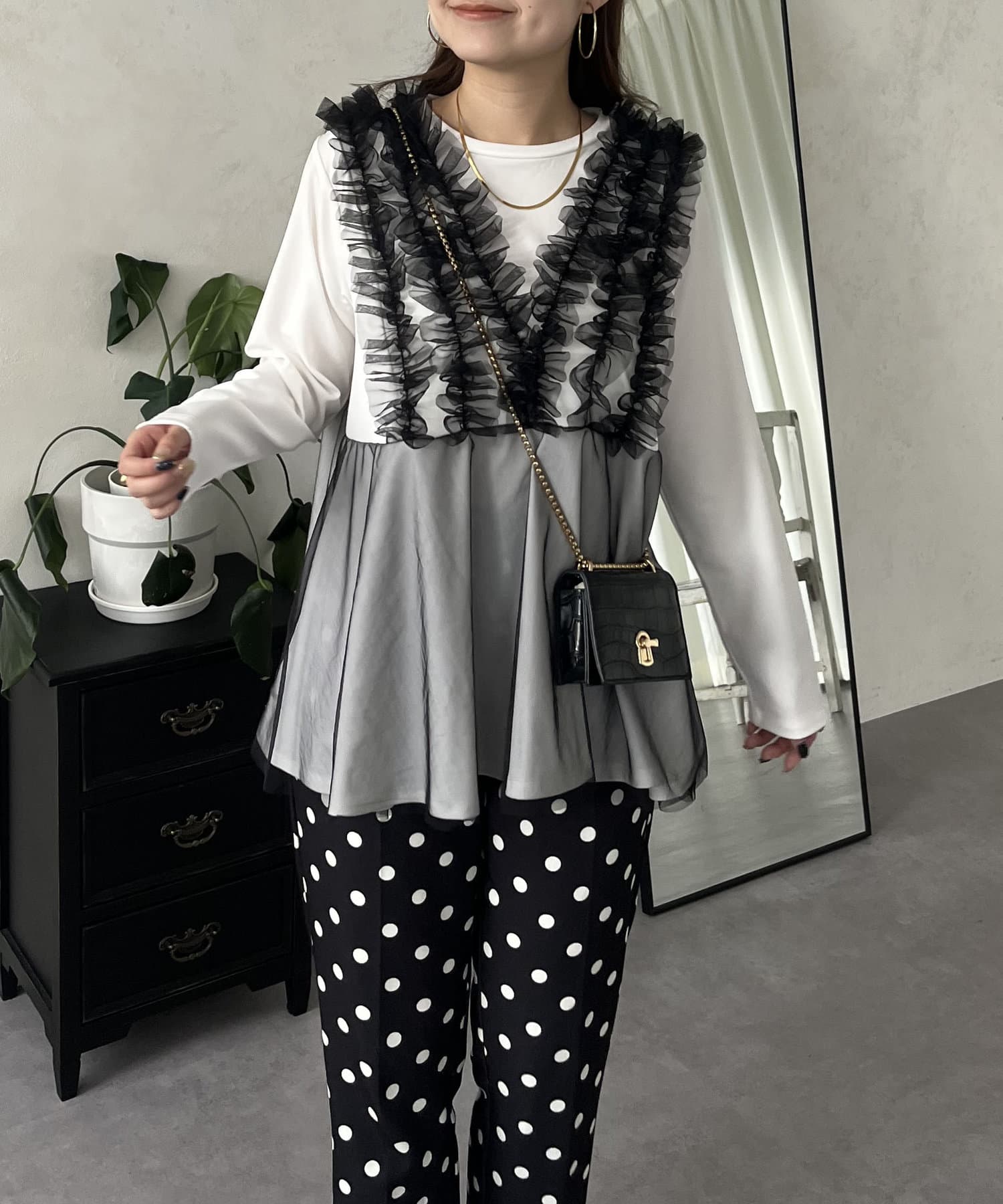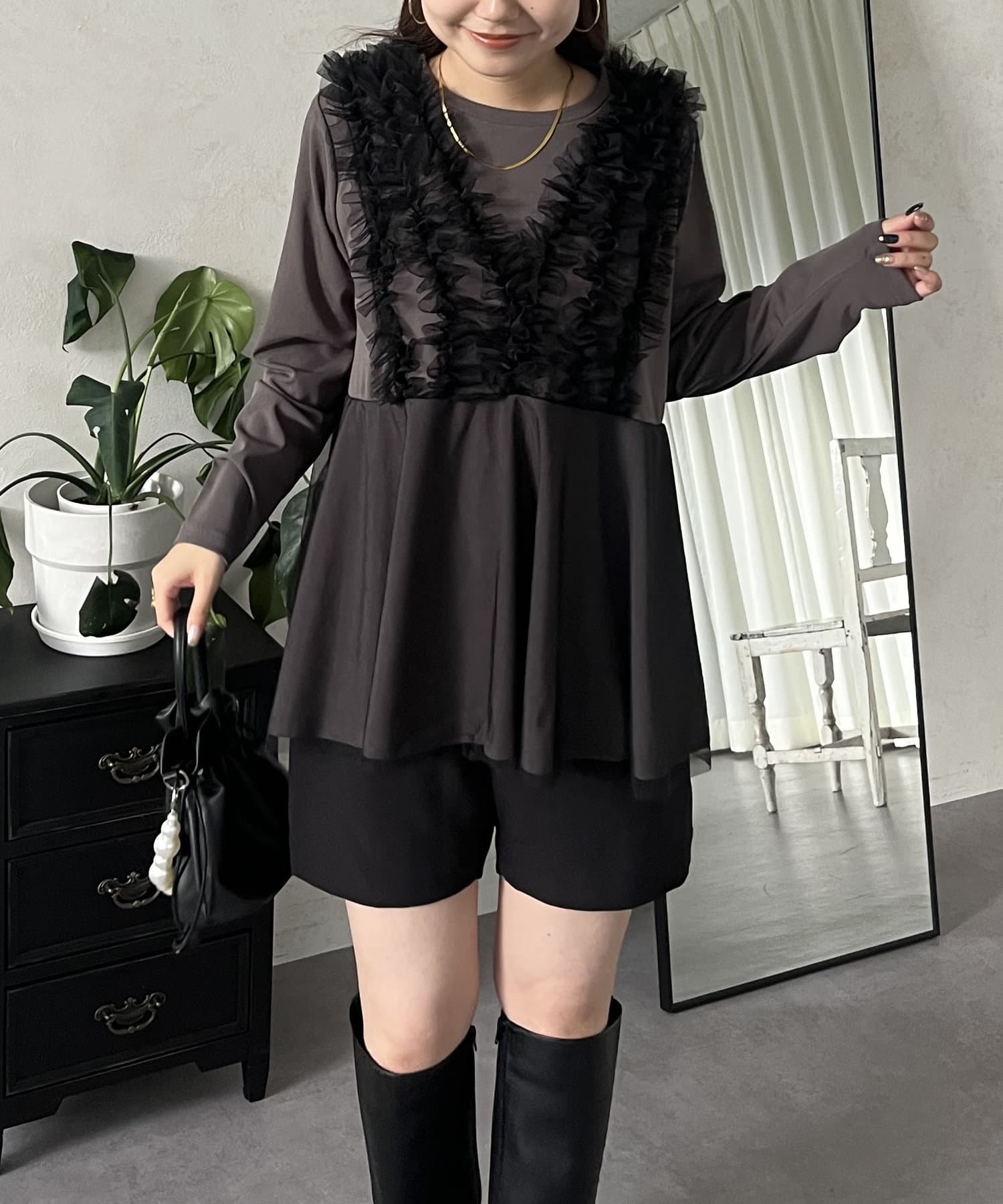 チュール/フリル/ペプラム/大人かわいい/きれいめ