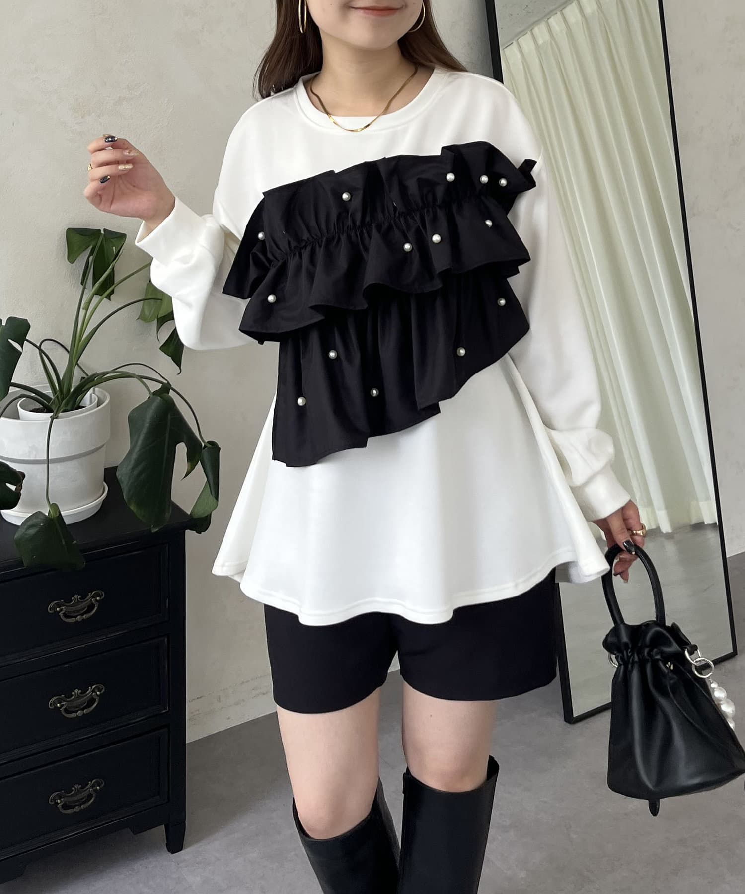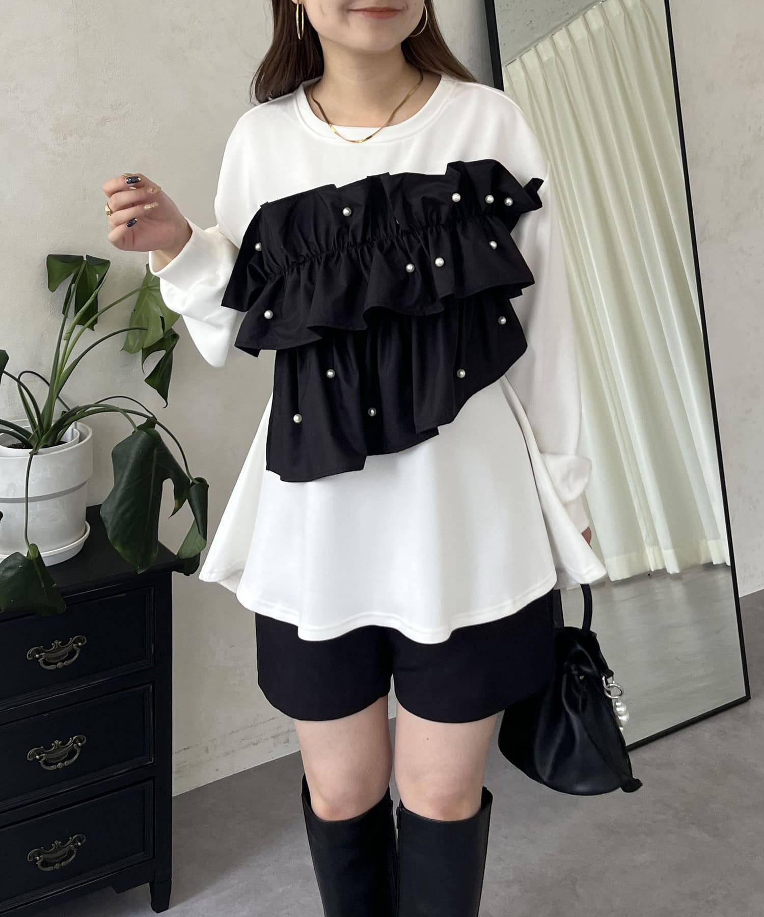 フリル/体型カバー/大人かわいい/きれいめカジュアル