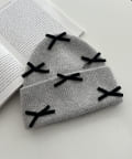 黒のニット帽にリボンが散りばめられていて可愛いです!