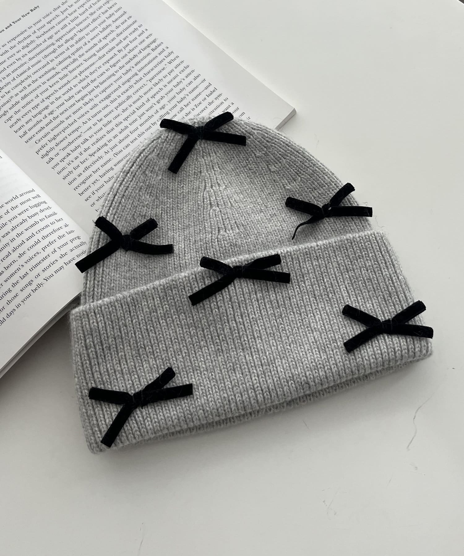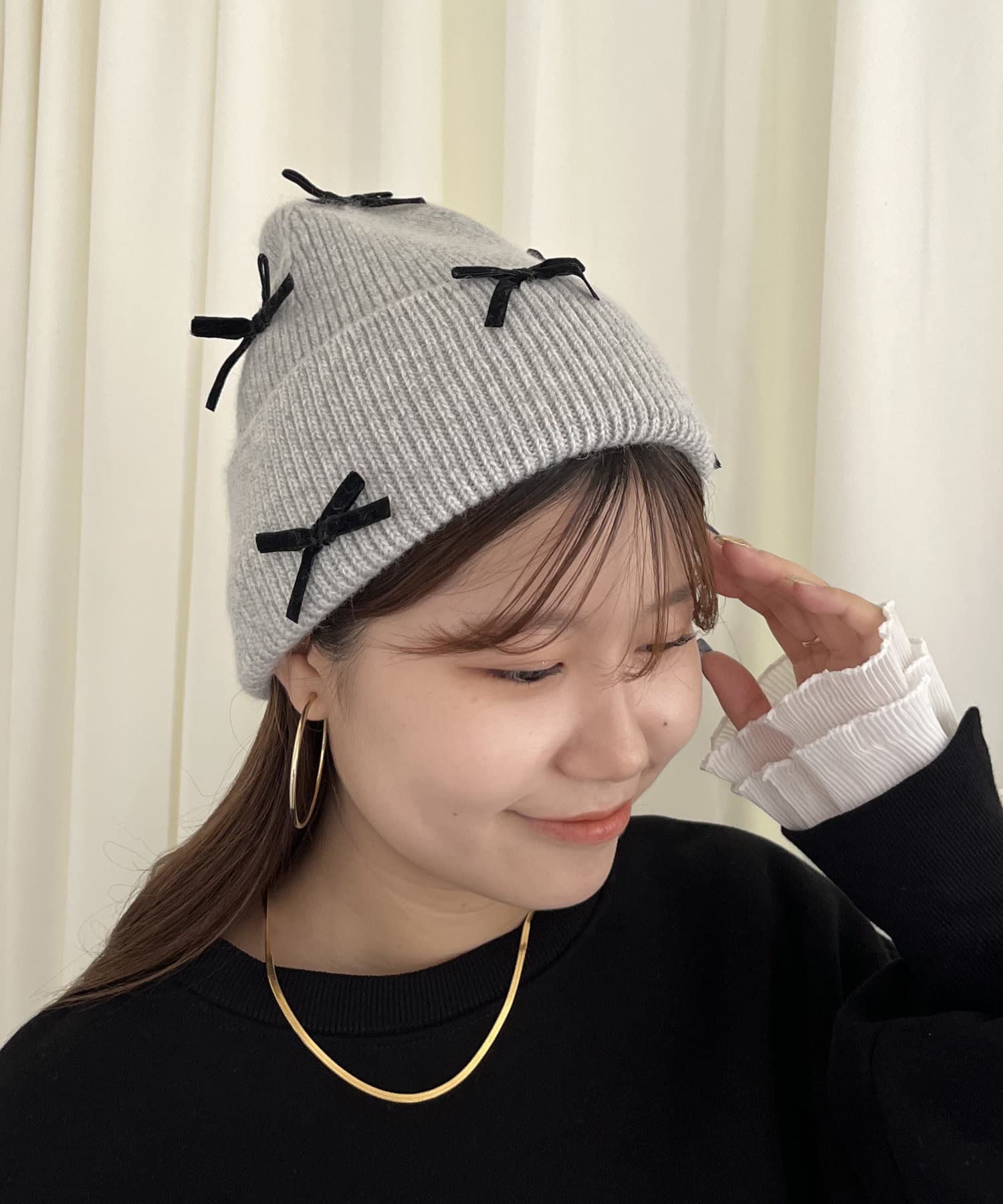 ●シーズンムード高まるニット帽にリボンデザインが大人かわいいポイント