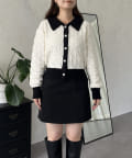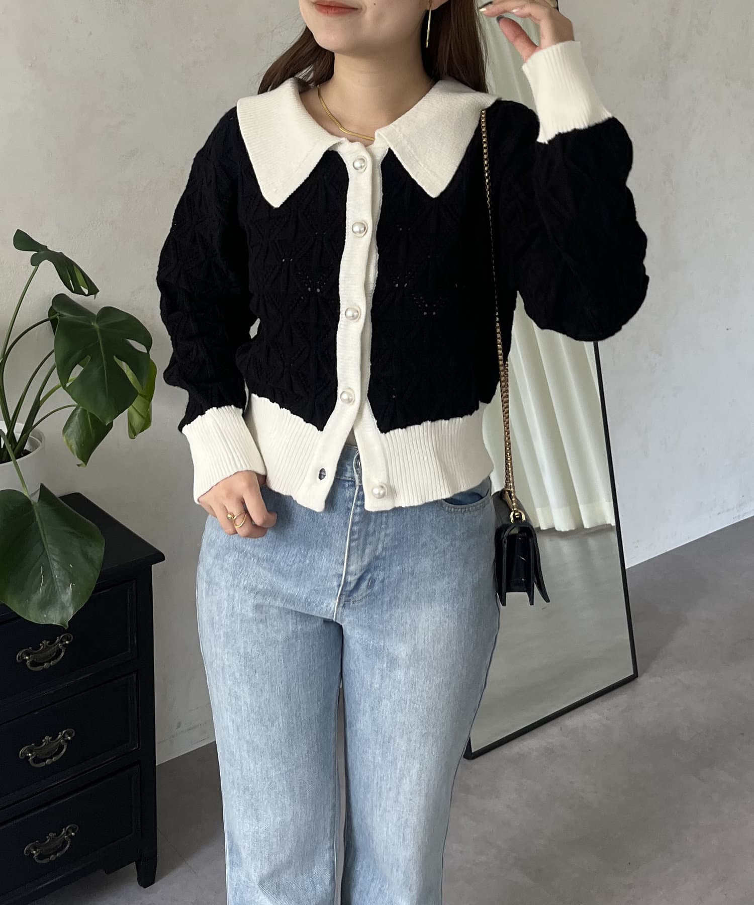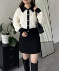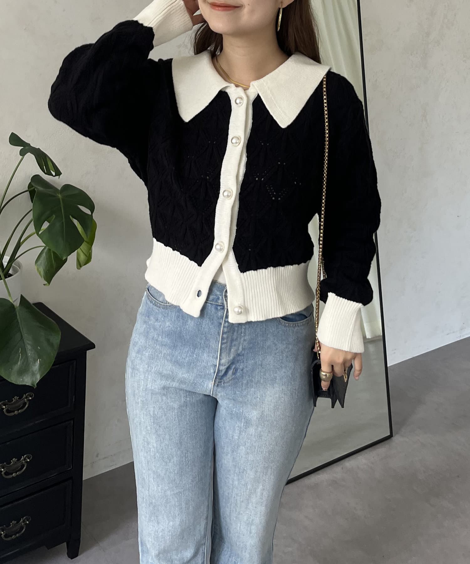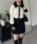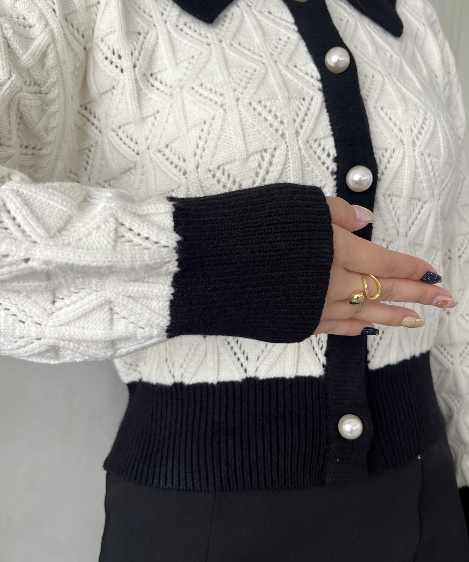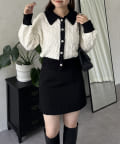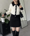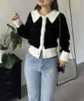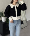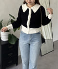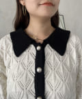 バイカラーパールボタン襟付きニットカーデ