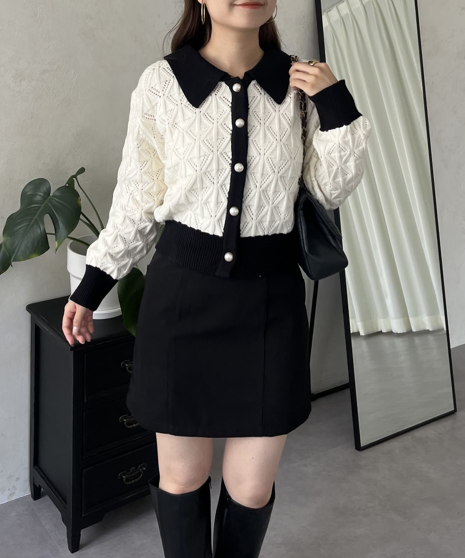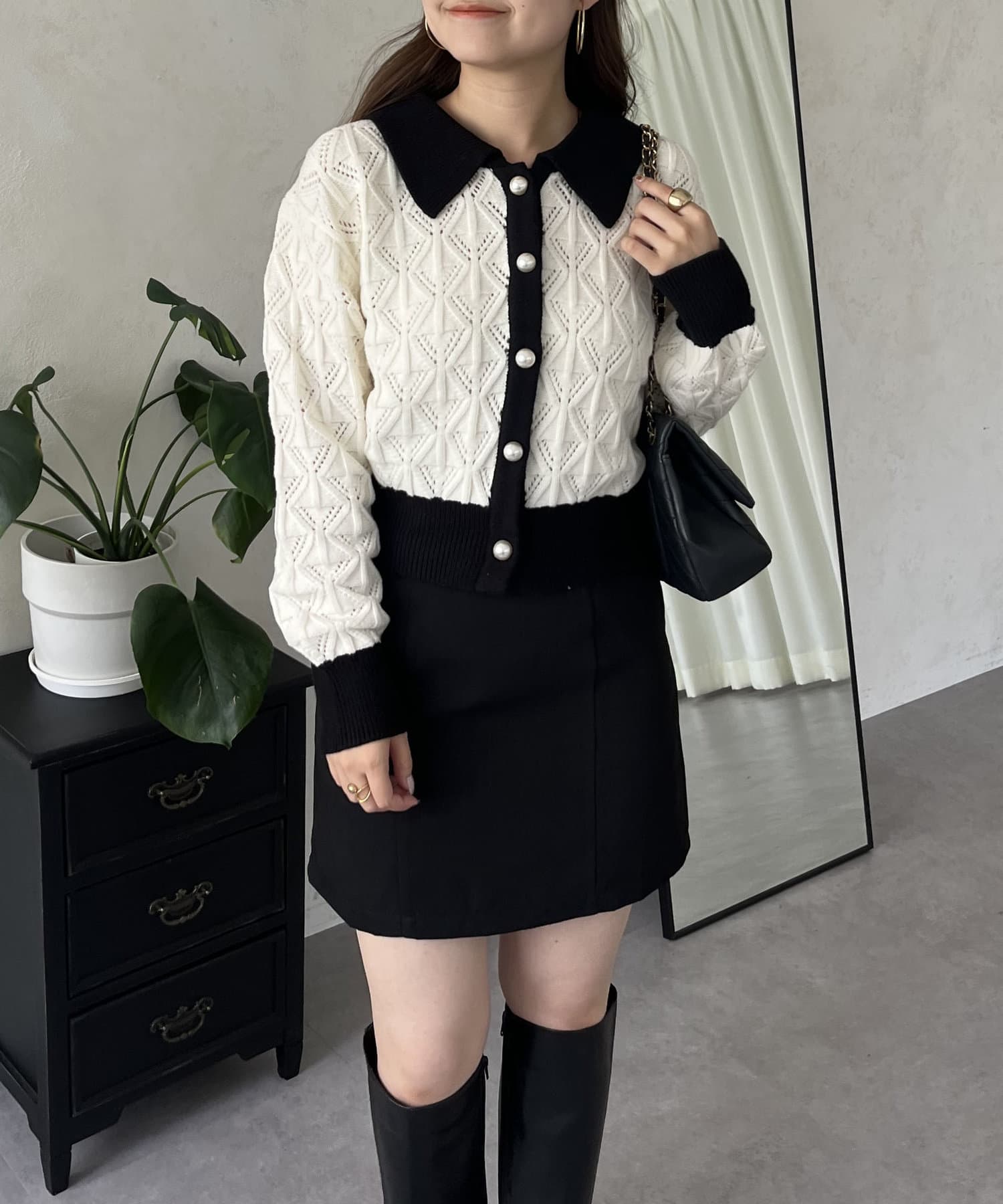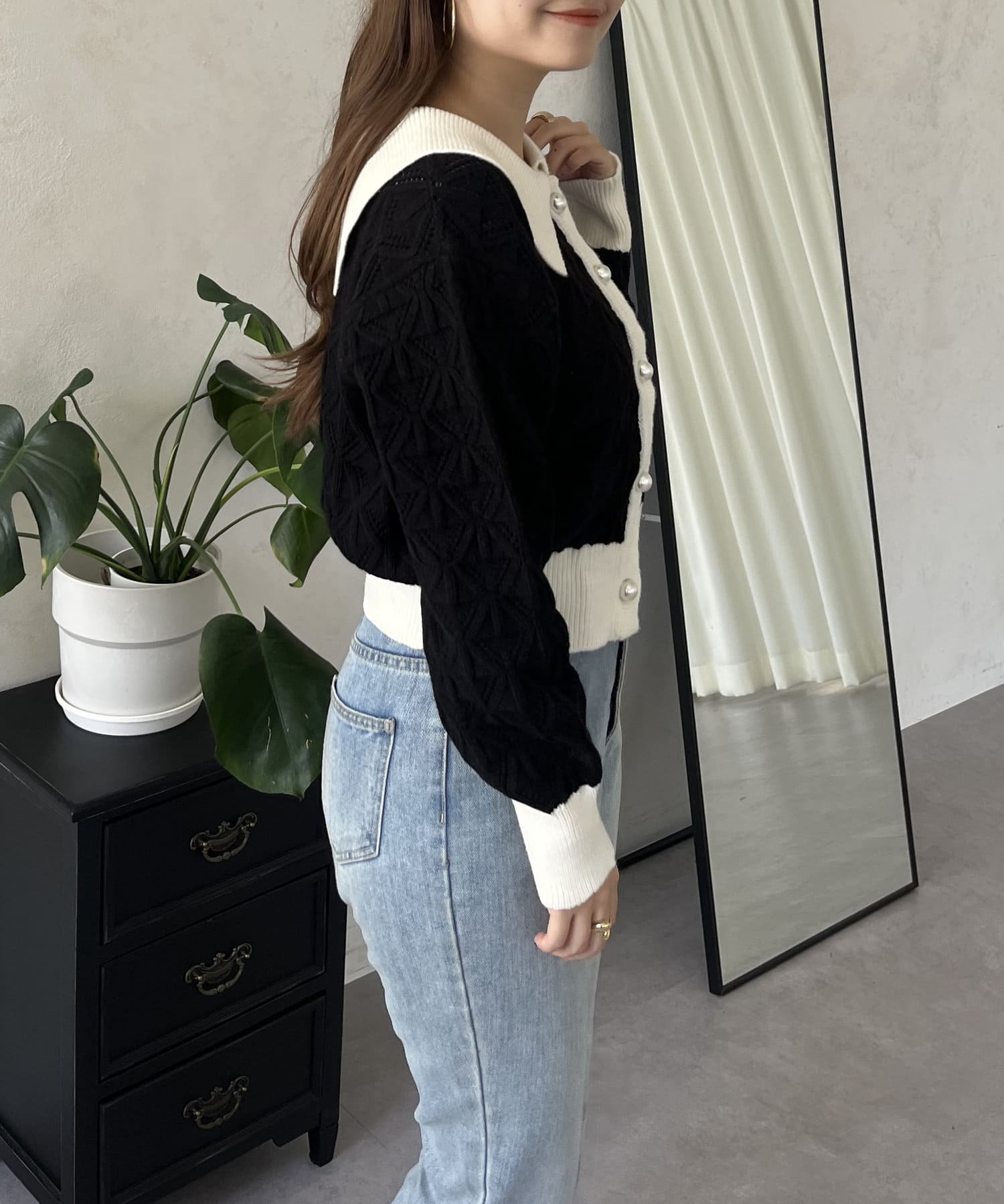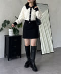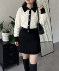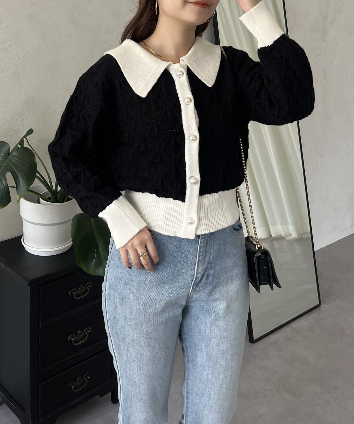 • prose verse(プロズヴェール) バイカラーパールボタン襟付きニットカーデ