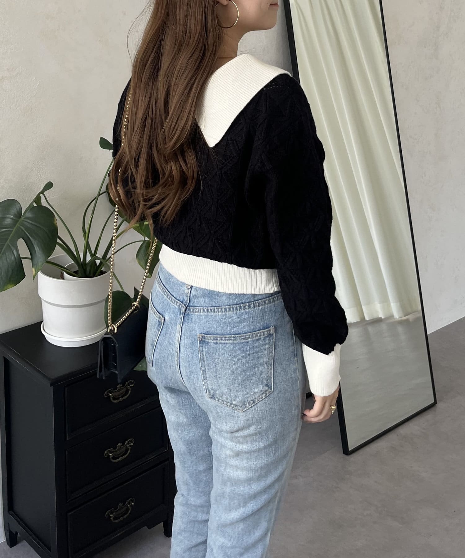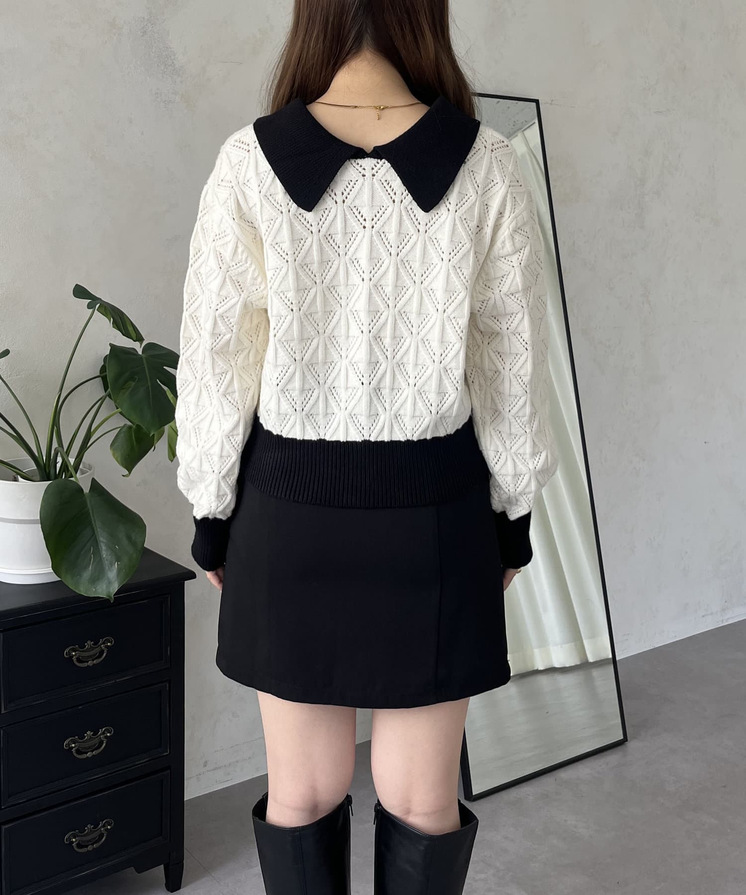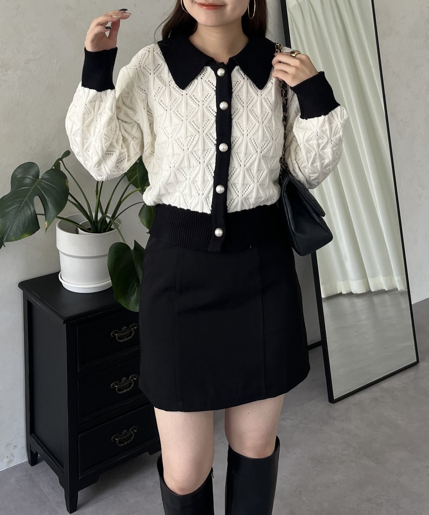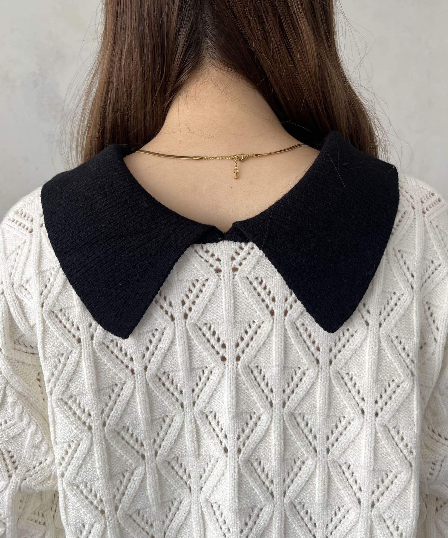 • prose verse(プロズヴェール) バイカラーパールボタン襟付きニットカーデ