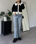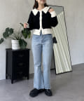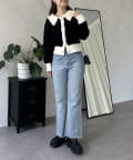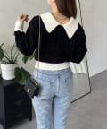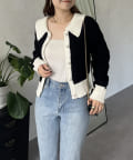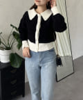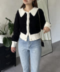 prose verse(プロズヴェール) バイカラーパールボタン襟付きニットカーデ