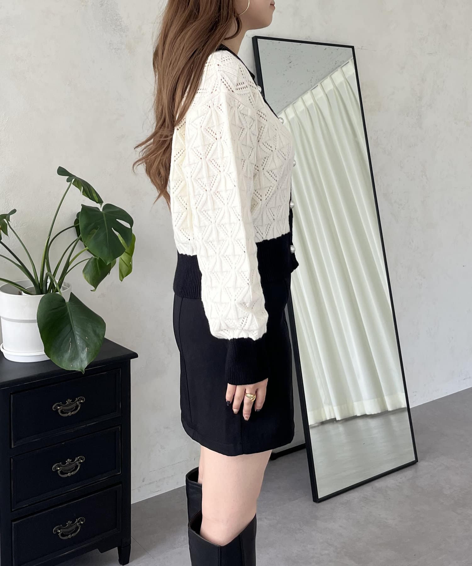 バイカラー/パールボタン/大人かわいい/フェミニン