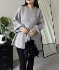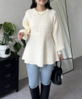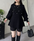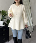 ペプラム/パール/ニット/体型カバー/着痩せ/大人可愛い