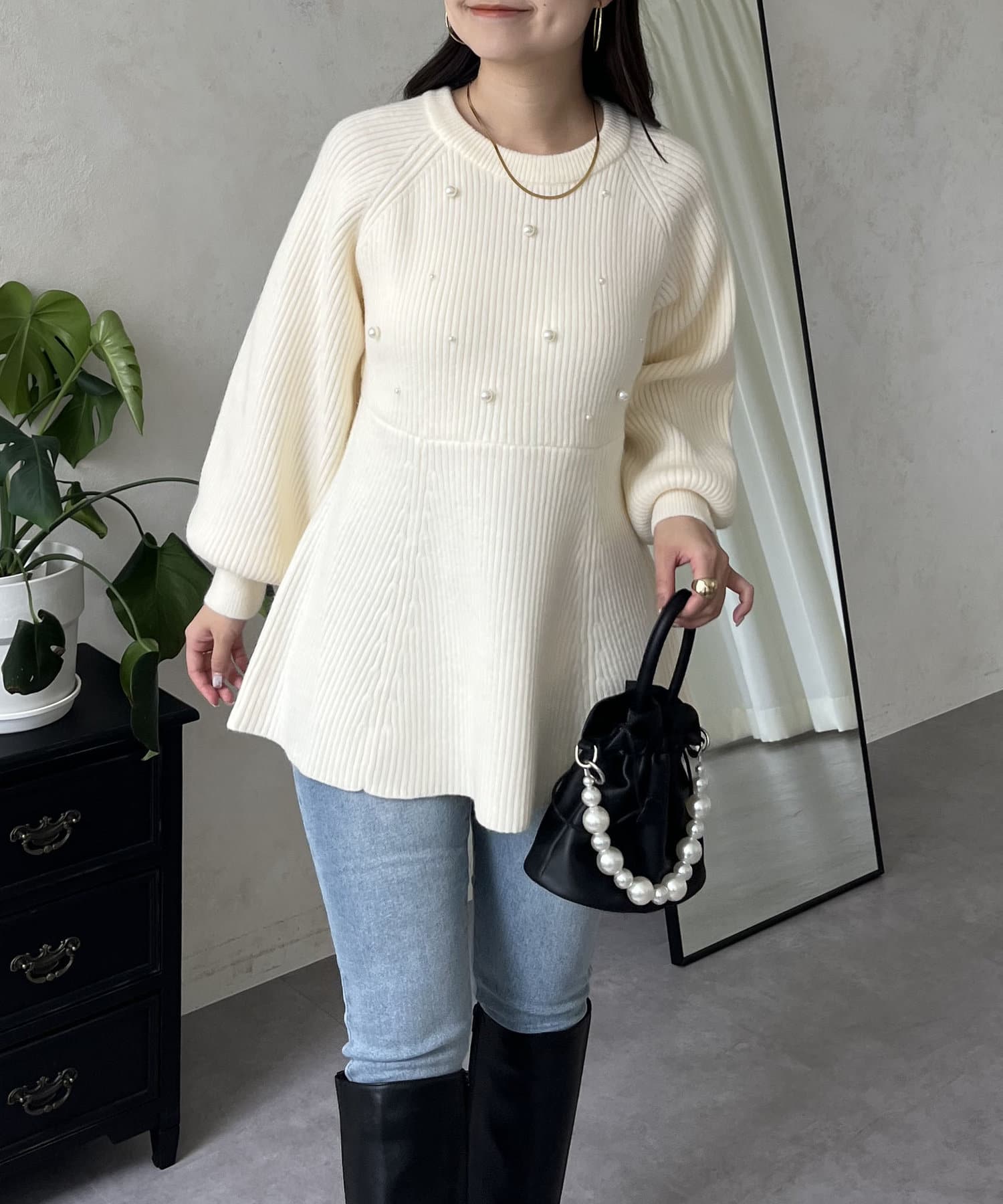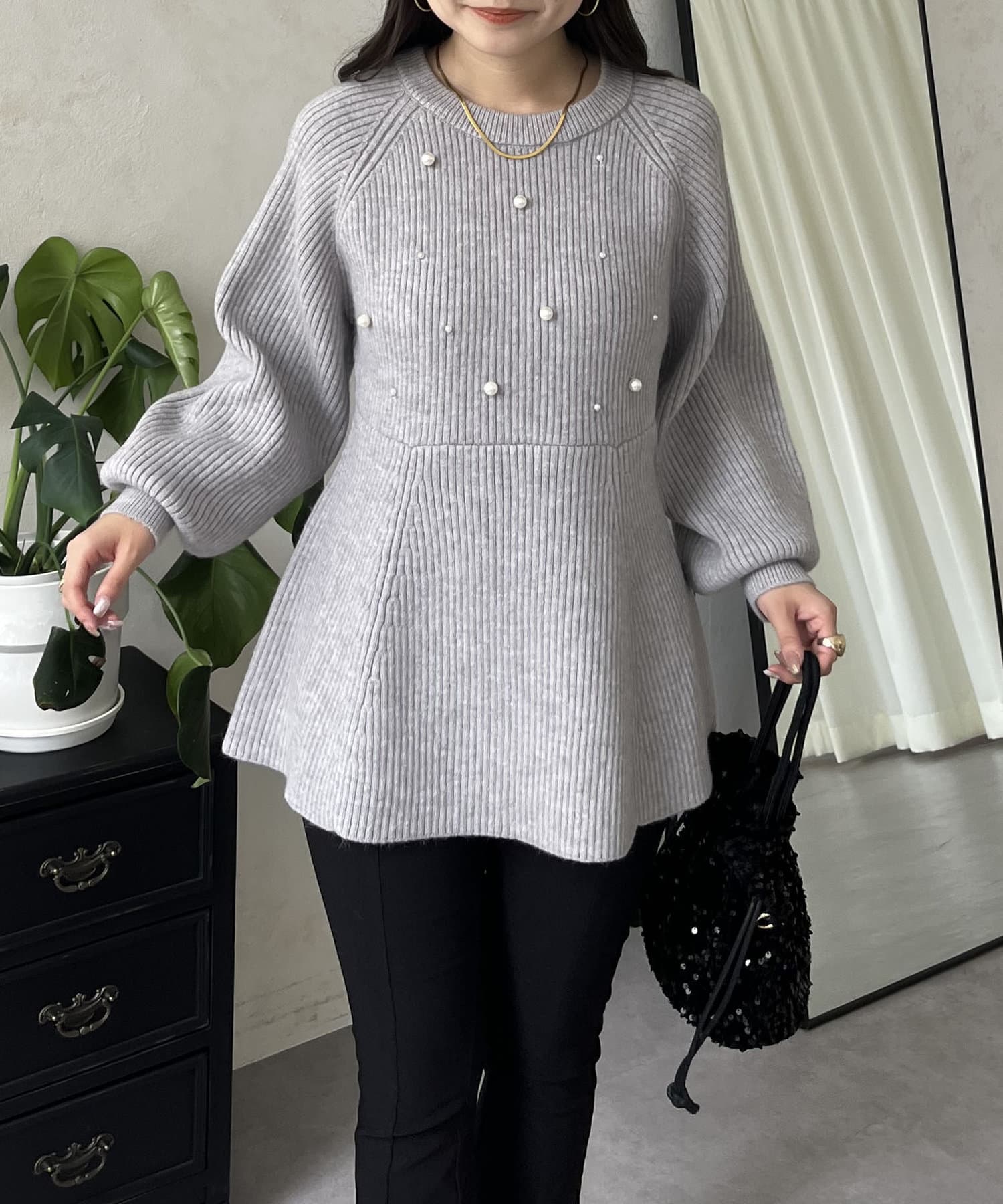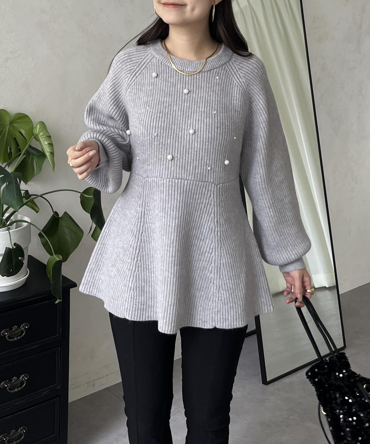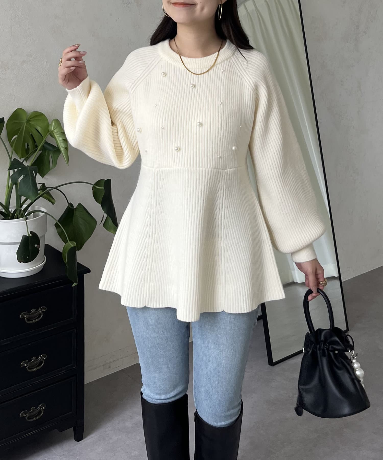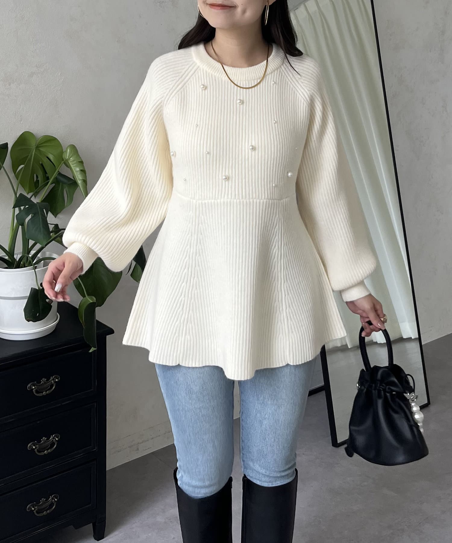ペプラム/パール/ニット/体型カバー/着痩せ/大人可愛い