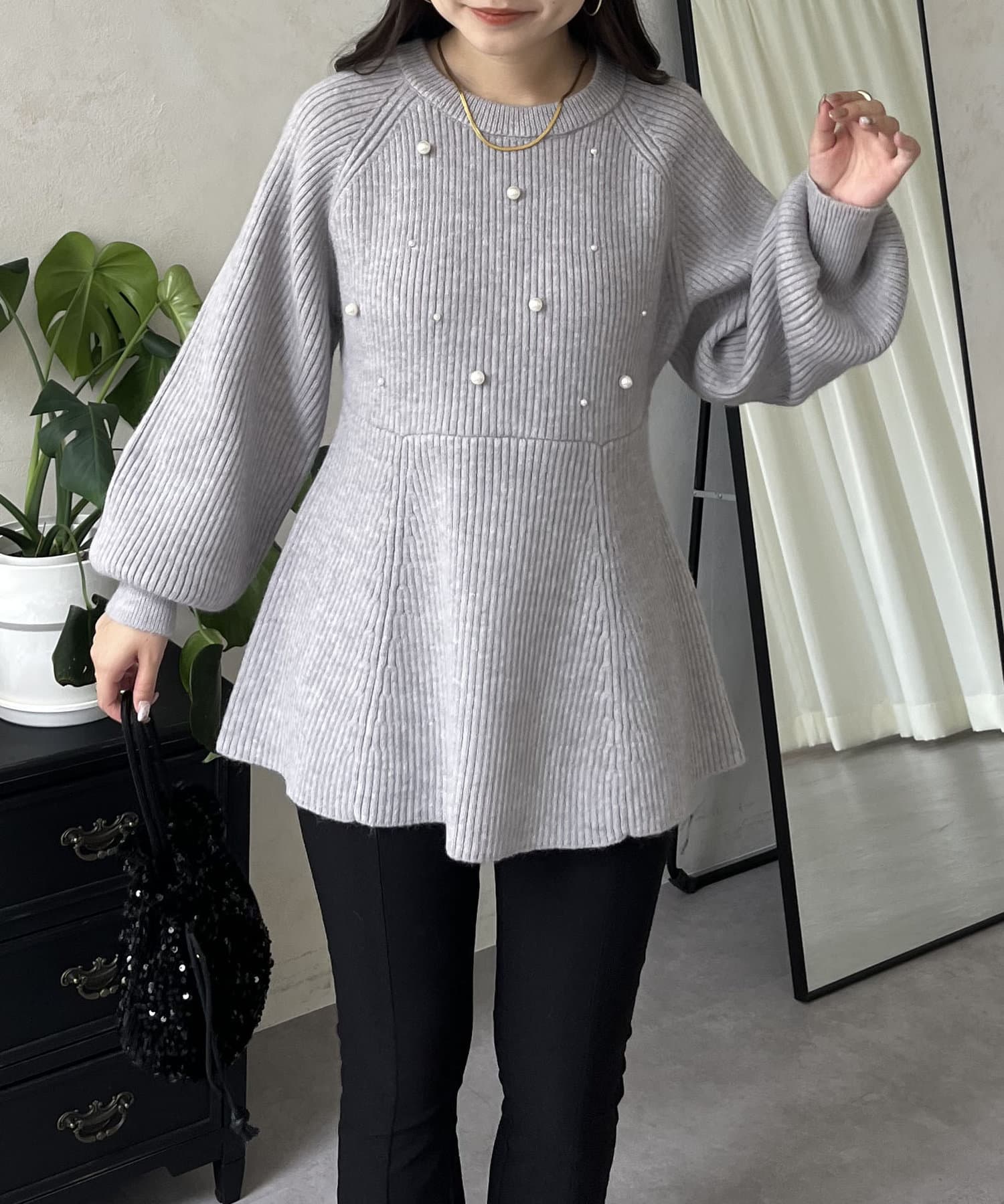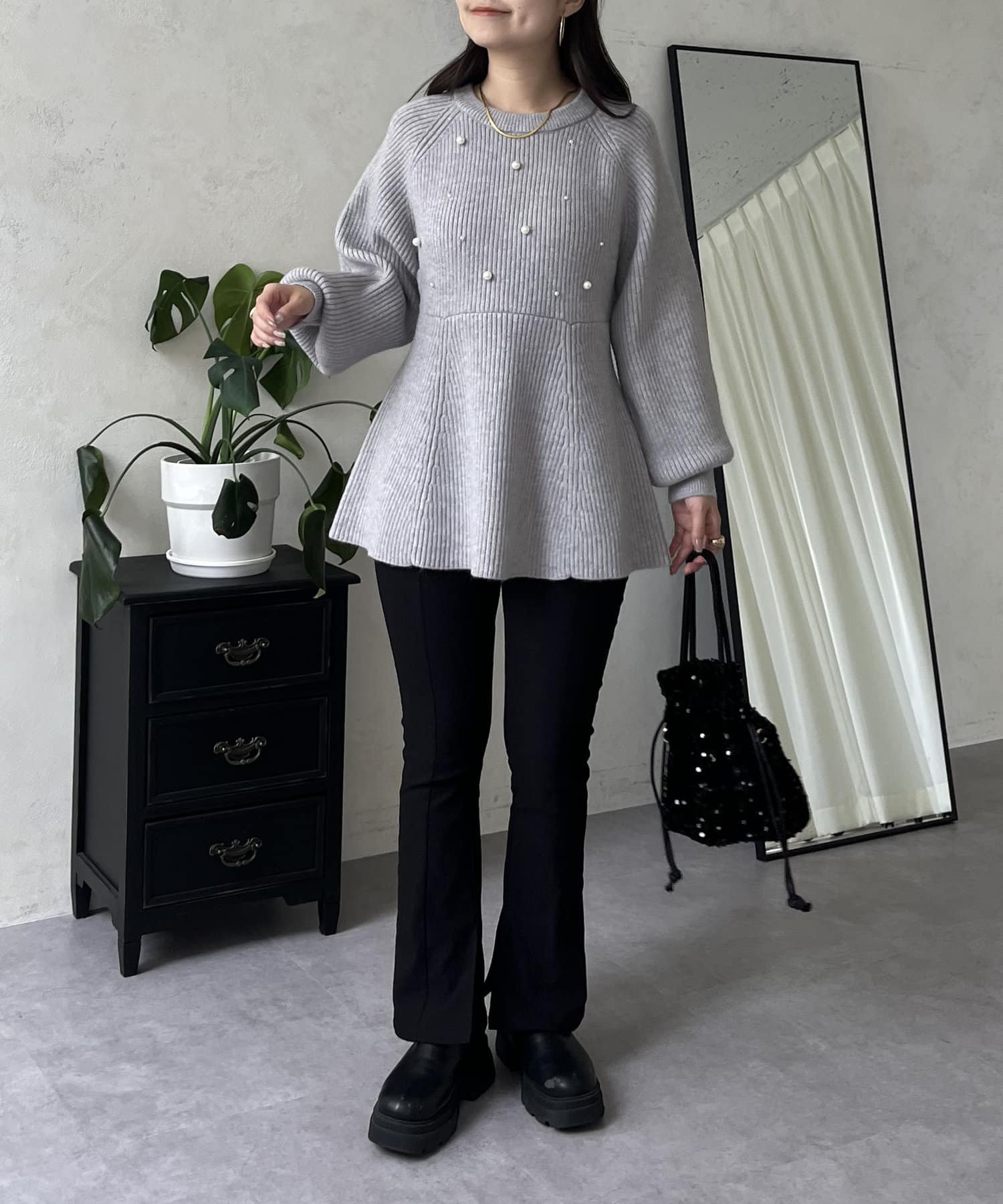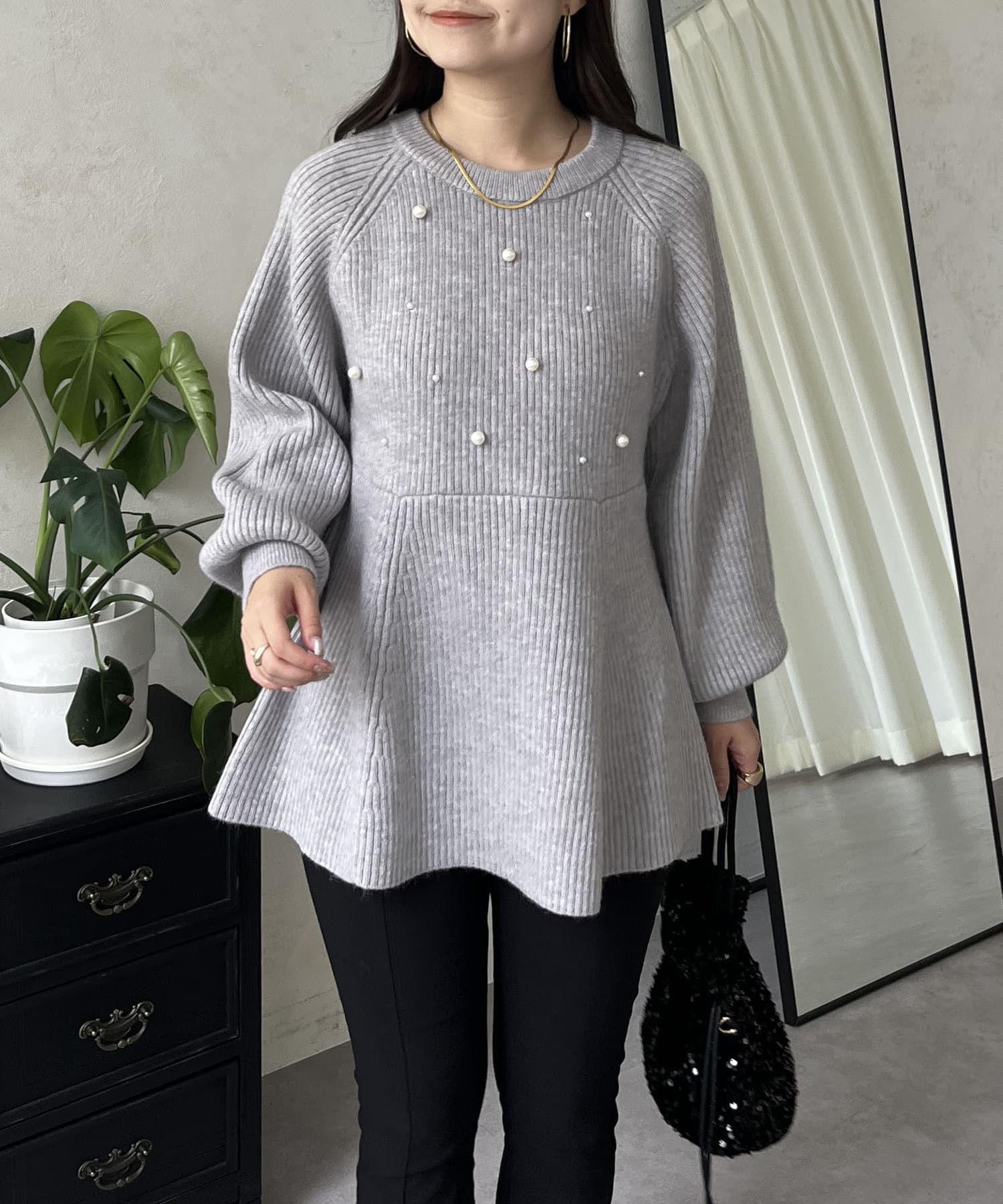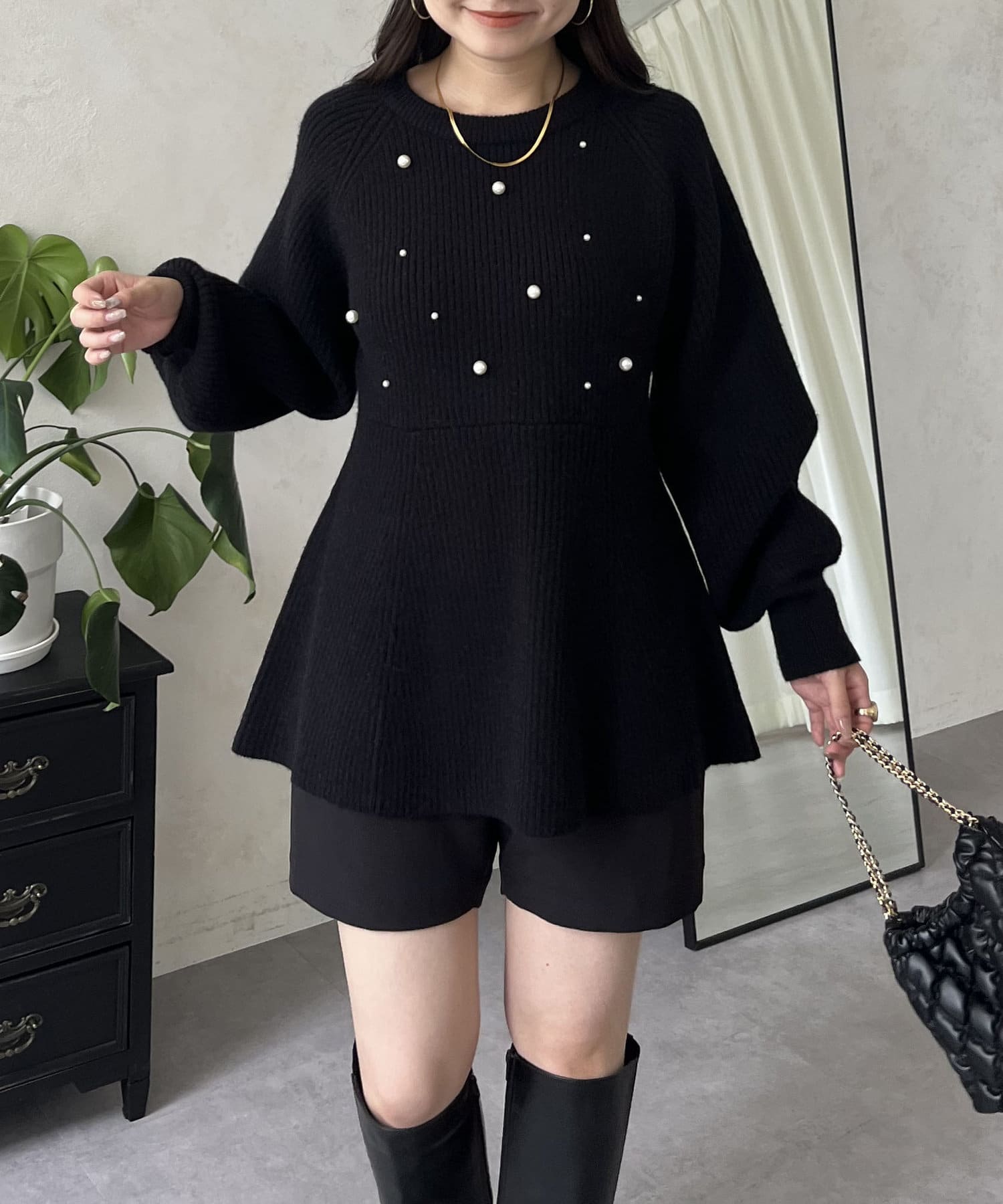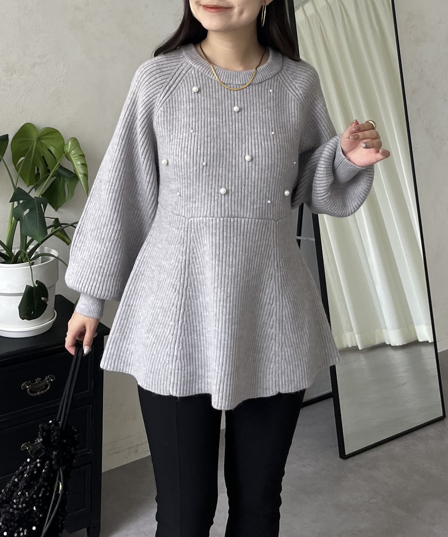 ペプラム/パール/ニット/体型カバー/着痩せ/大人可愛い