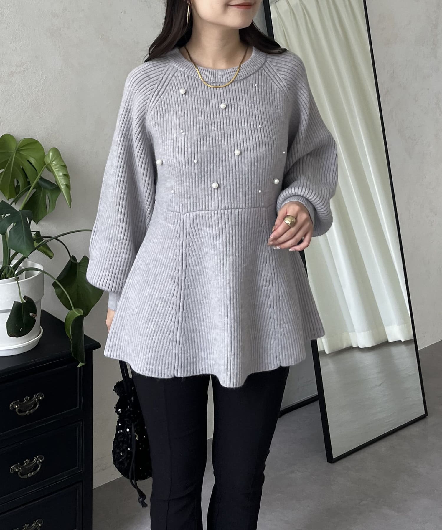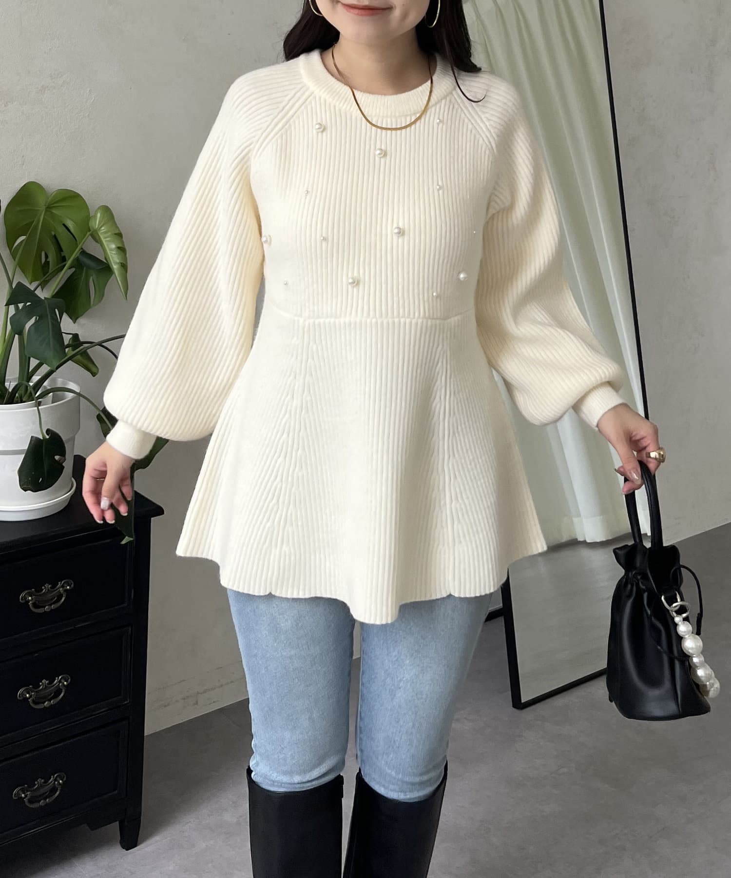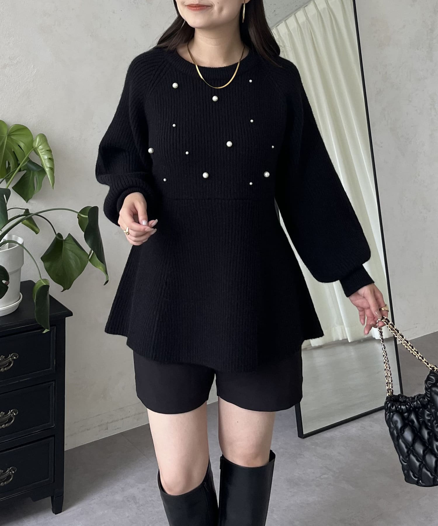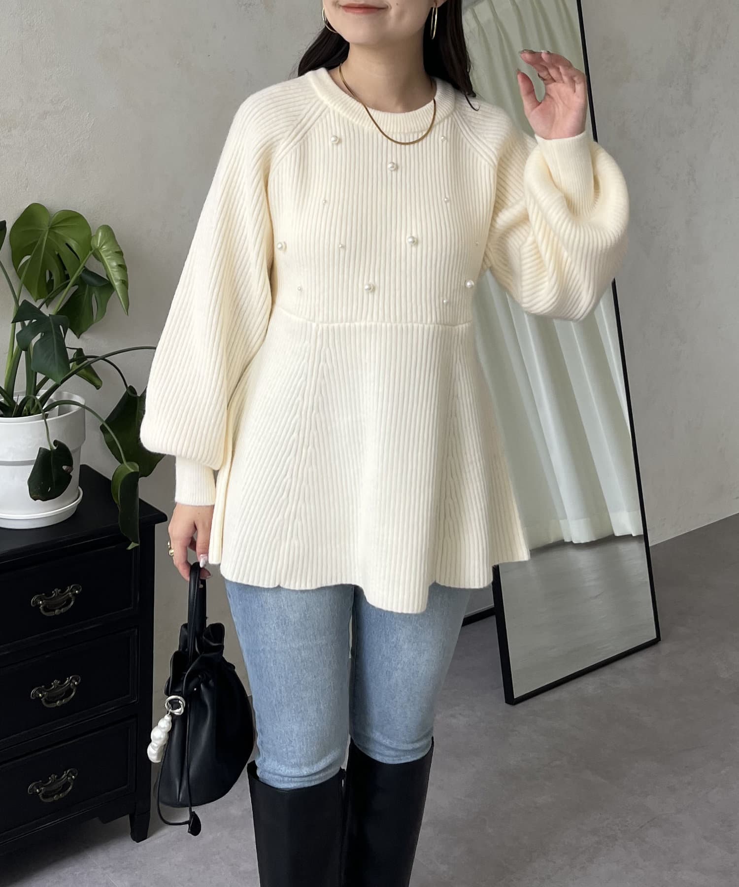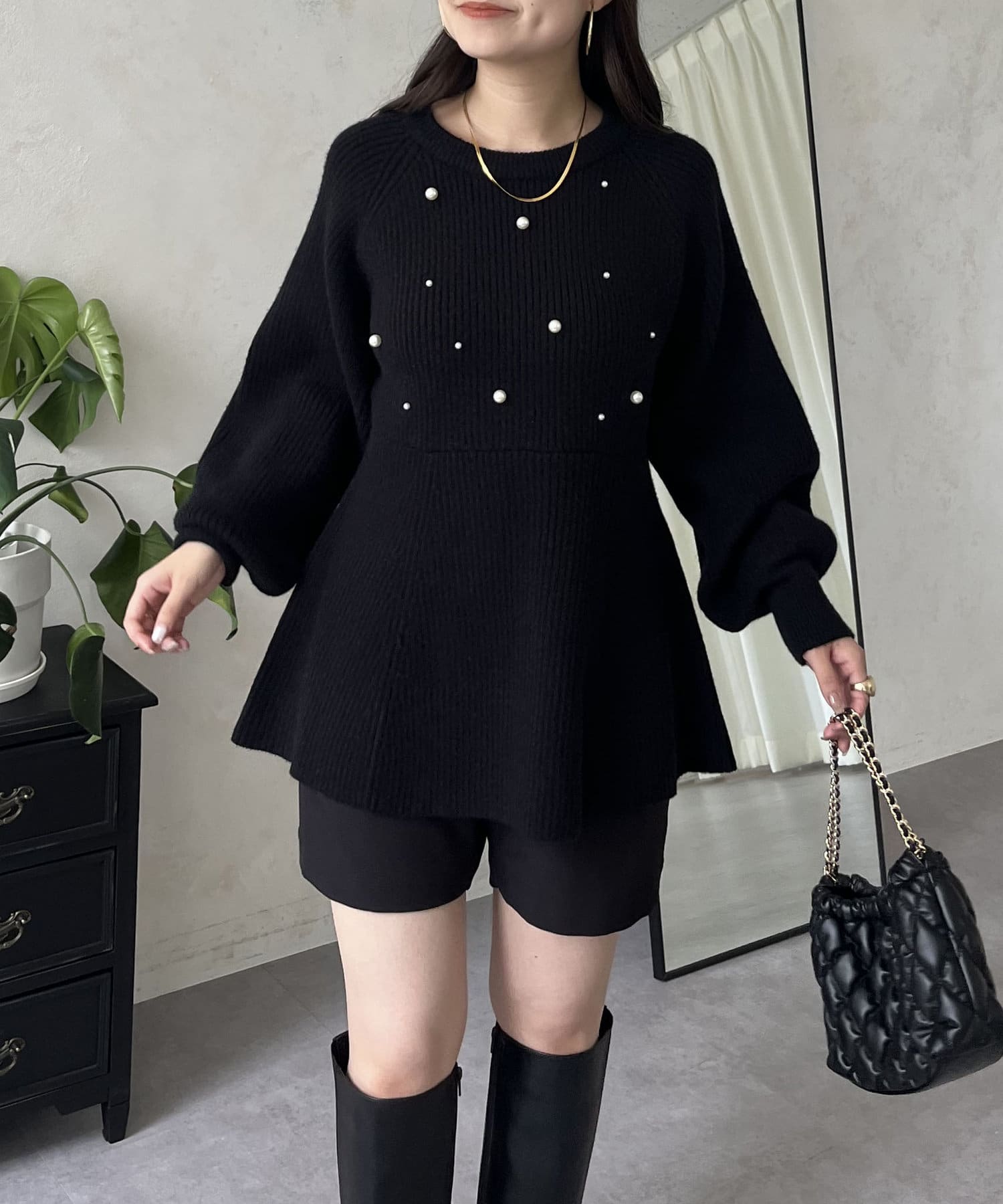 ペプラム/パール/ニット/体型カバー/着痩せ/大人可愛い