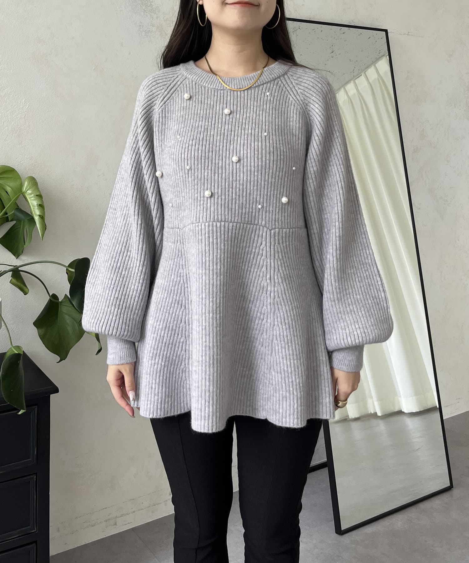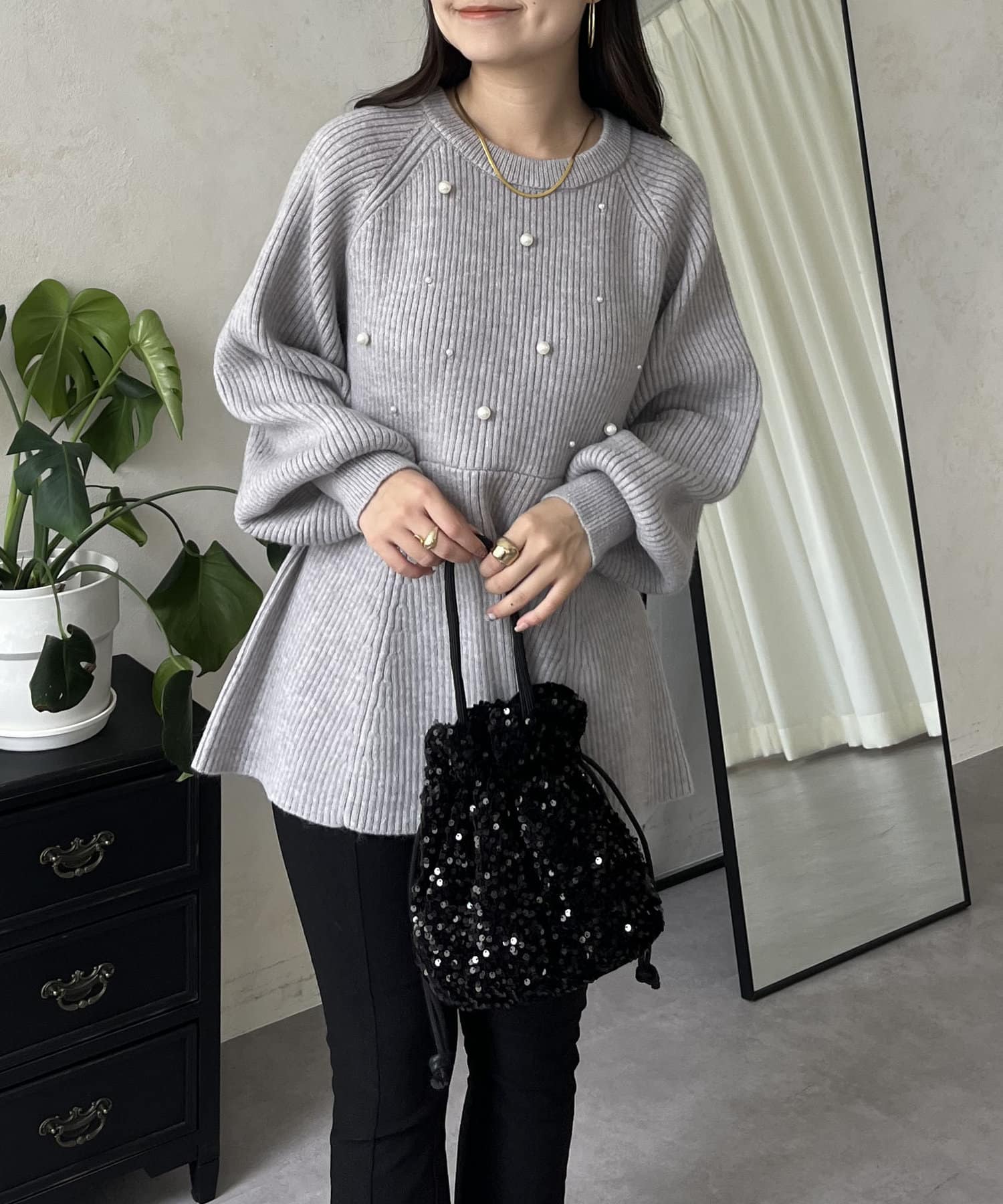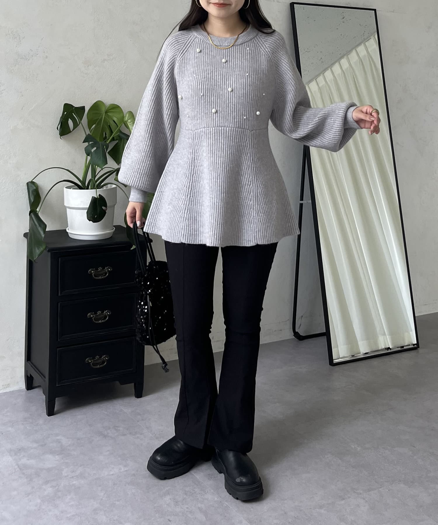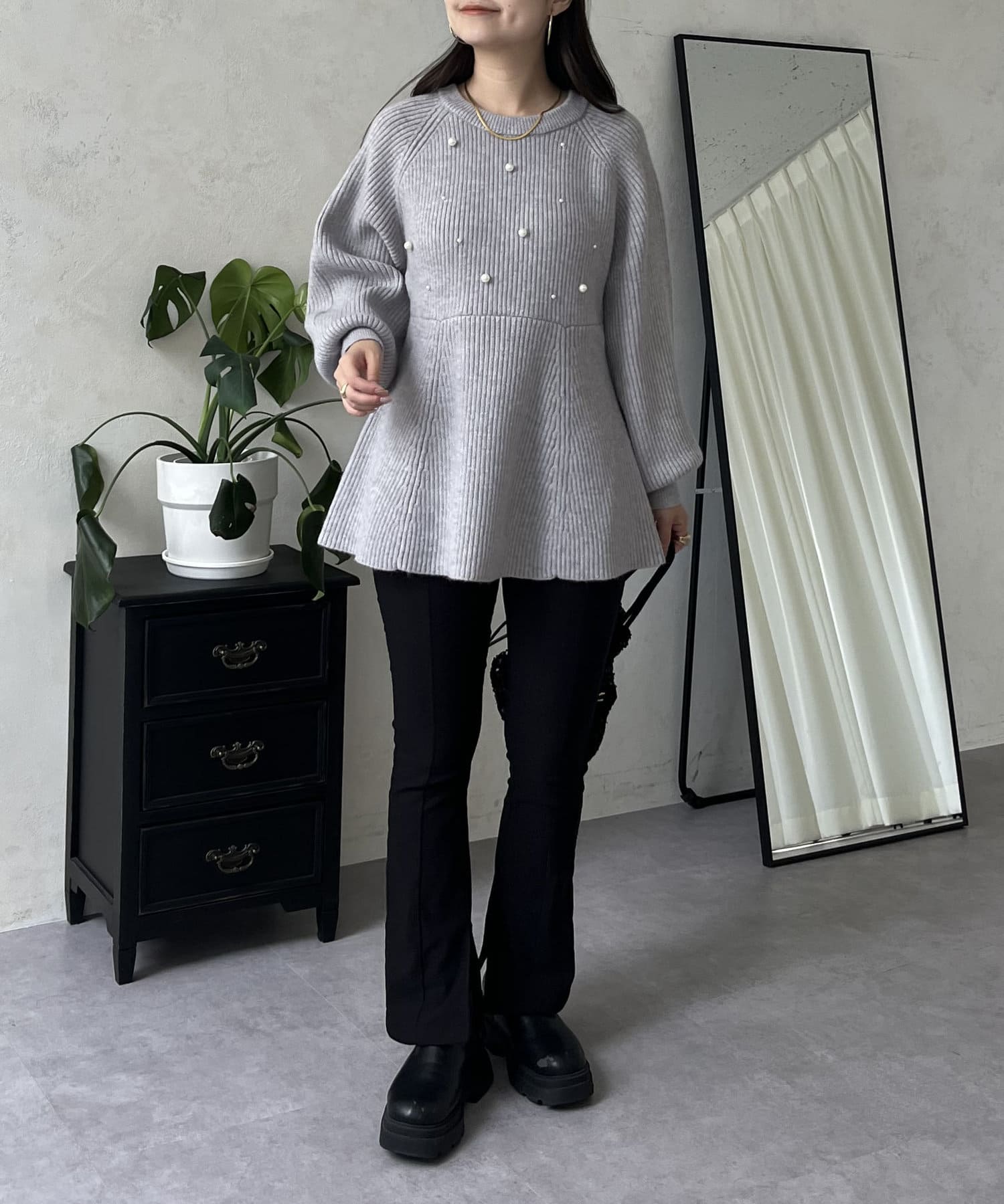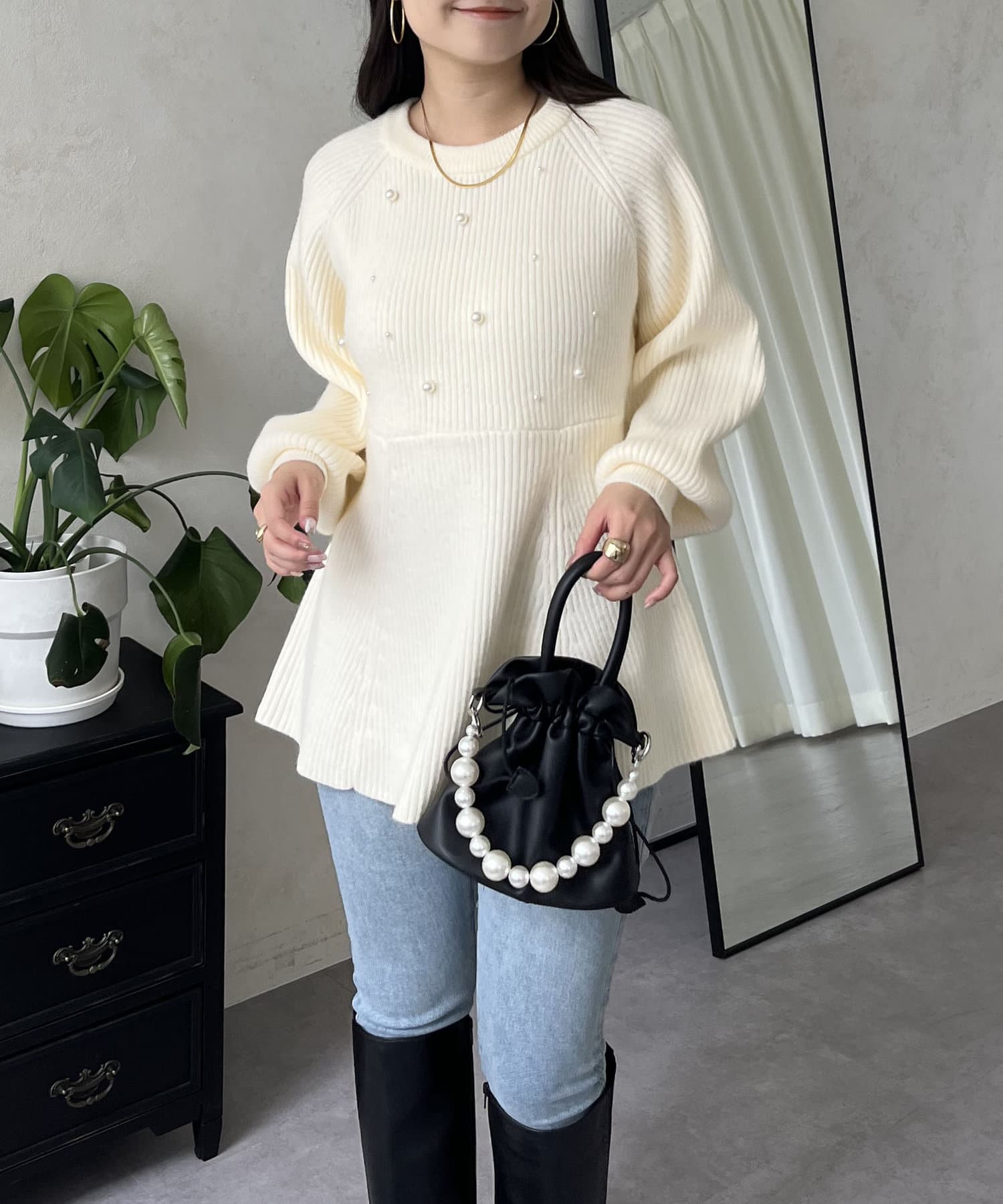 ペプラム/パール/ニット/体型カバー/着痩せ/大人可愛い
