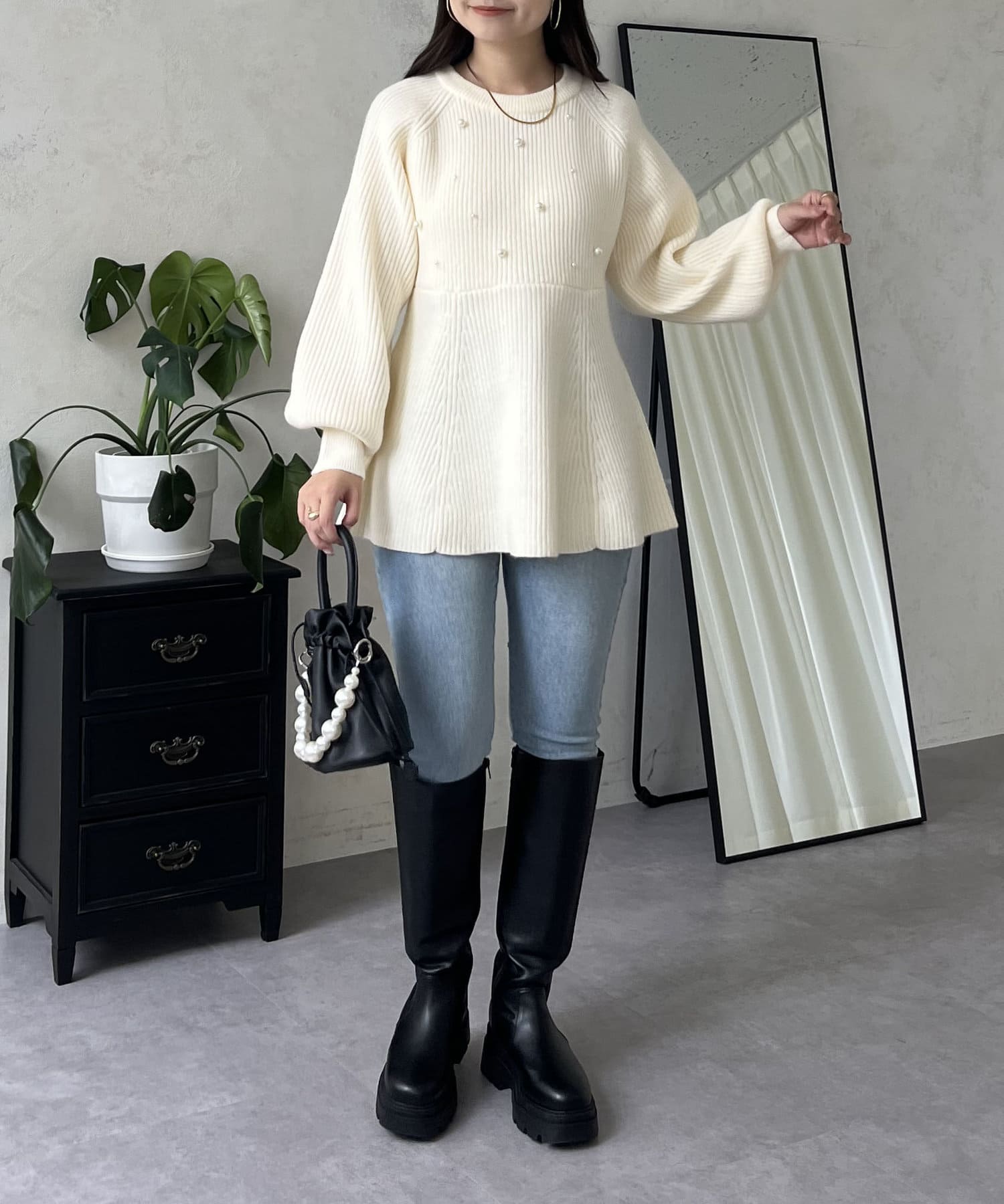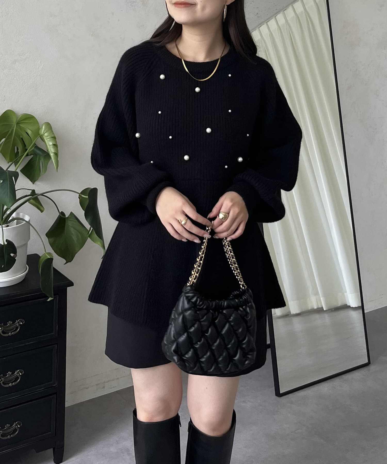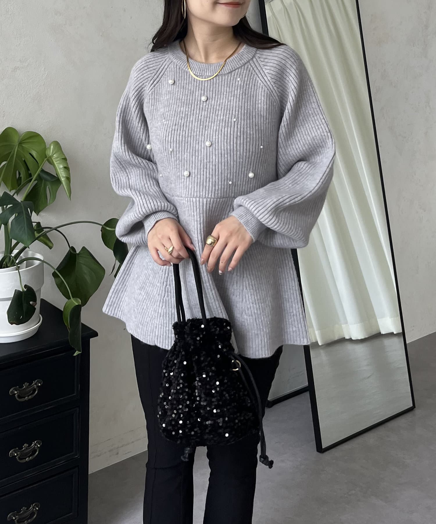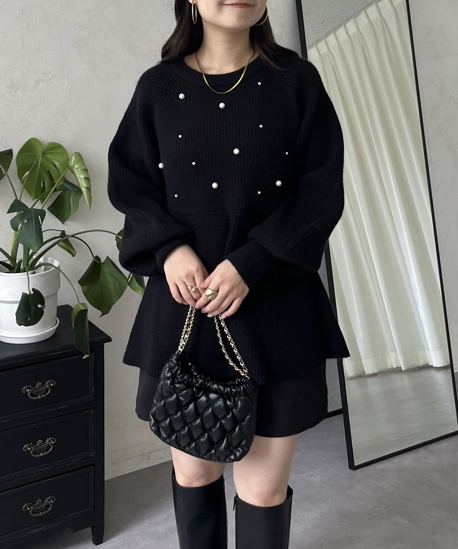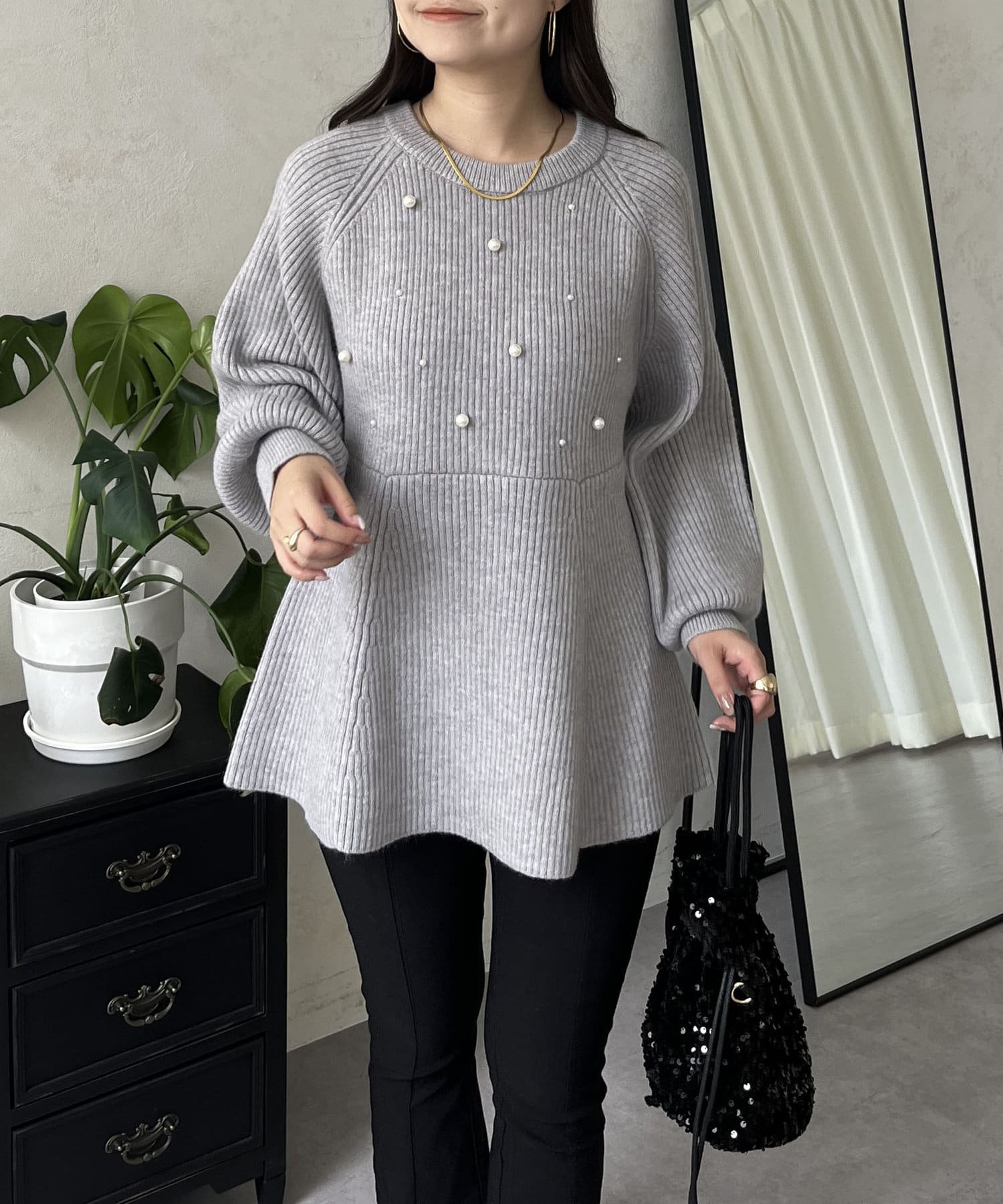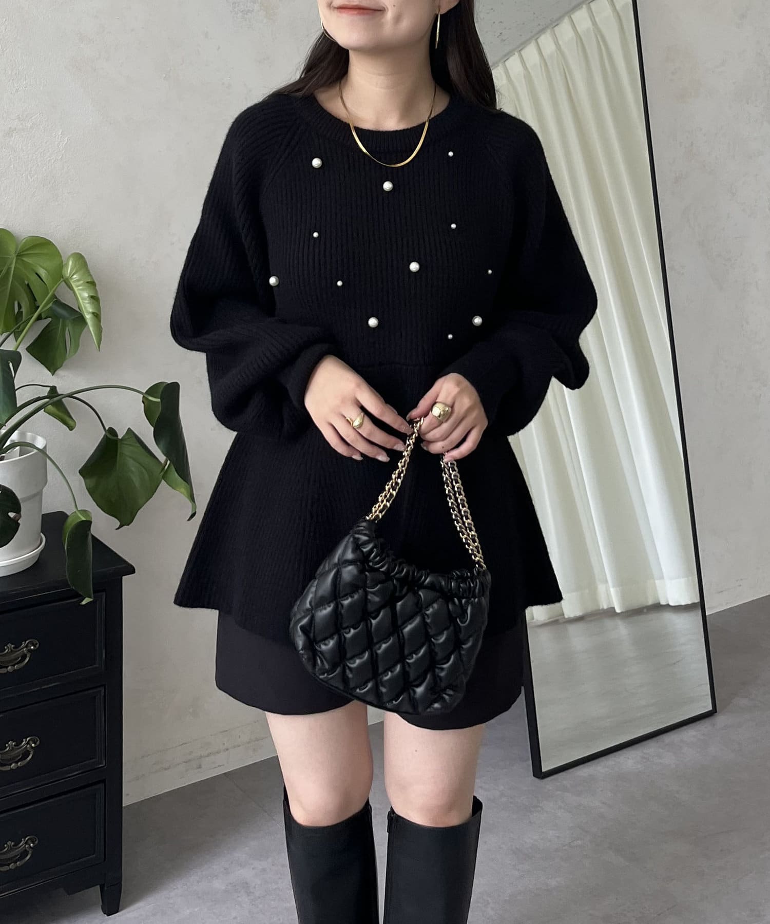 ペプラム/パール/ニット/体型カバー/着痩せ/大人可愛い