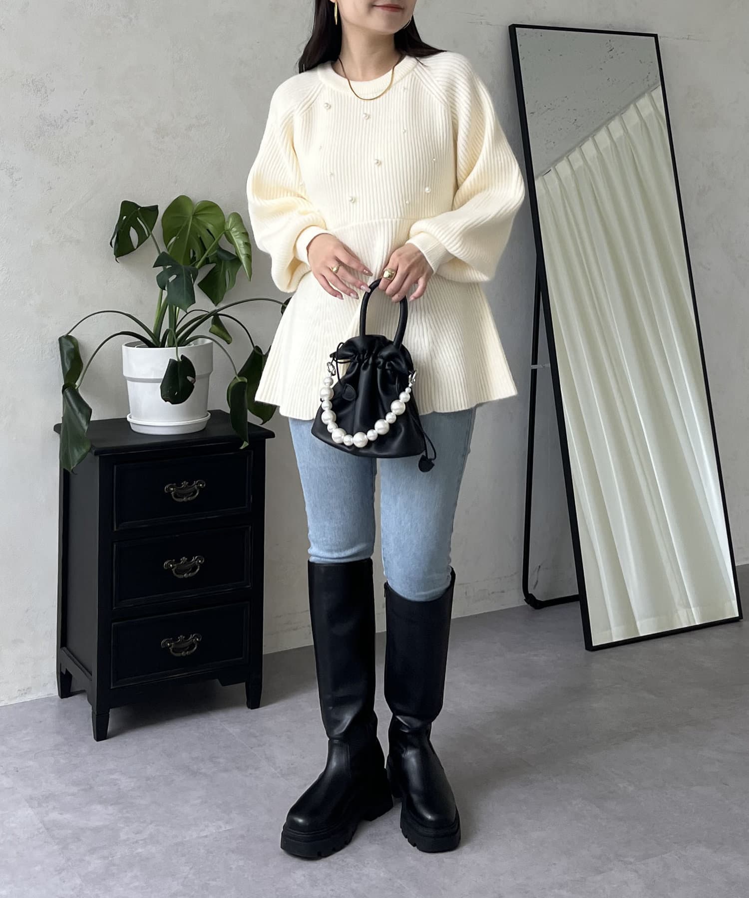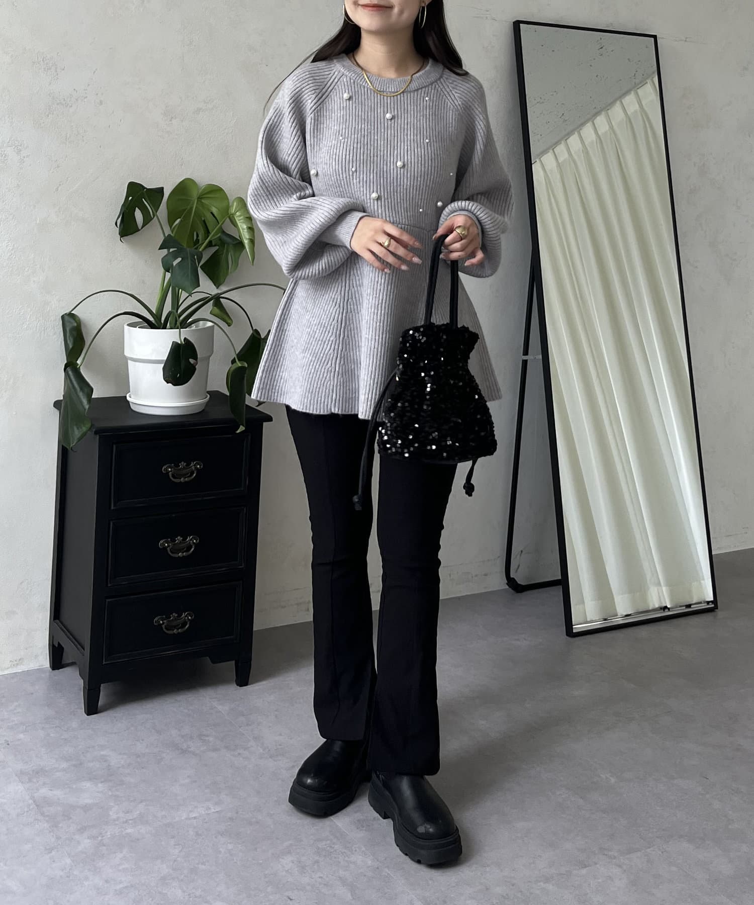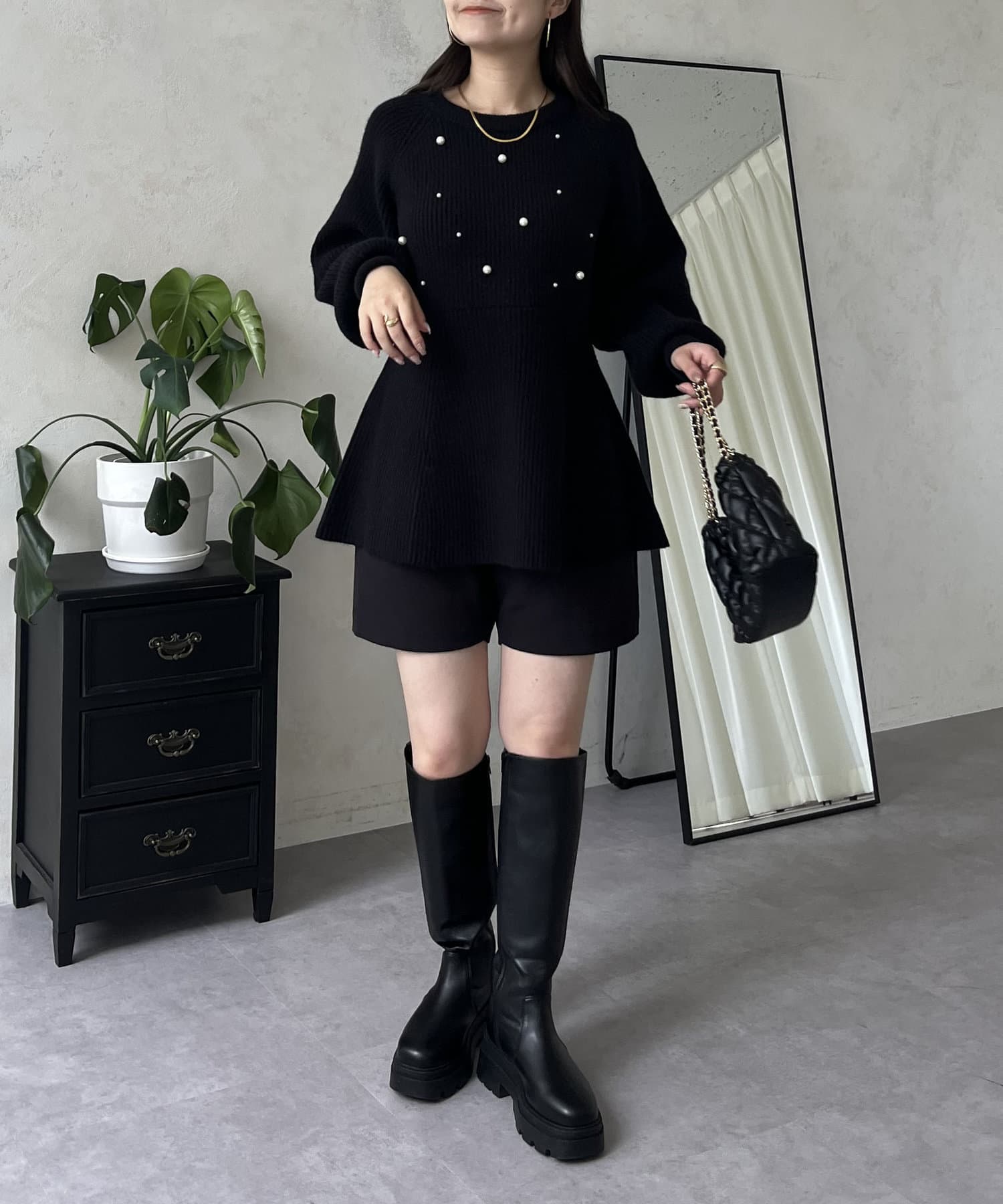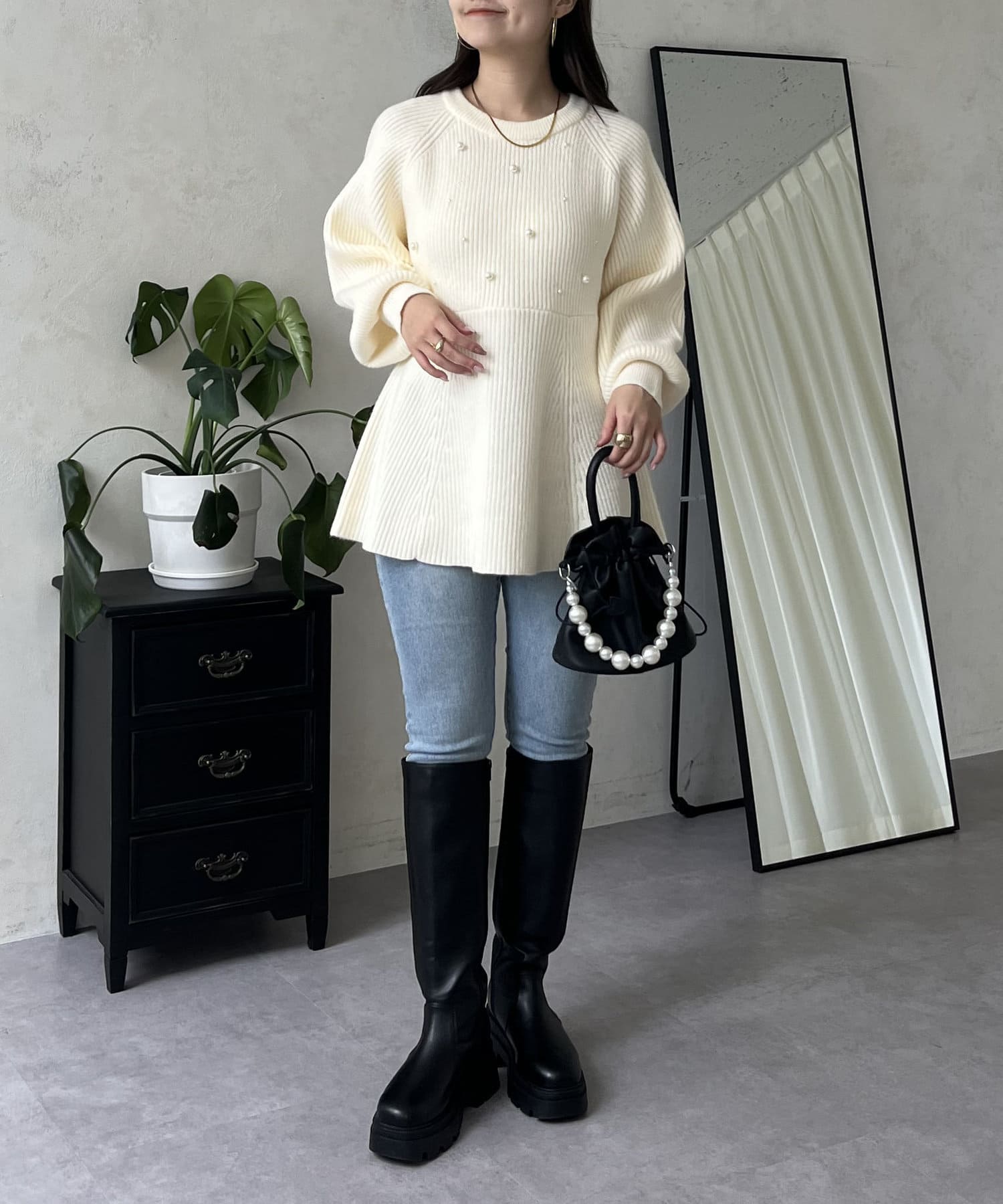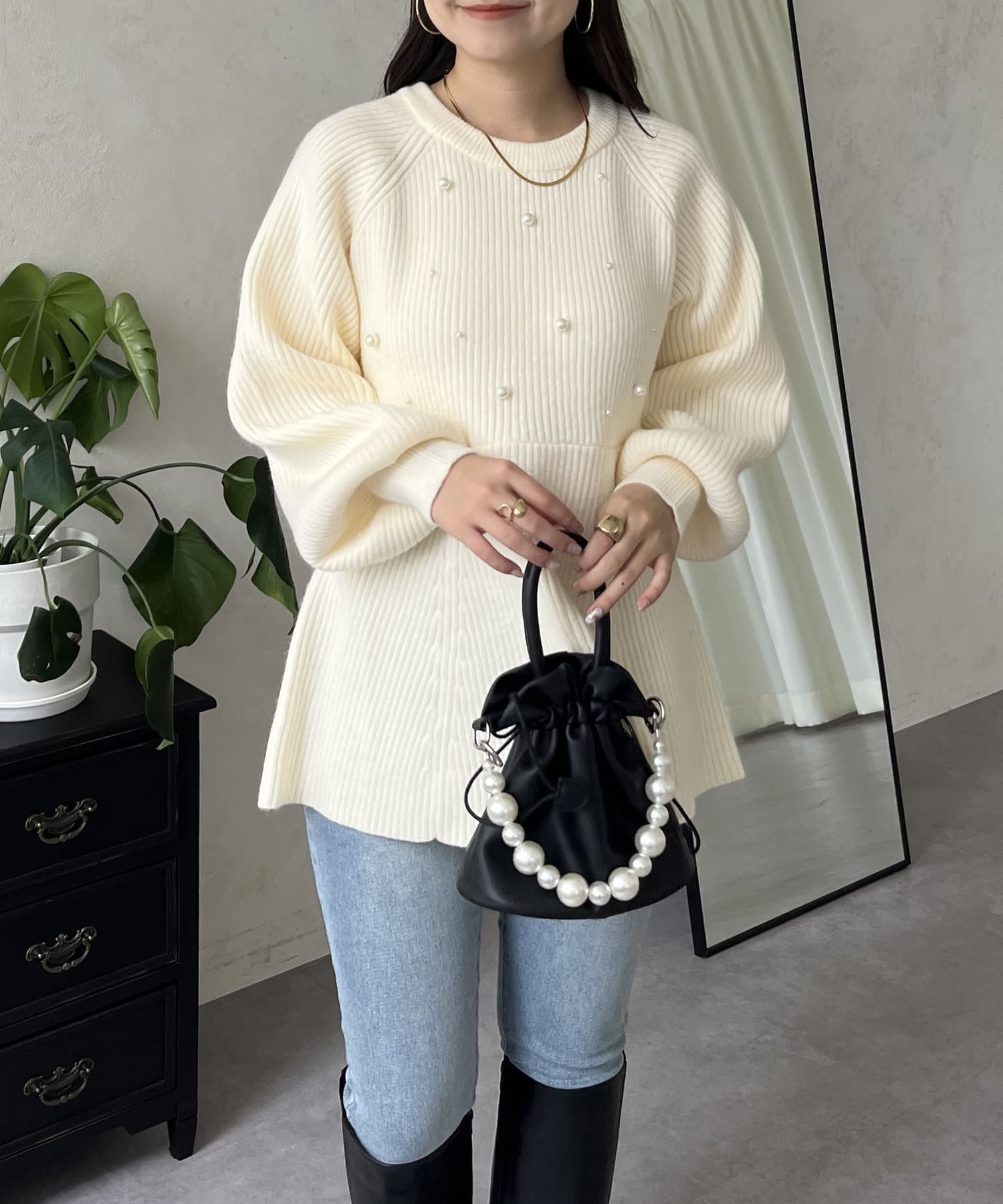 ペプラム/パール/ニット/体型カバー/着痩せ/大人可愛い
