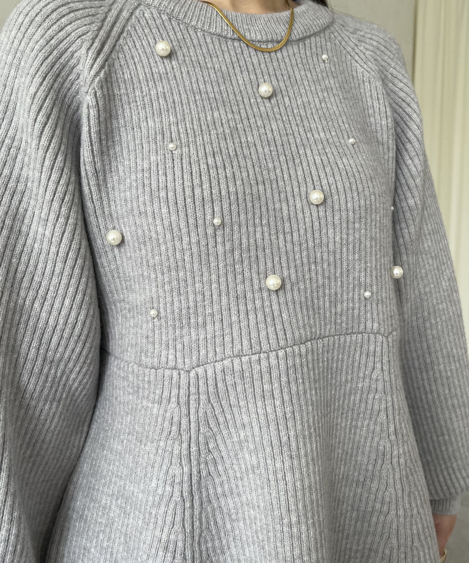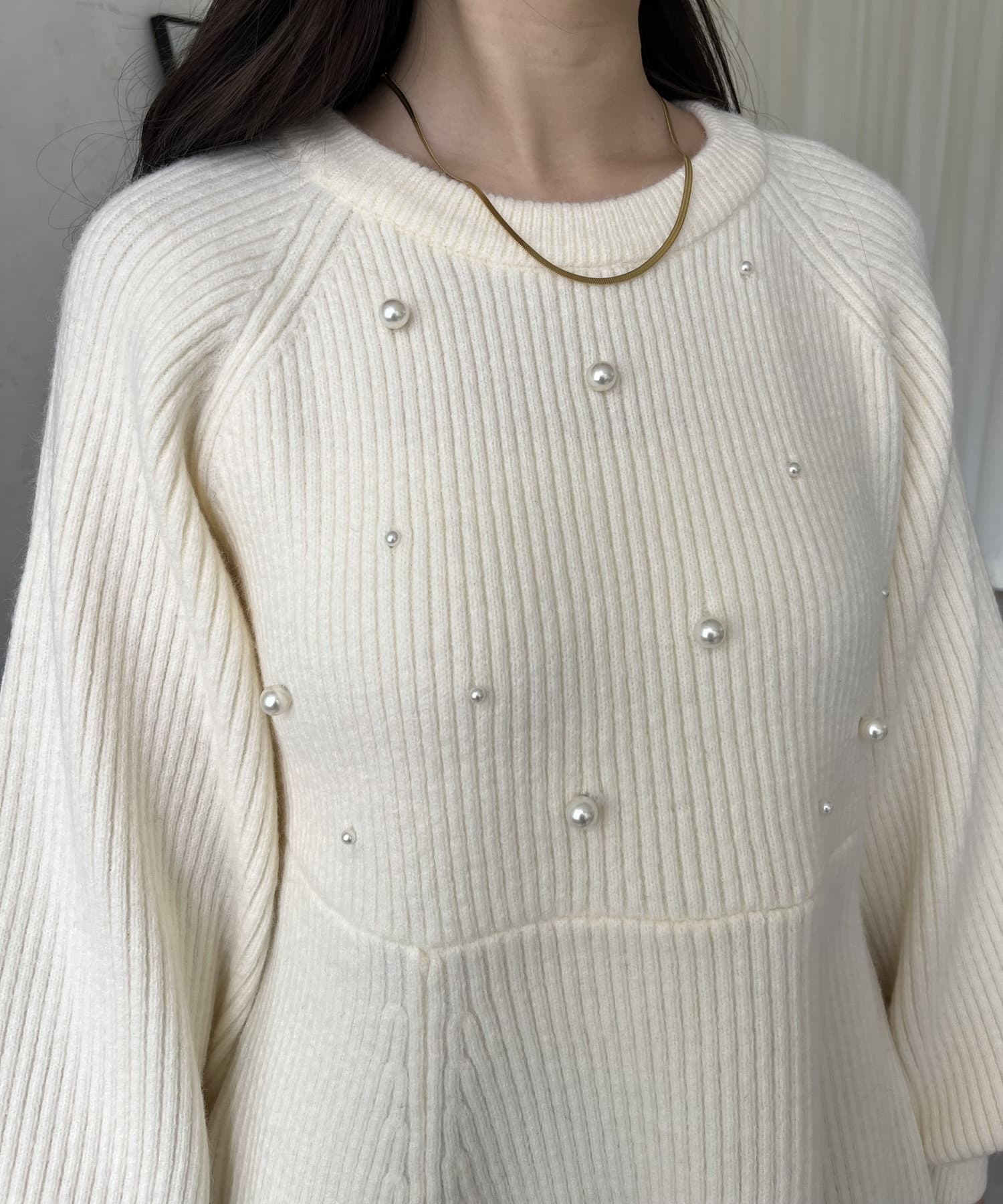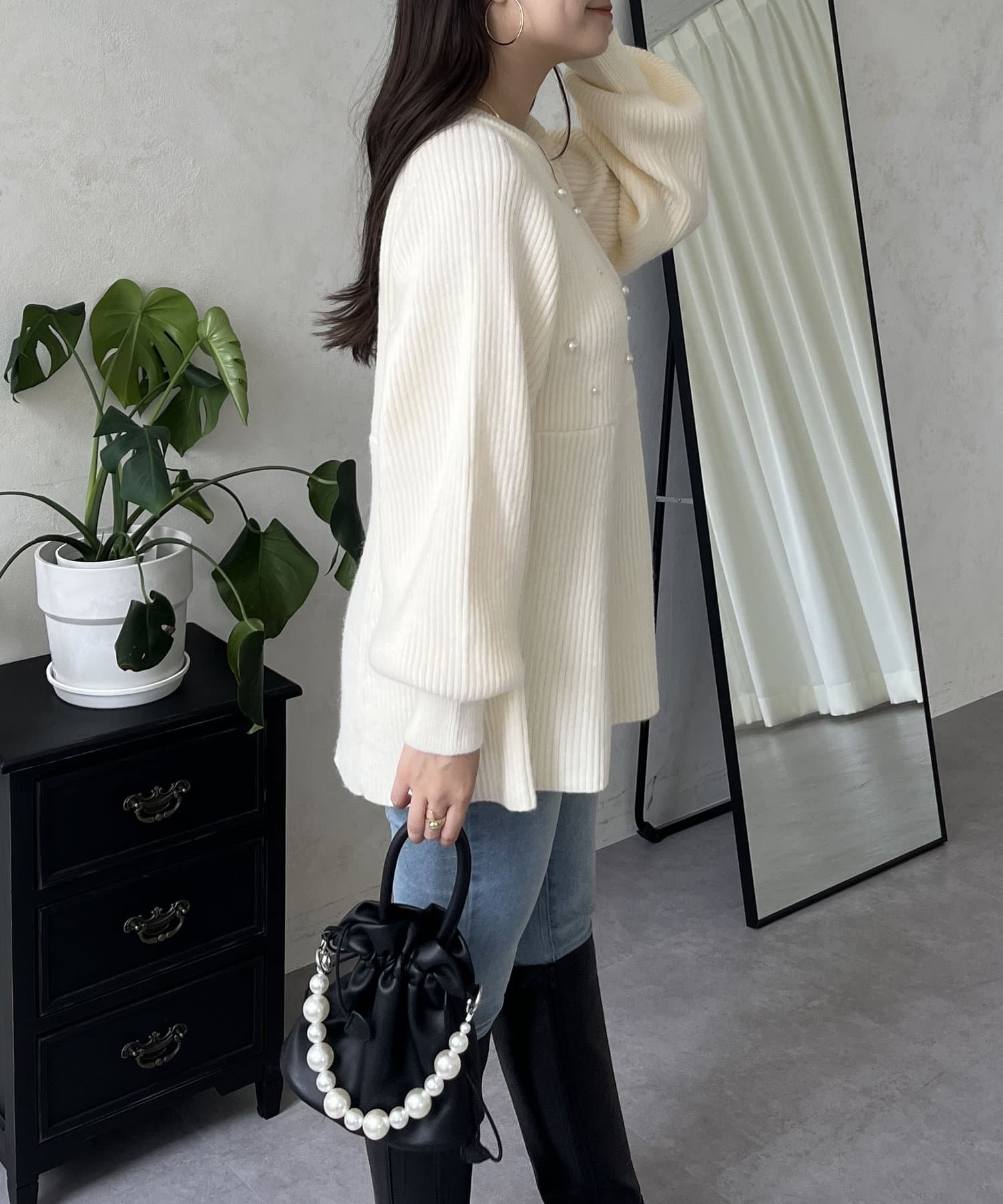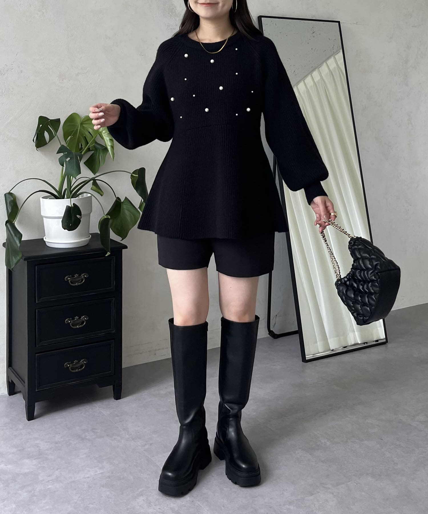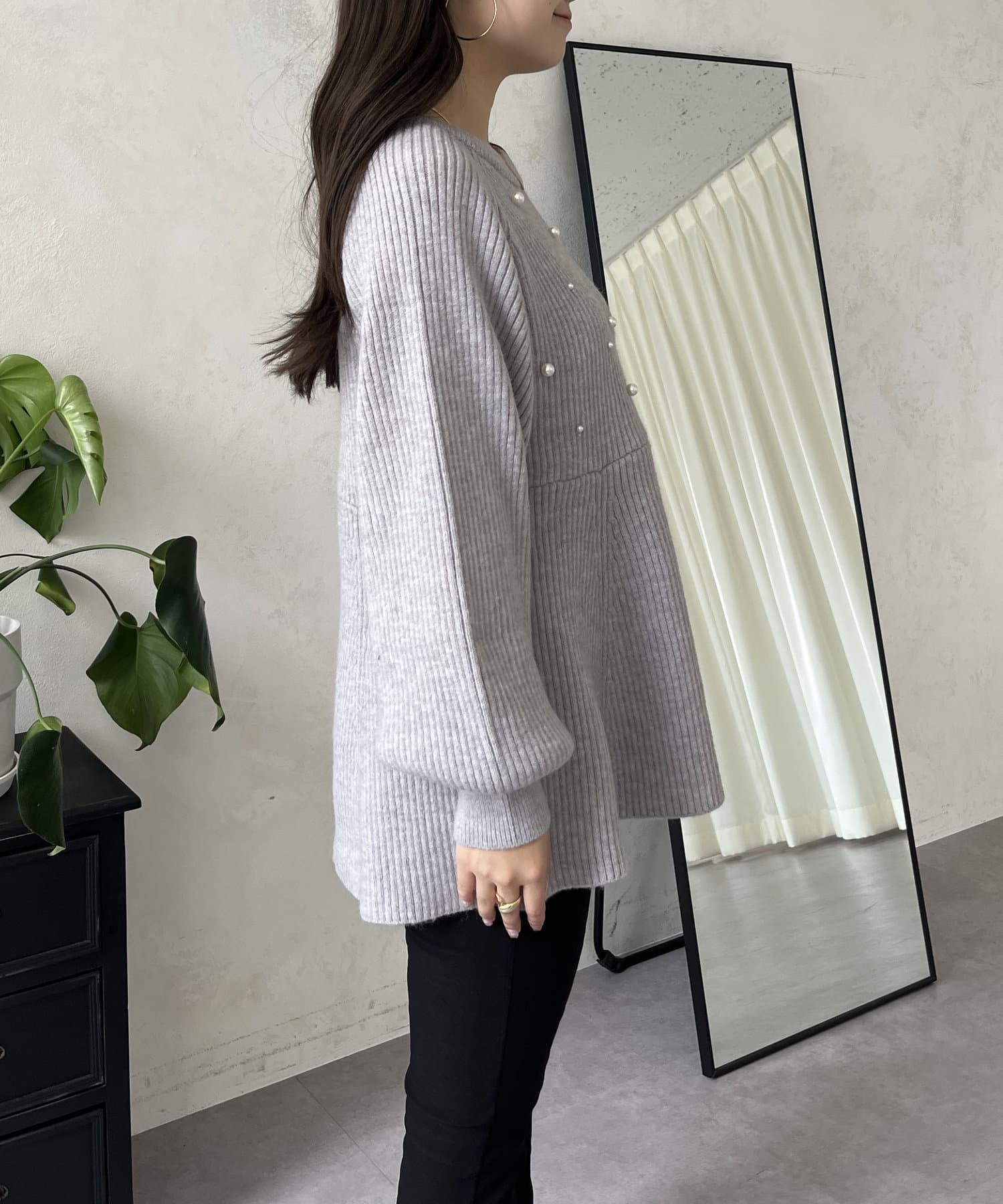 ペプラム/パール/ニット/体型カバー/着痩せ/大人可愛い