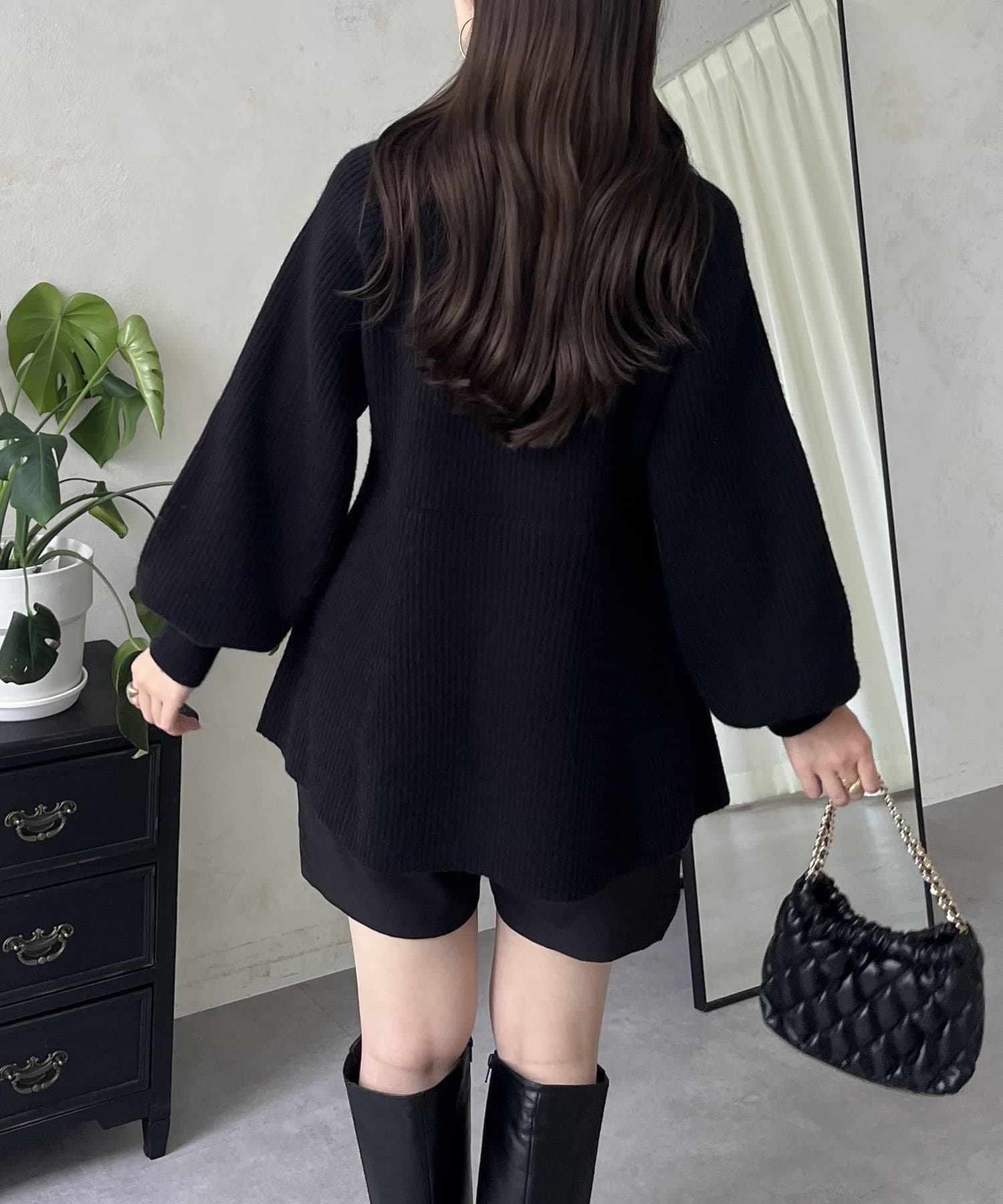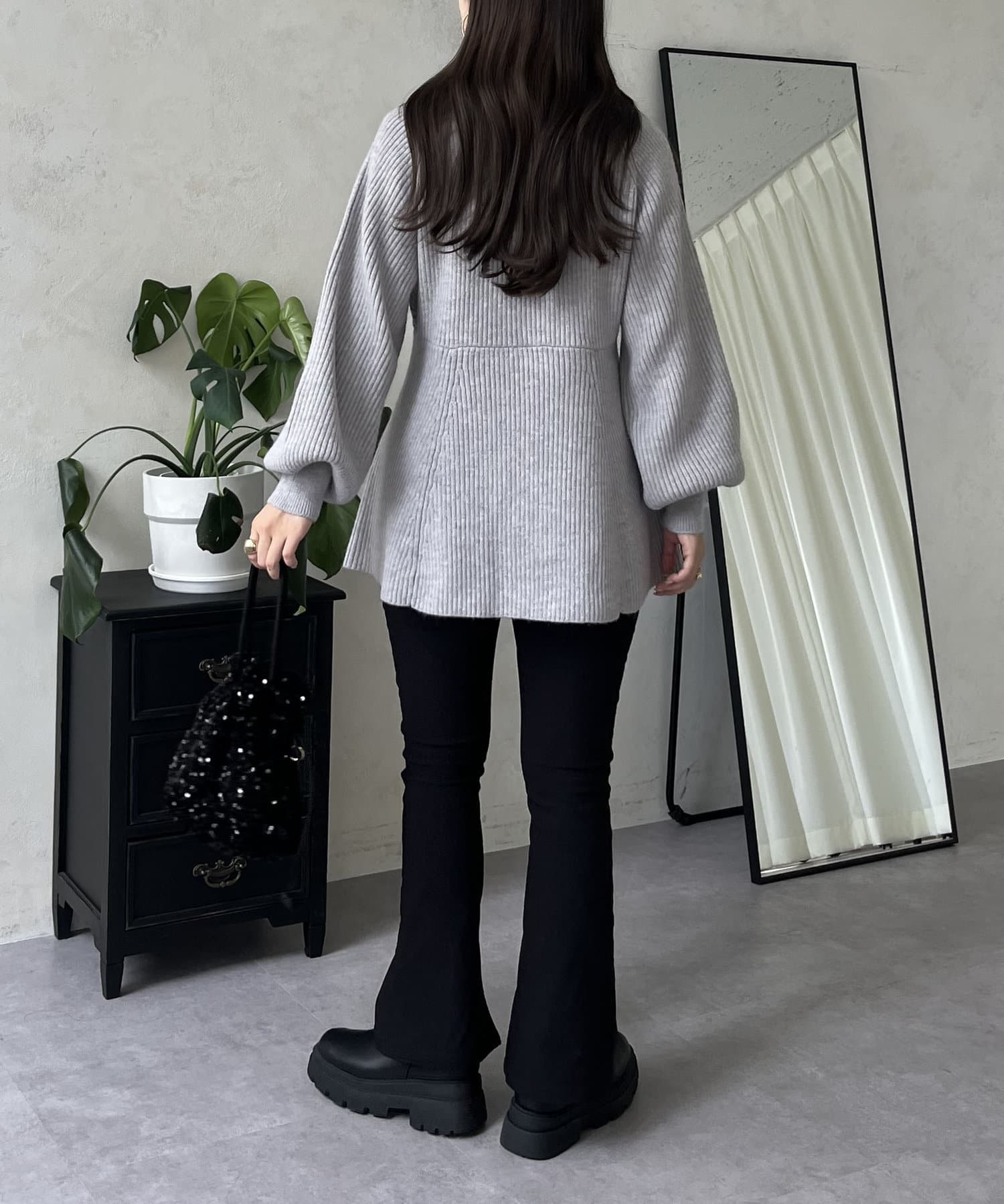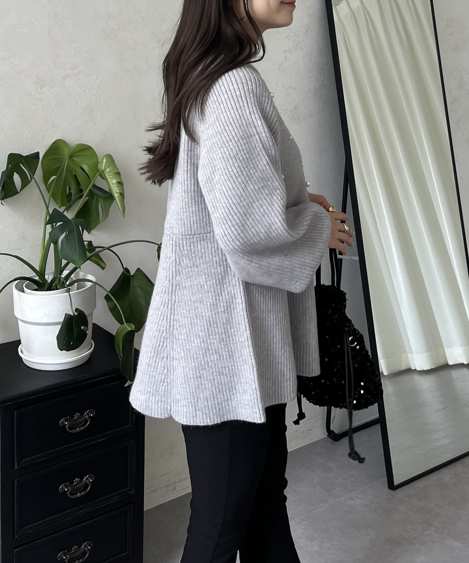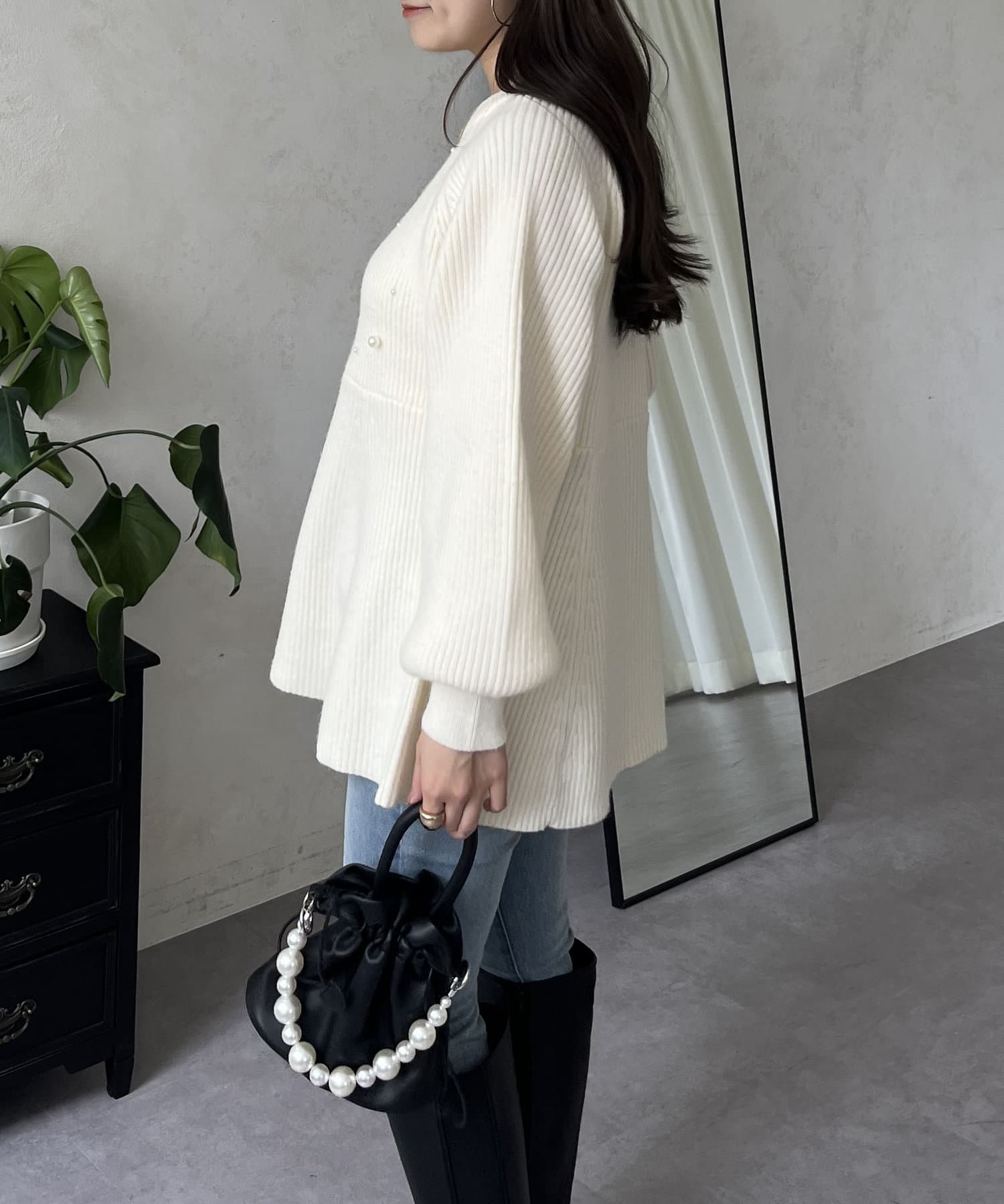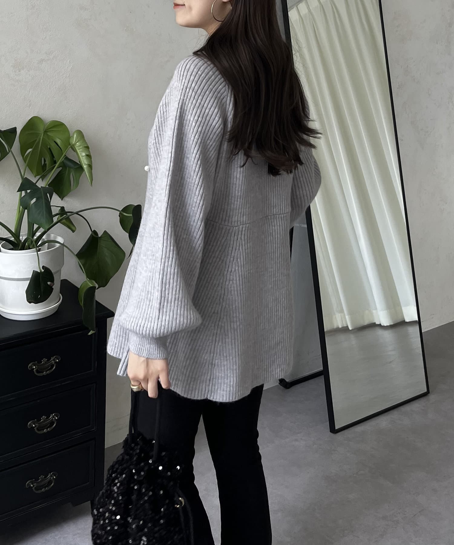 ペプラム/パール/ニット/体型カバー/着痩せ/大人可愛い