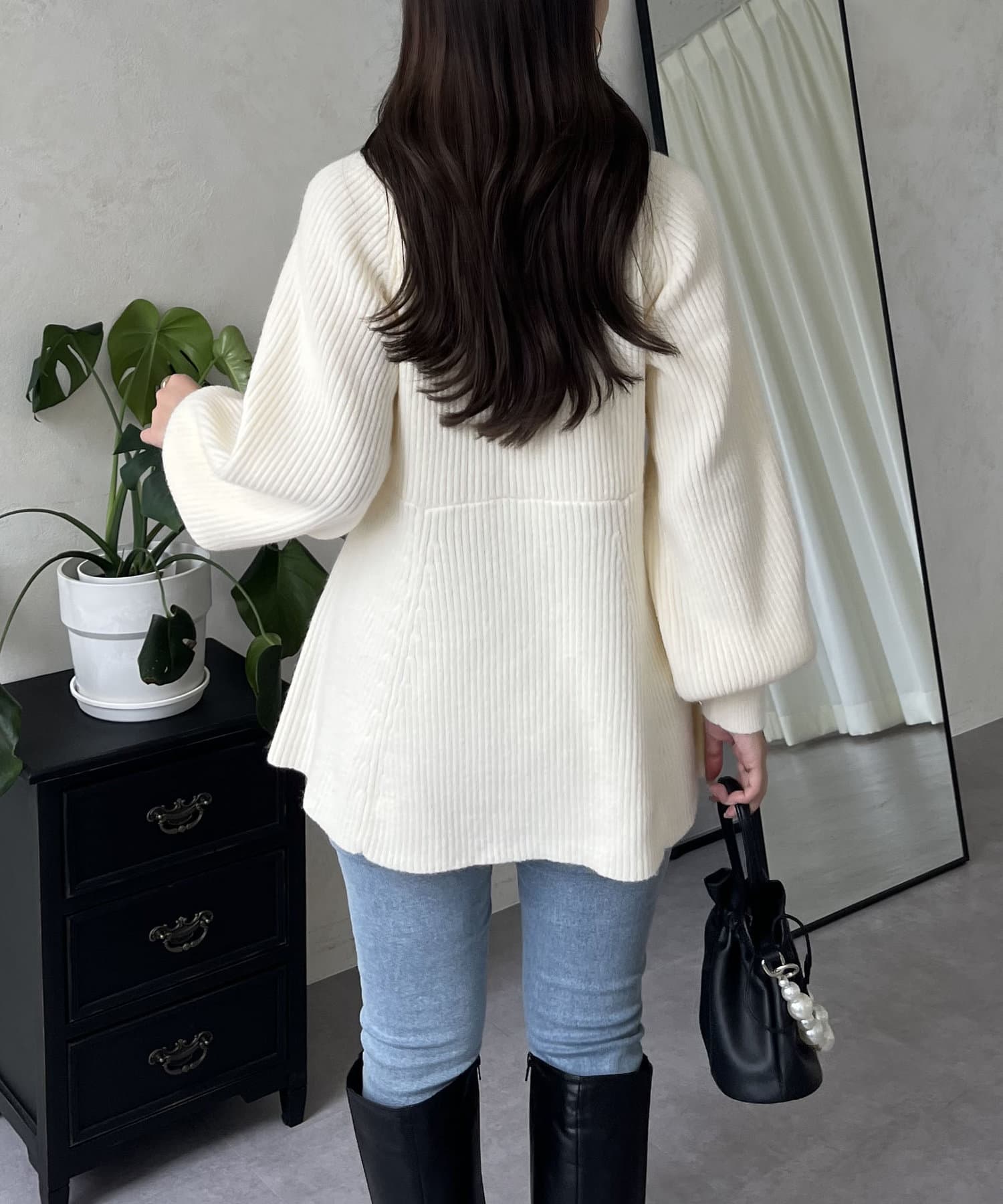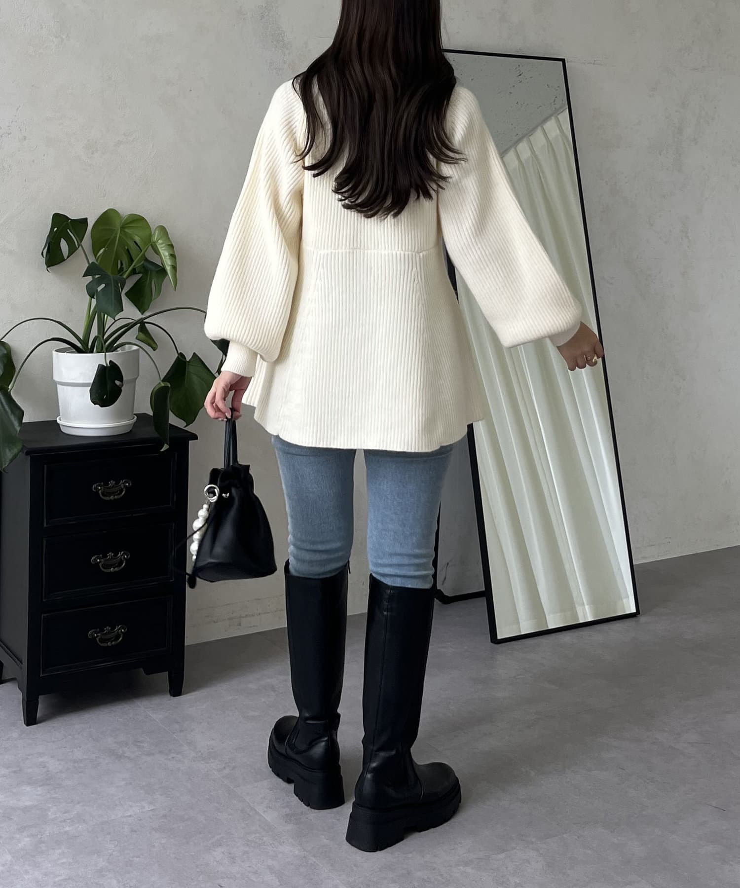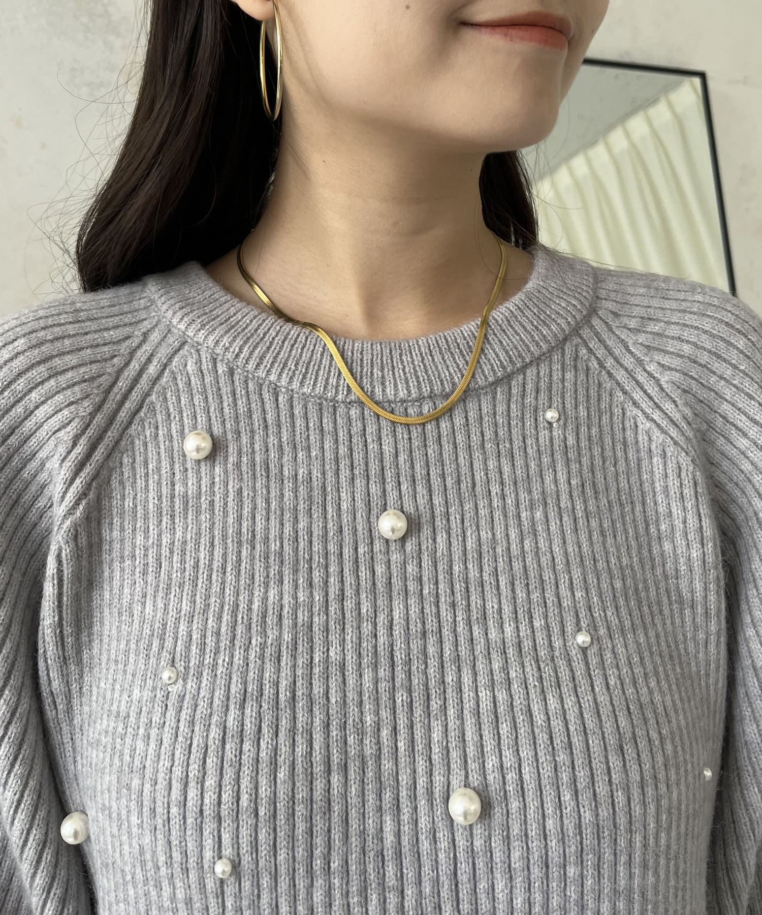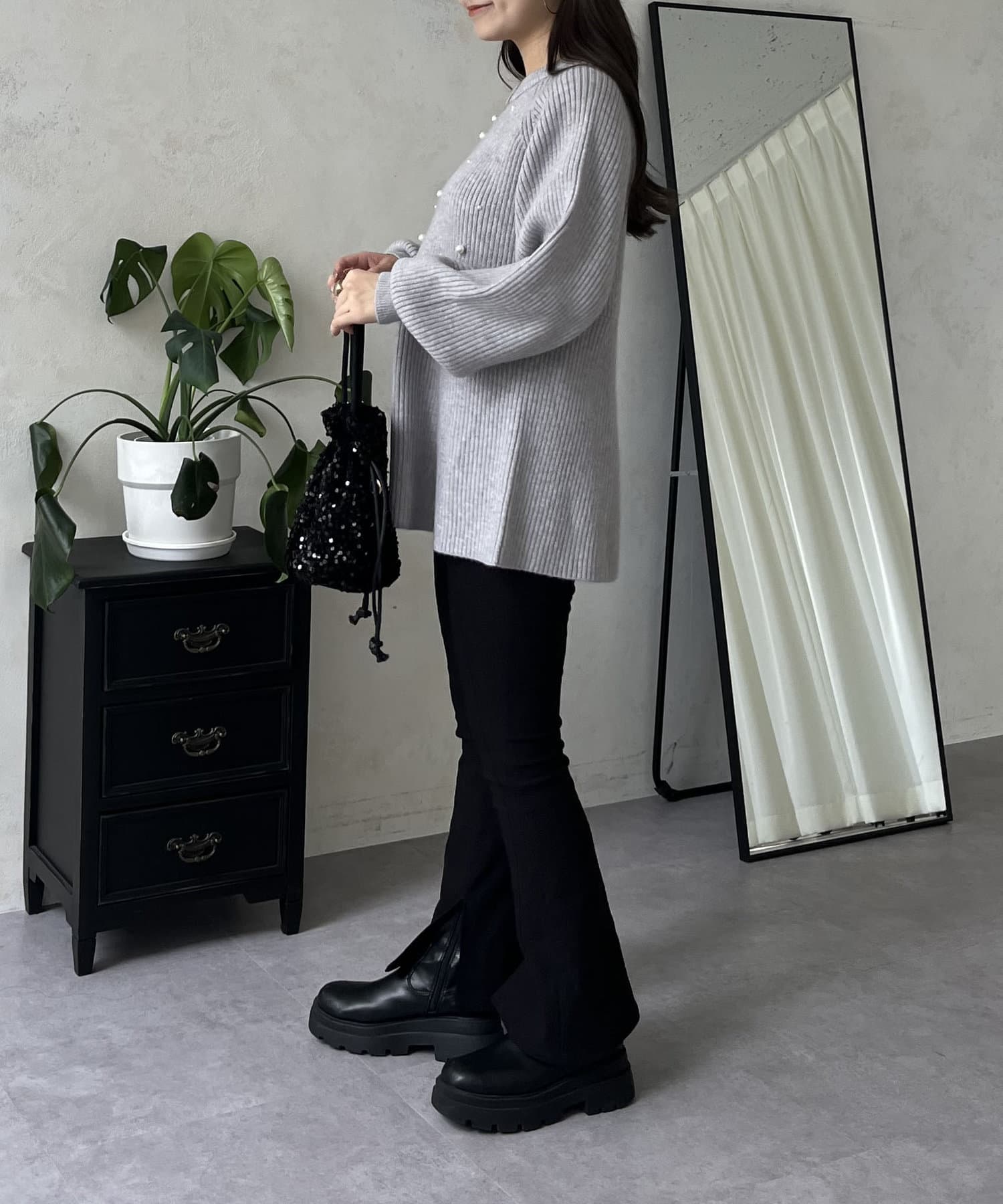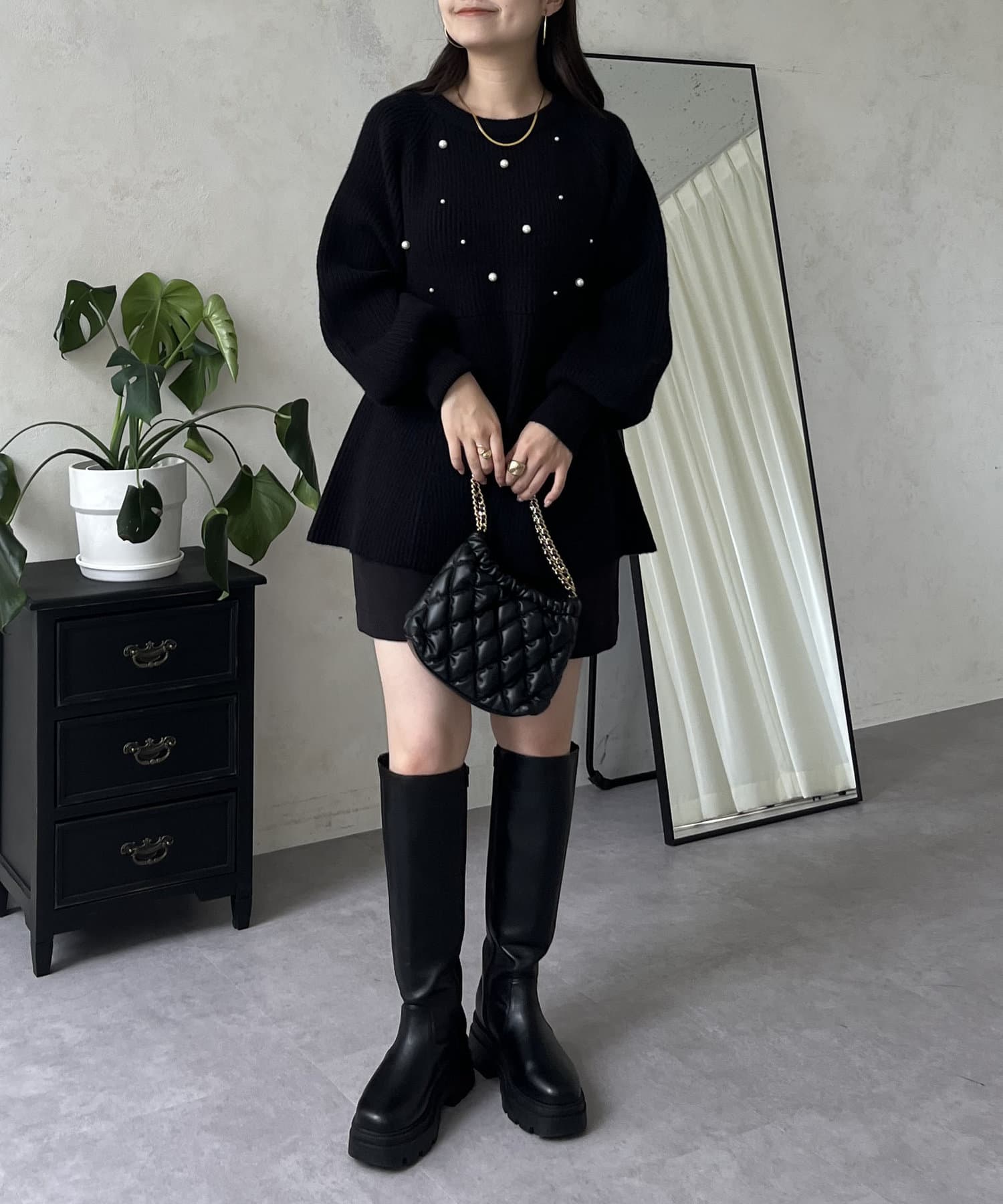 ペプラム/パール/ニット/体型カバー/着痩せ/大人可愛い