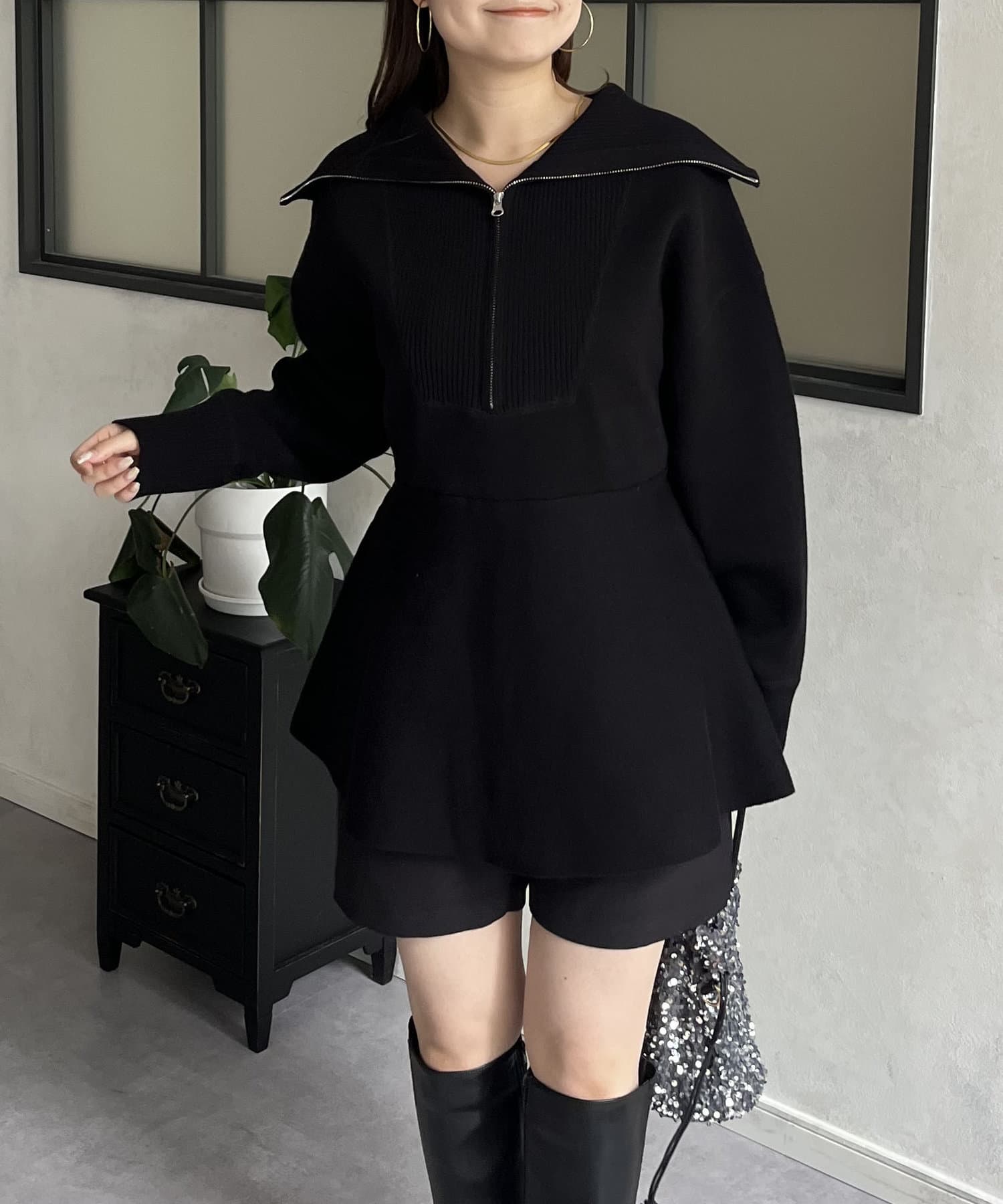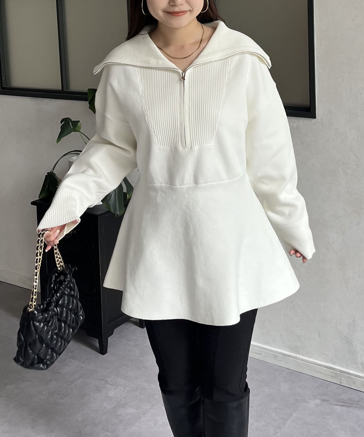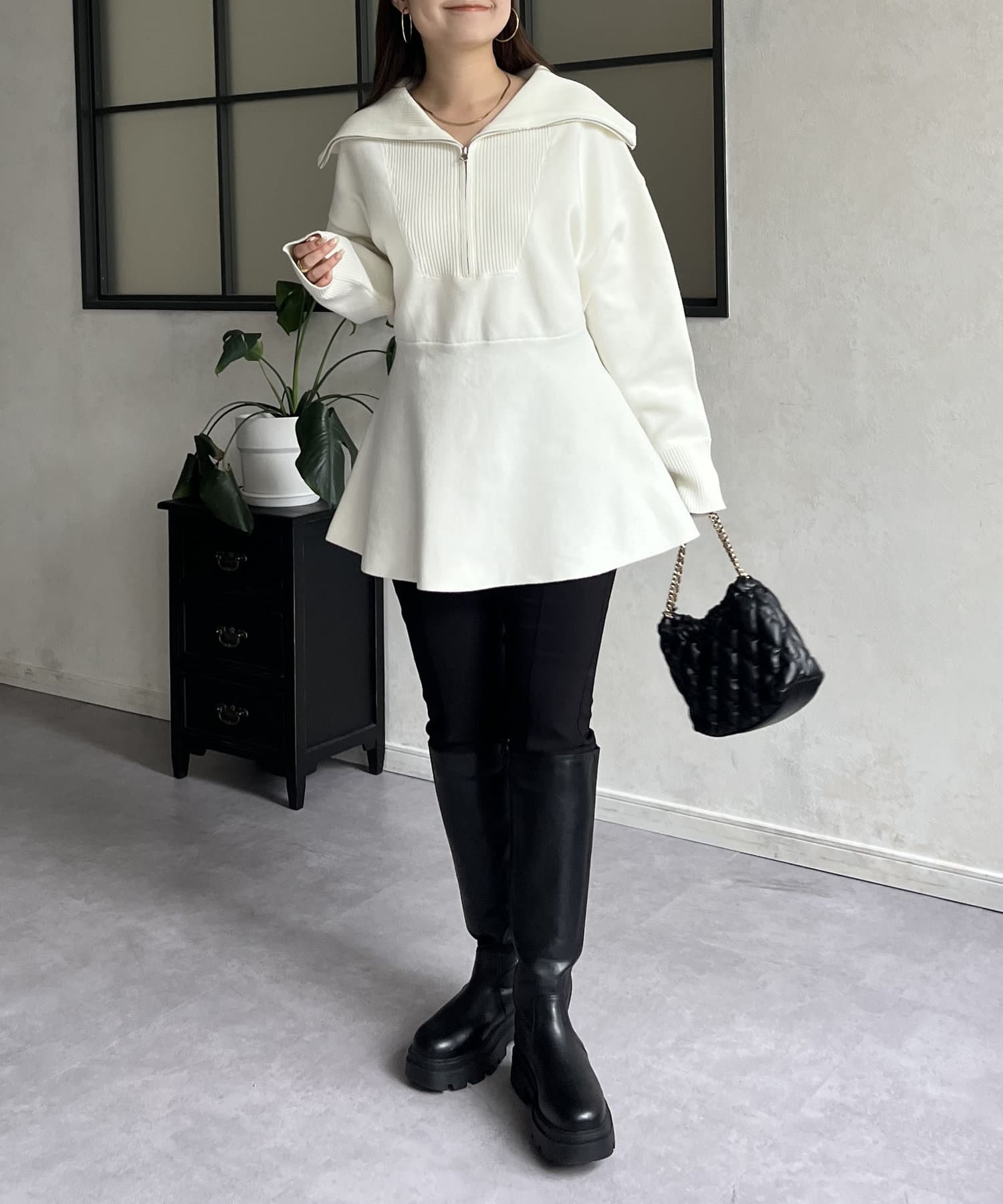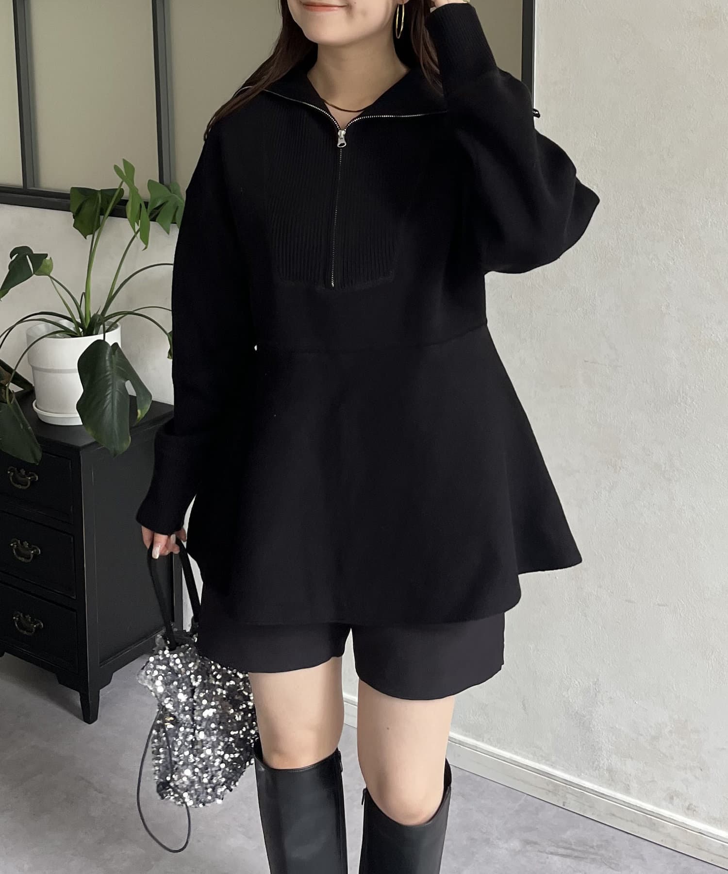 ハーフジップ/ペプラム/カジュアル/体型カバー