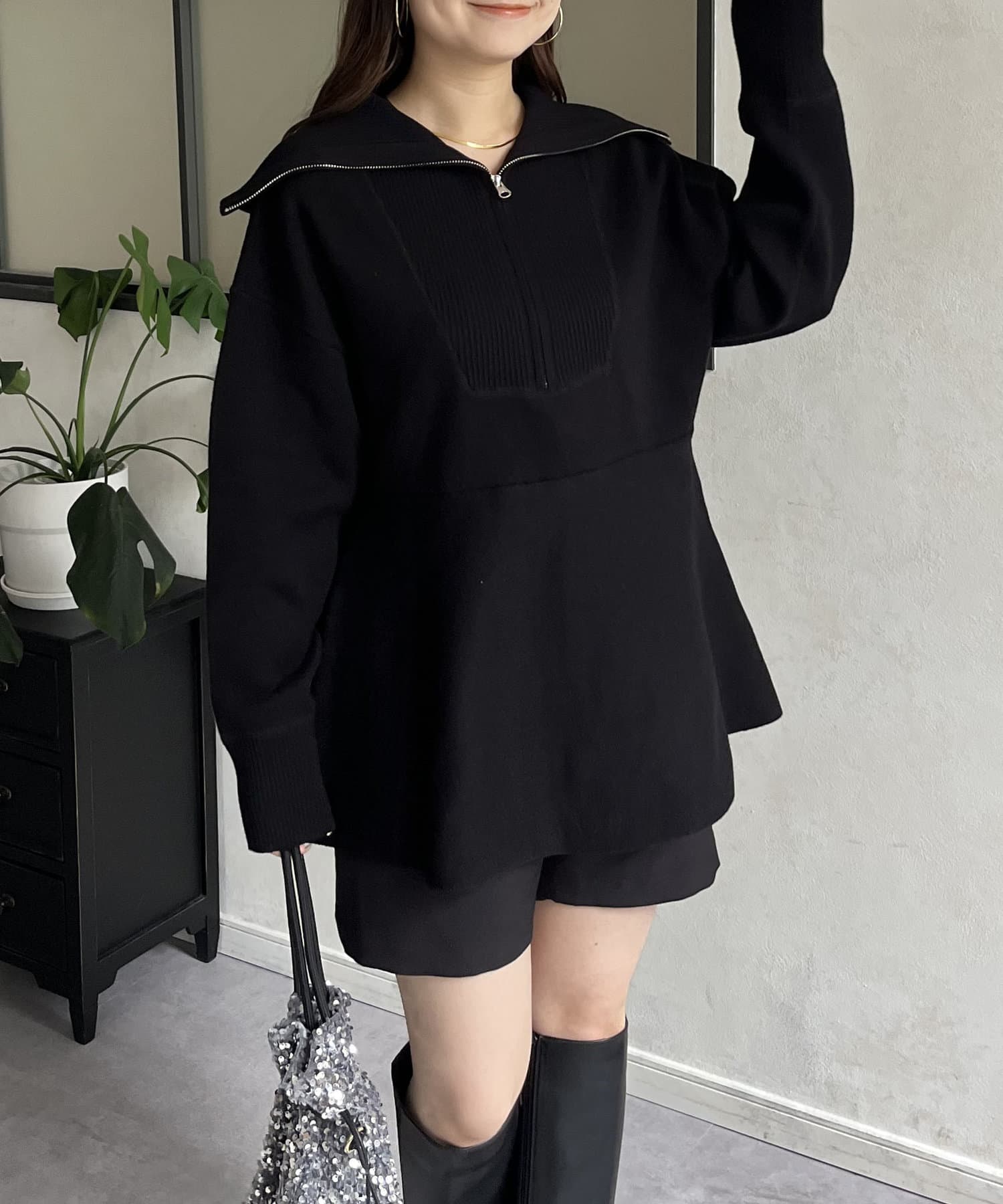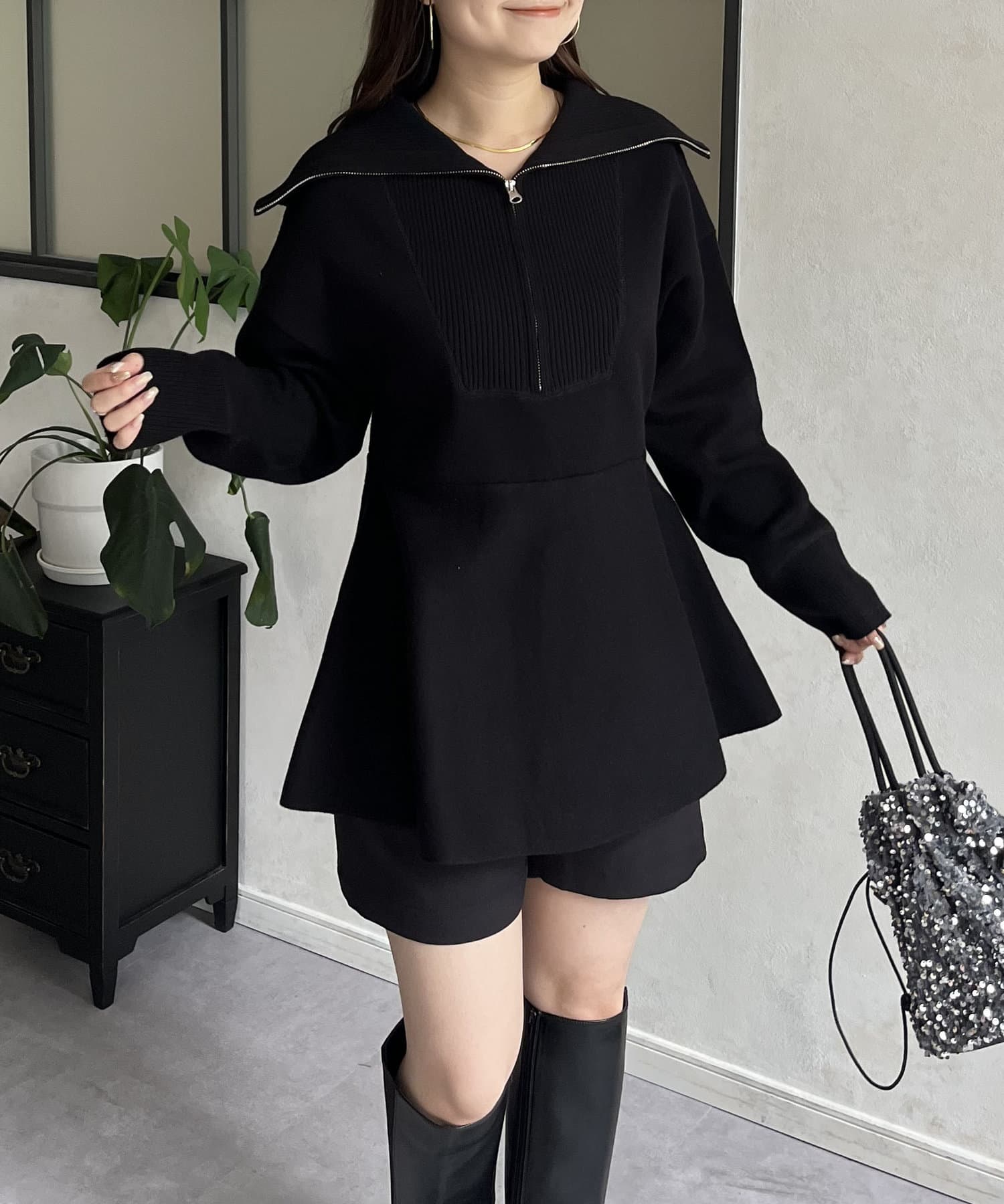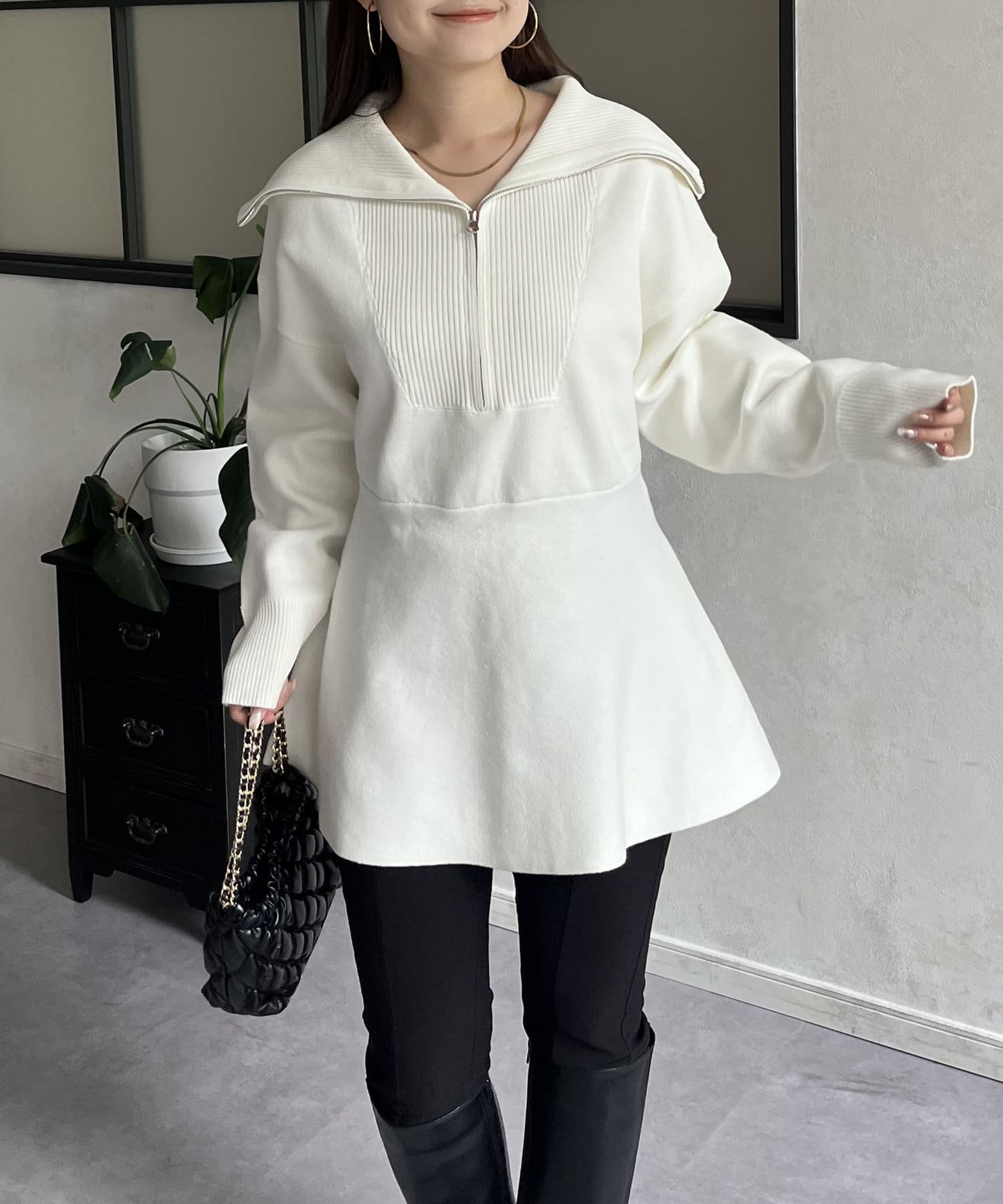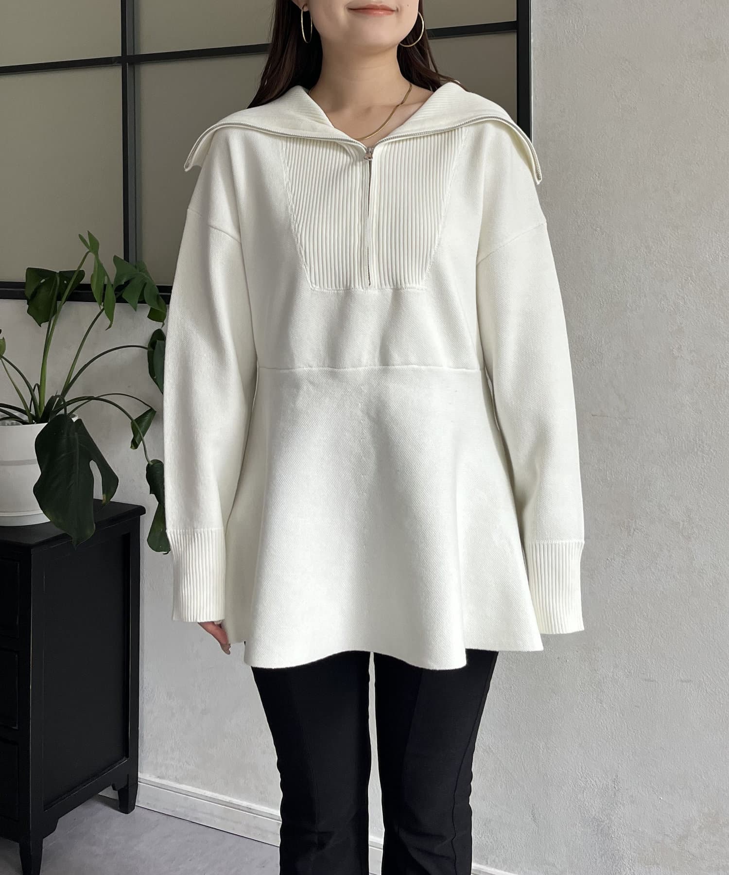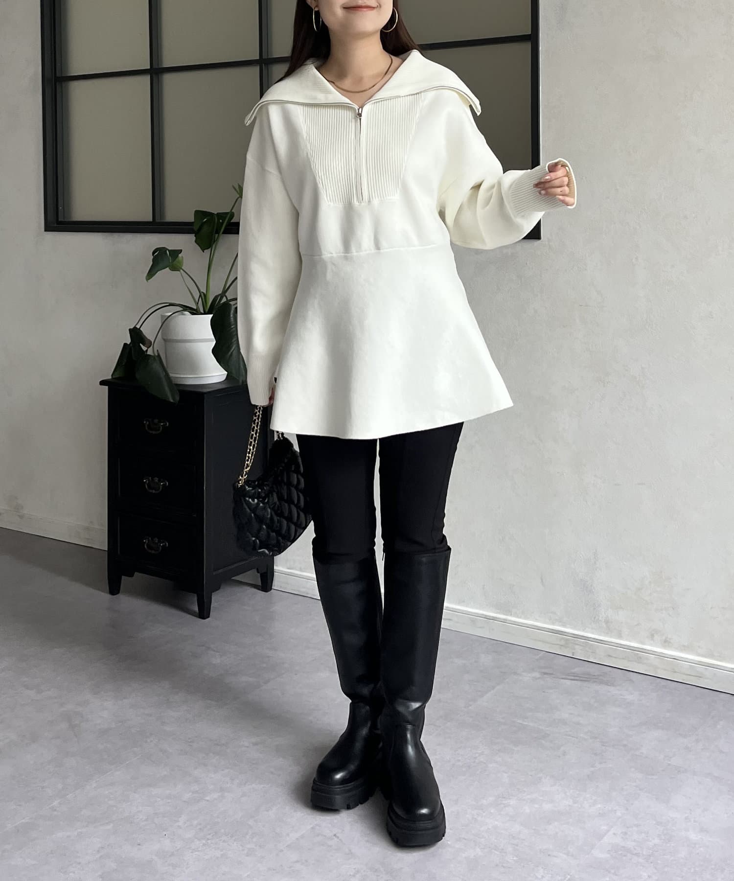 ハーフジップ/ペプラム/カジュアル/体型カバー