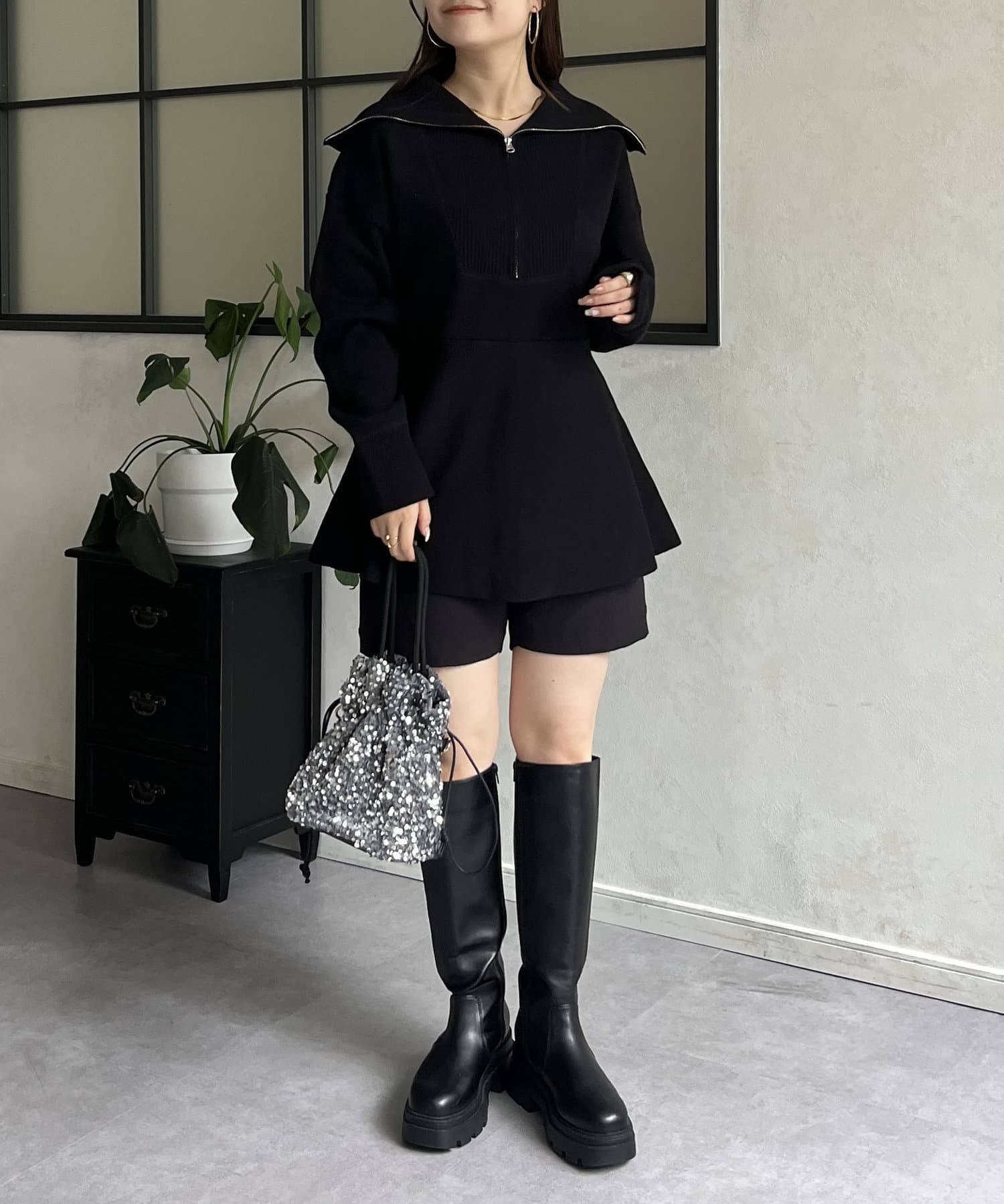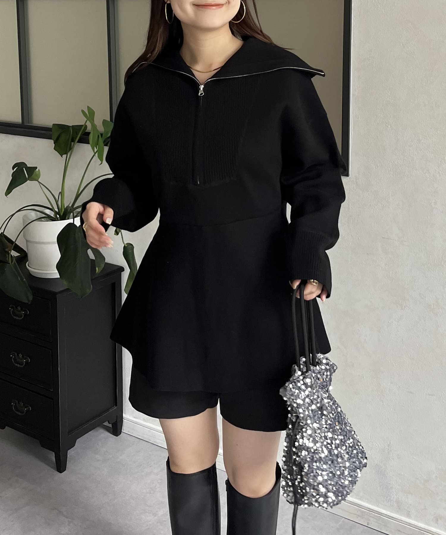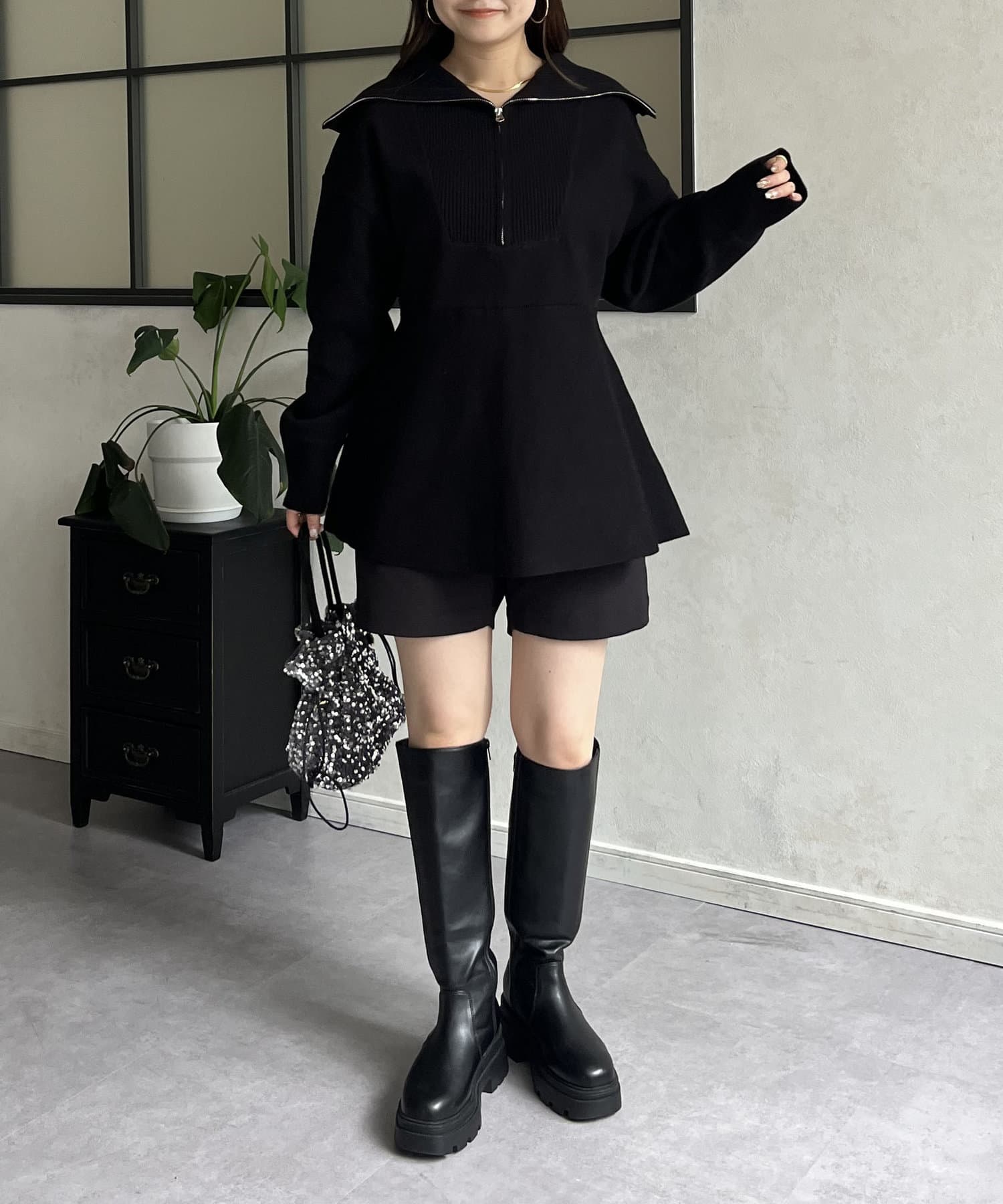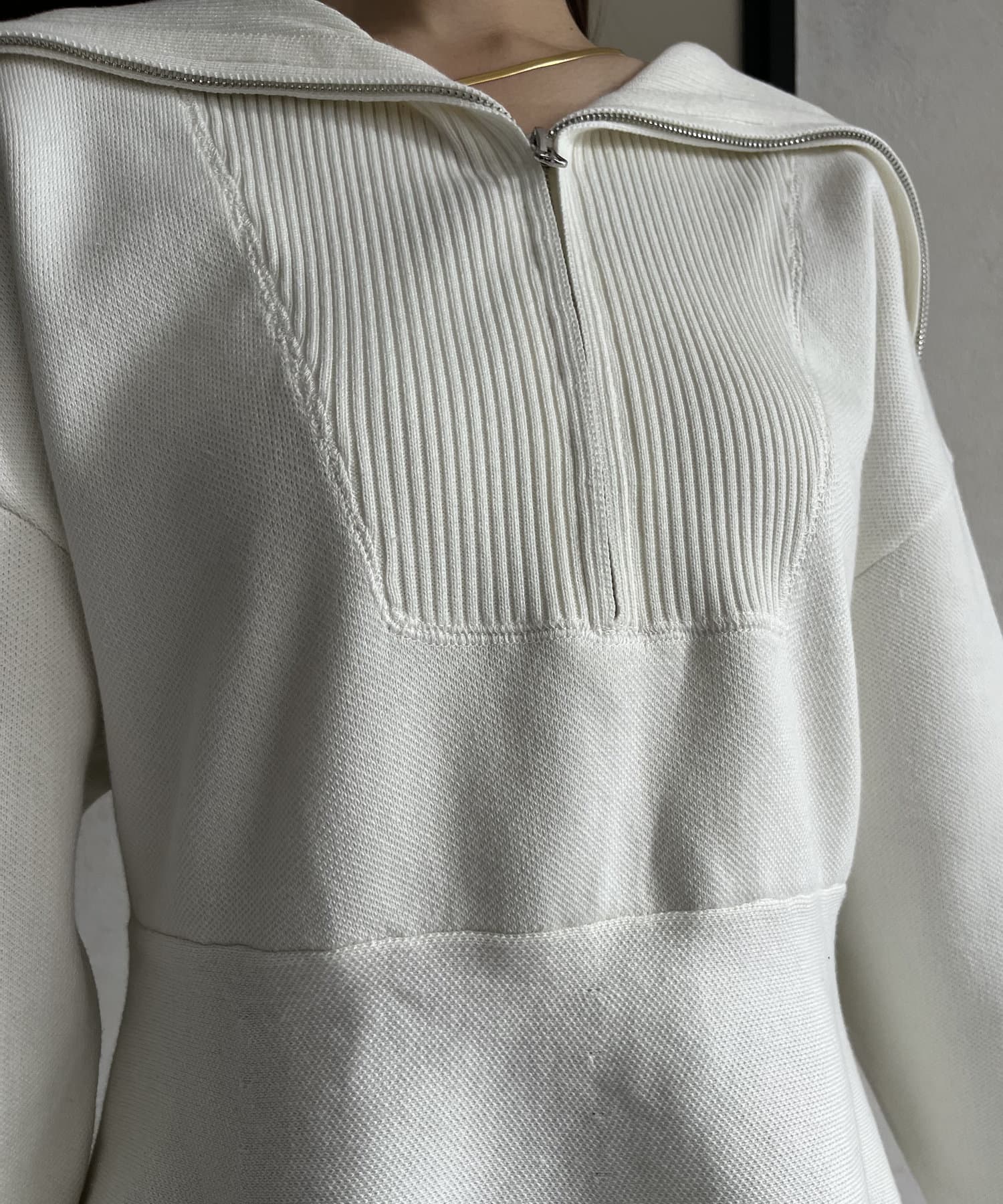 ハーフジップ/ペプラム/カジュアル/体型カバー