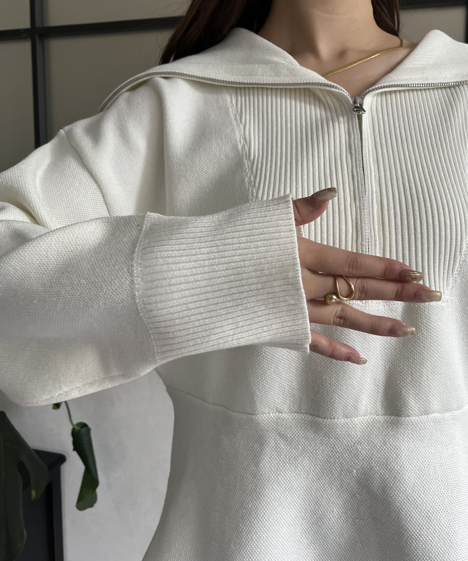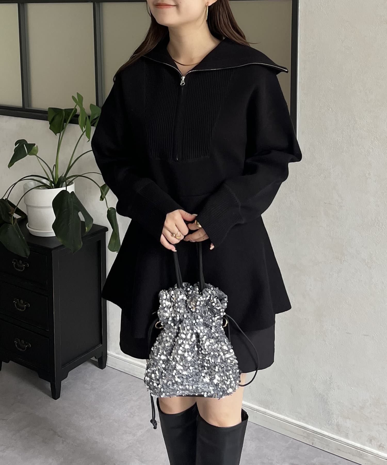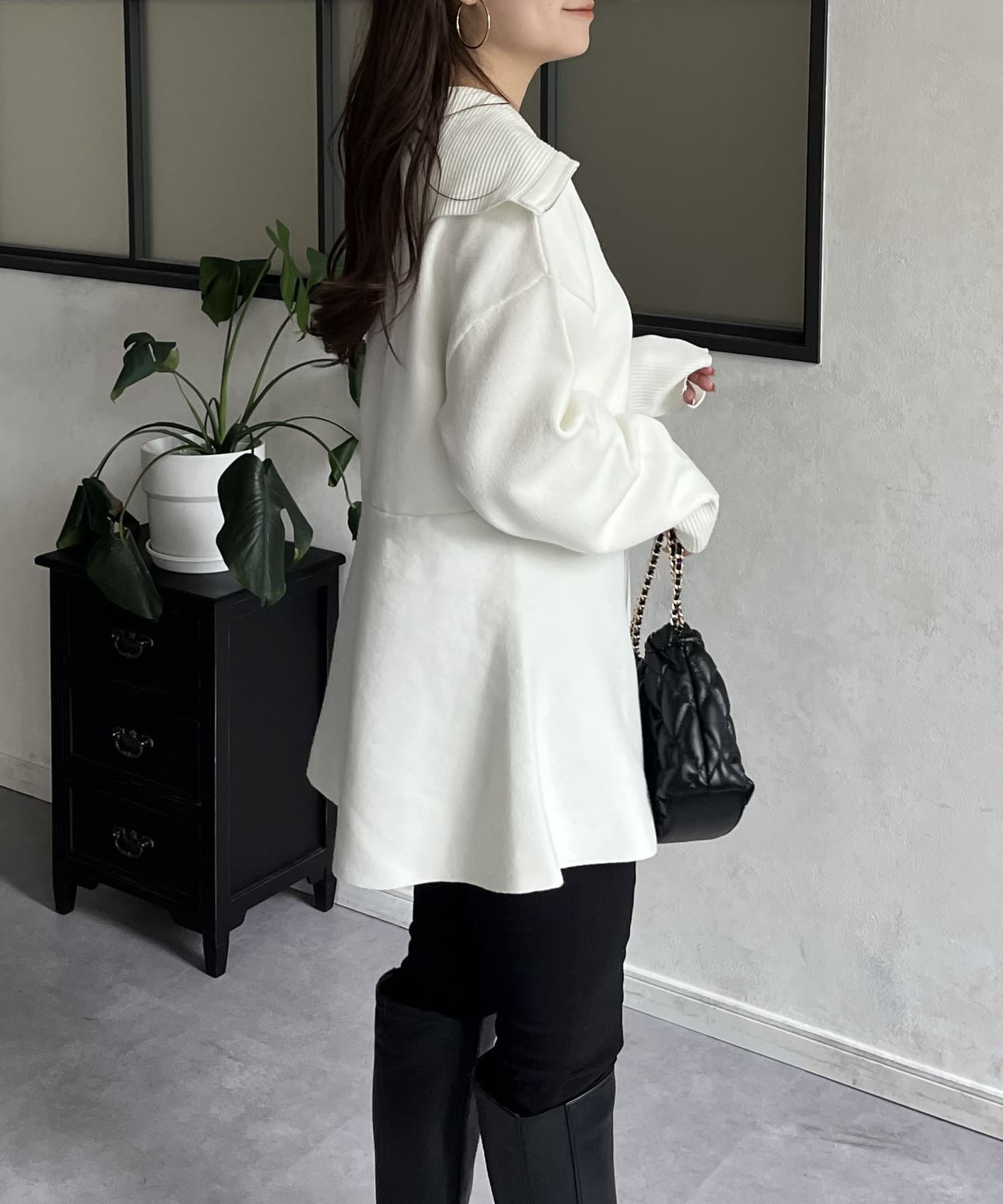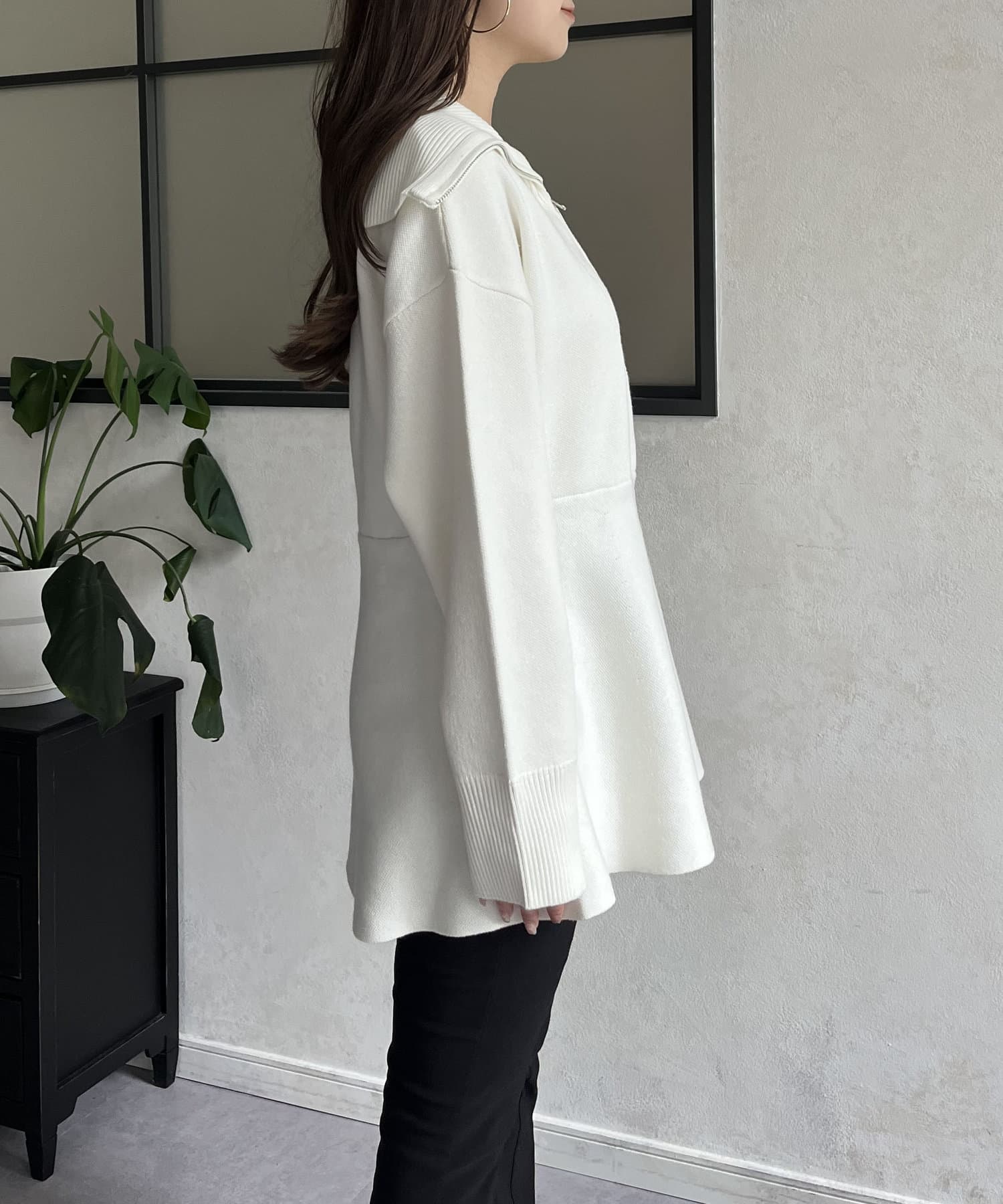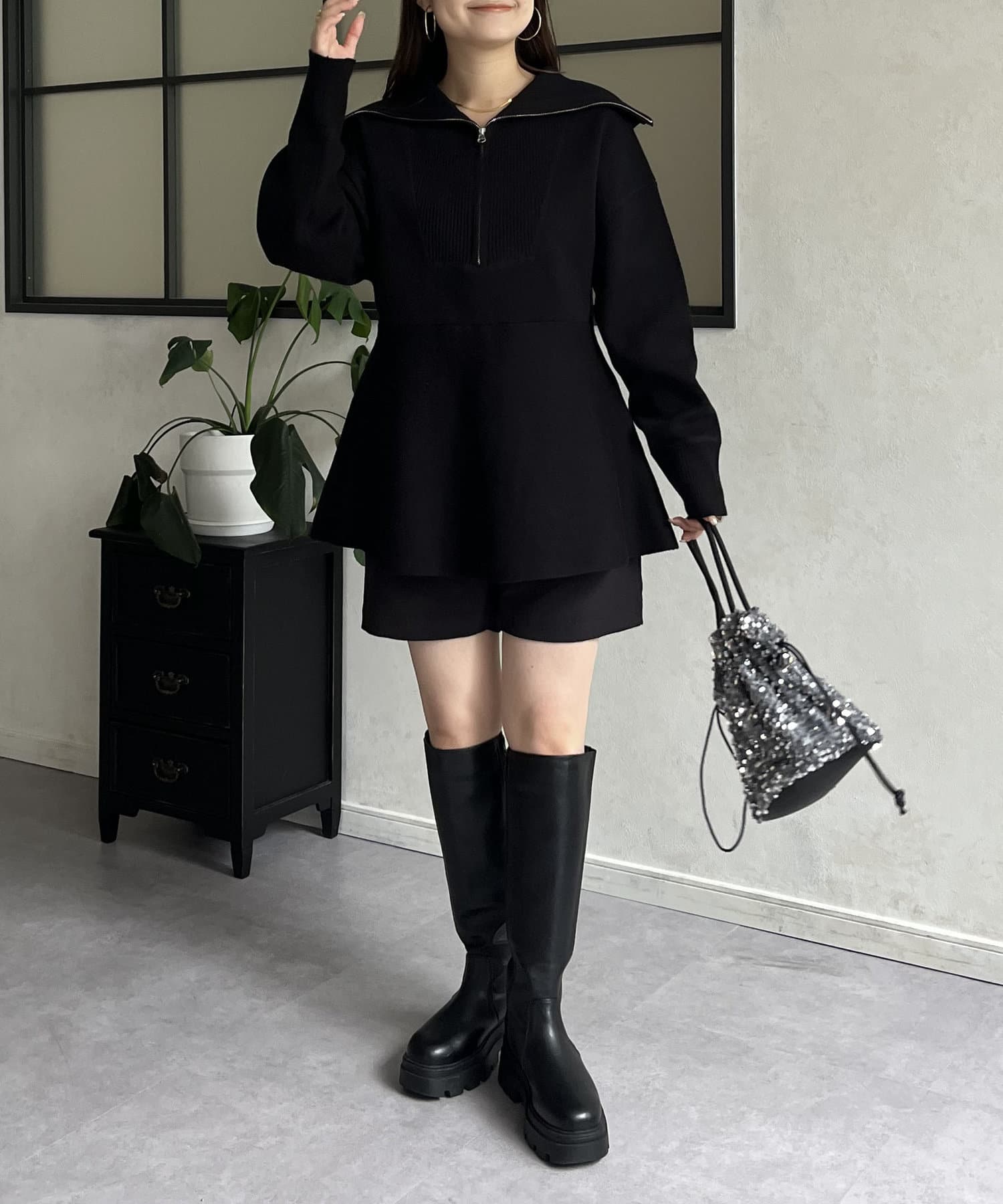 ハーフジップ/ペプラム/カジュアル/体型カバー