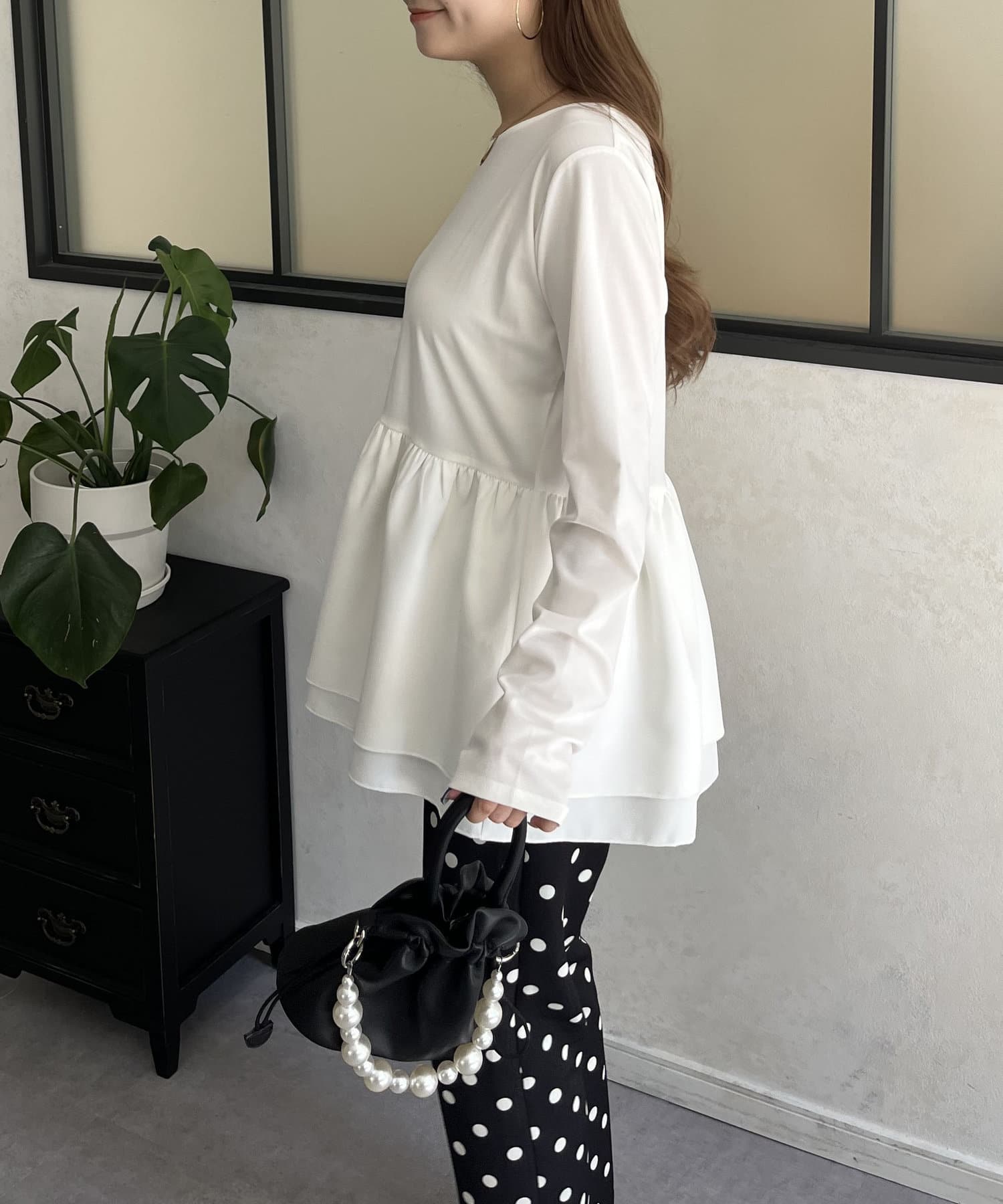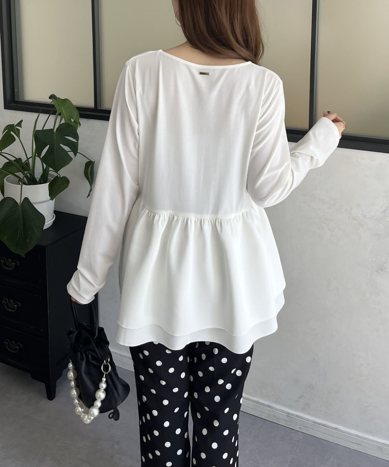 • prose verse(プロズヴェール) バックメタルレイヤードペプラムロンT