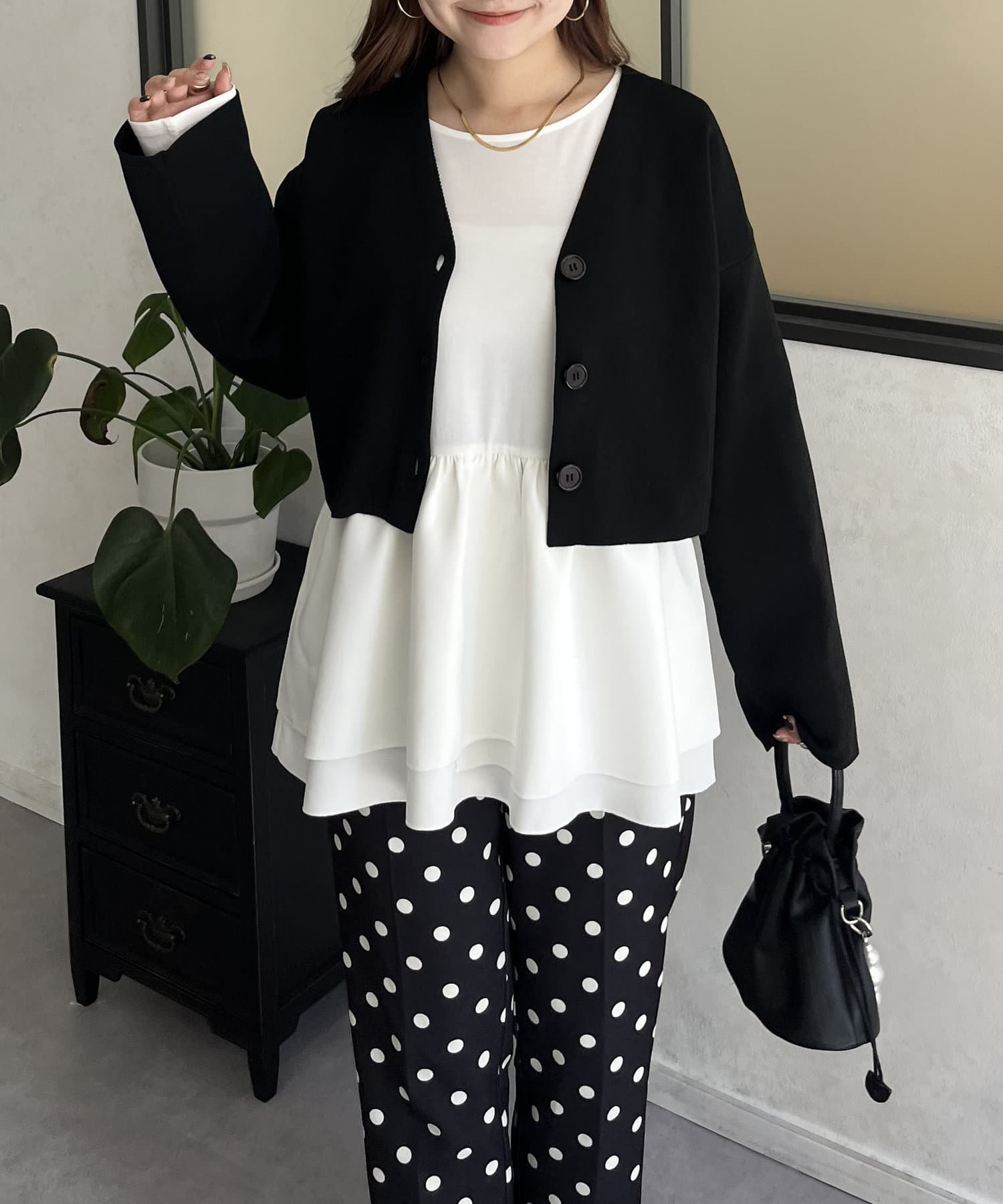 ●1枚で着てもビスチェやカーディガンを重ねても◎