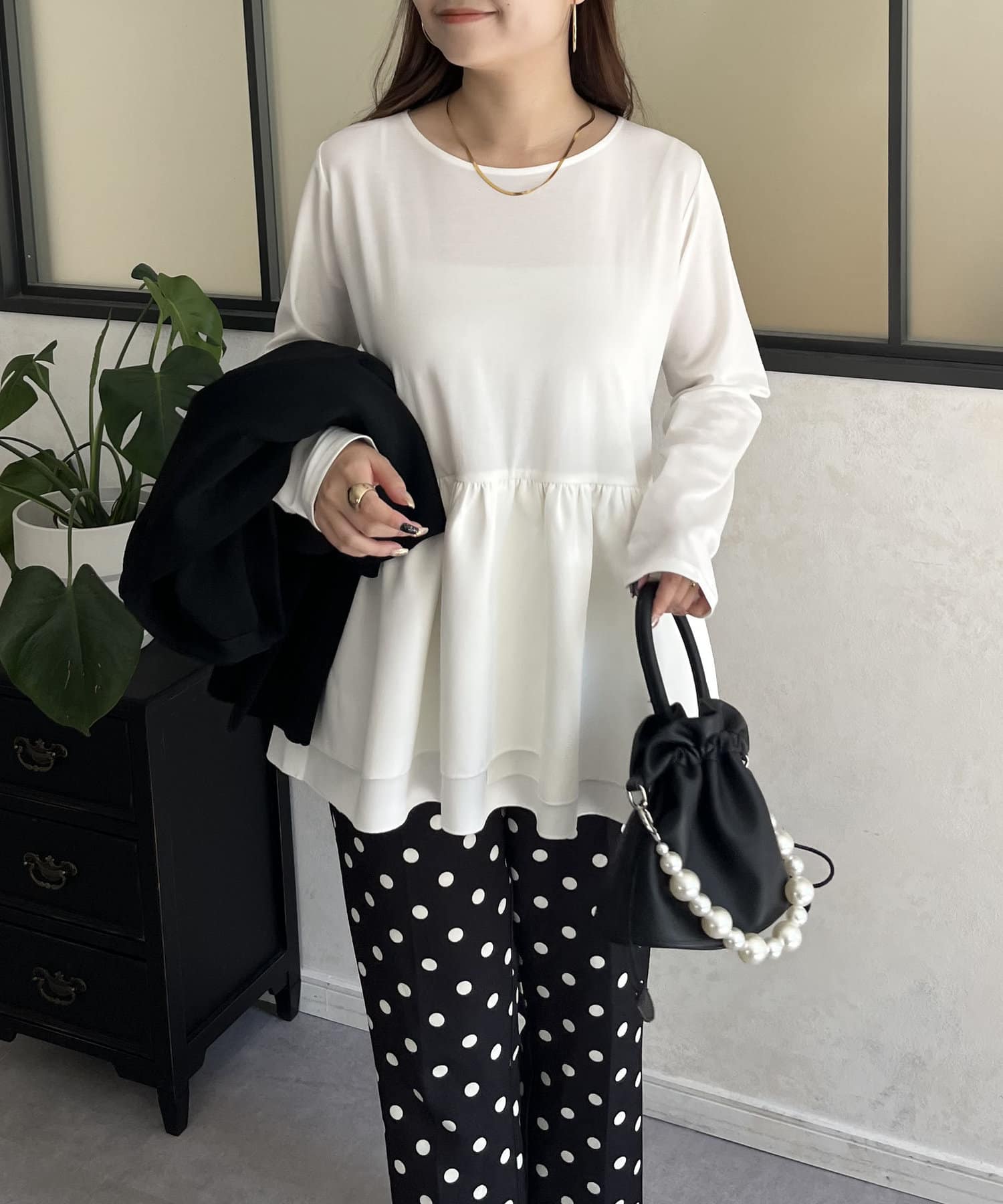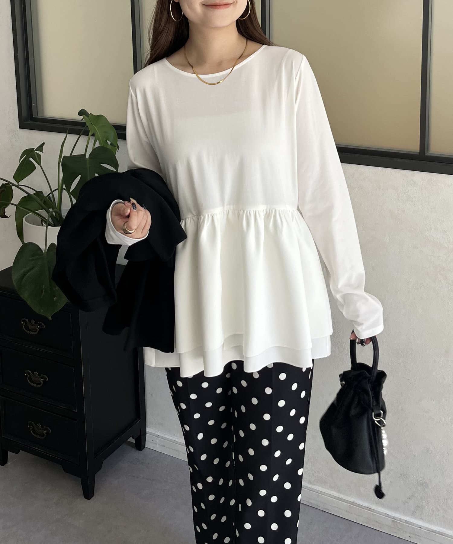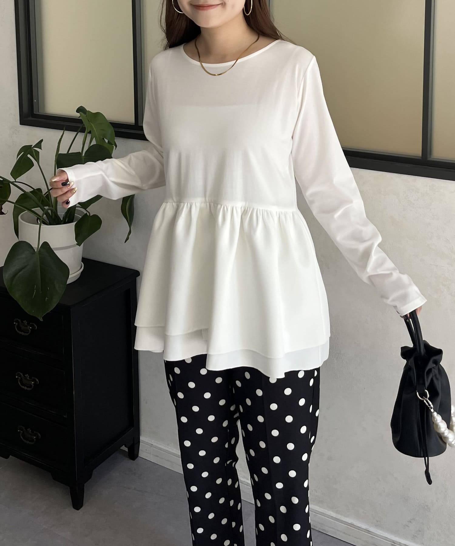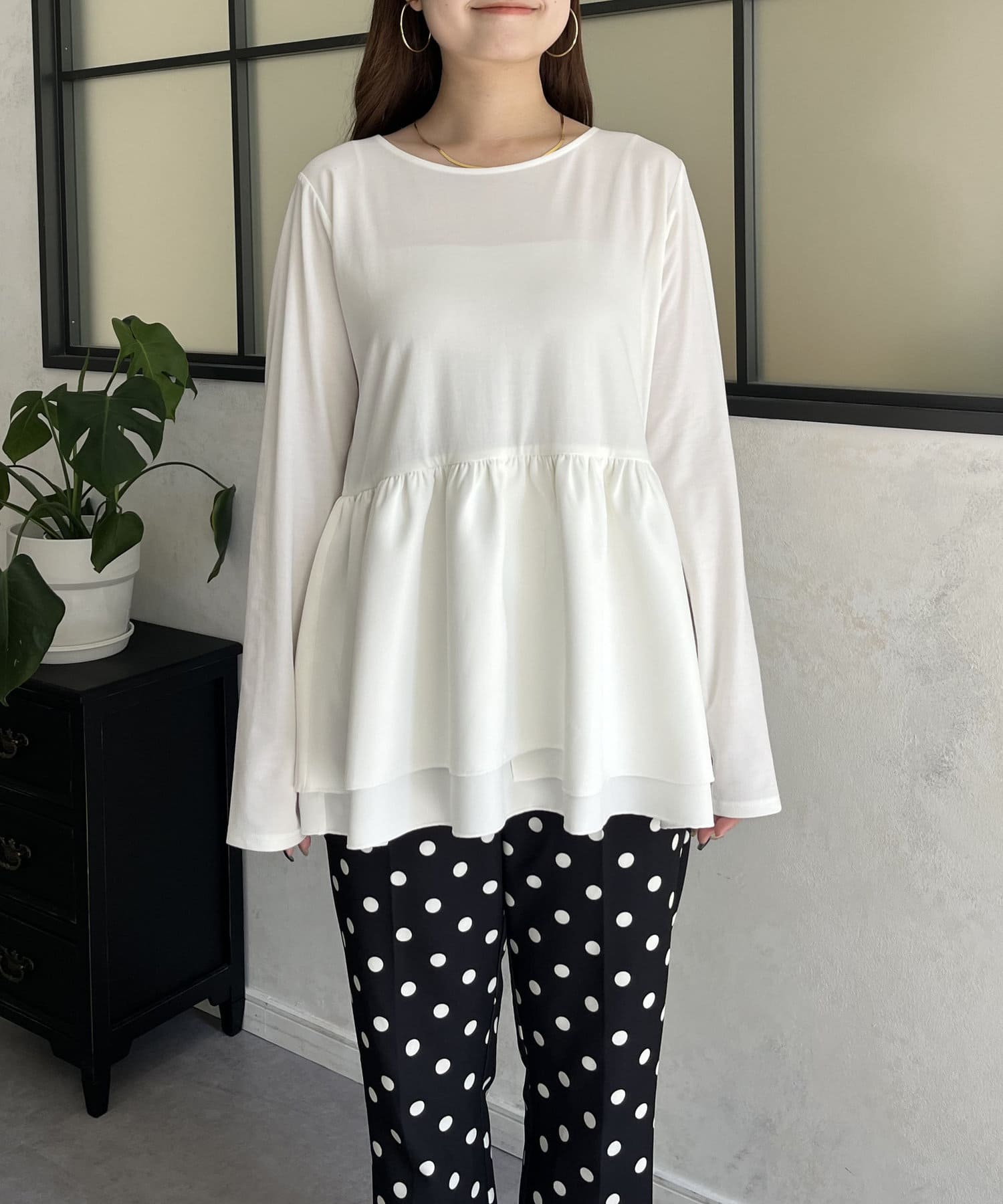 ペプラム/ロンT/きれいめカジュアル/大人カジュアル