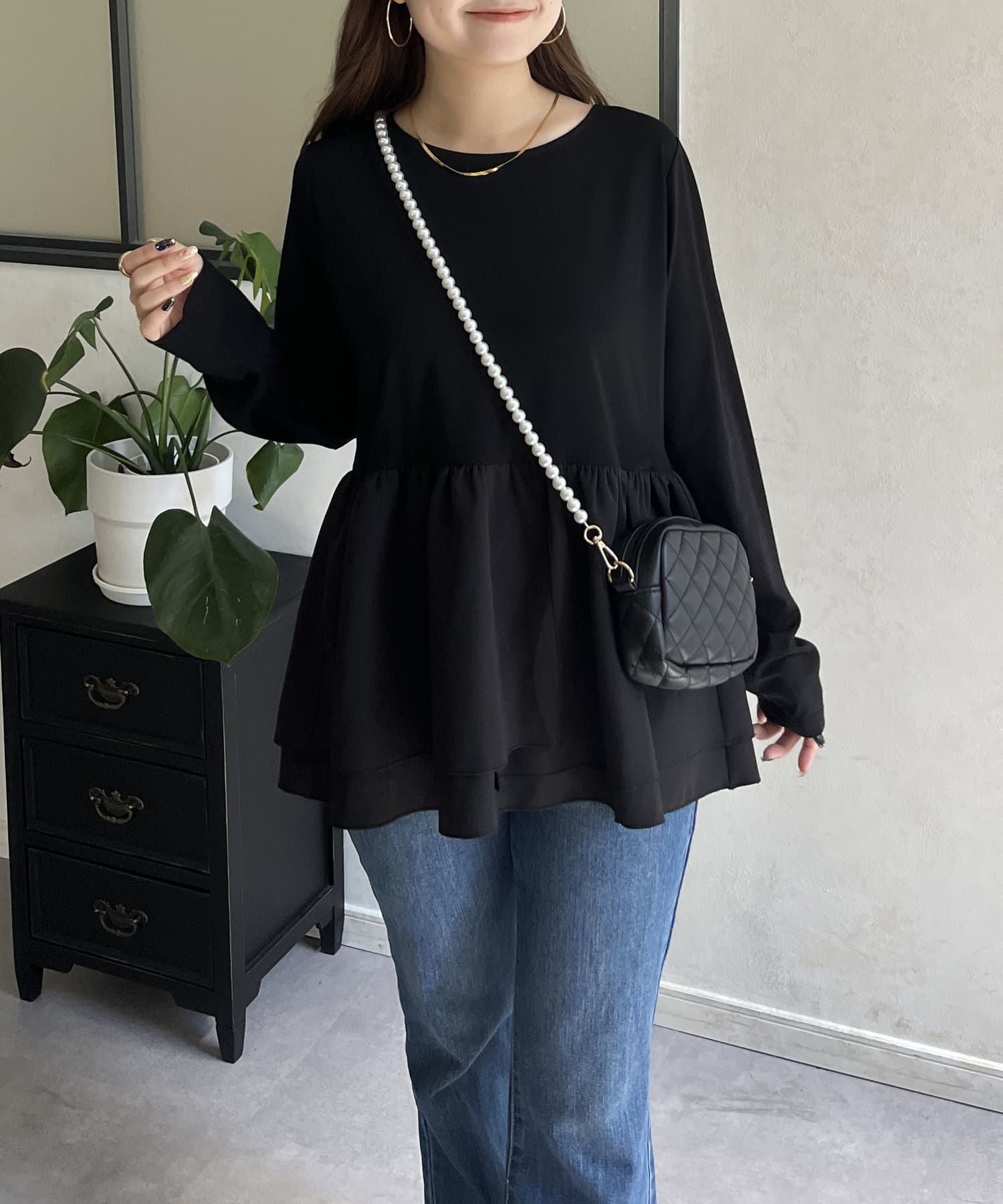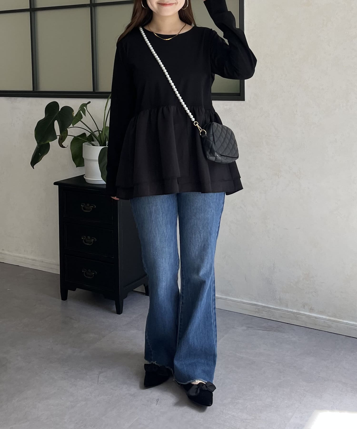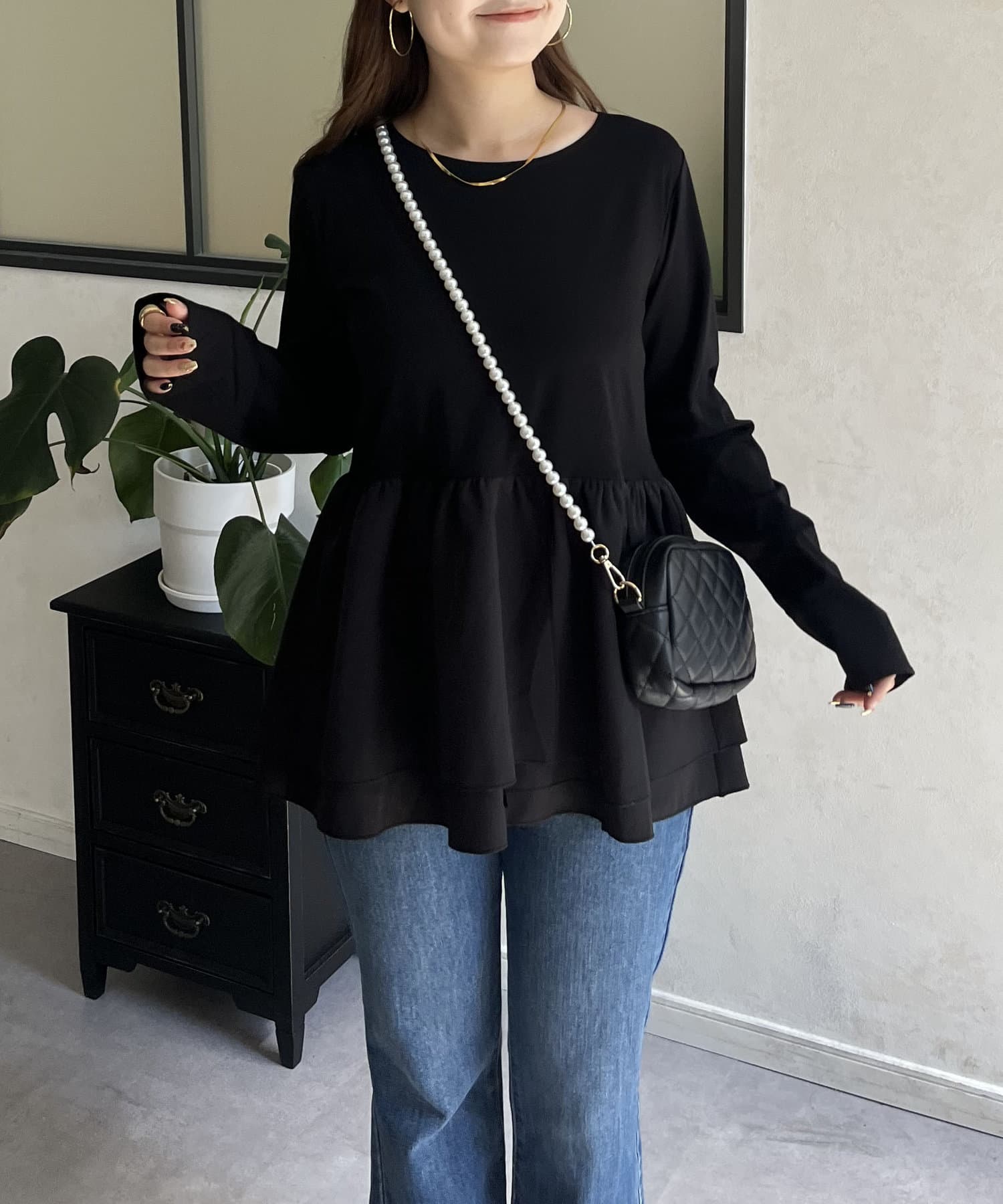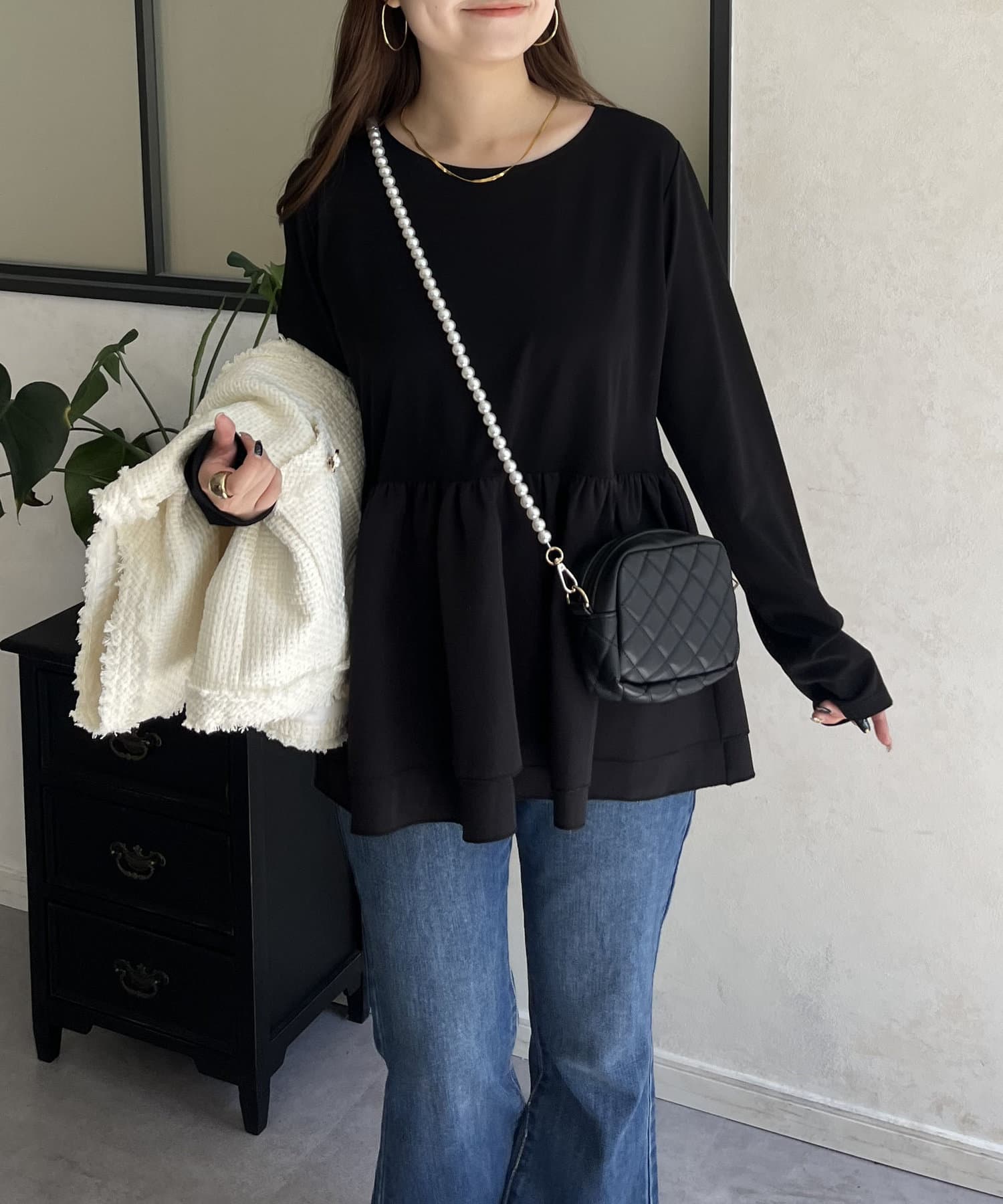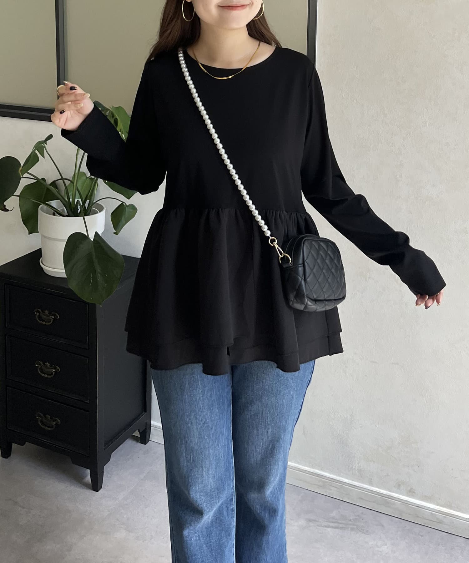 ペプラム/ロンT/きれいめカジュアル/大人カジュアル