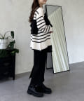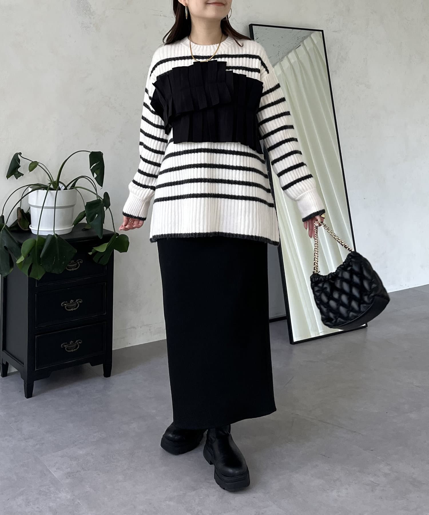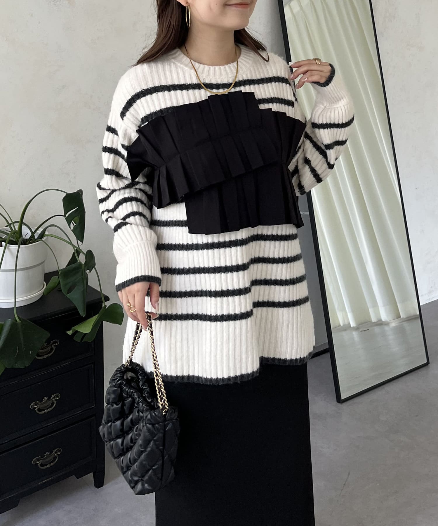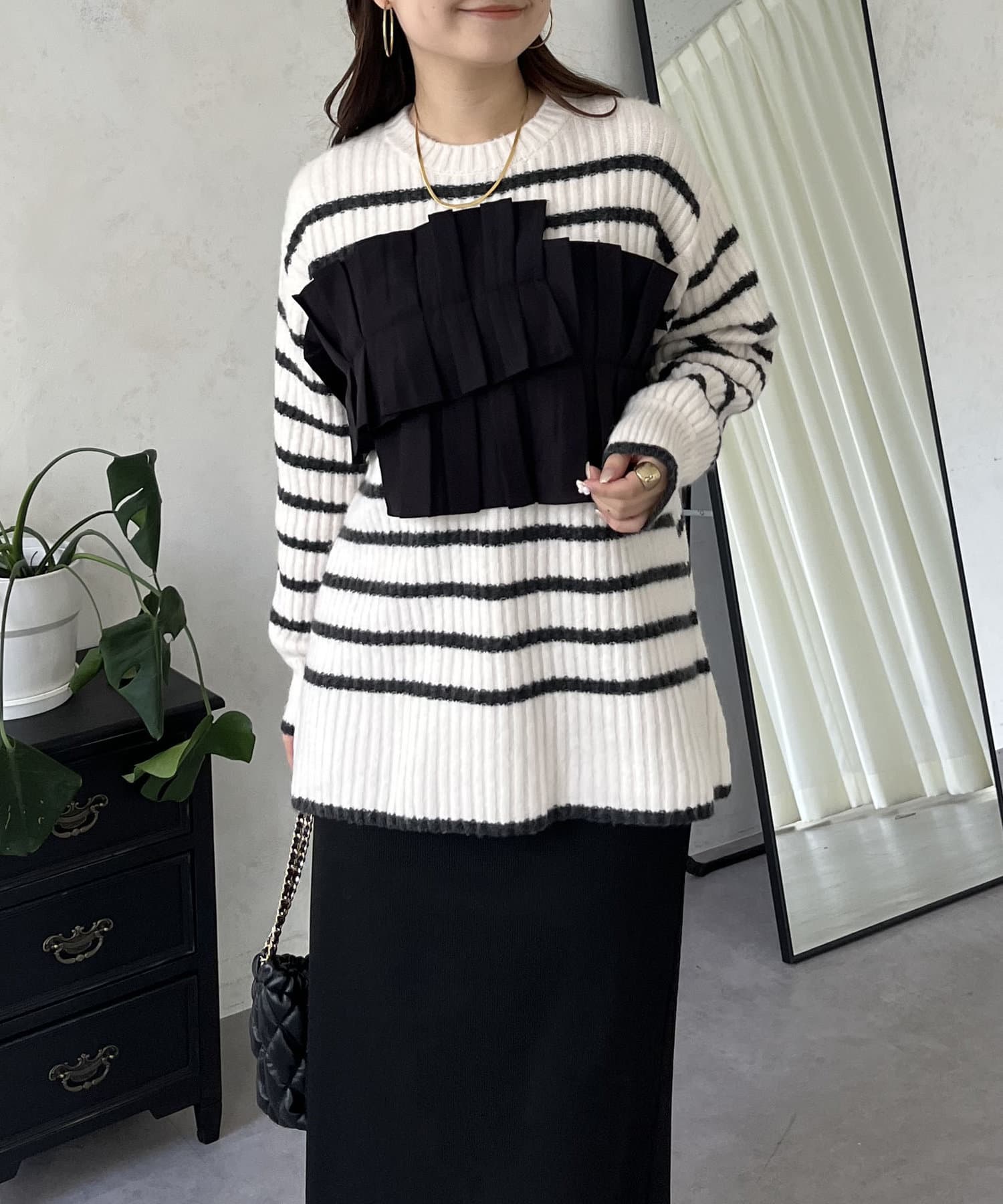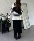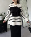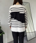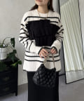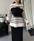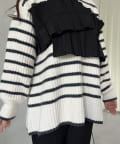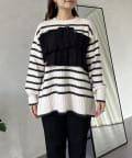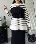ボーダー/フリル/ニット/レイヤード/大人カジュアル
