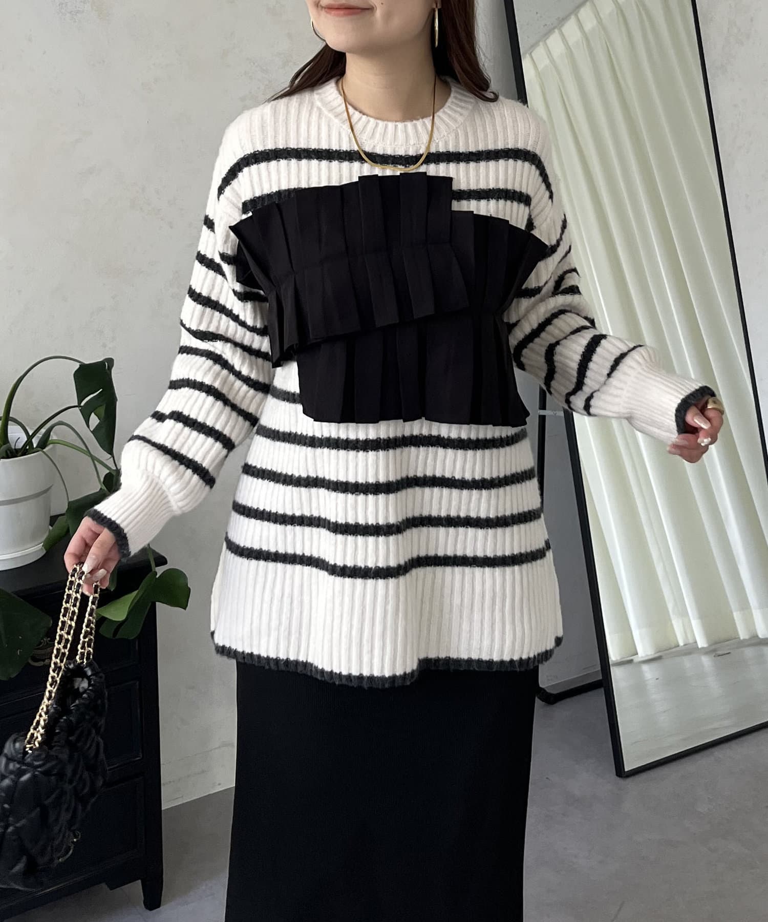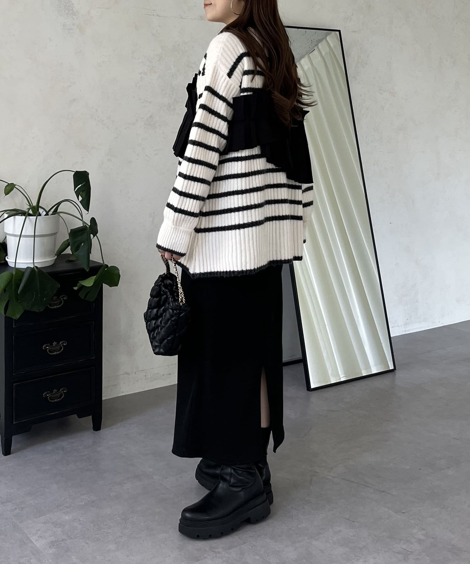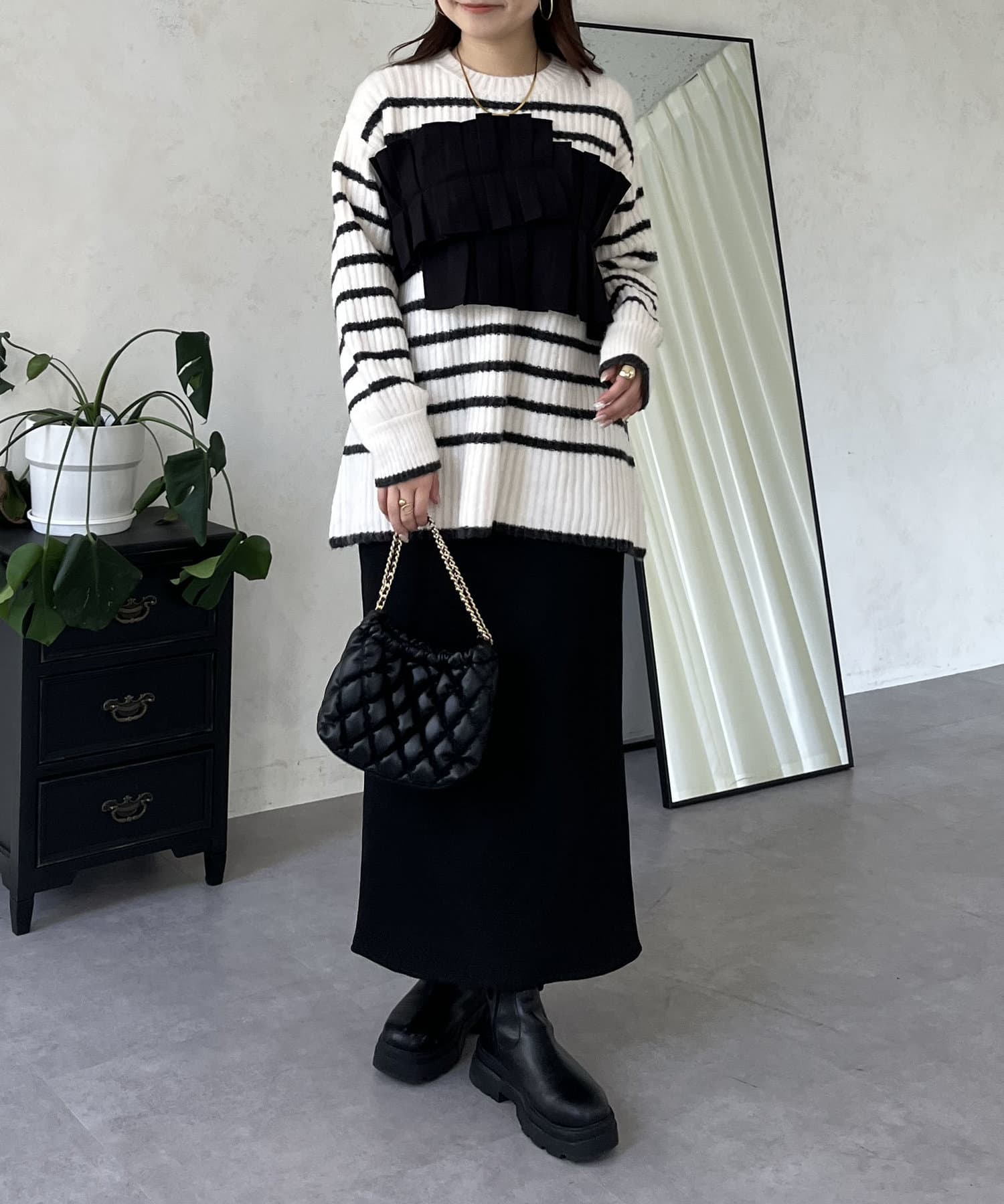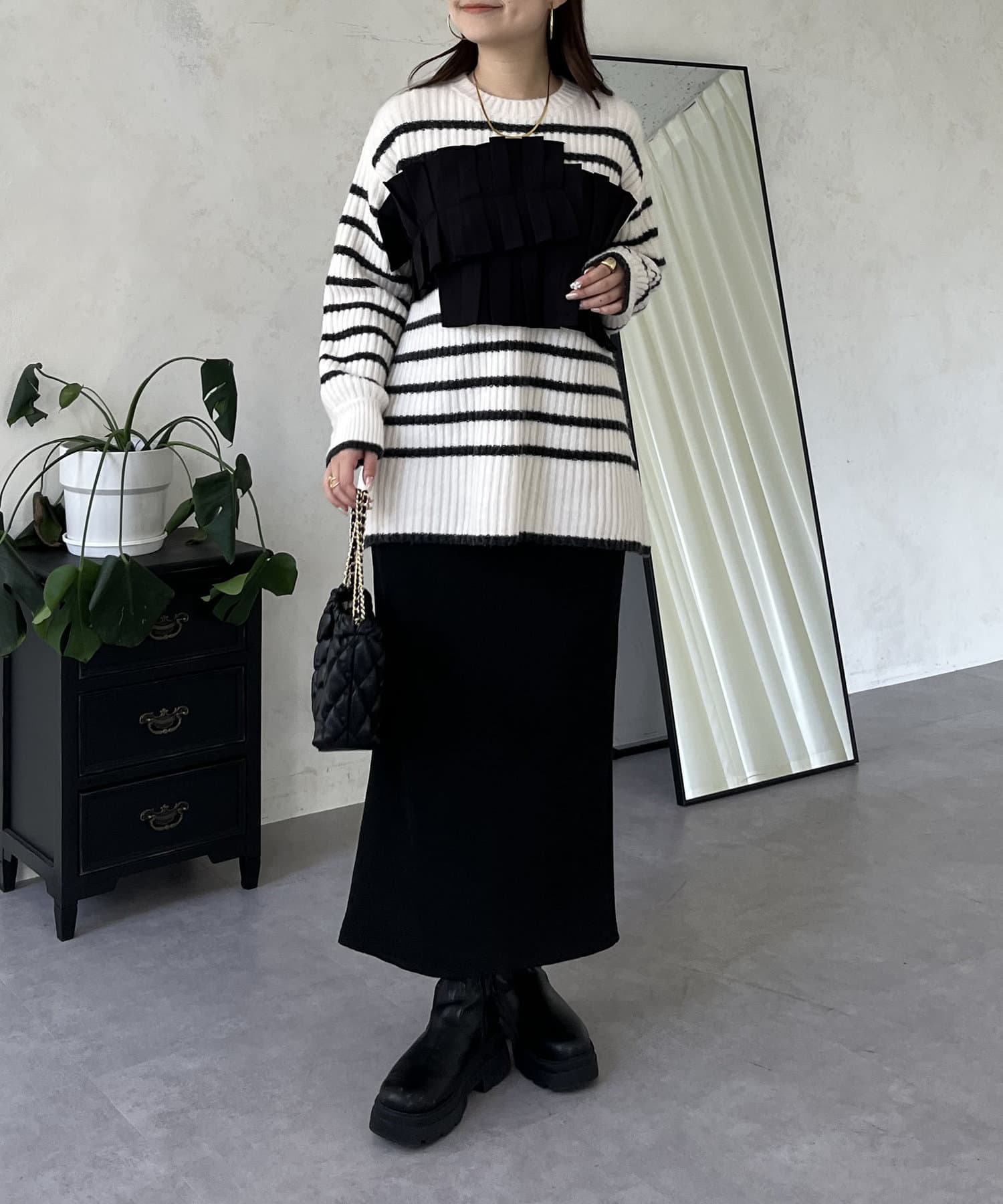 ボーダー/フリル/ニット/レイヤード/大人カジュアル