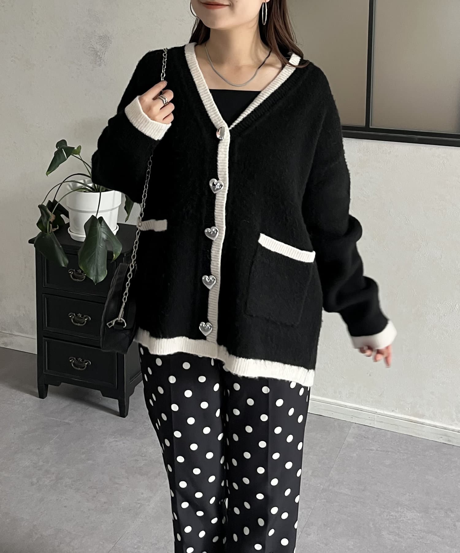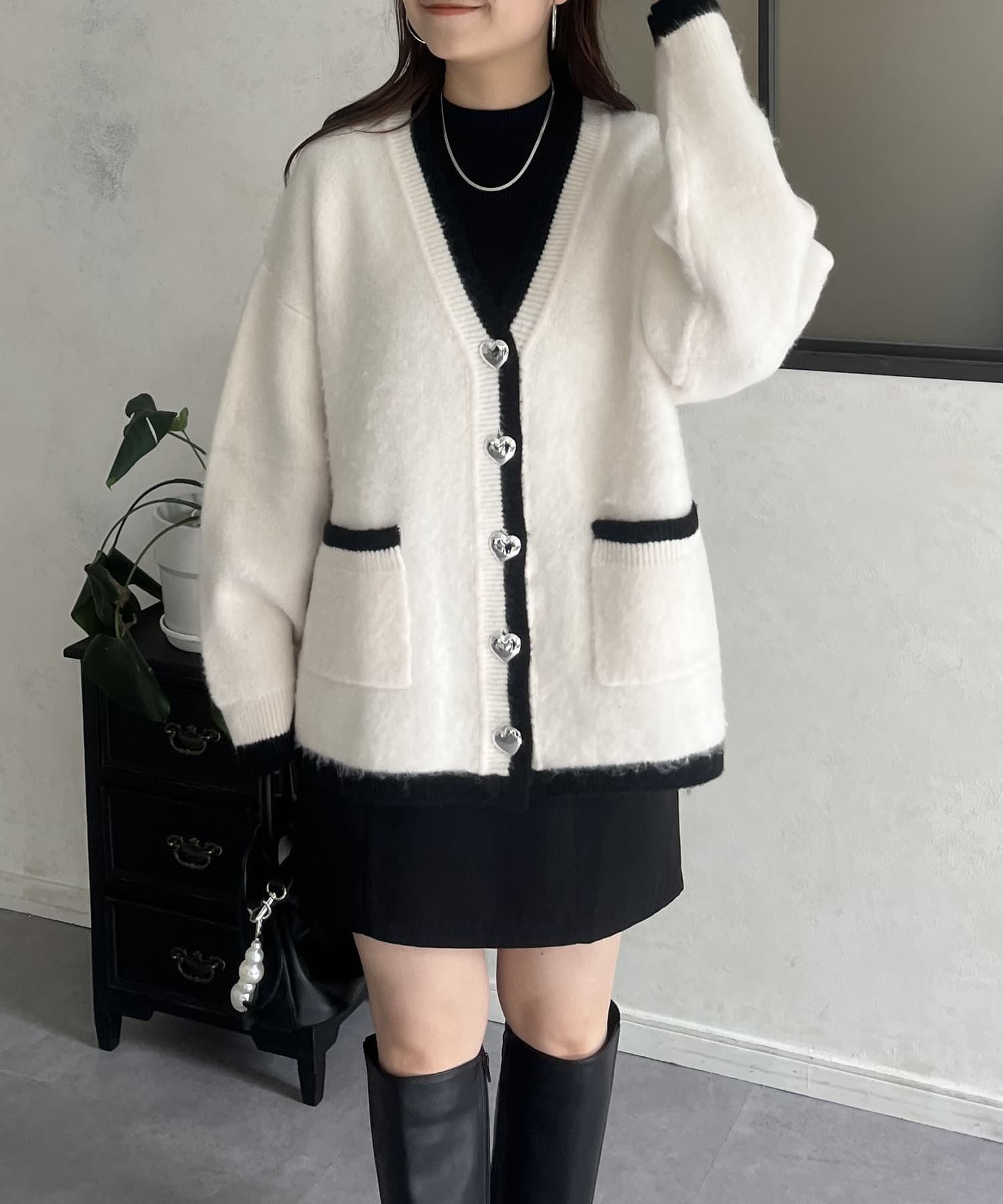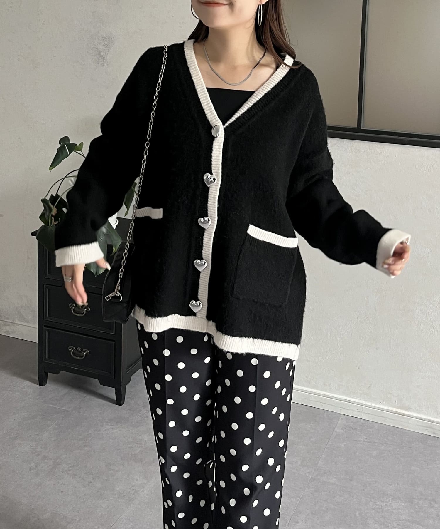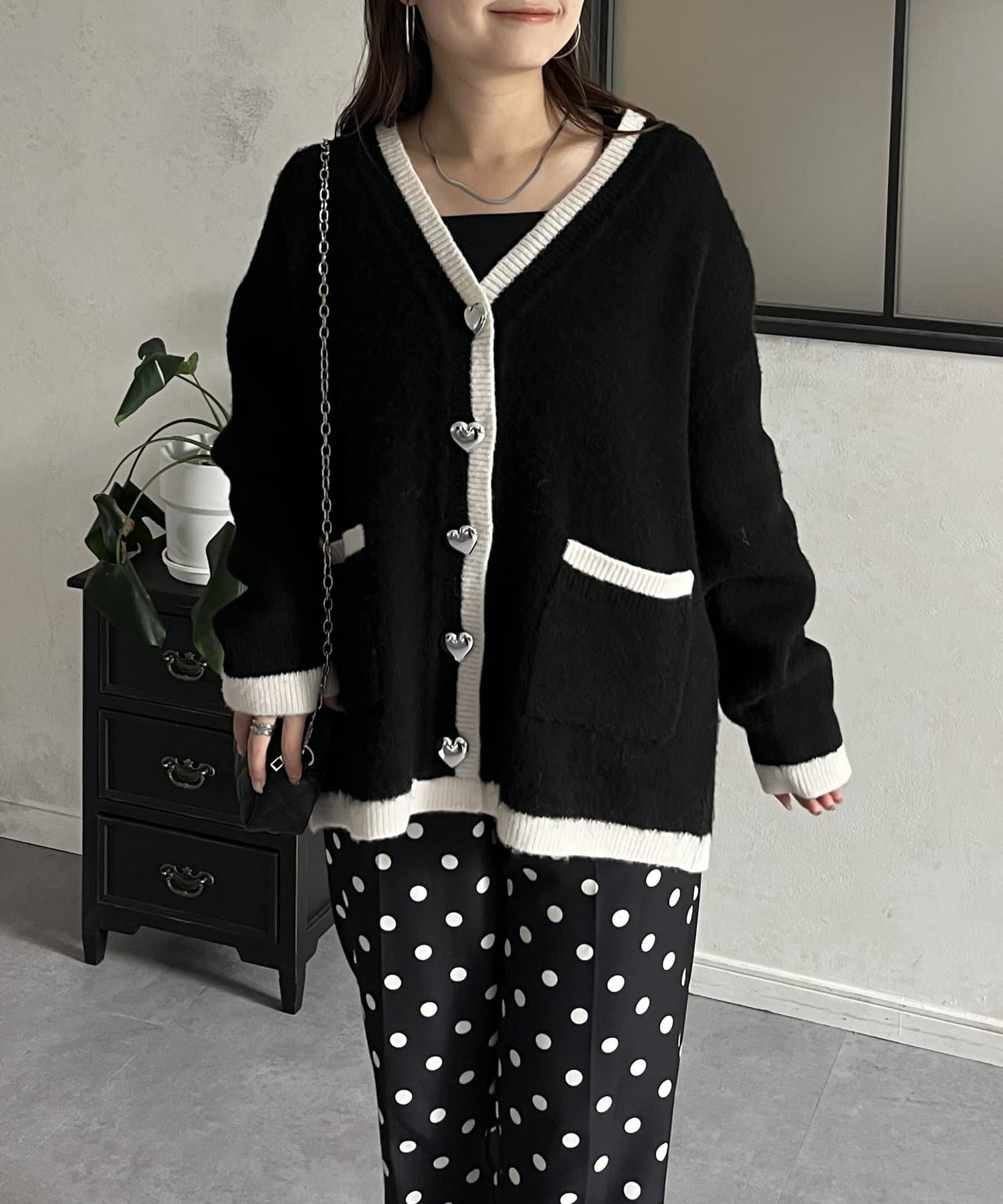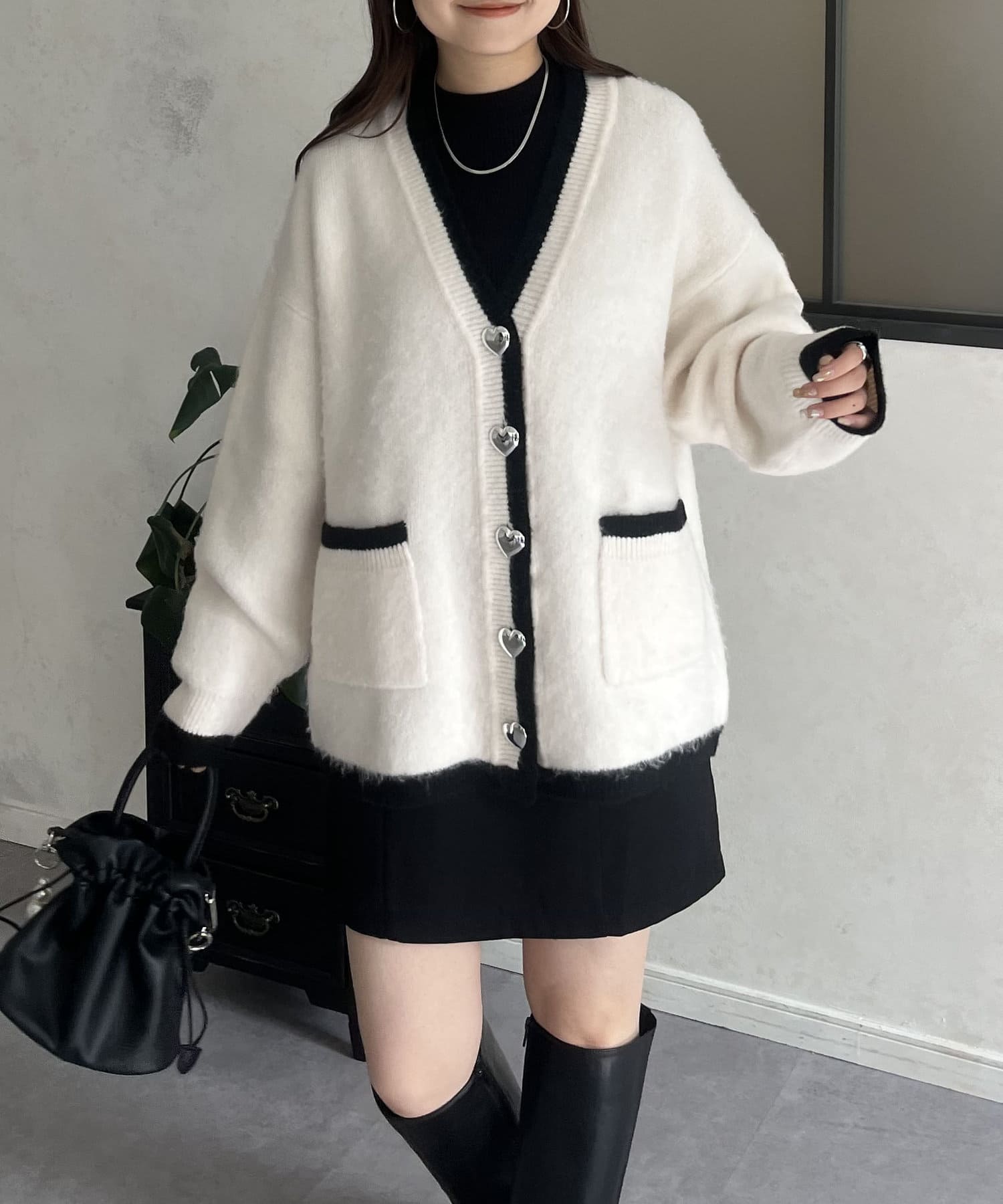 カーディガン/ハート/バイカラー/Vネック/大人カジュアル
