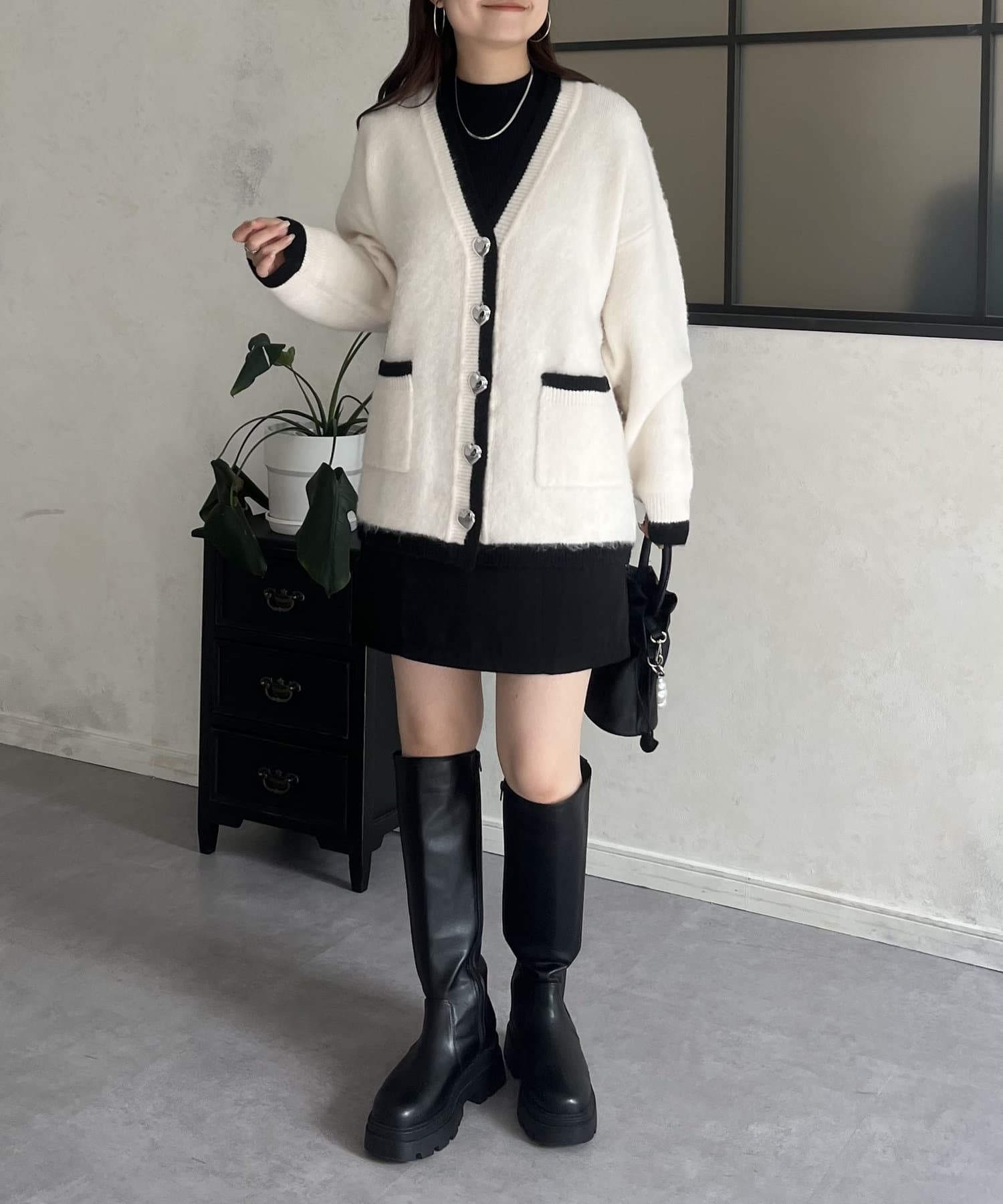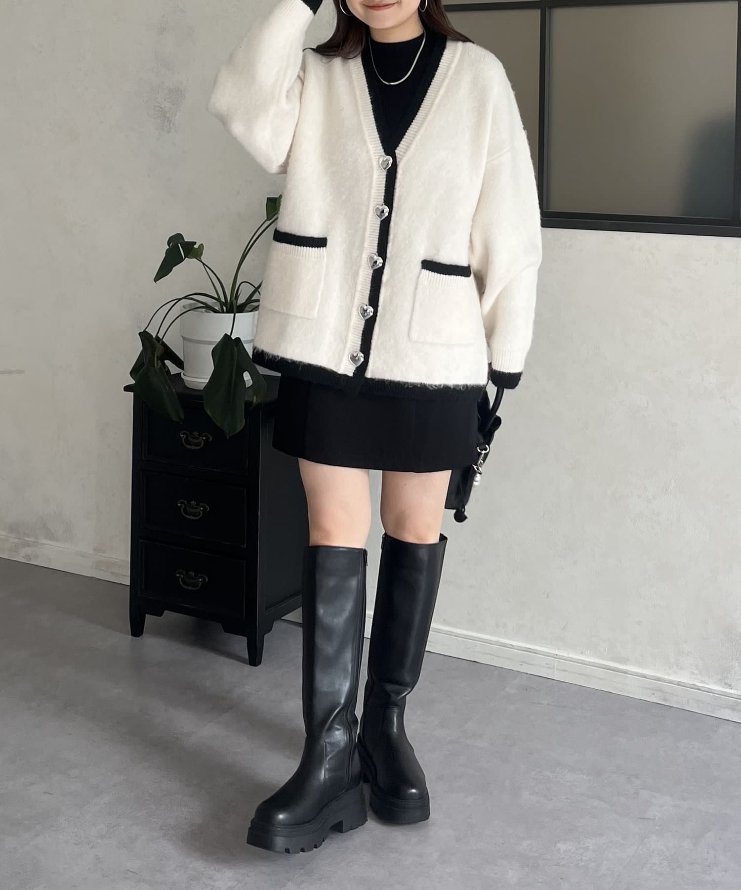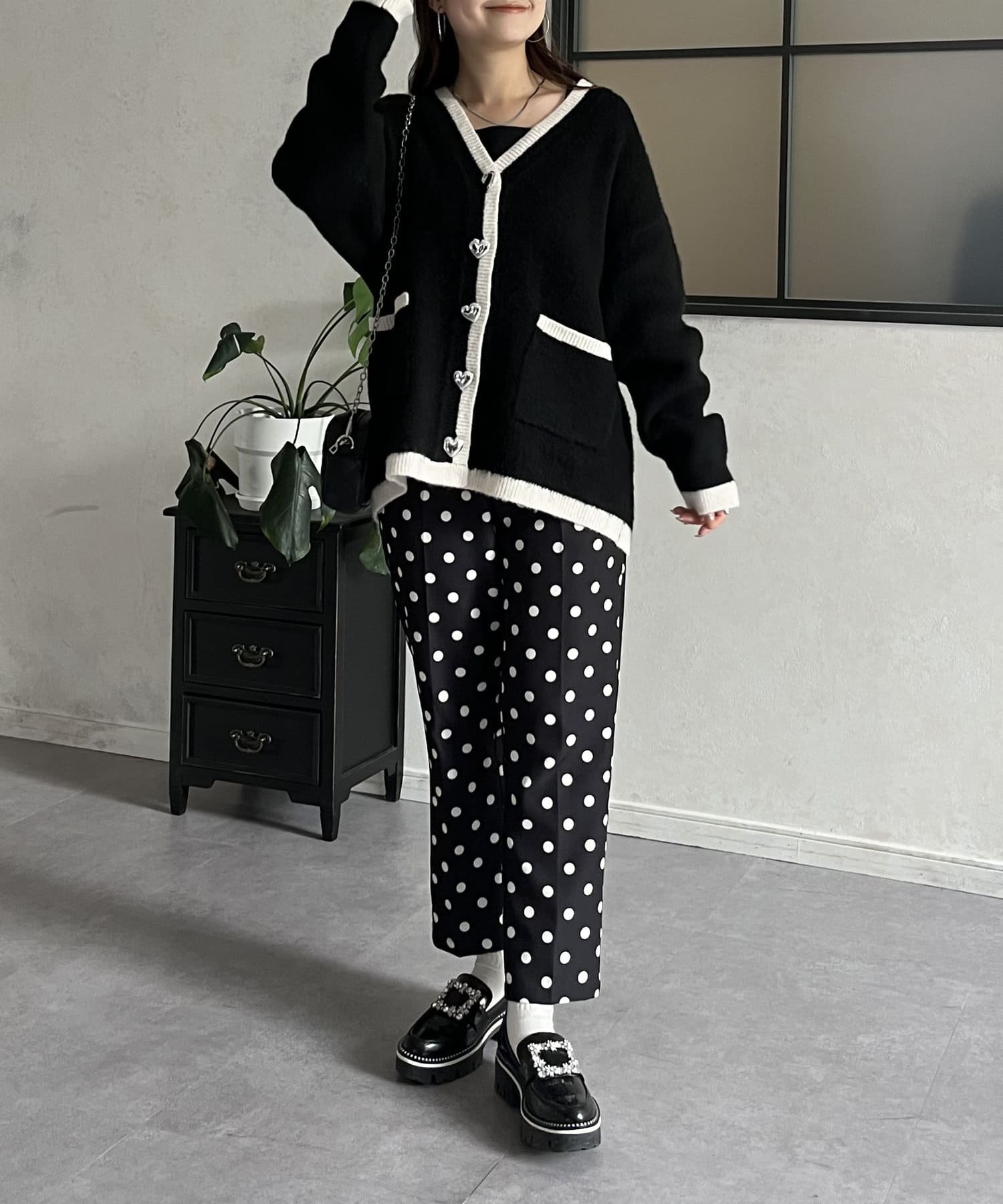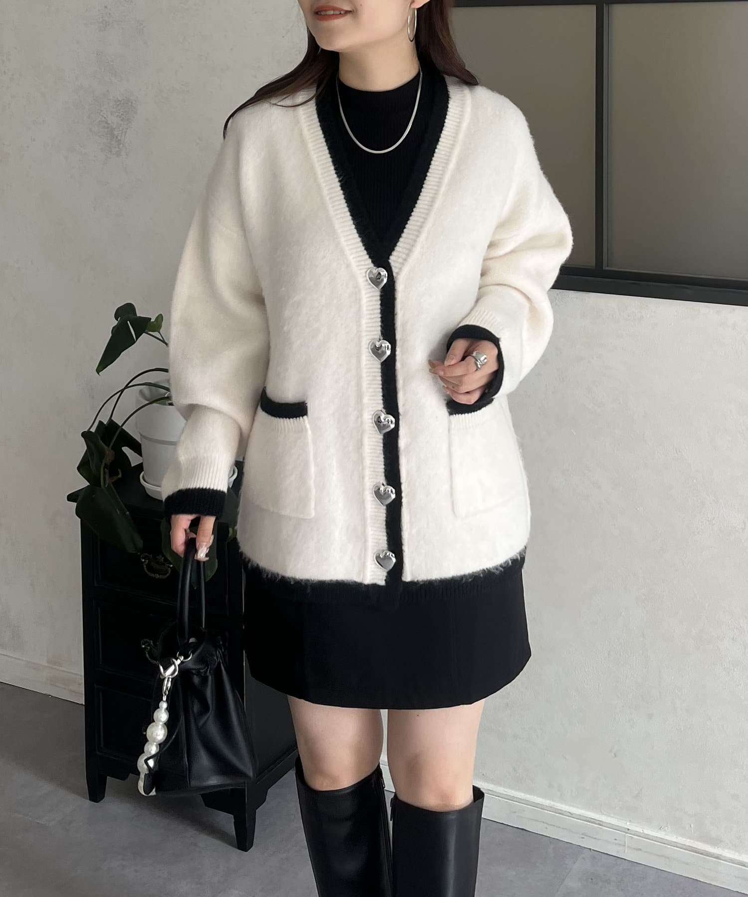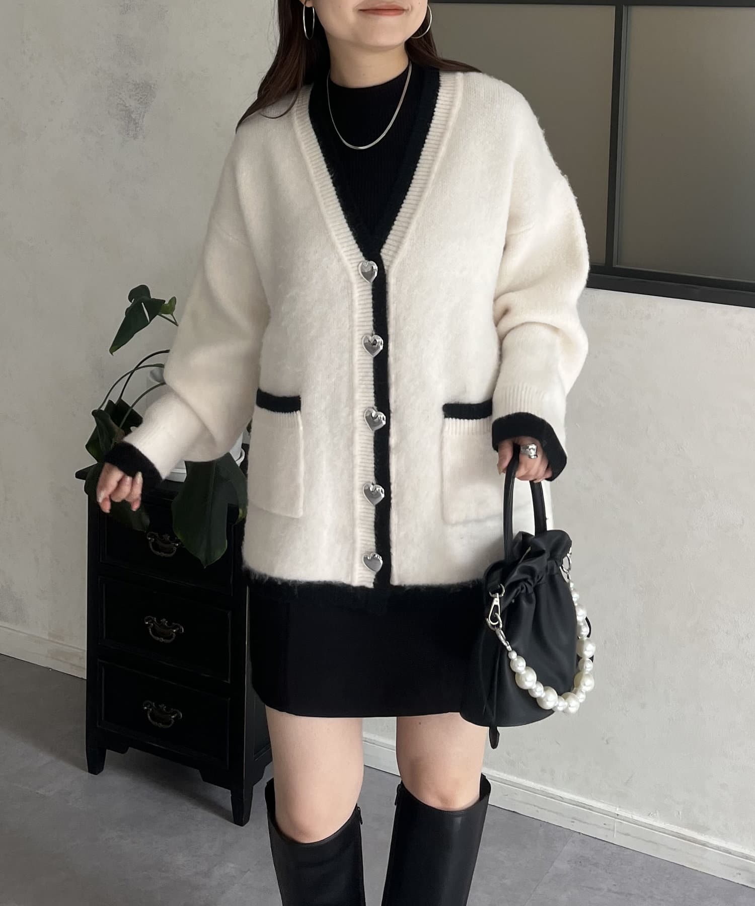 カーディガン/ハート/バイカラー/Vネック/大人カジュアル
