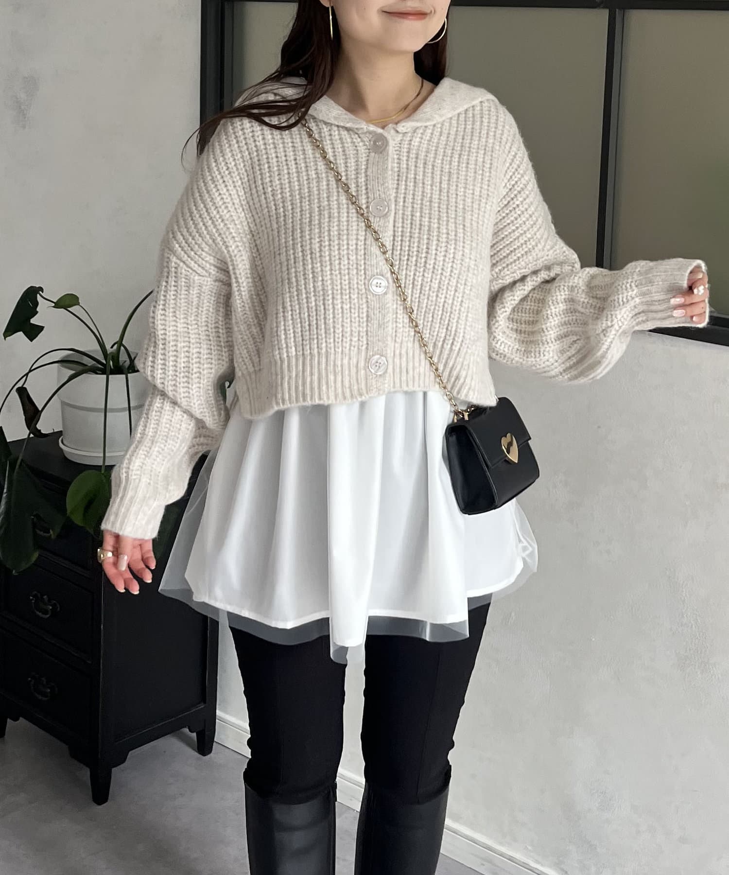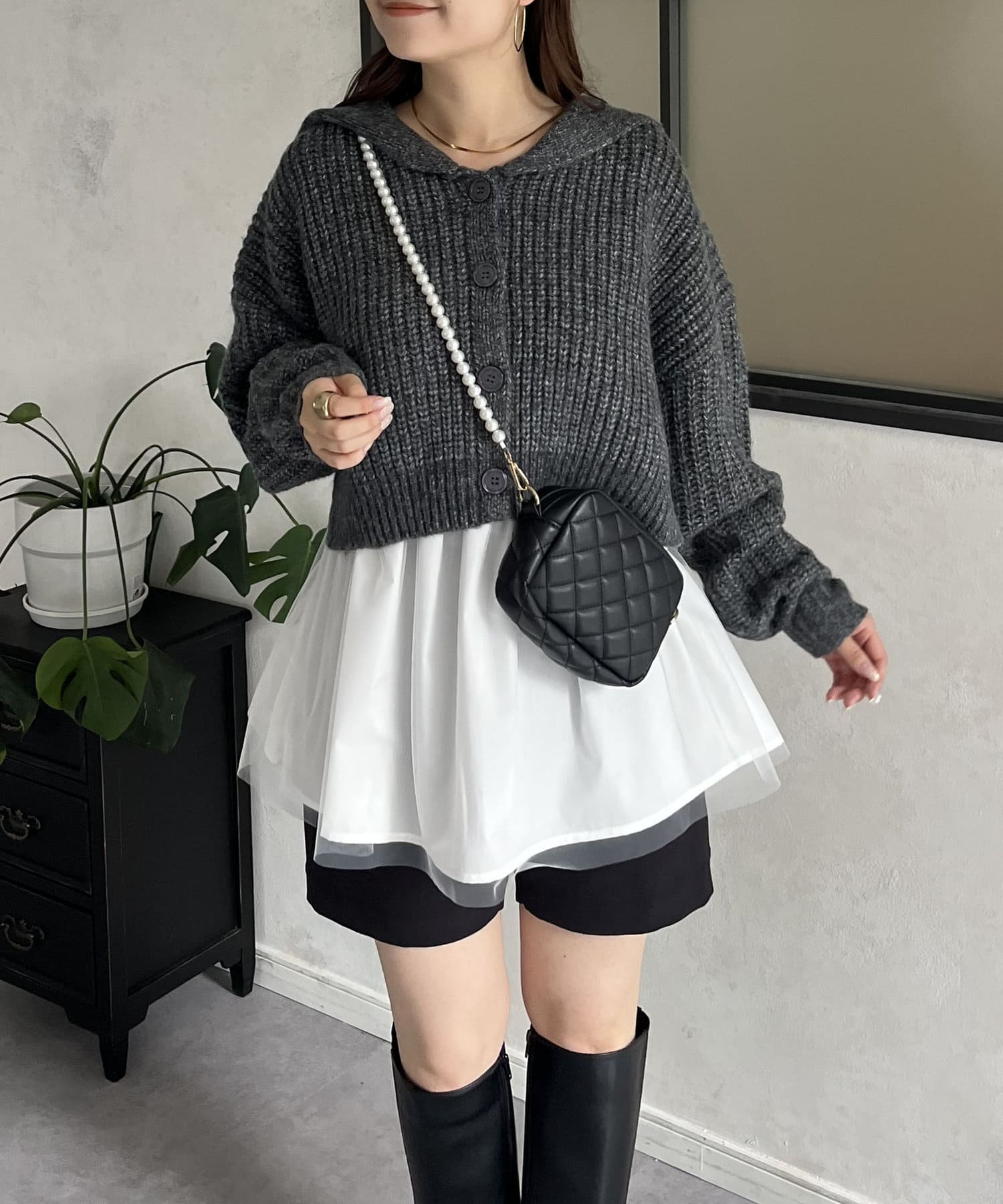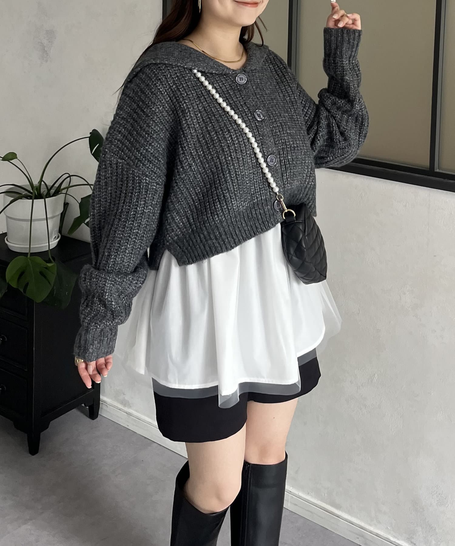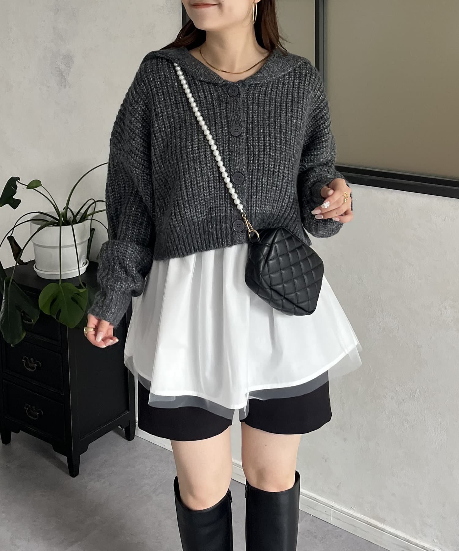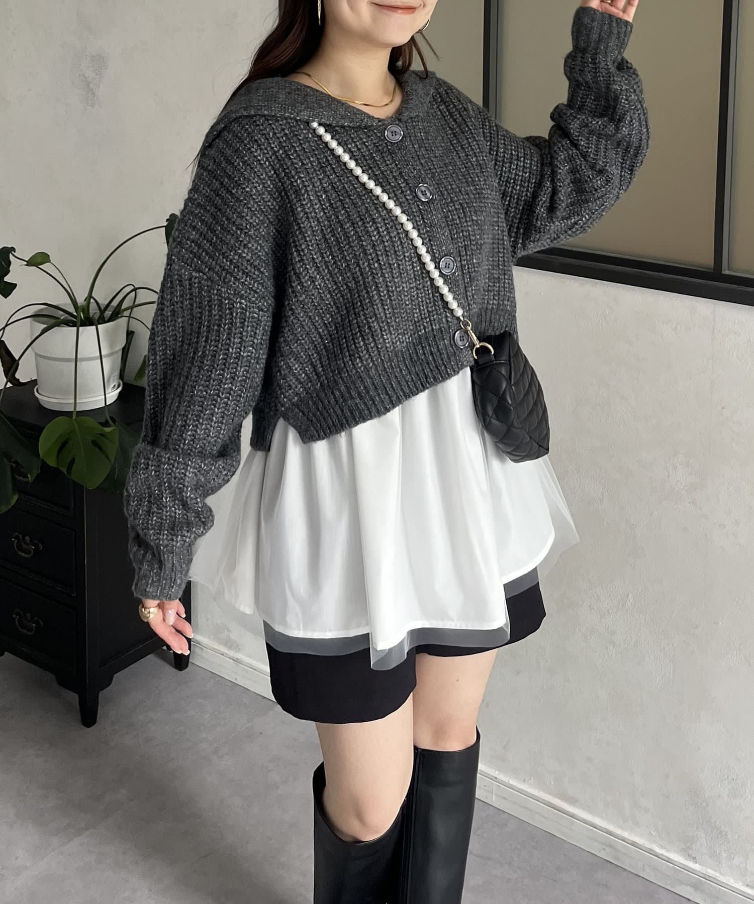 セーラーカラーニット×チュールレイヤードペプラムキャミセット