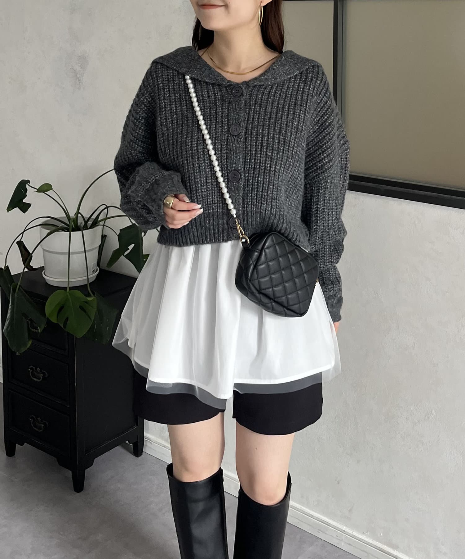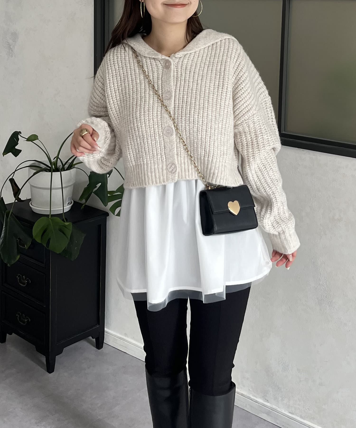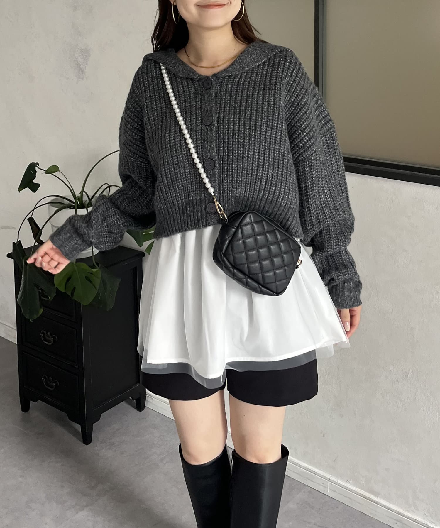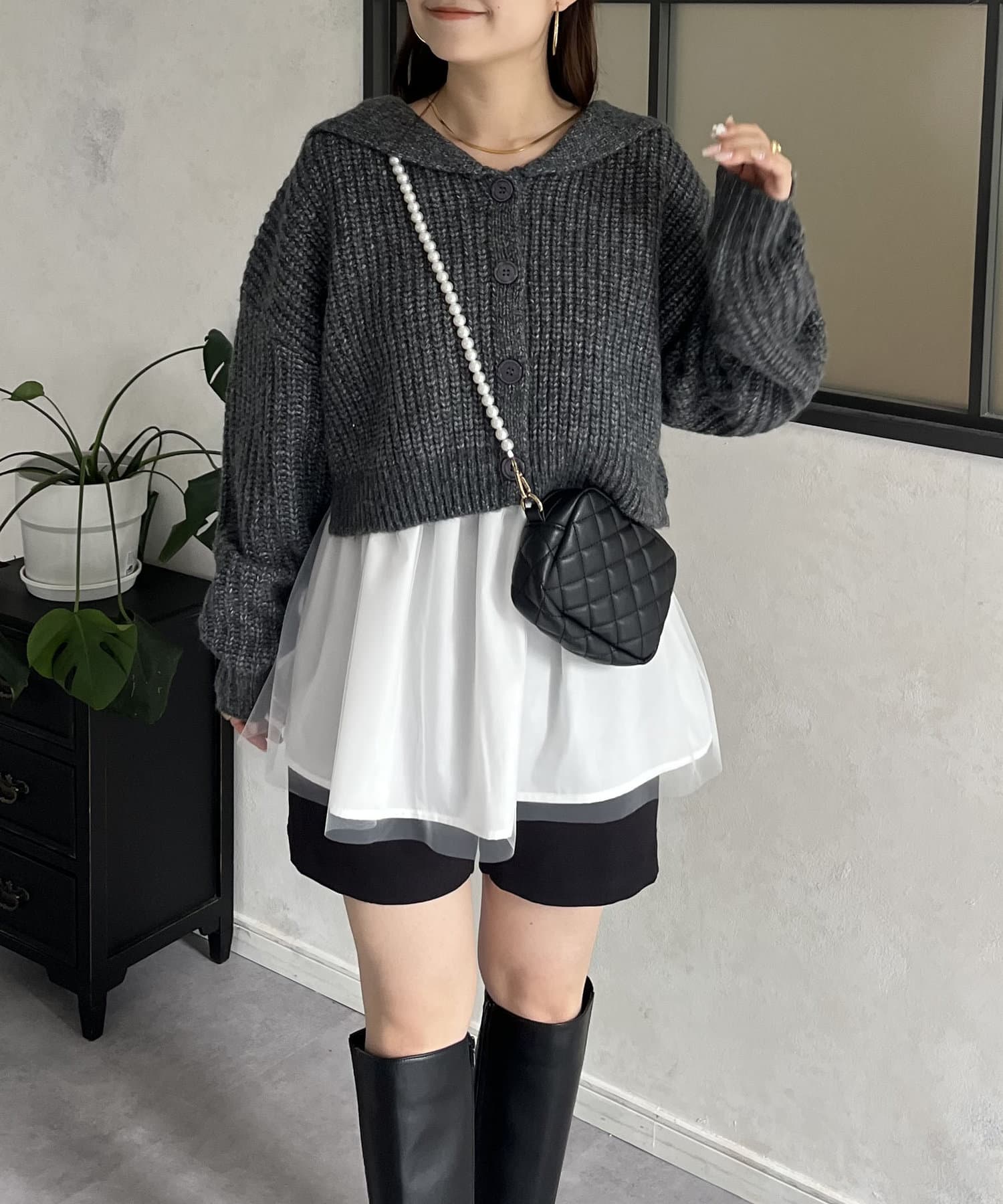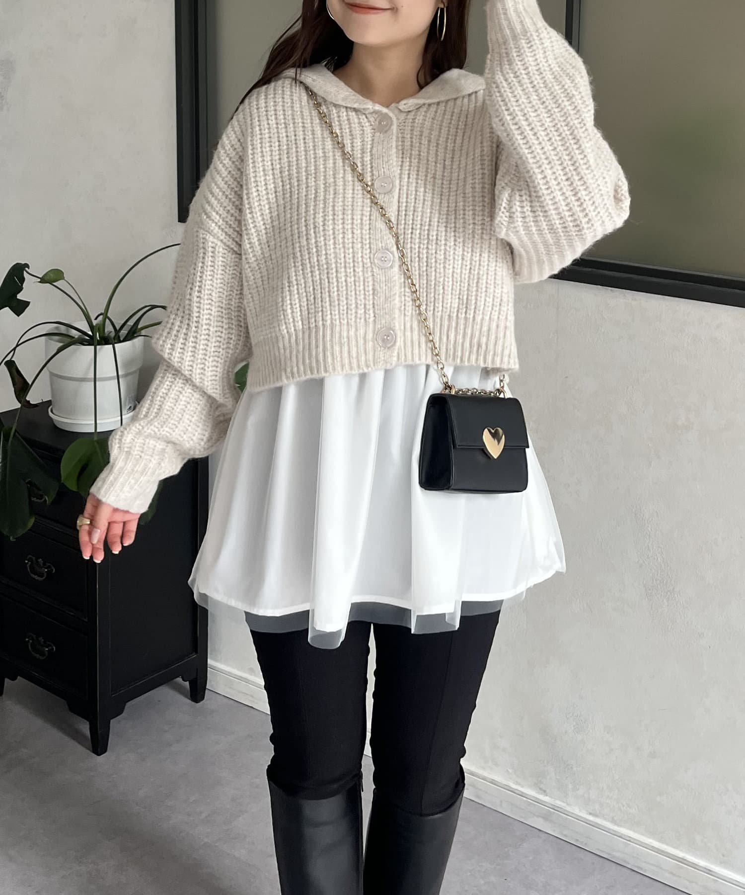 セーラーカラーニット×チュールレイヤードペプラムキャミセット