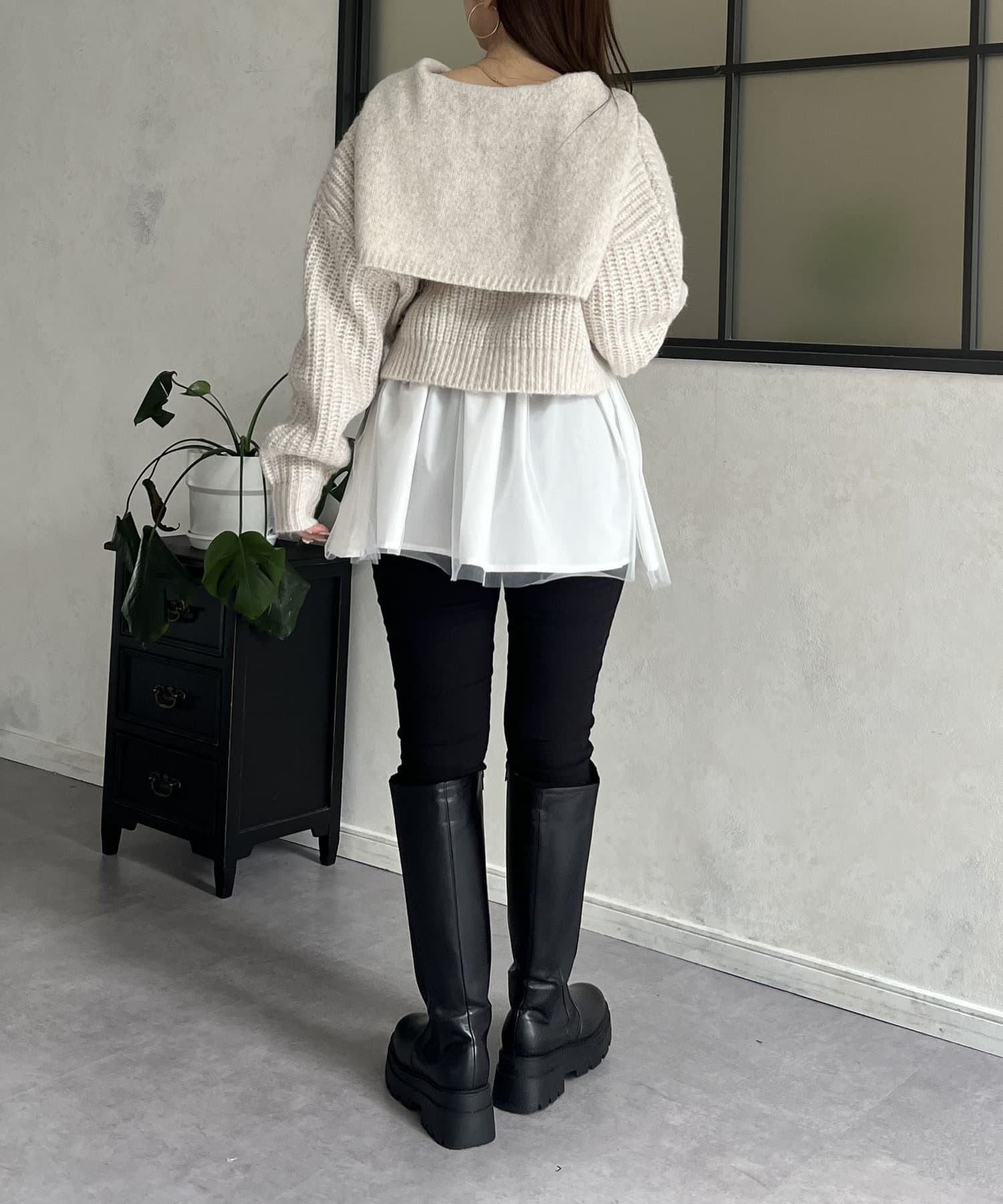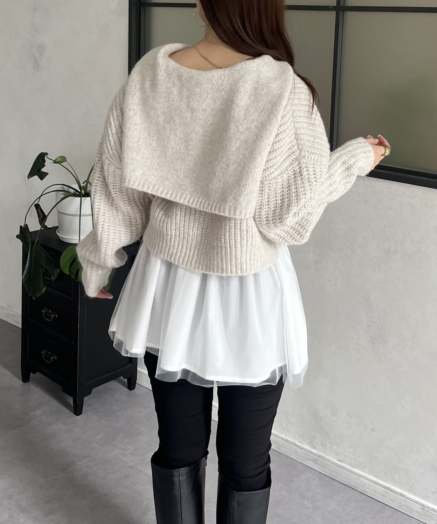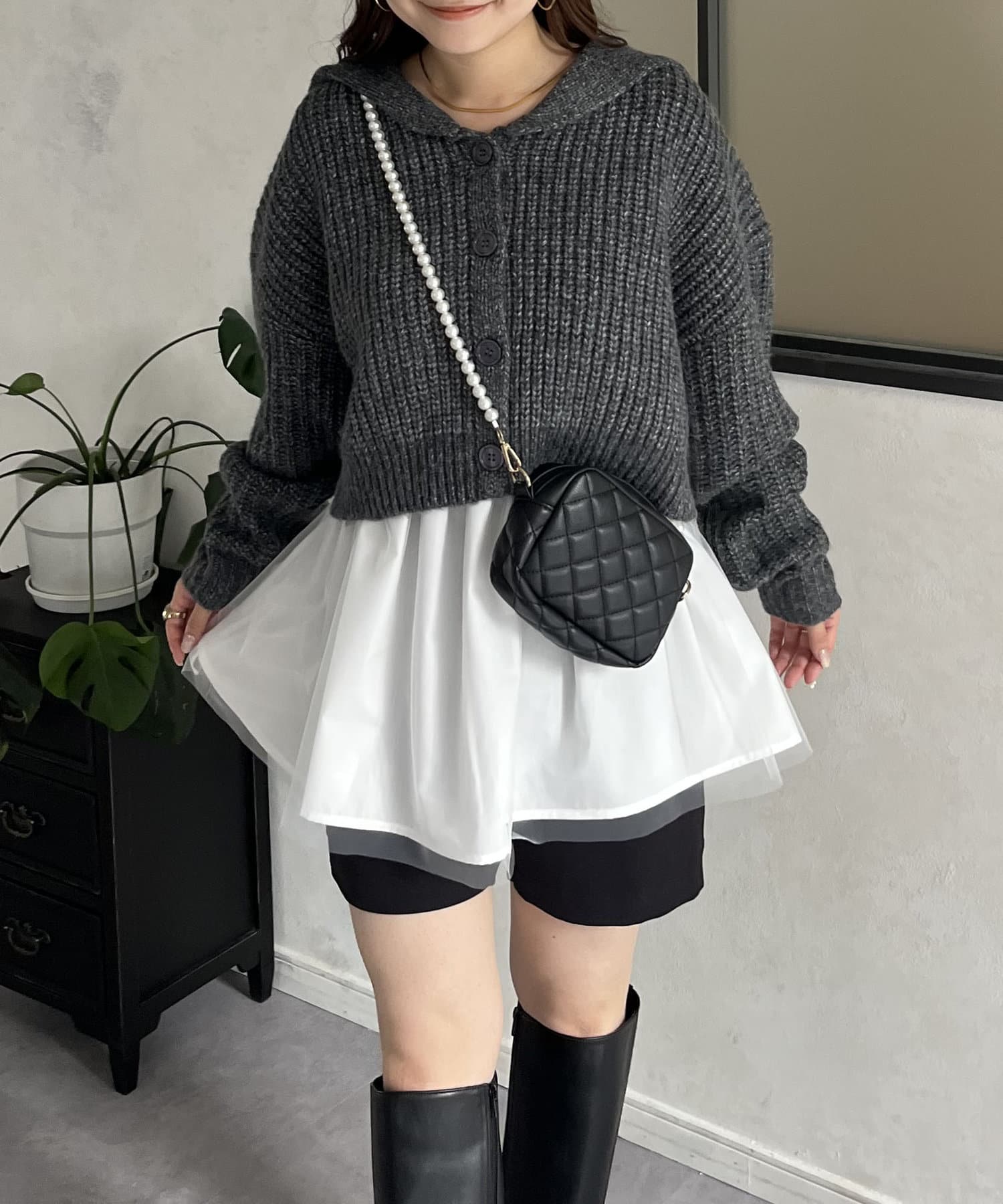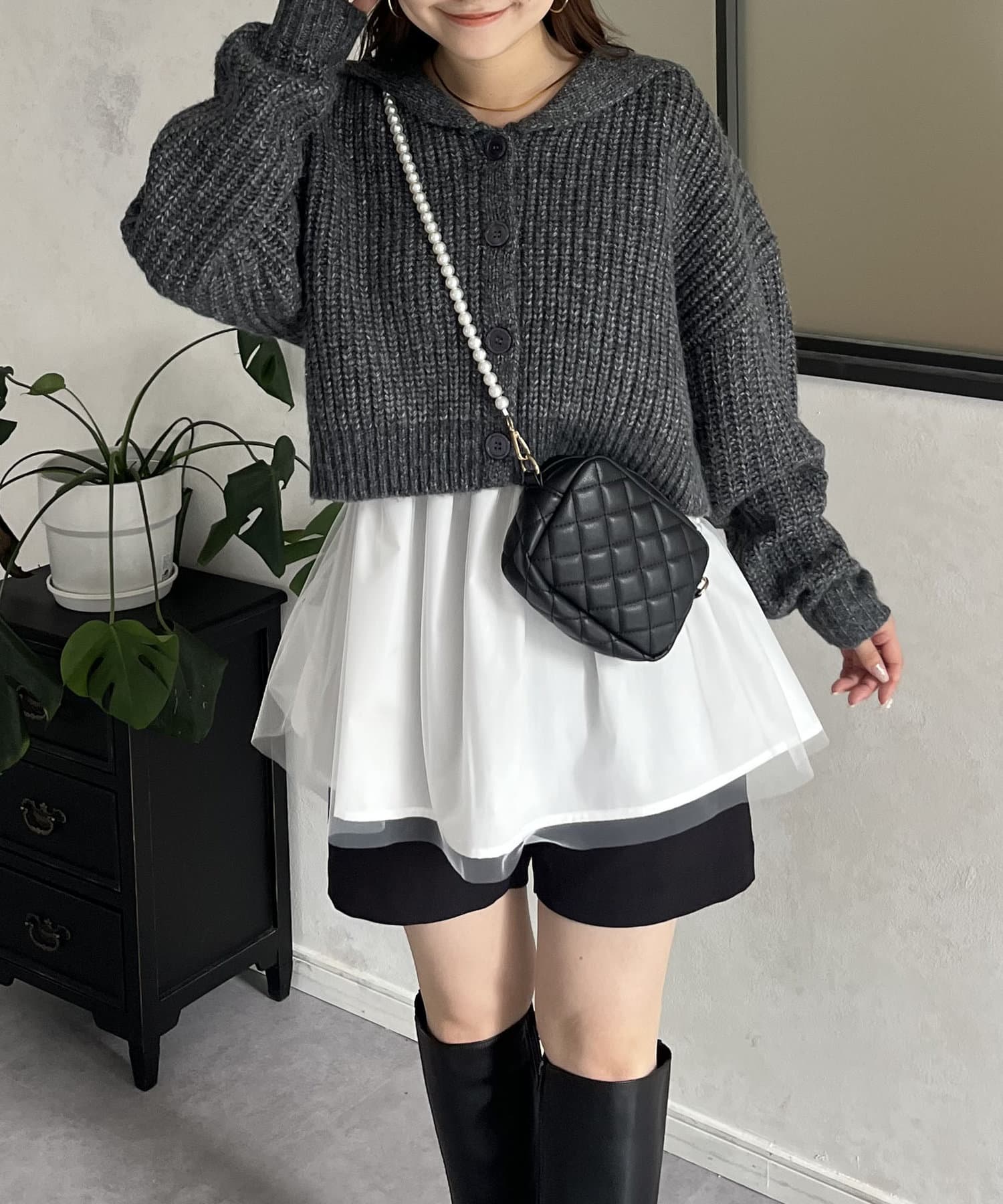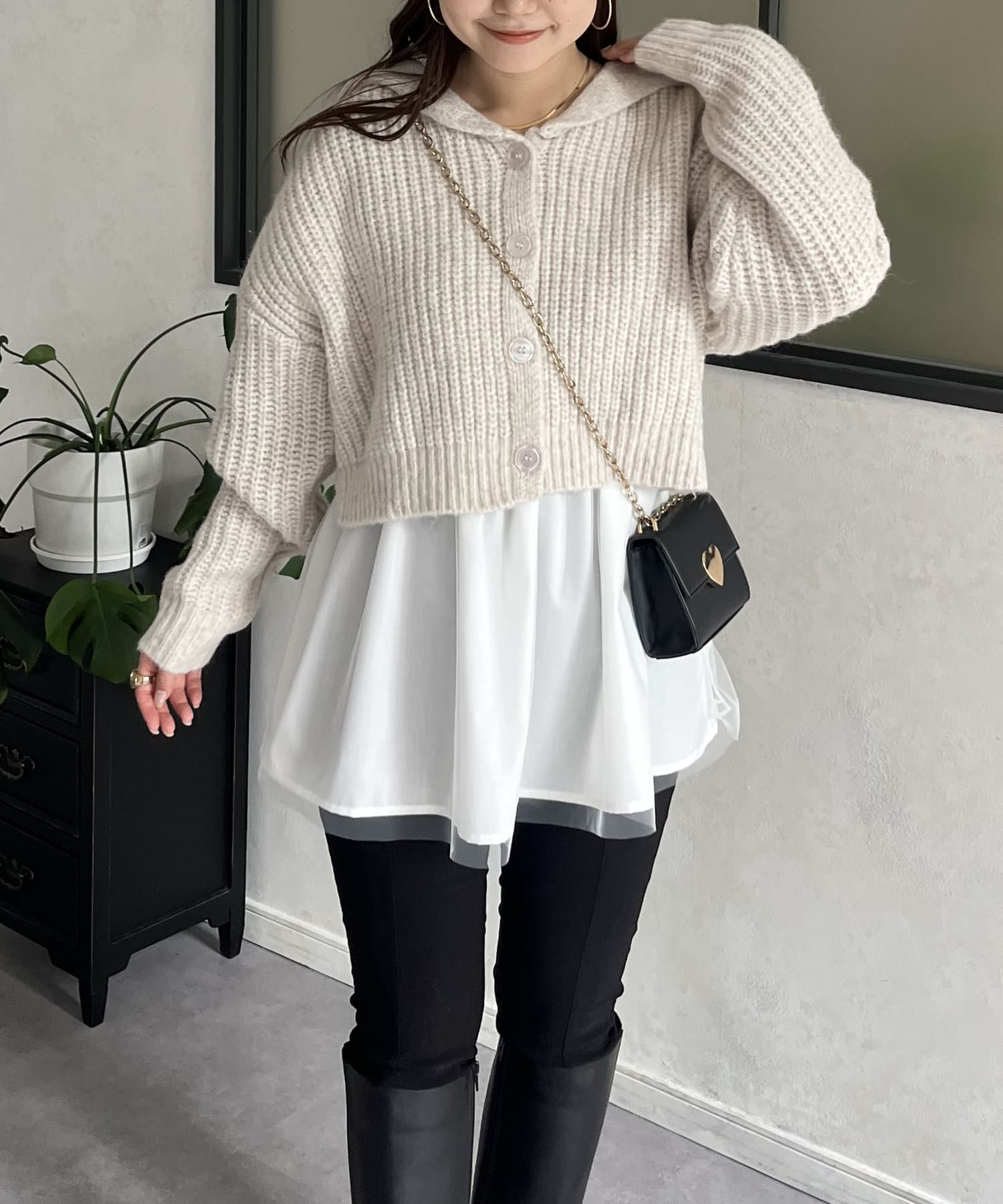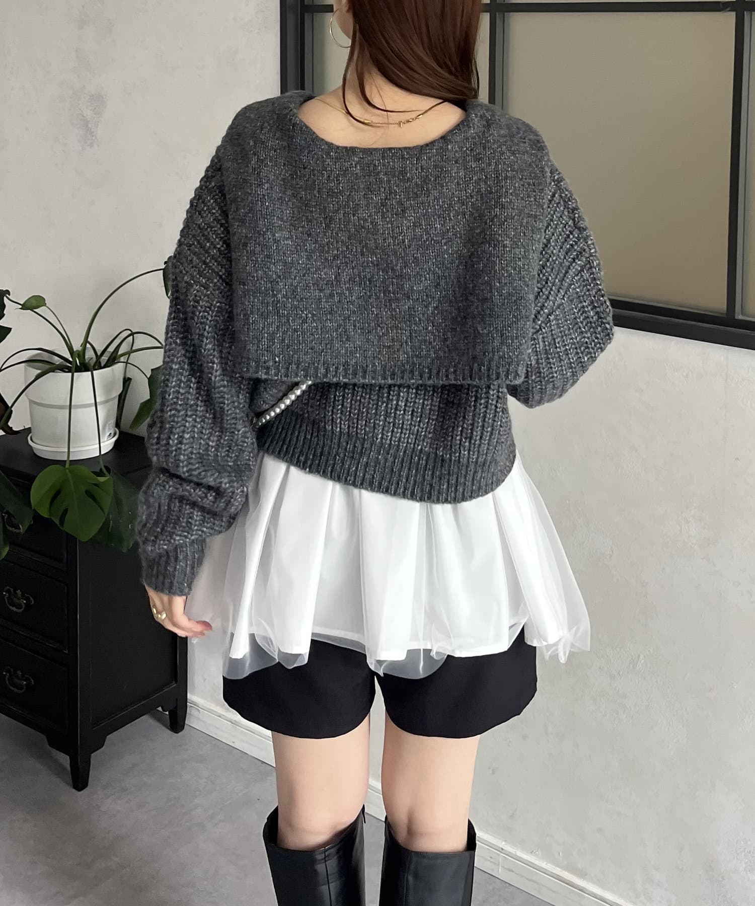 セーラーカラーニット×チュールレイヤードペプラムキャミセット