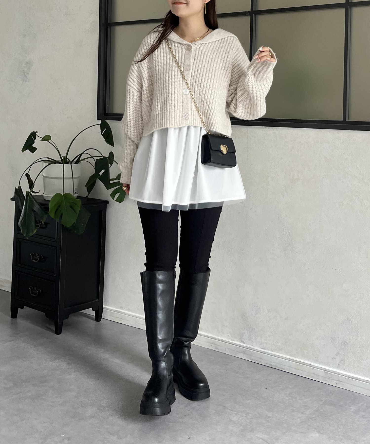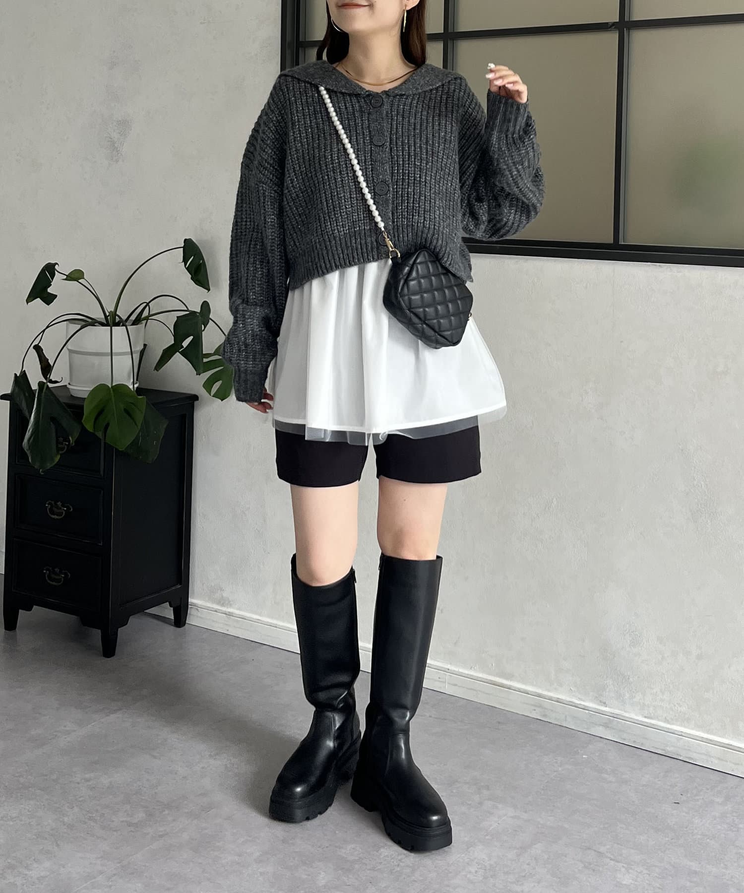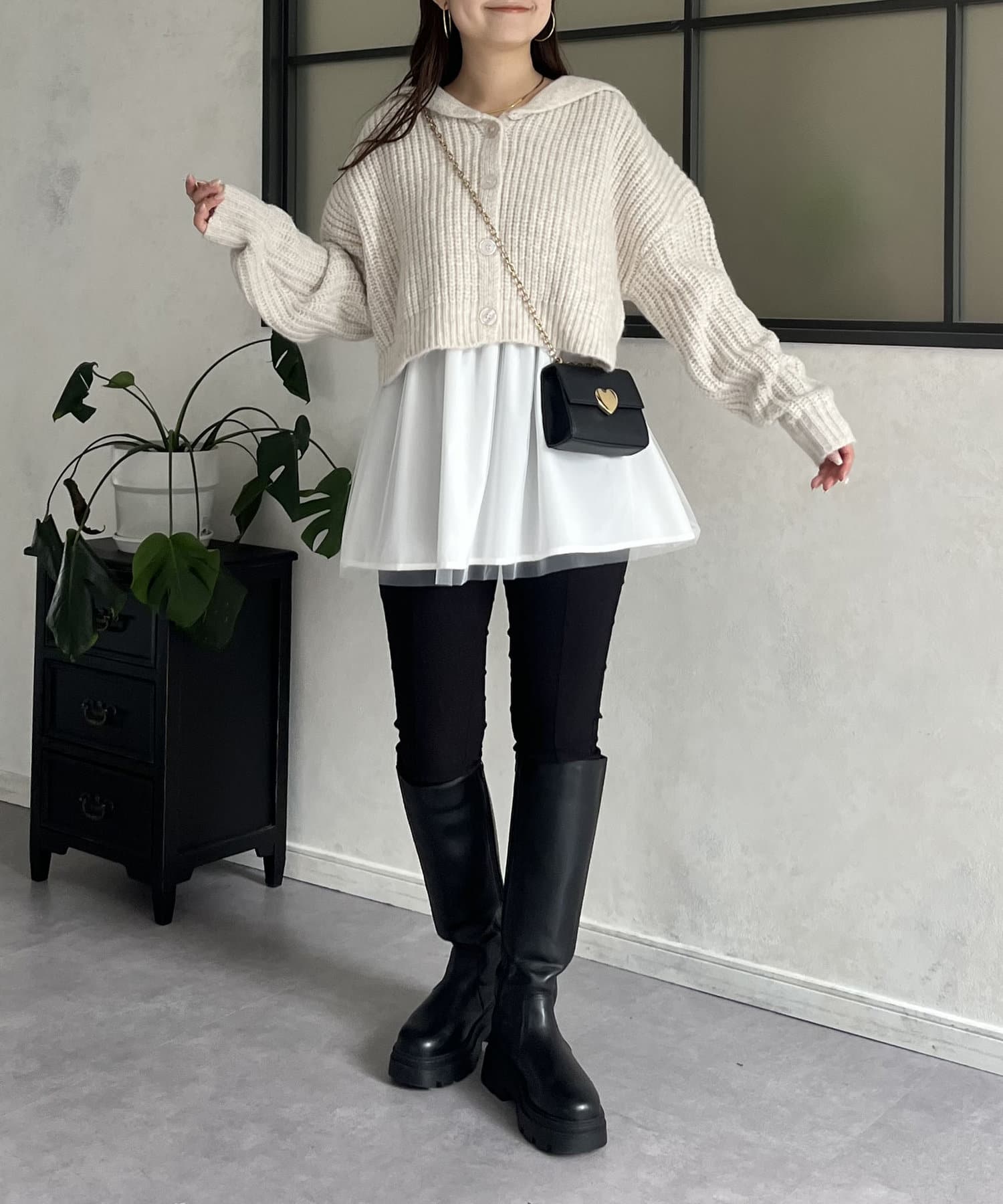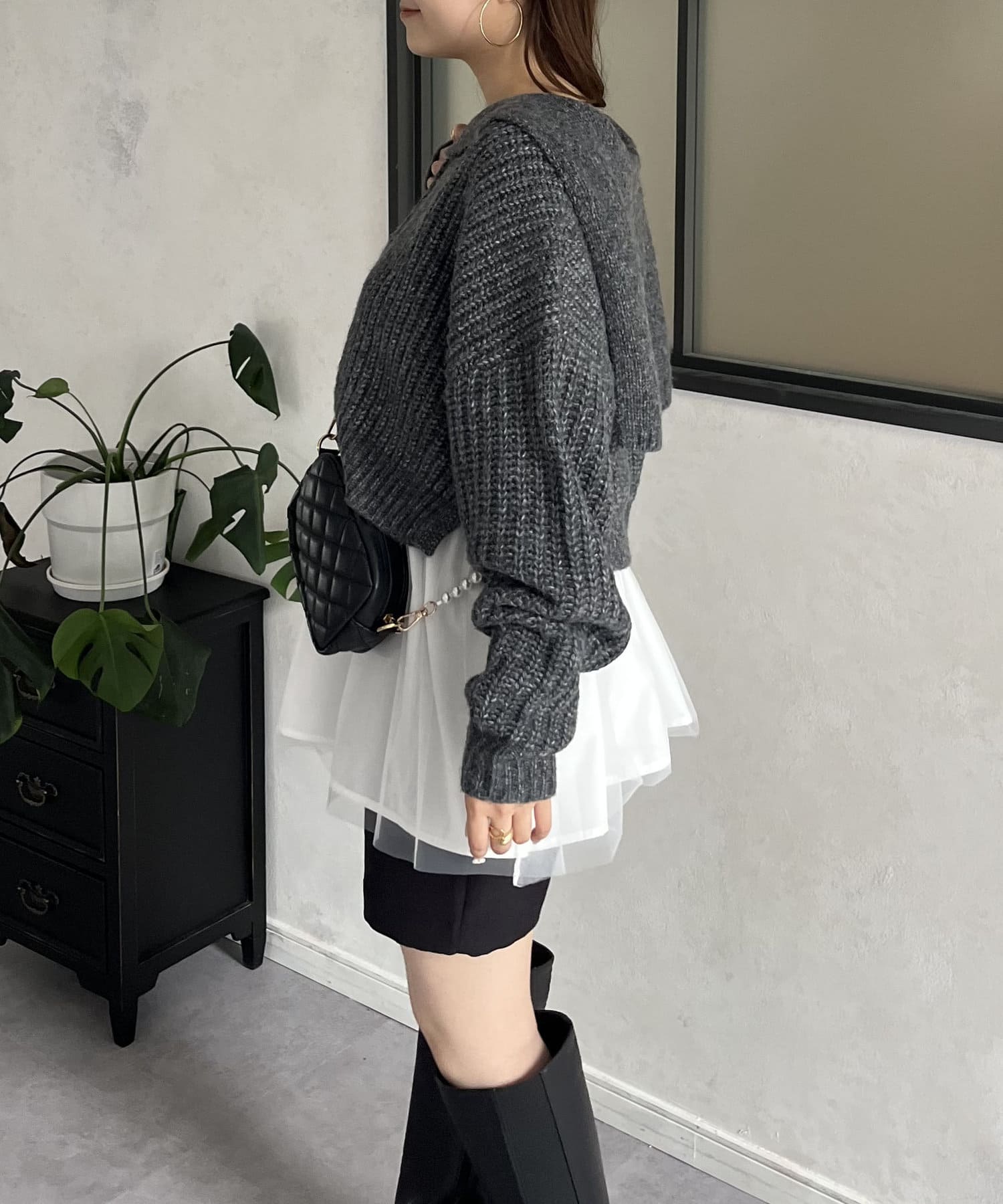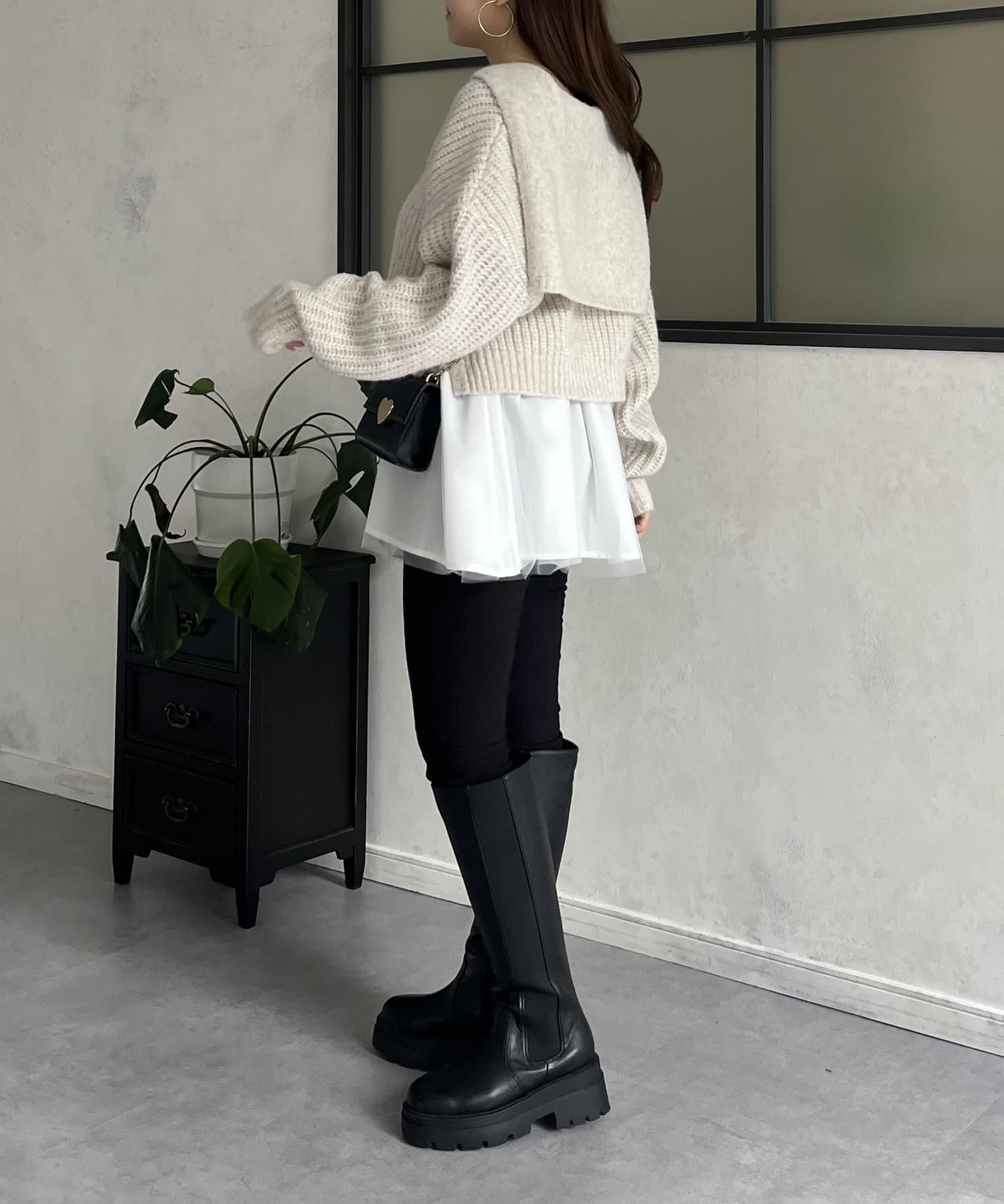 セーラーカラーニット×チュールレイヤードペプラムキャミセット