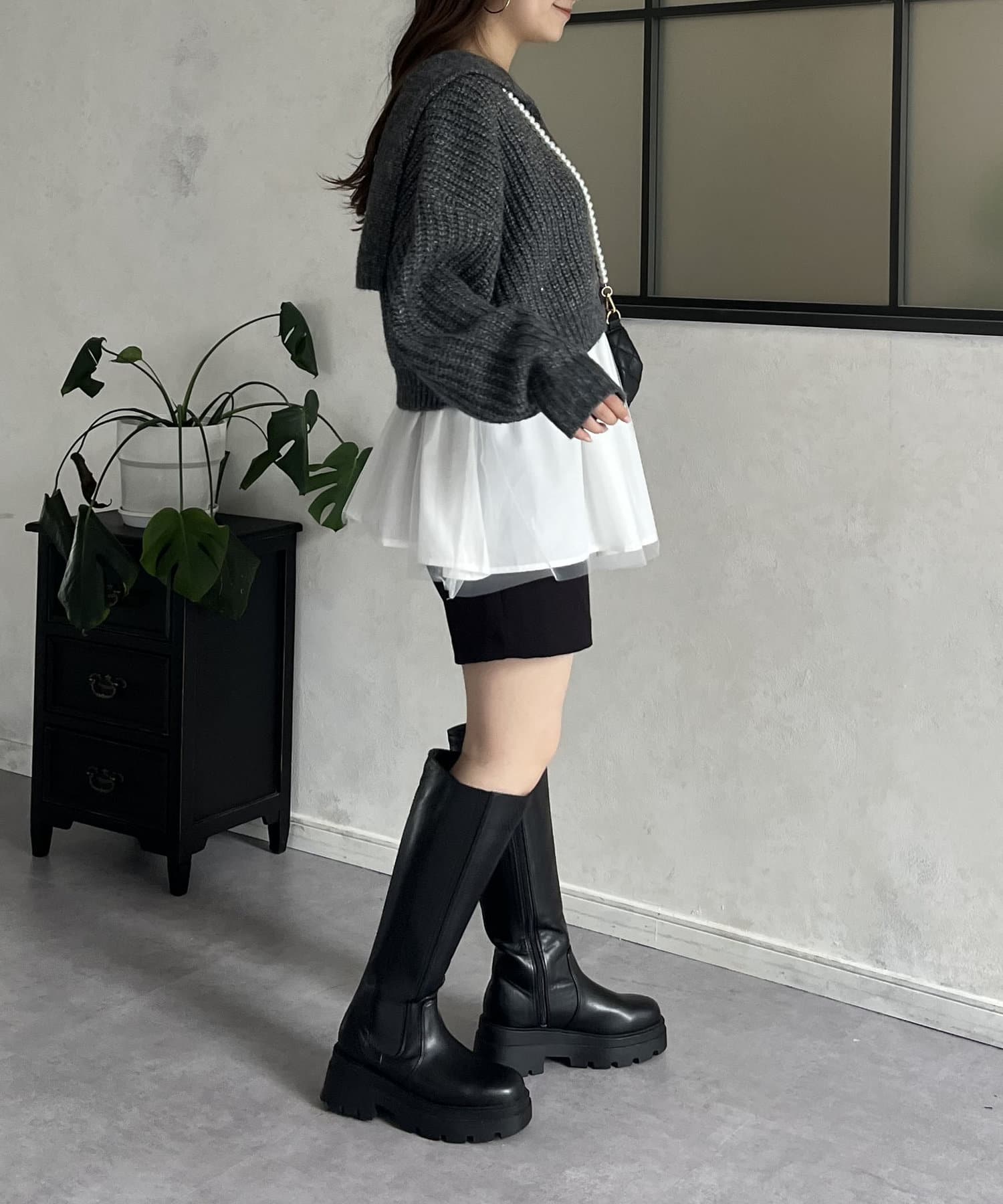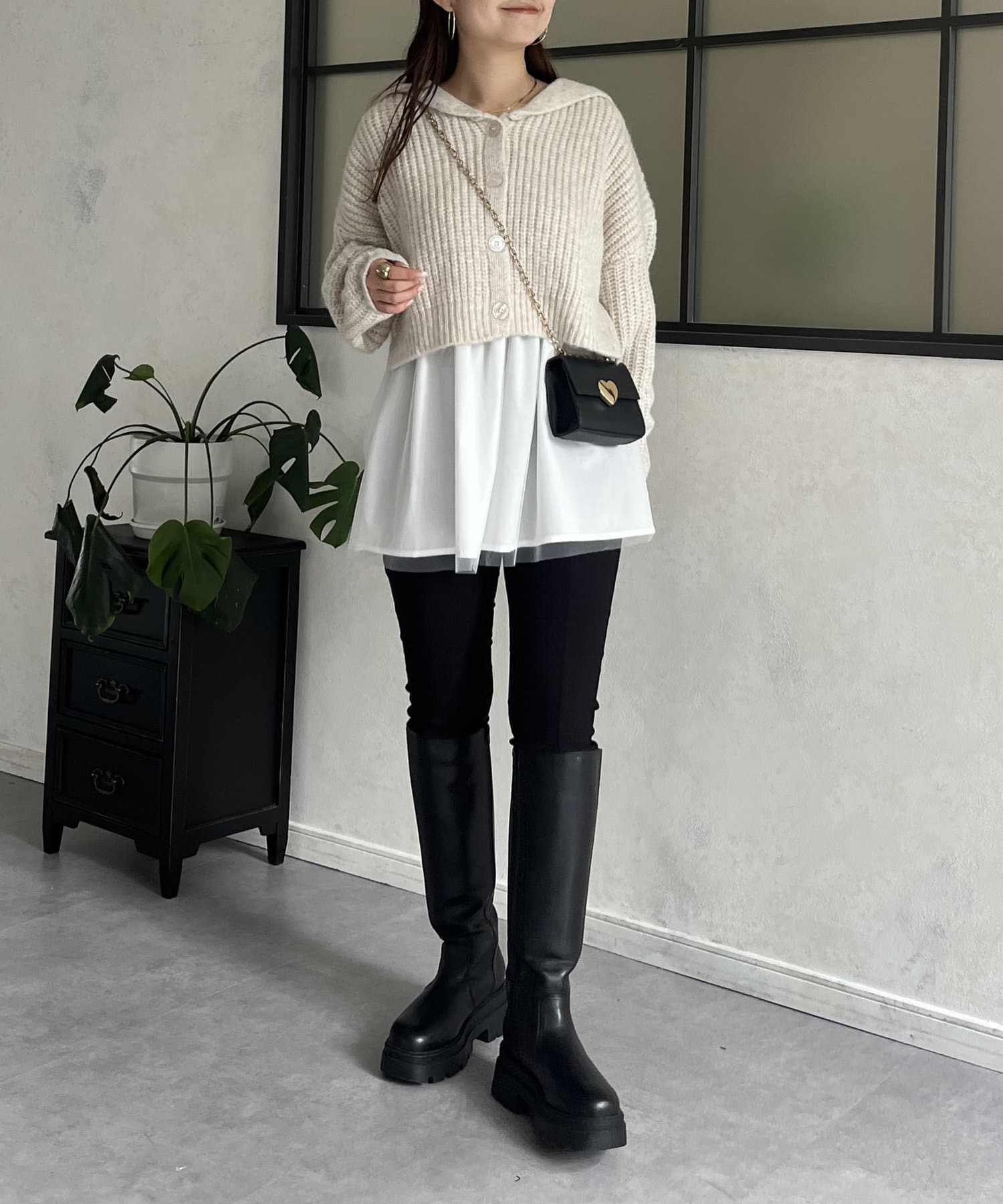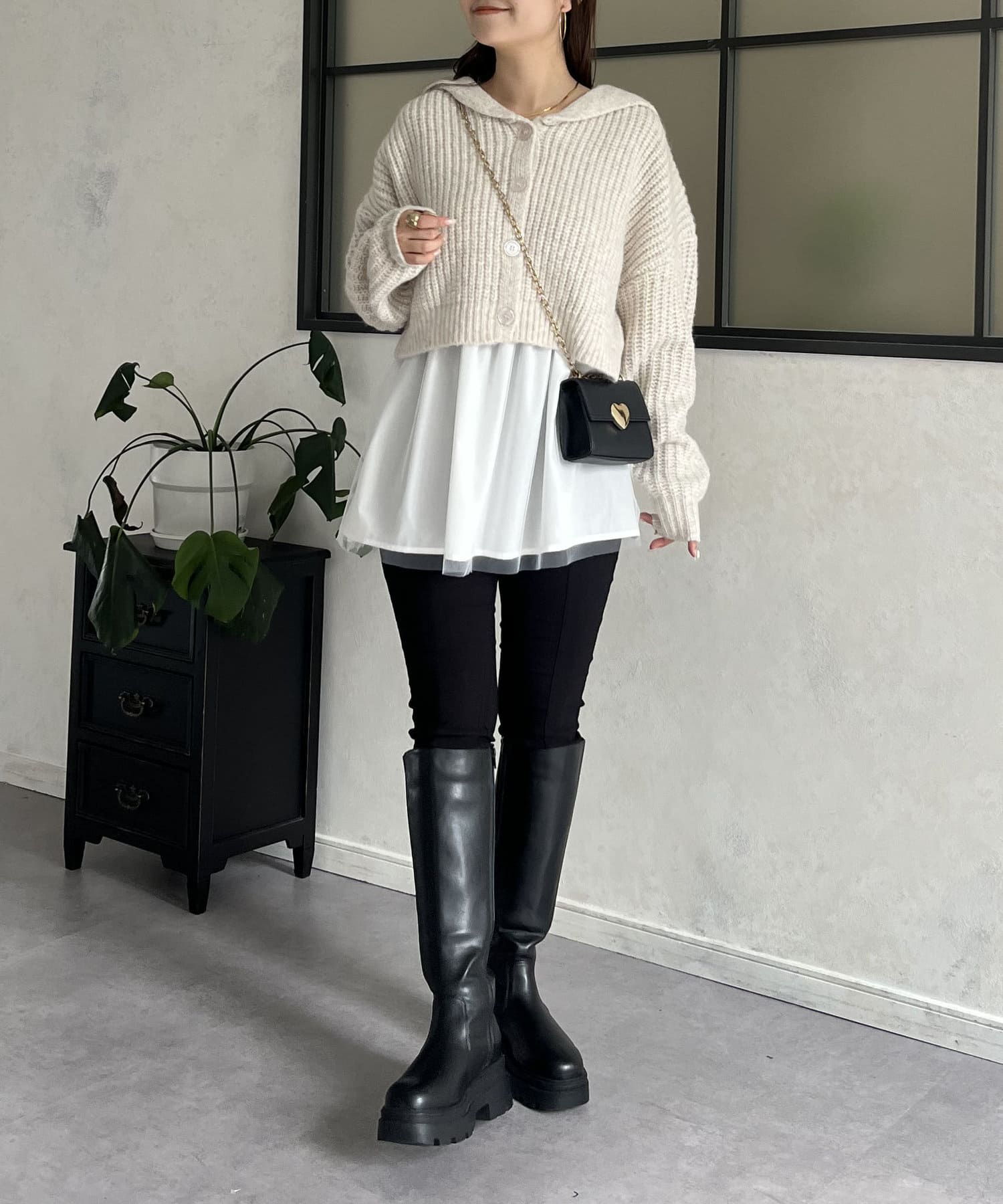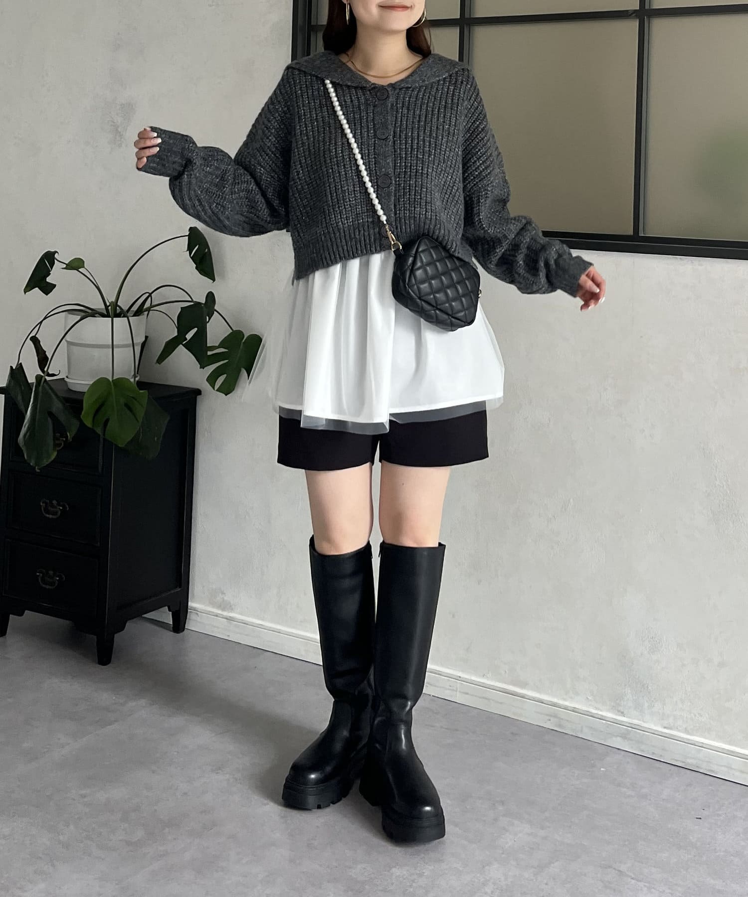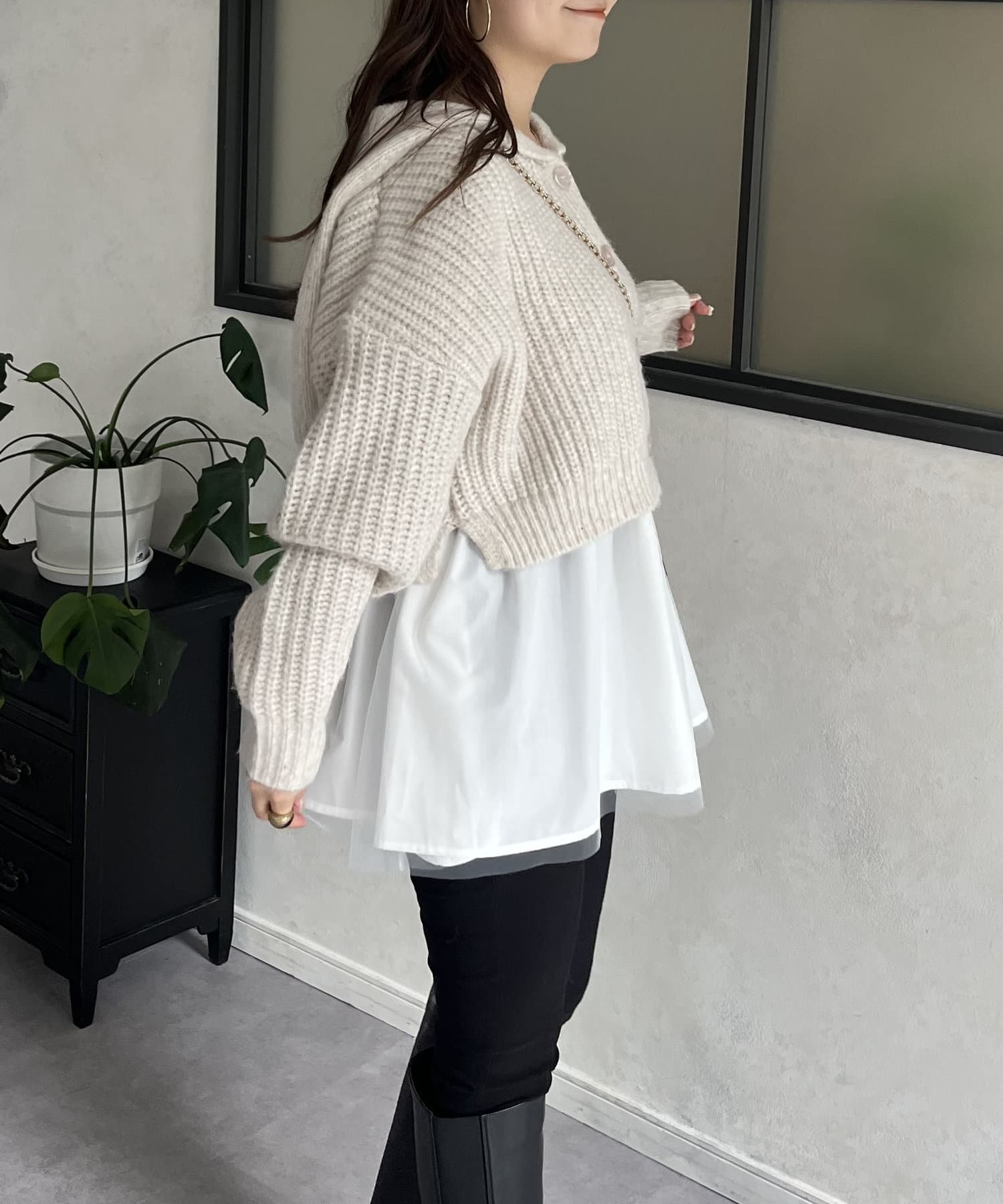 セーラーカラーニット×チュールレイヤードペプラムキャミセット