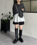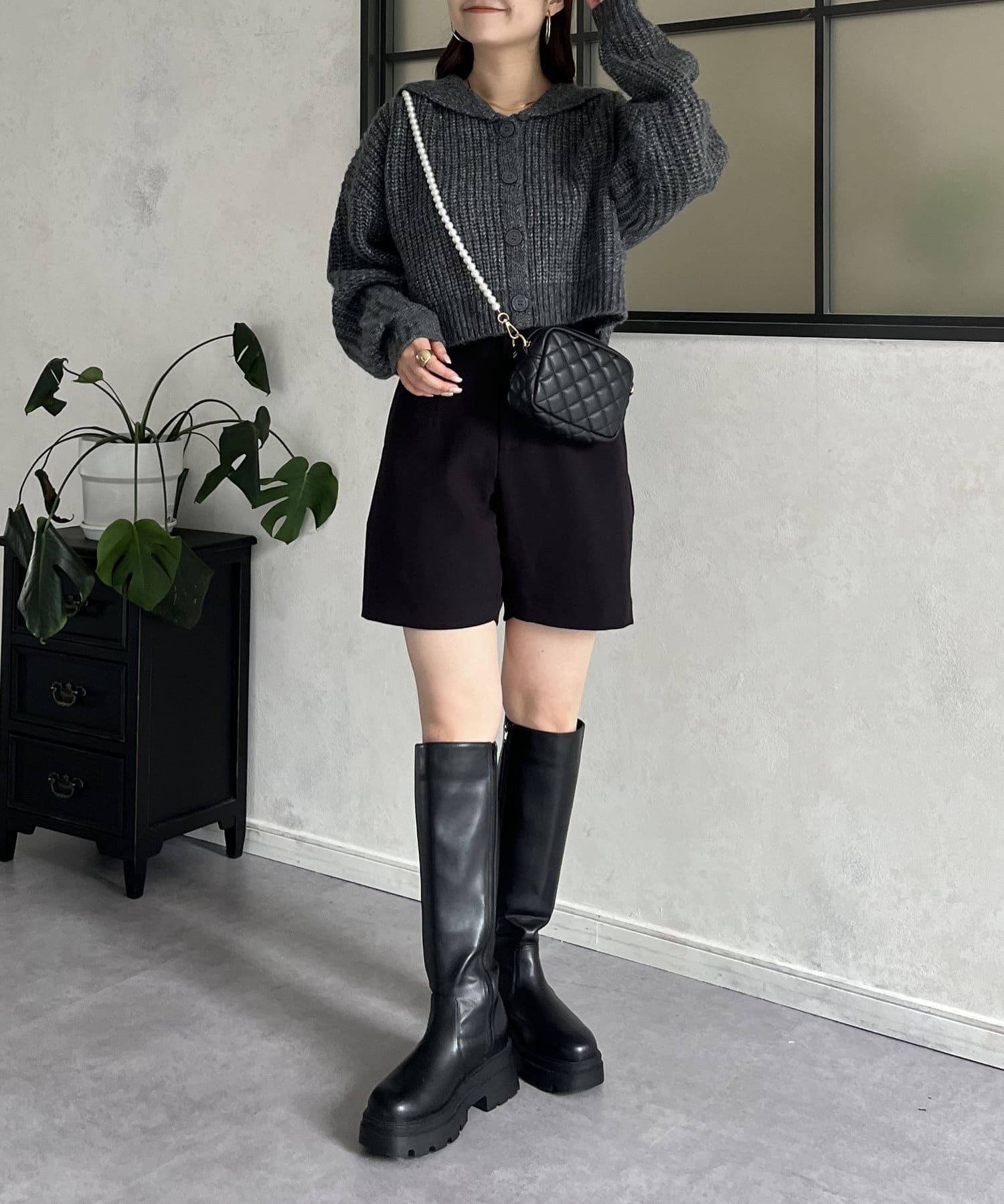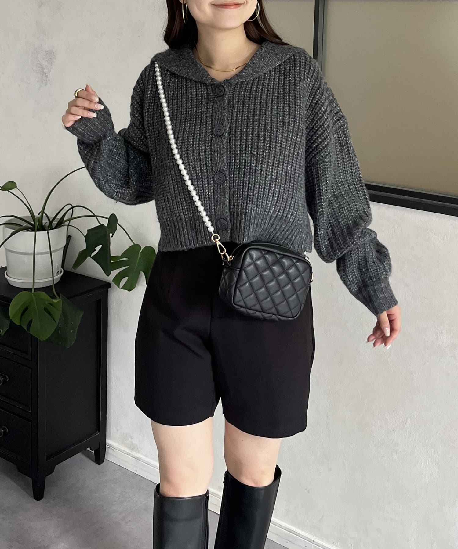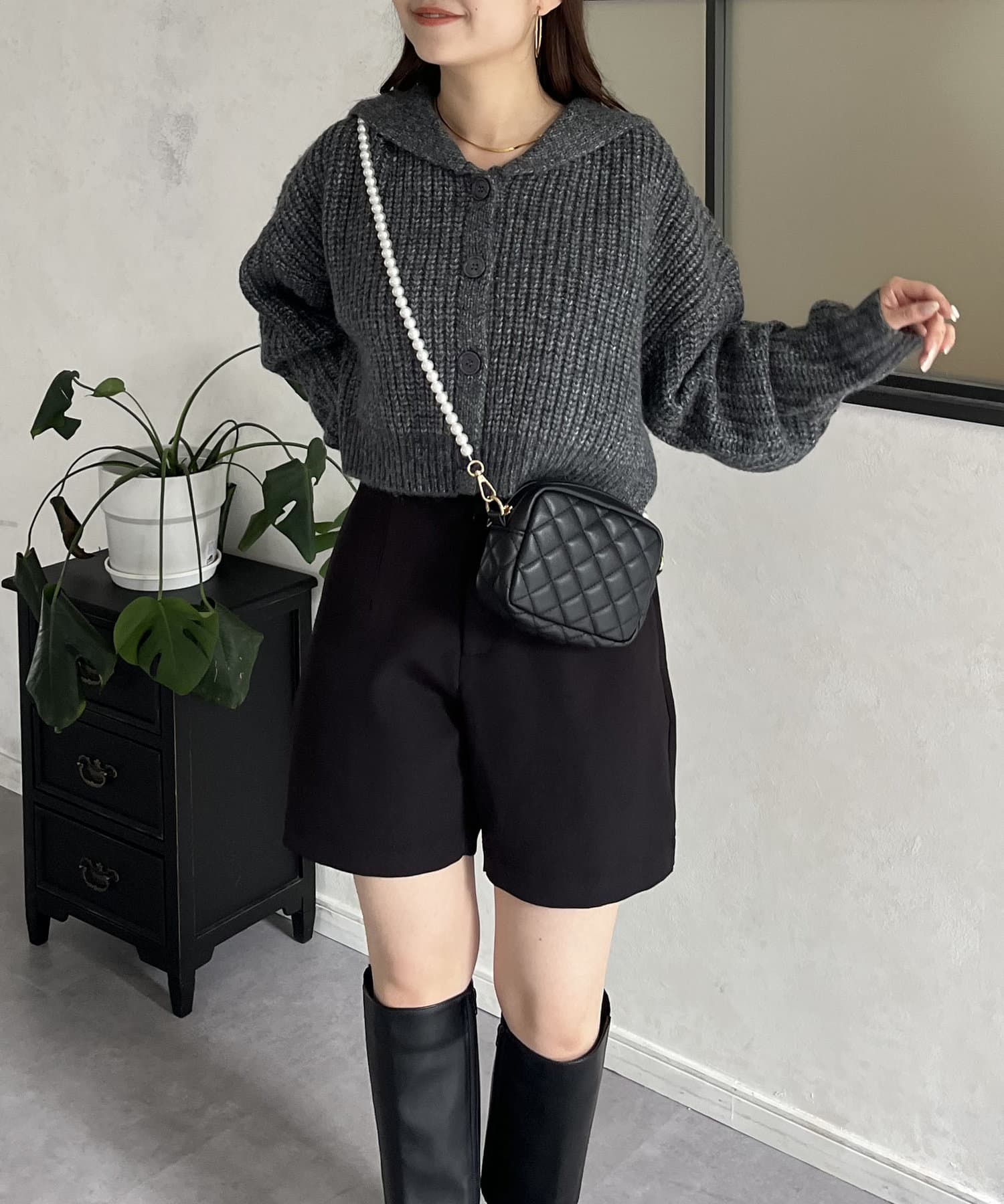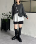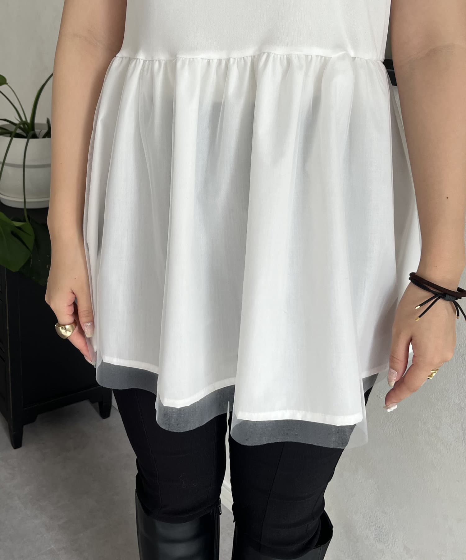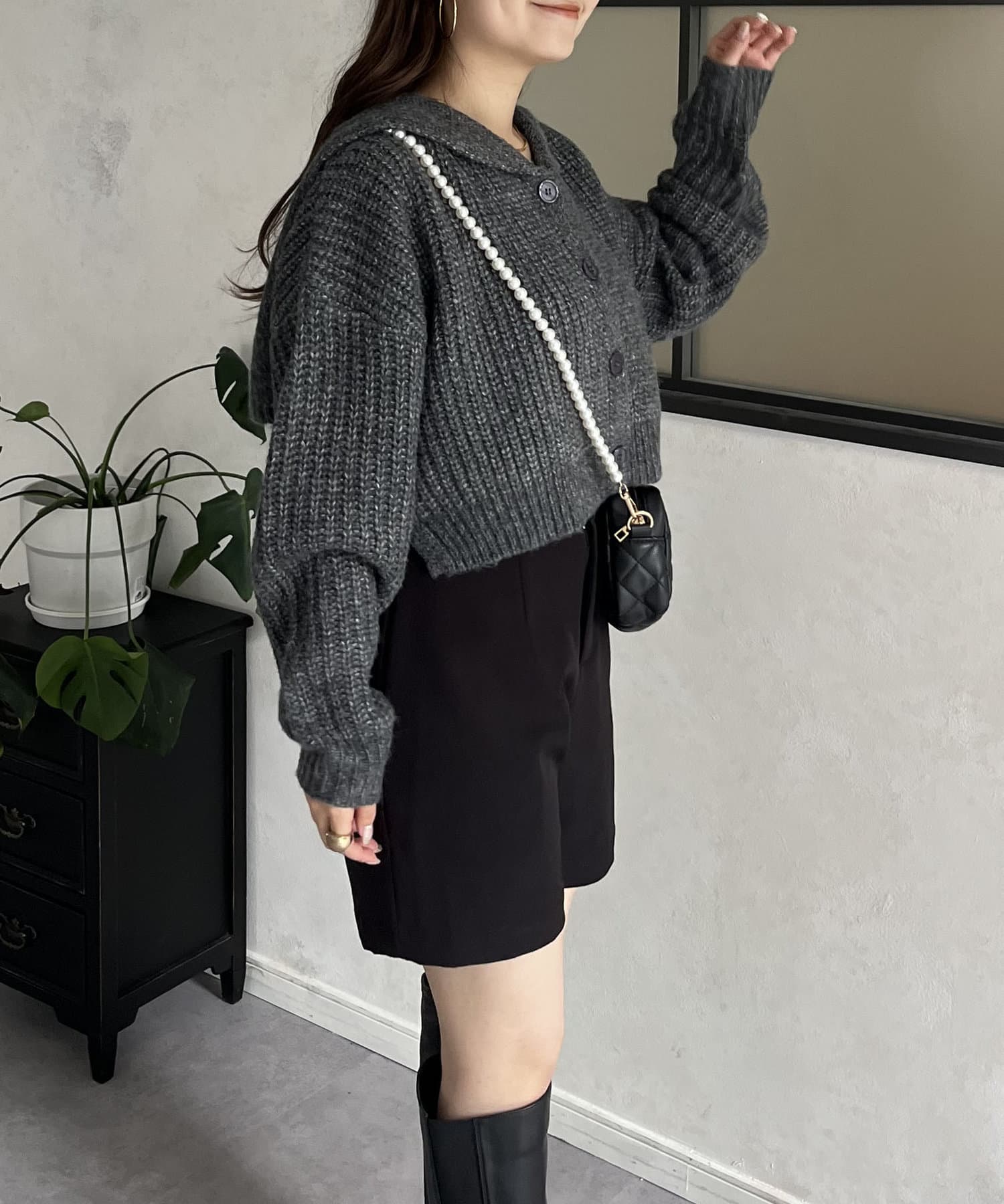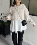 セーラーカラーニット×チュールレイヤードペプラムキャミセット