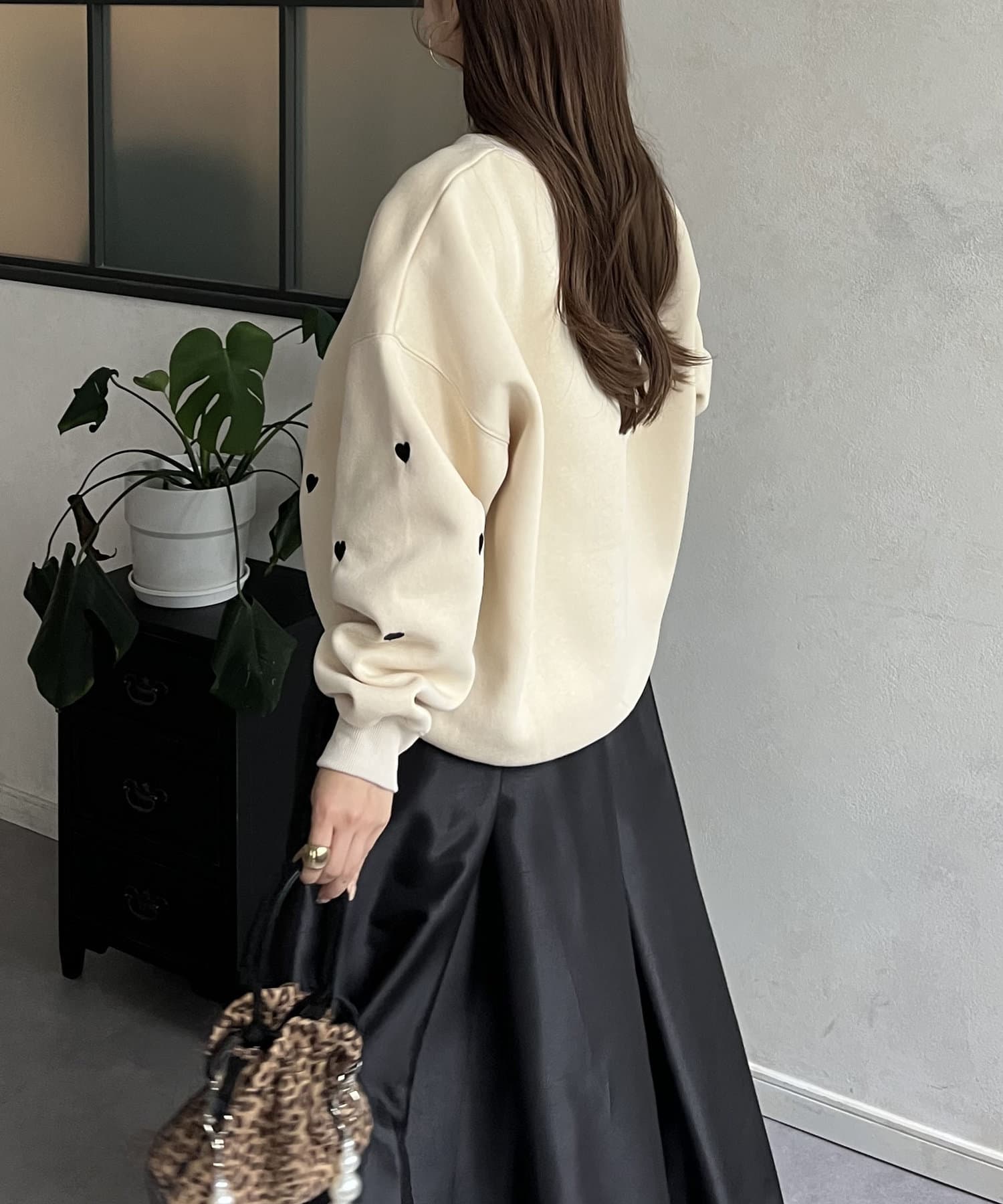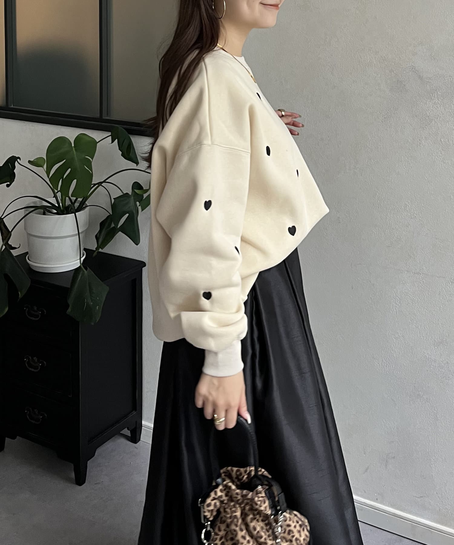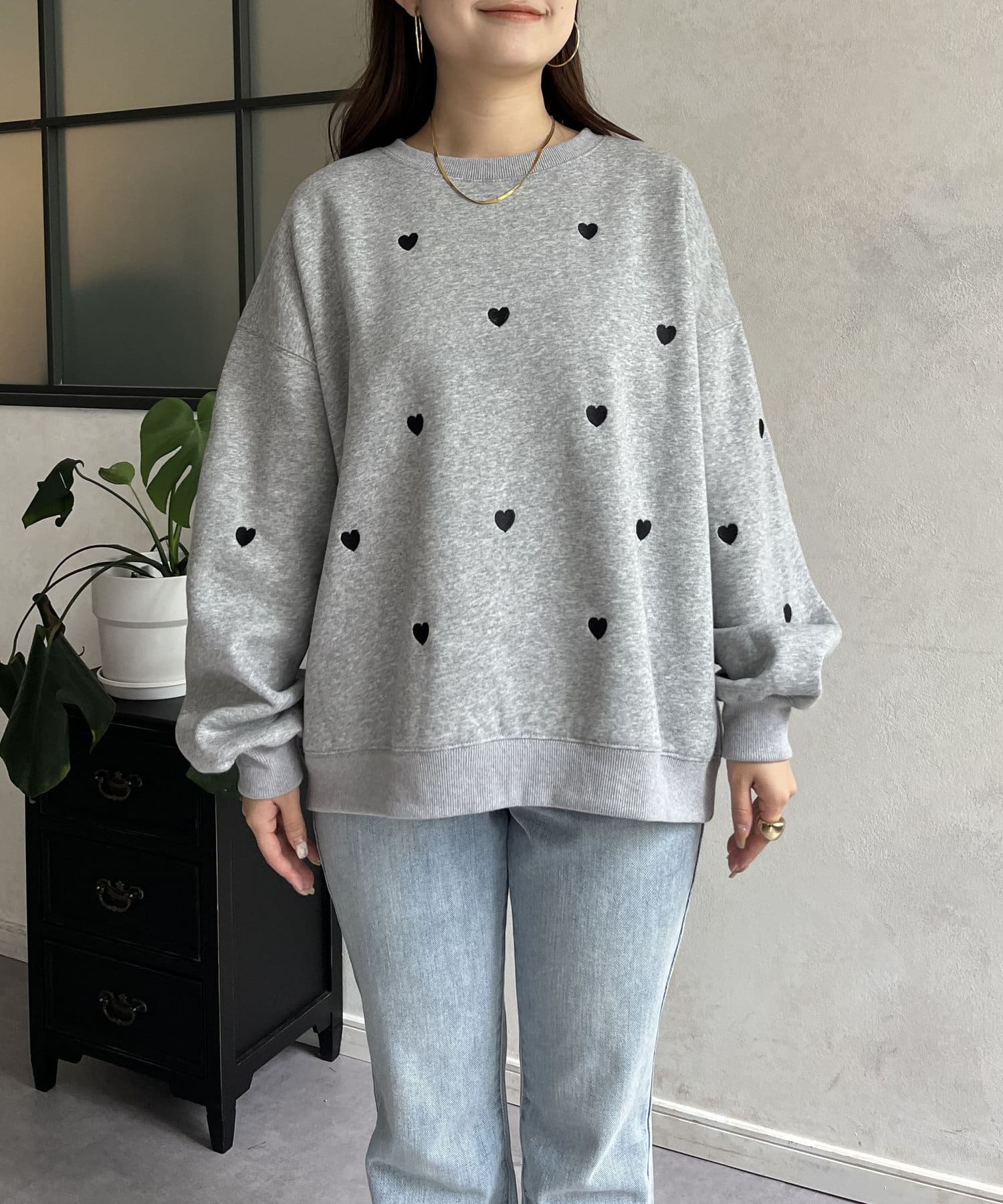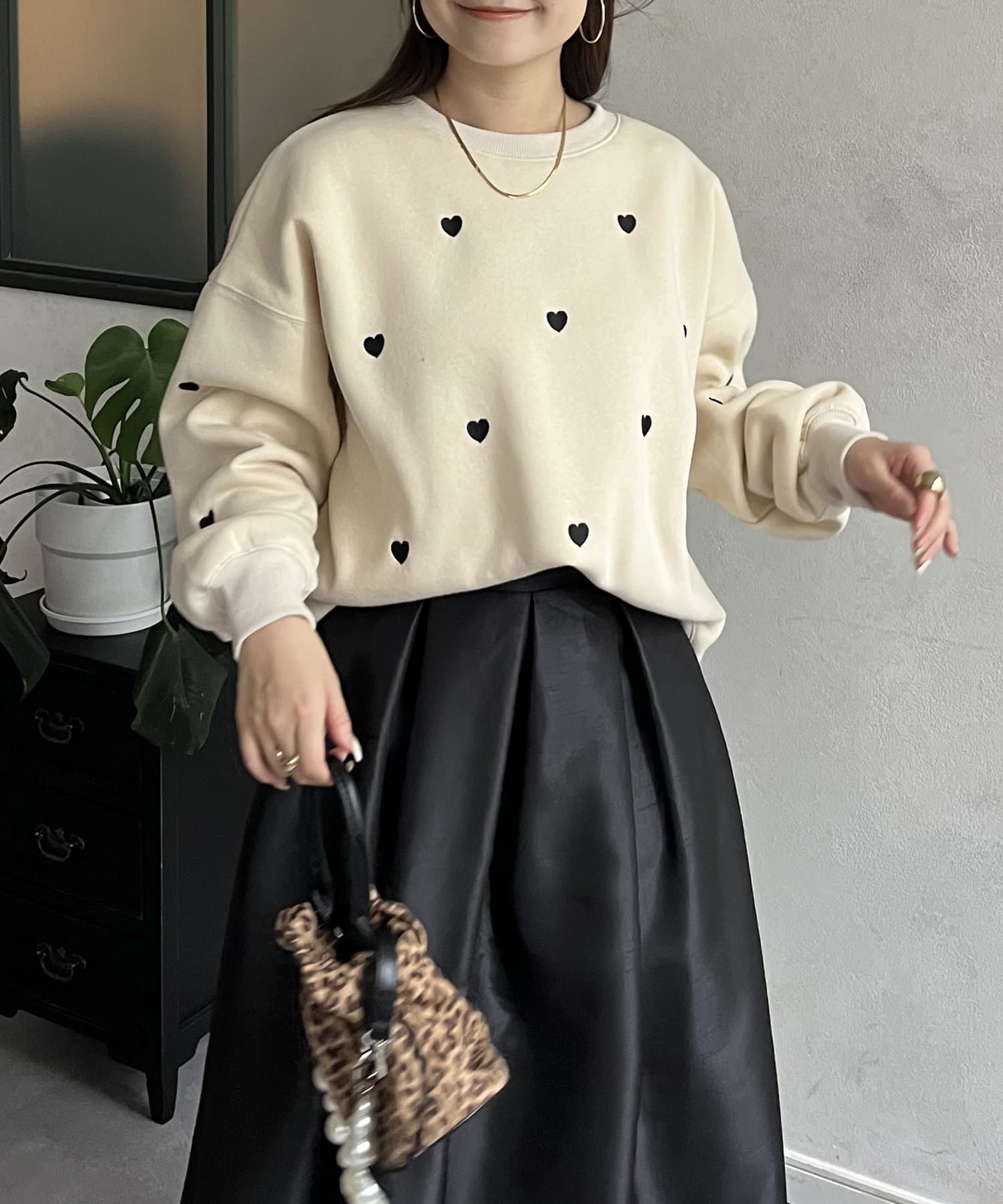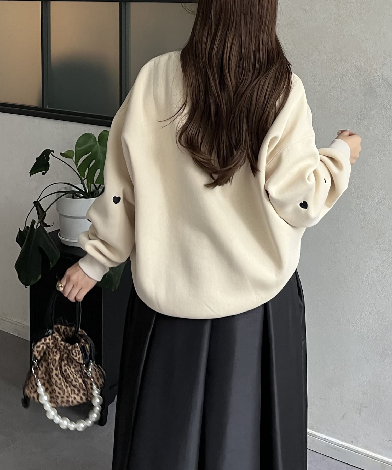 トレンドライクなハート刺繍が大人可愛いスウェット