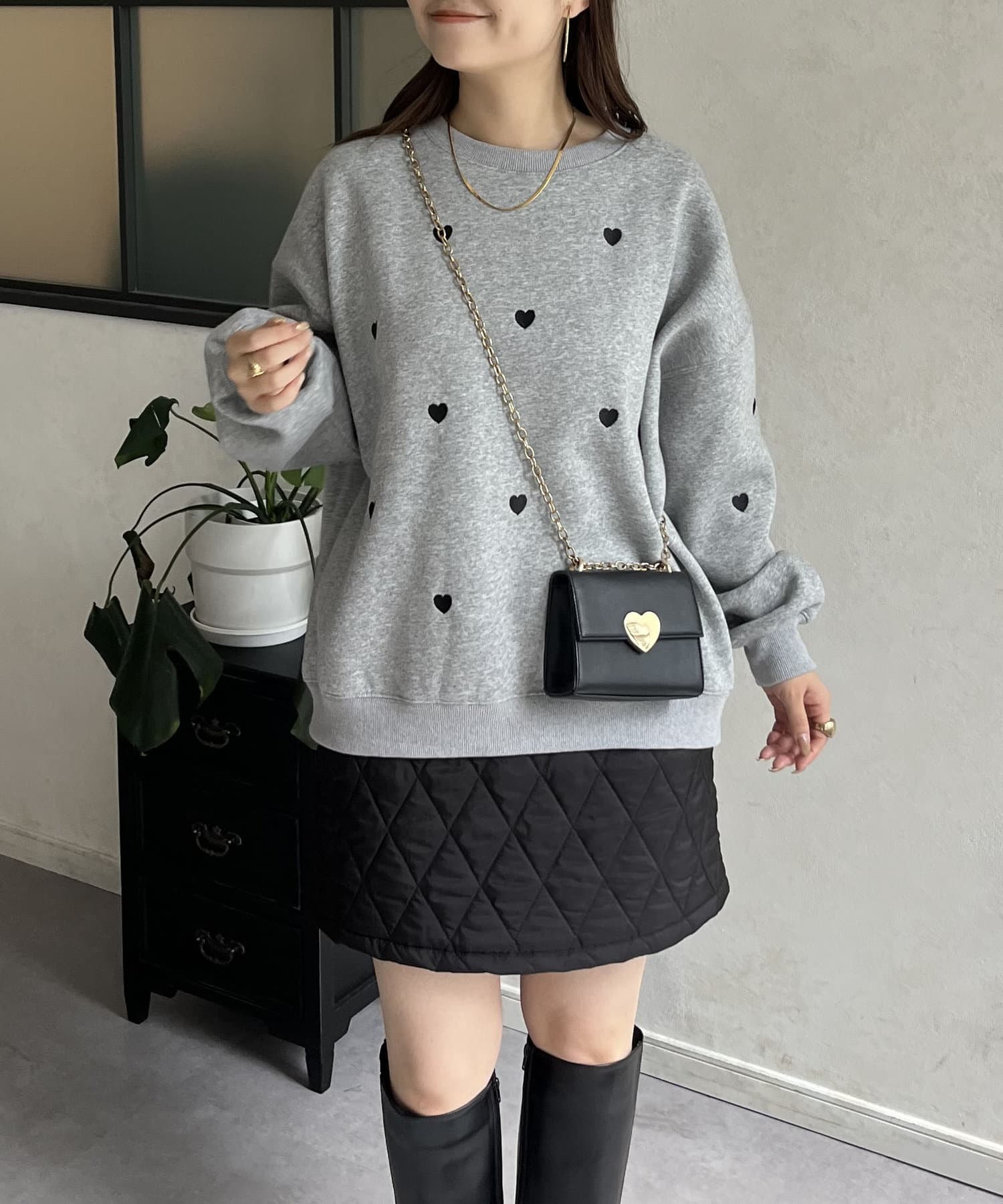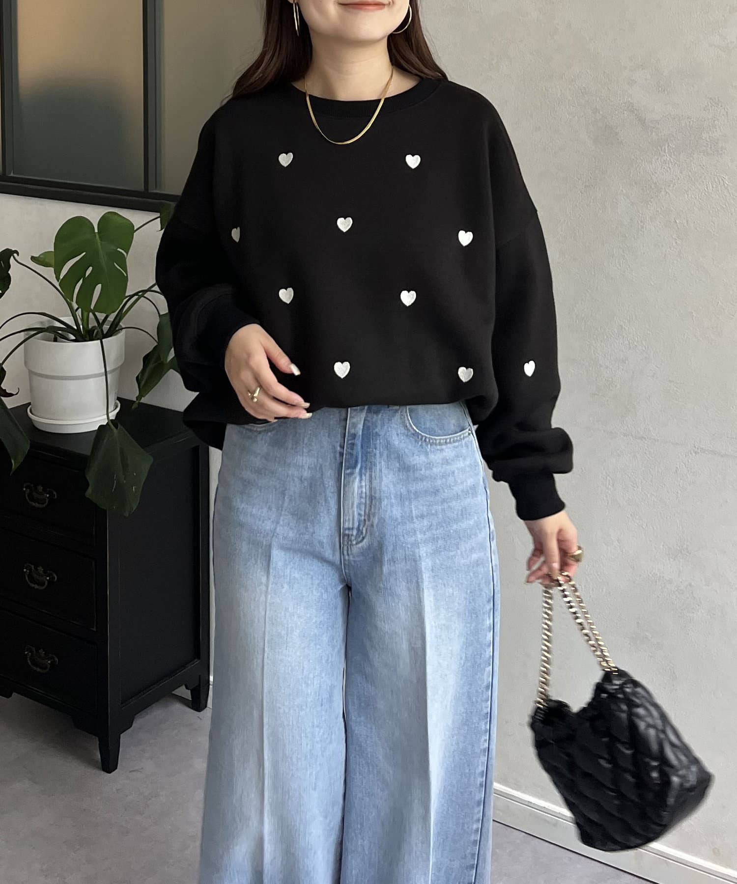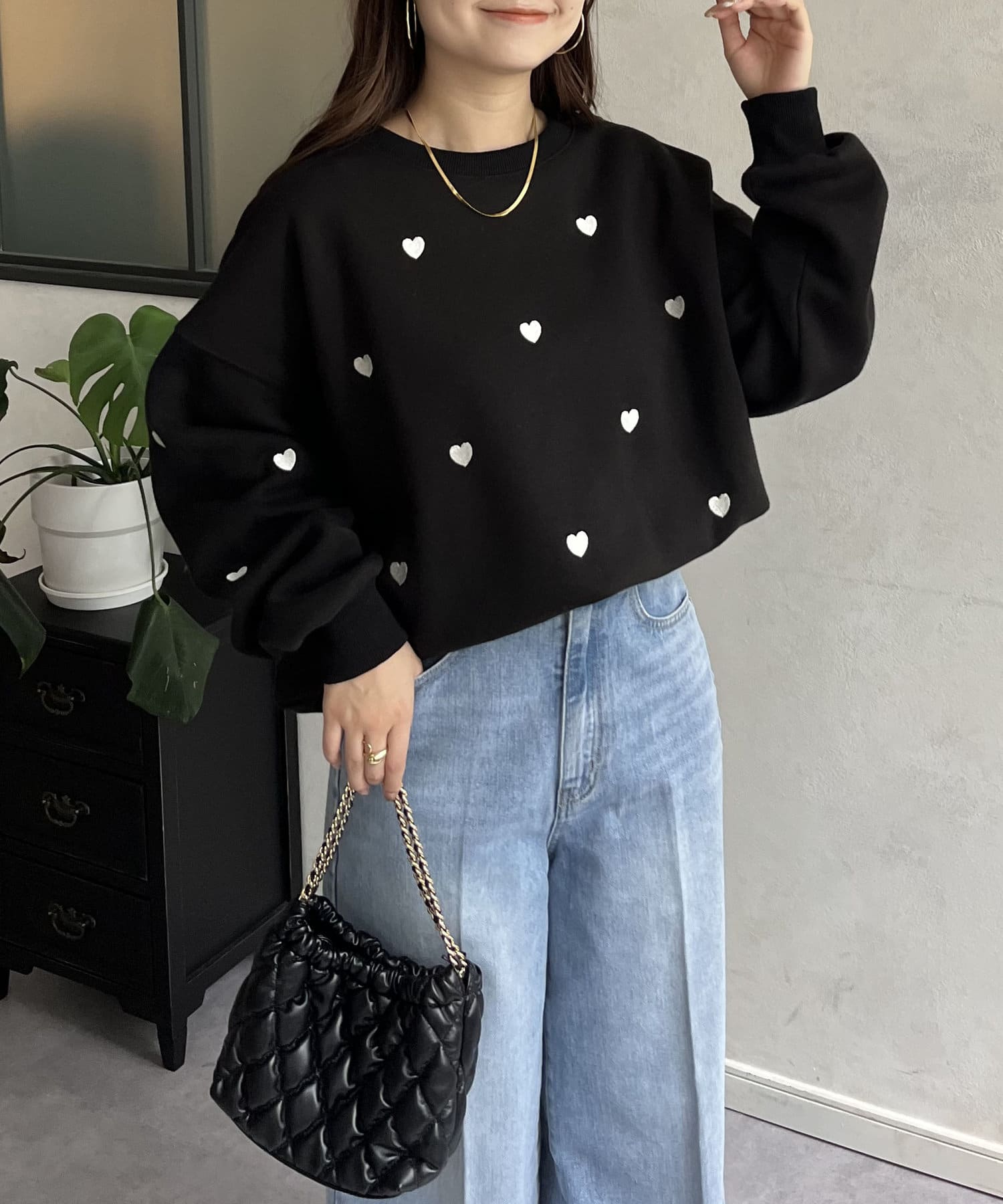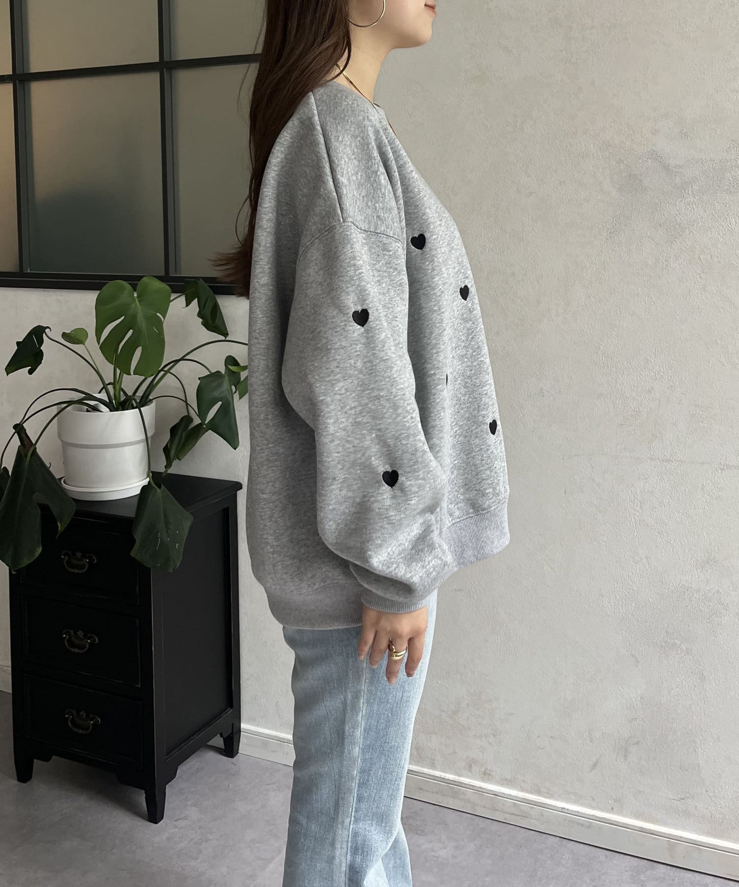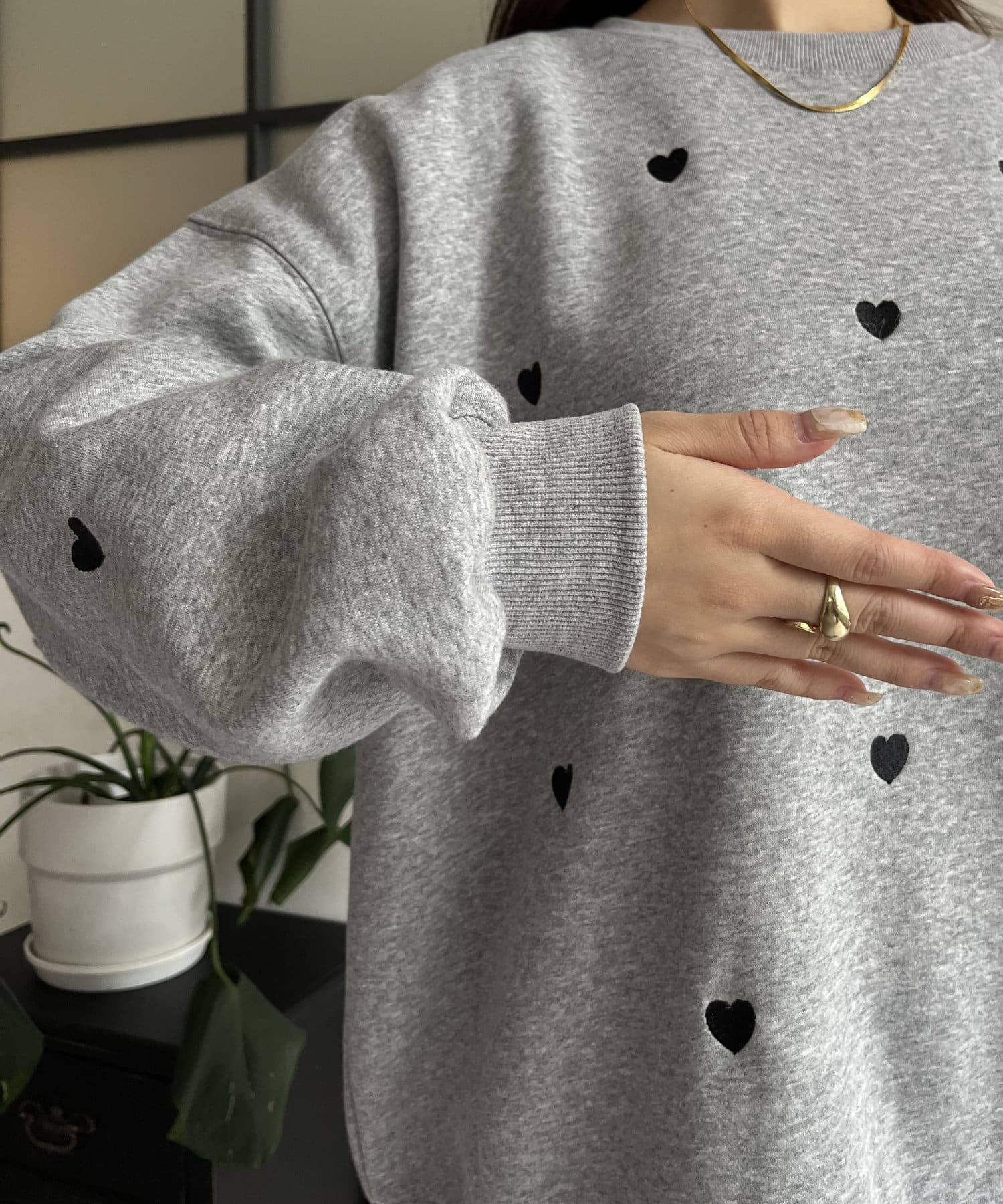 トレンドライクなハート刺繍が大人可愛いスウェット
