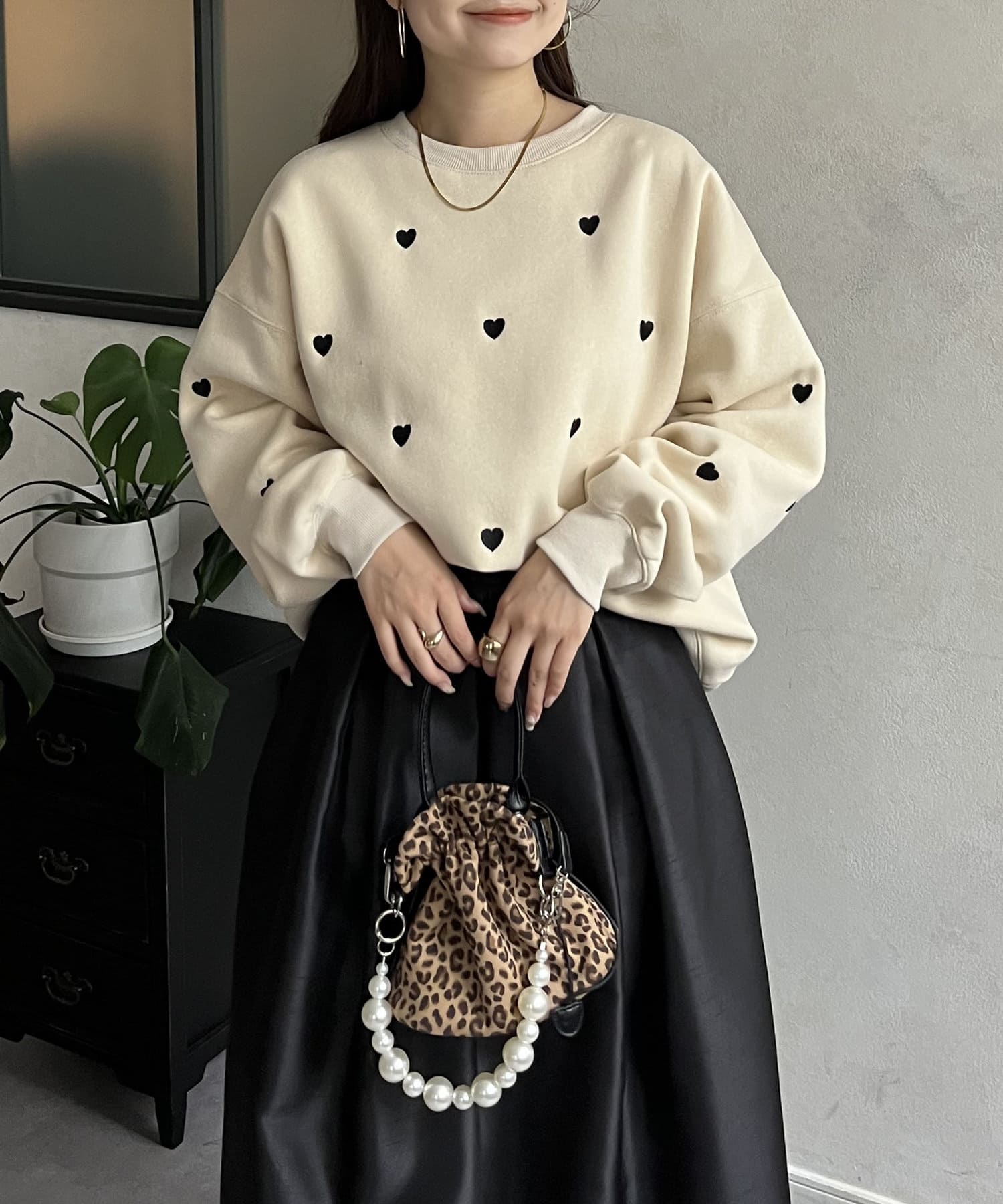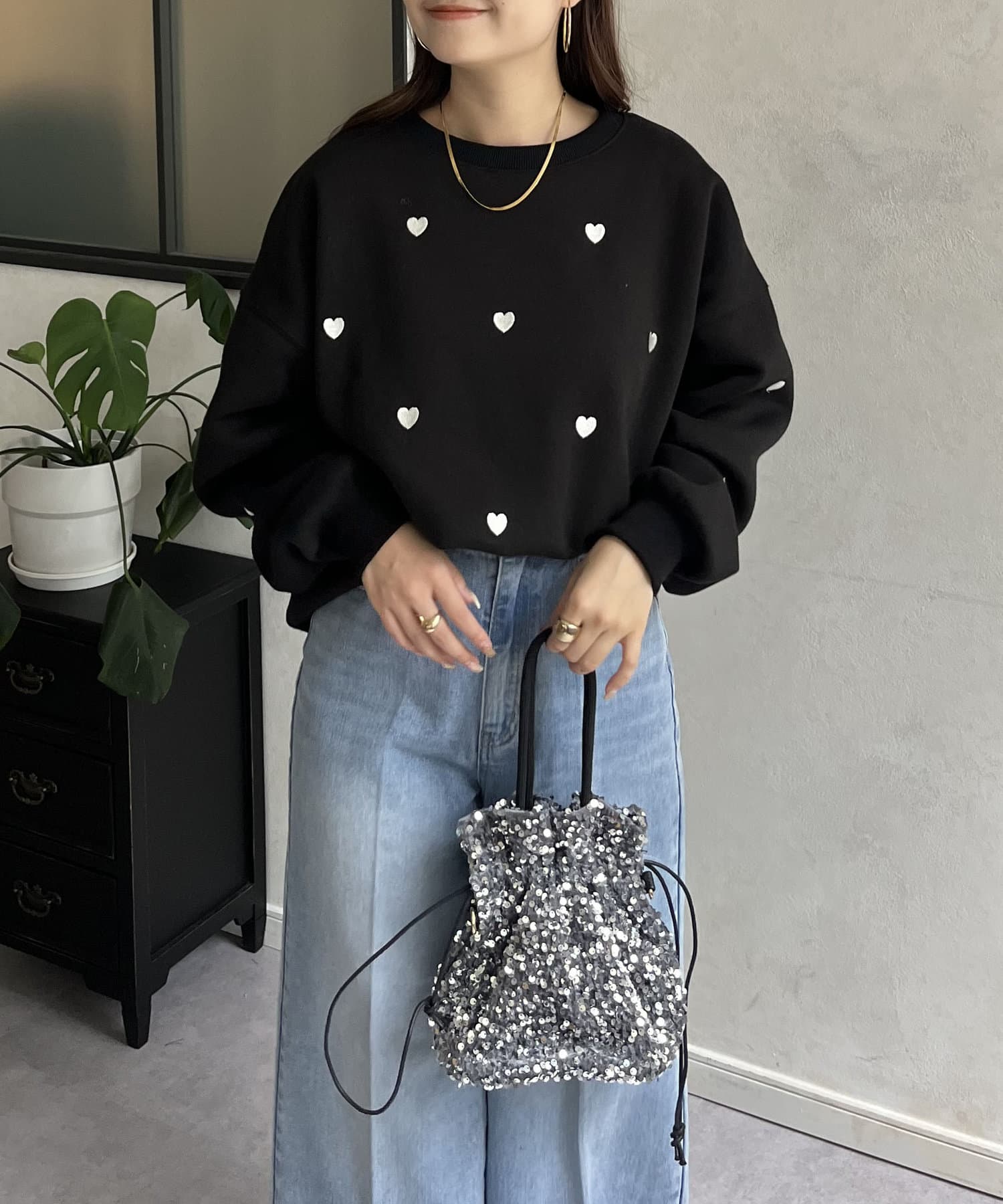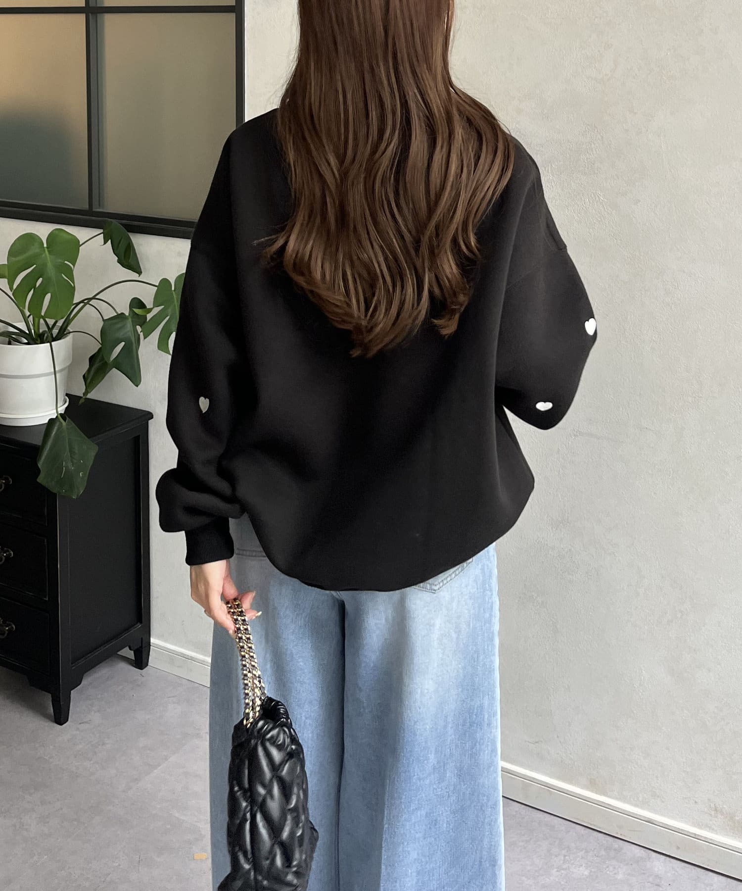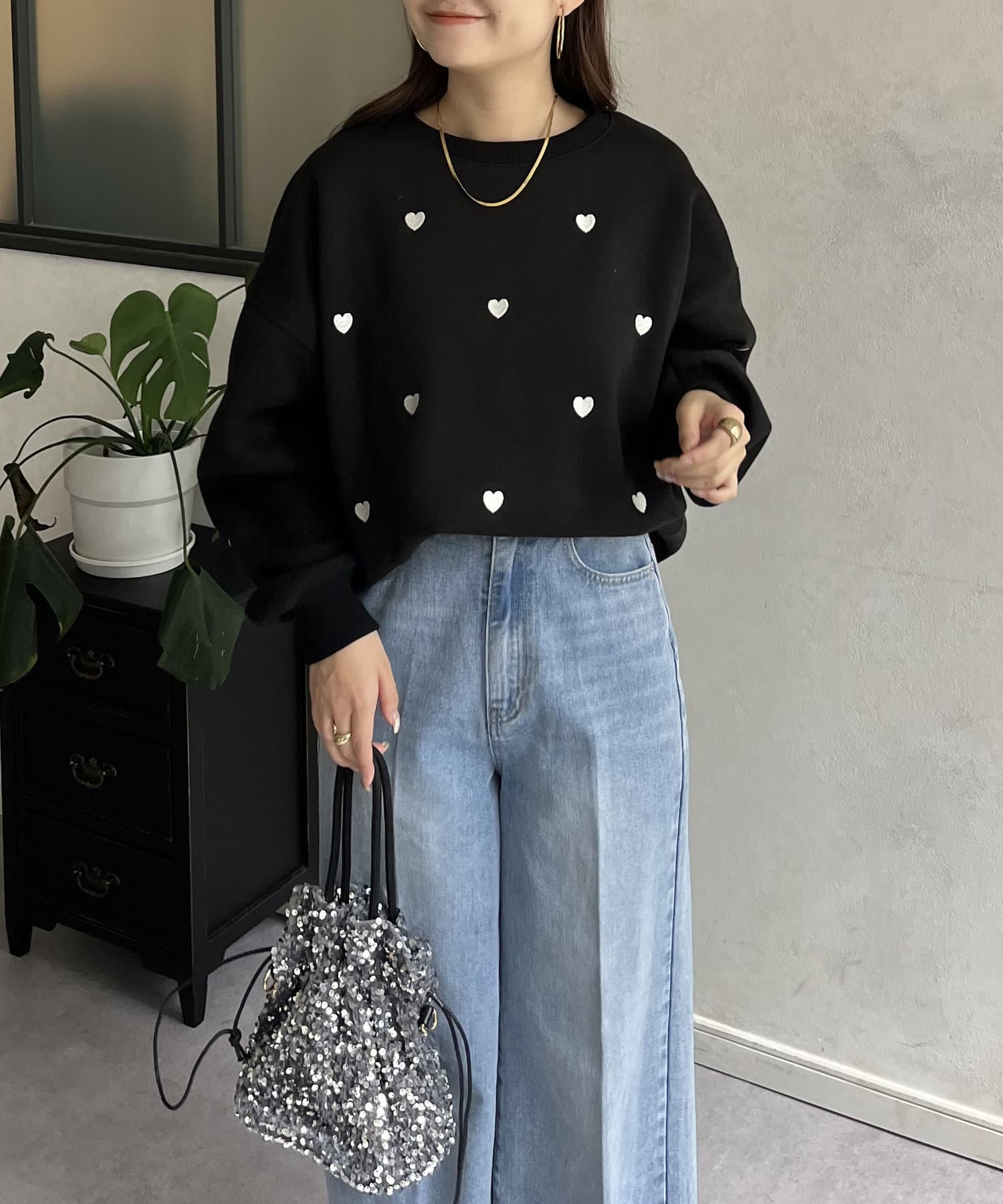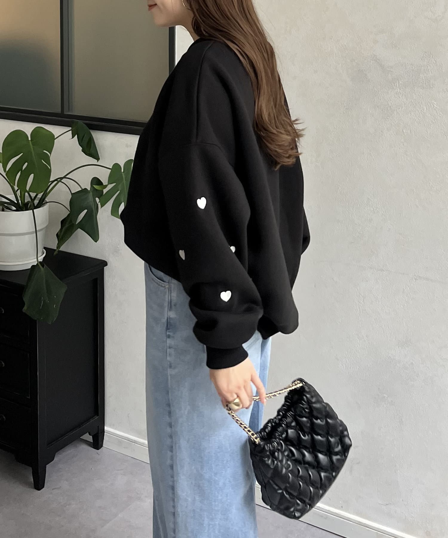 トレンドライクなハート刺繍が大人可愛いスウェット