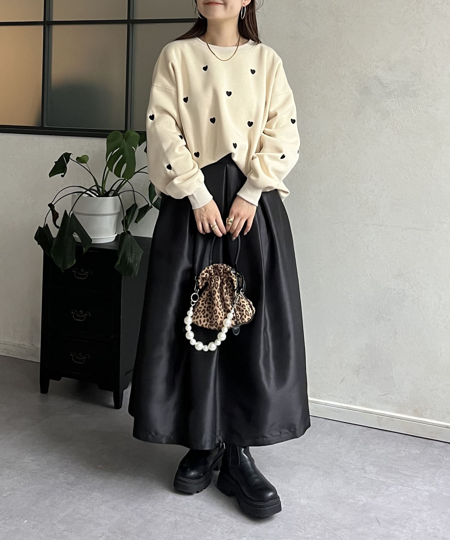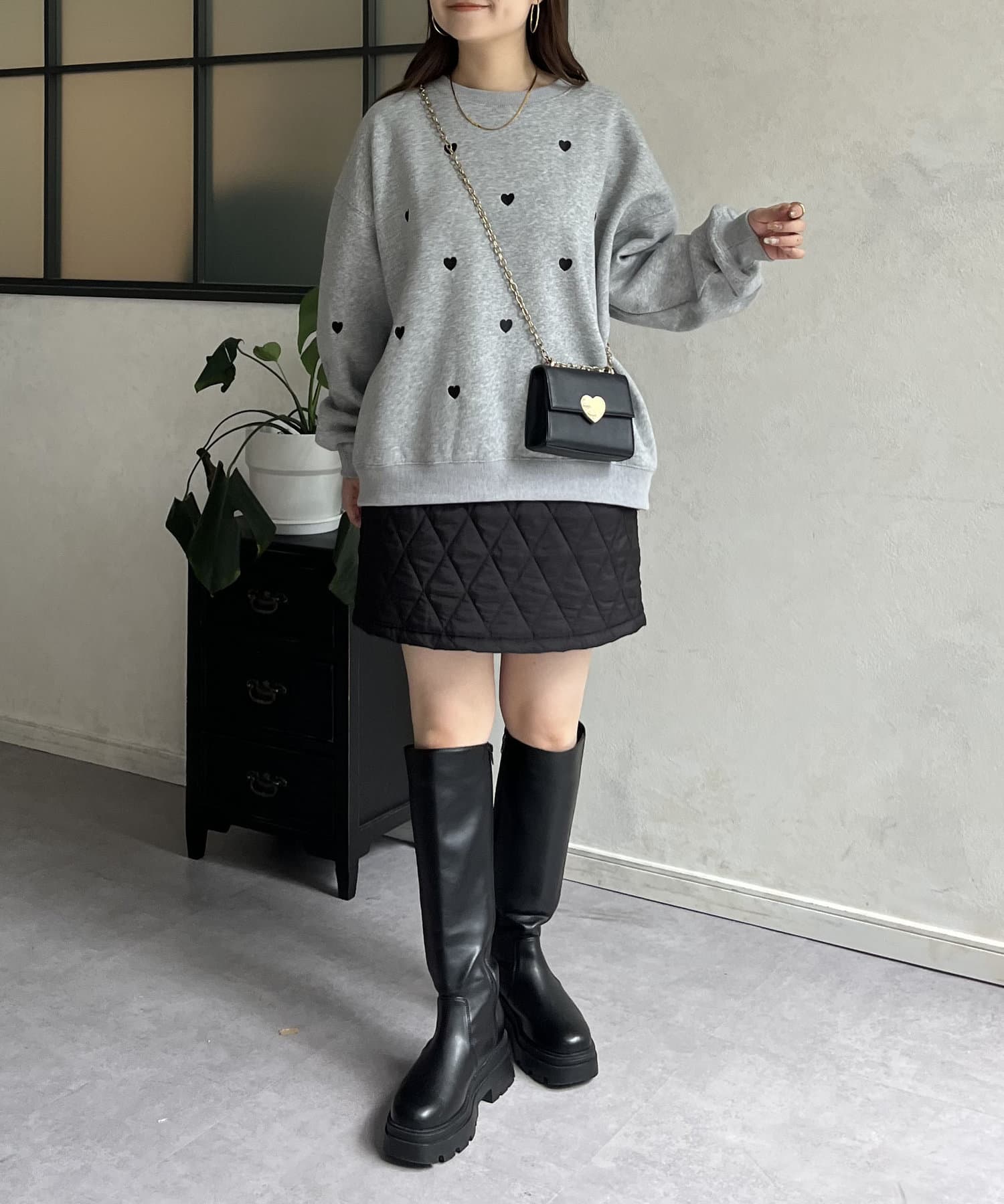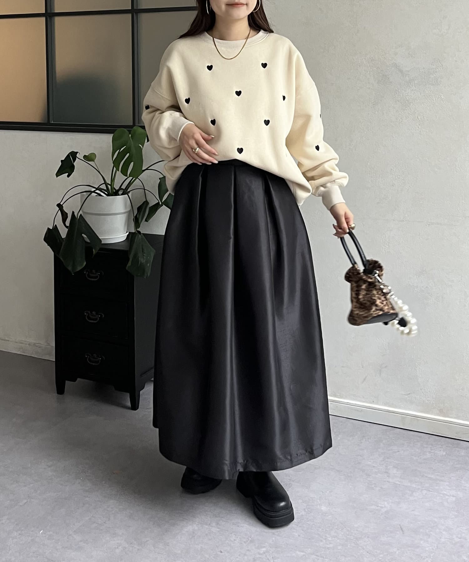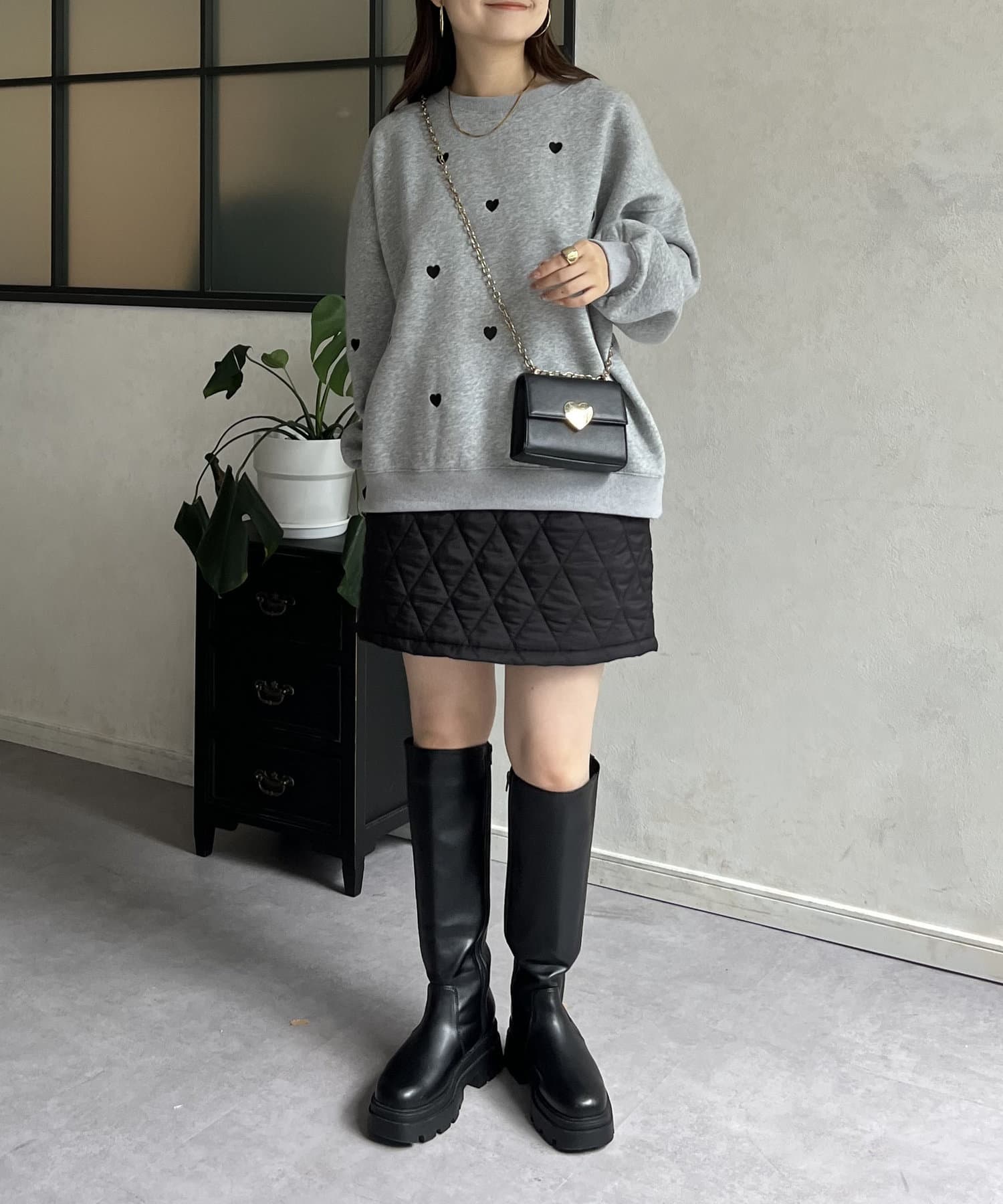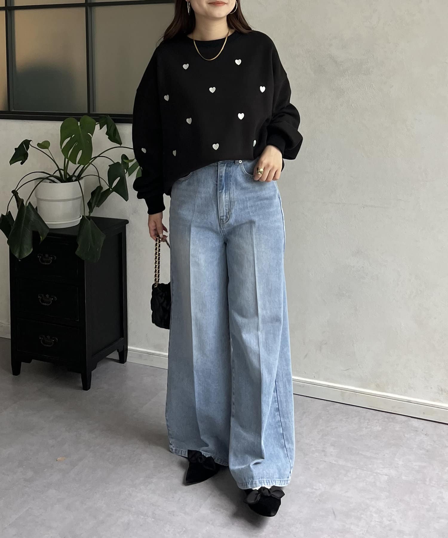 トレンドライクなハート刺繍が大人可愛いスウェット
