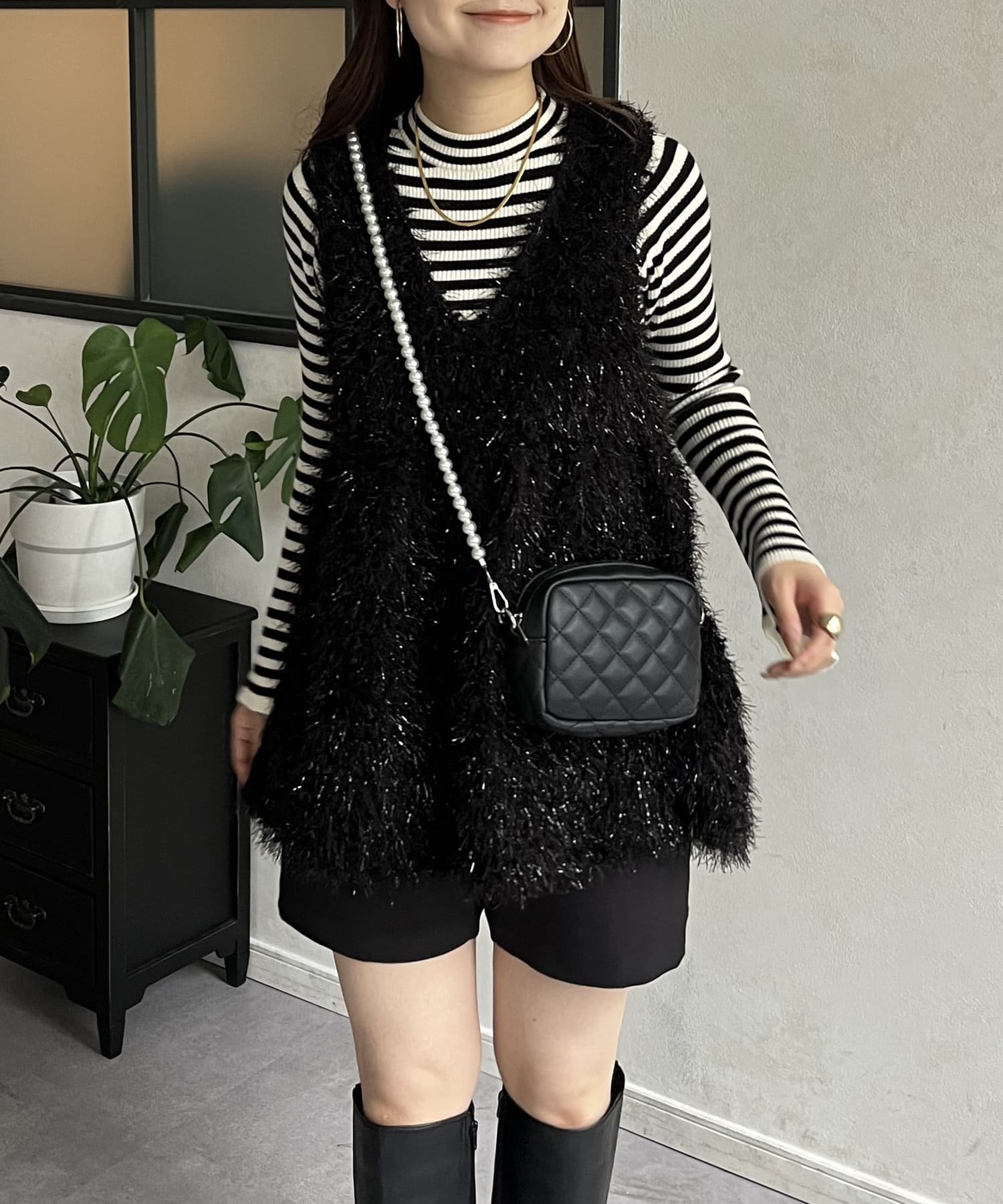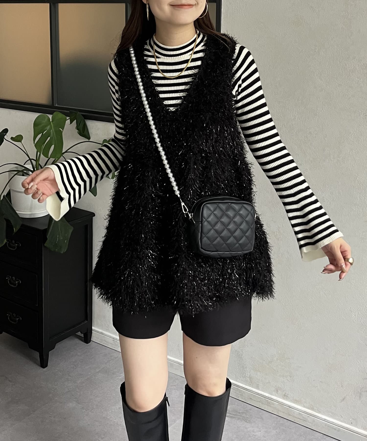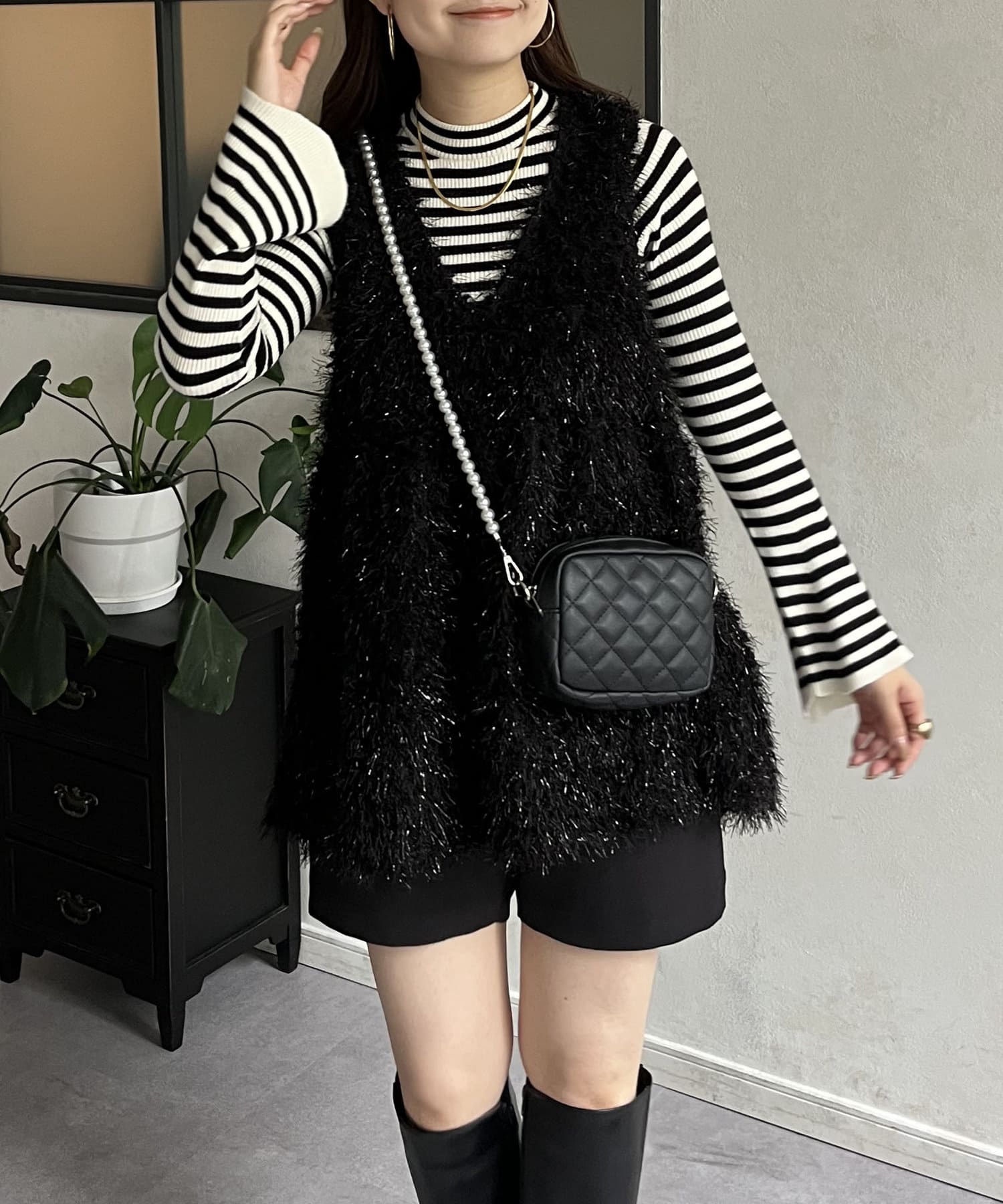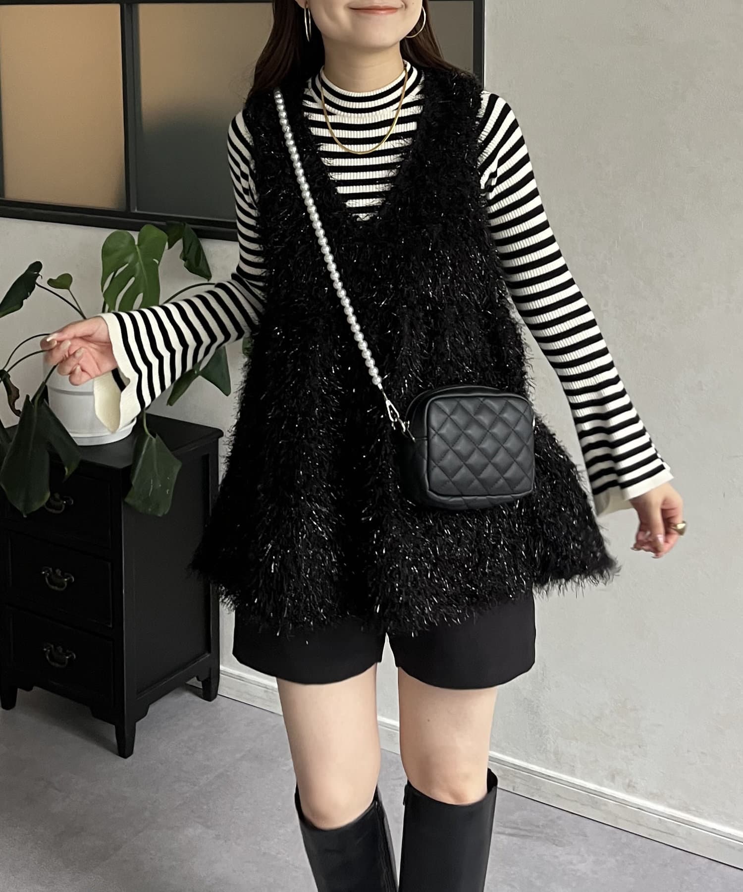 コーデにプラスするだけでお洒落見えが叶うラメシャギーベスト