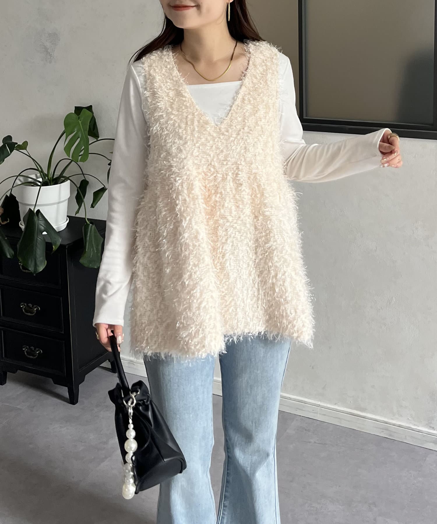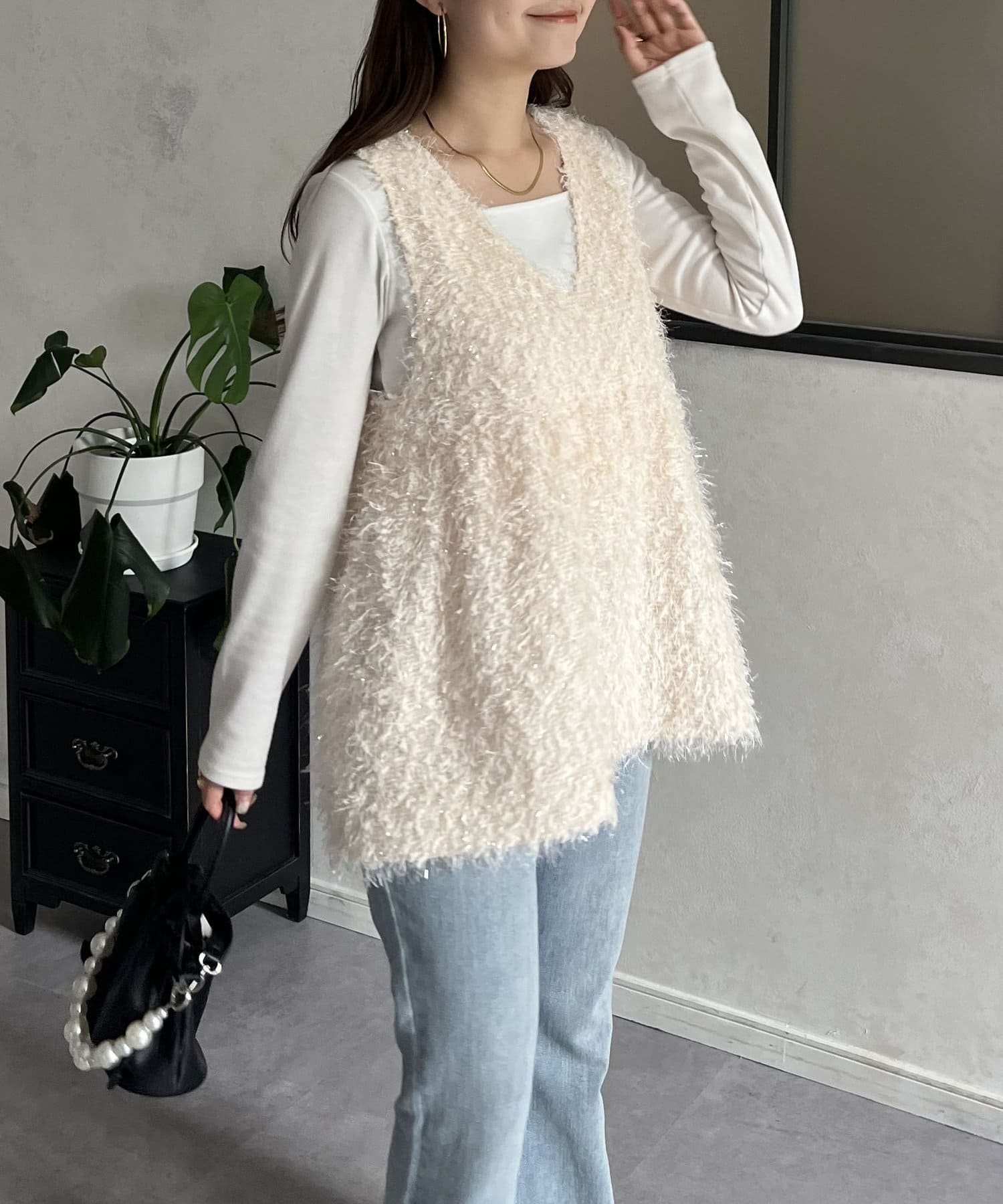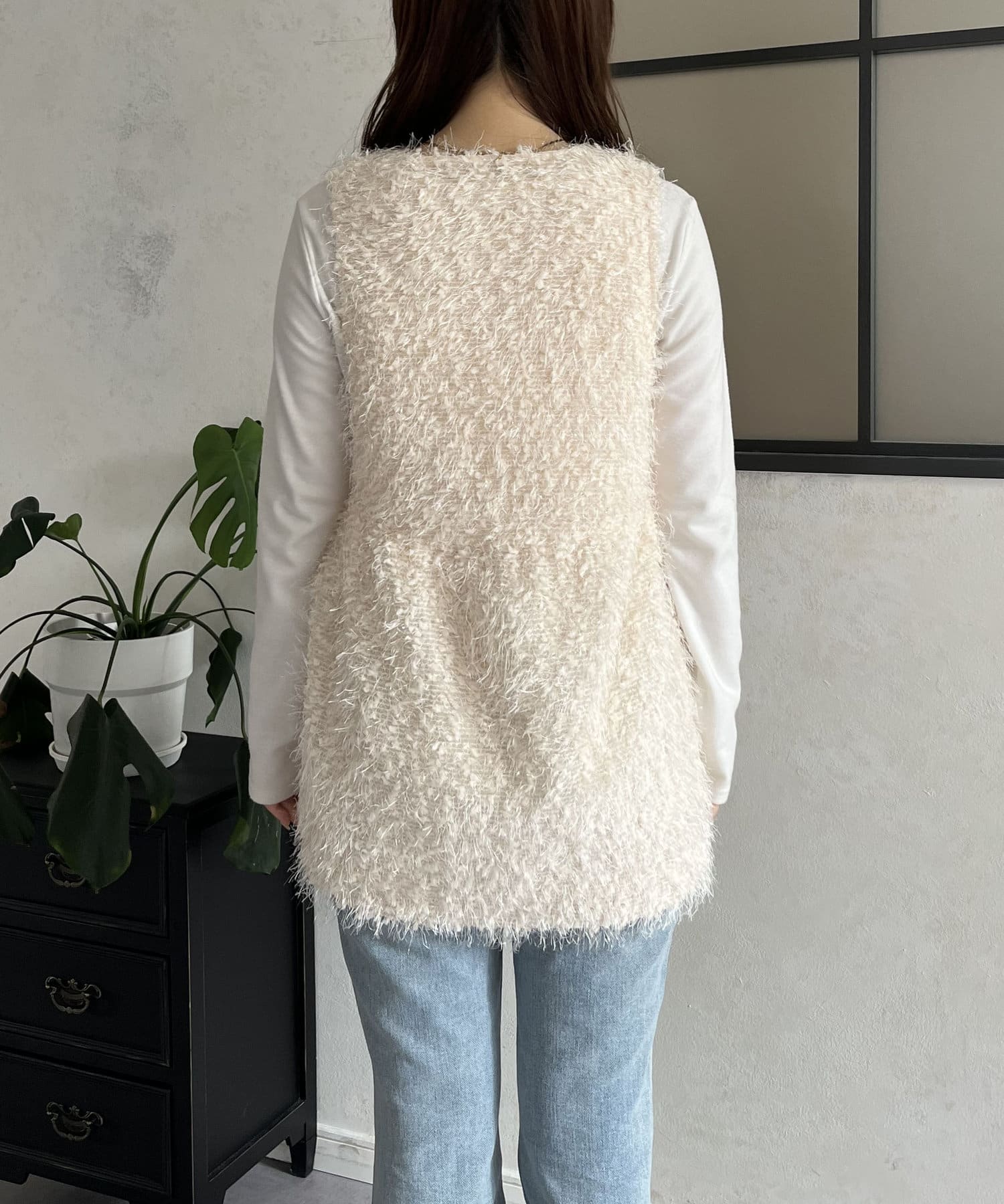 コーデにプラスするだけでお洒落見えが叶うラメシャギーベスト