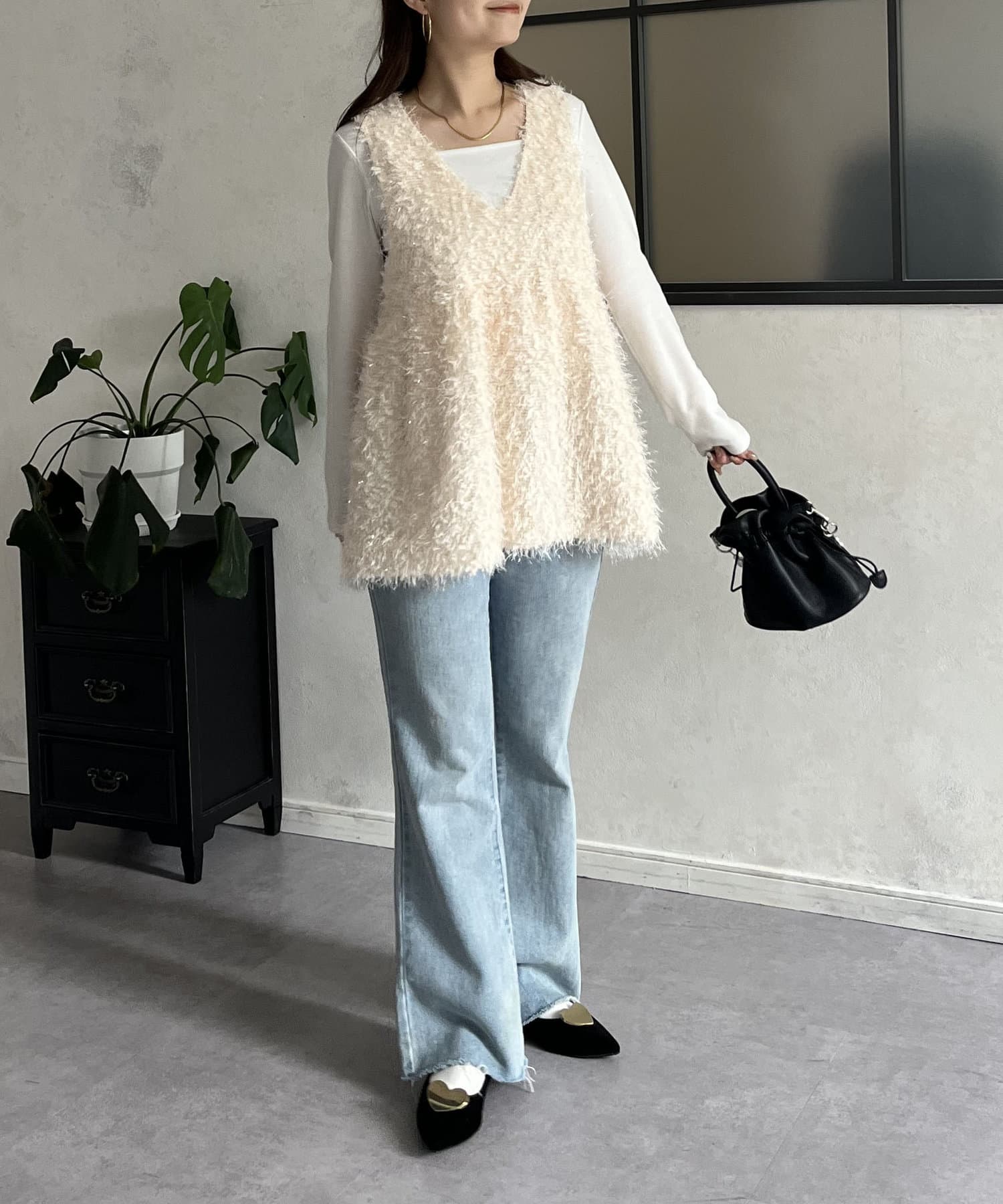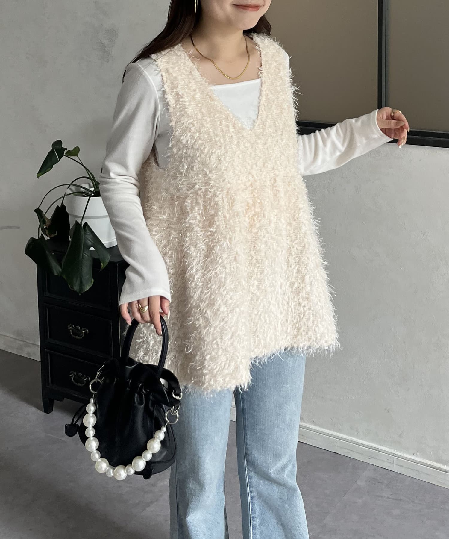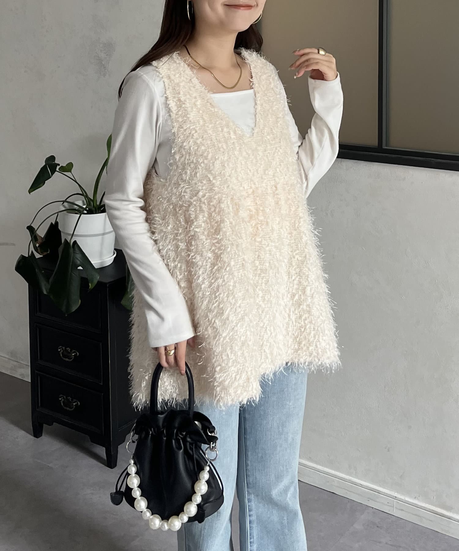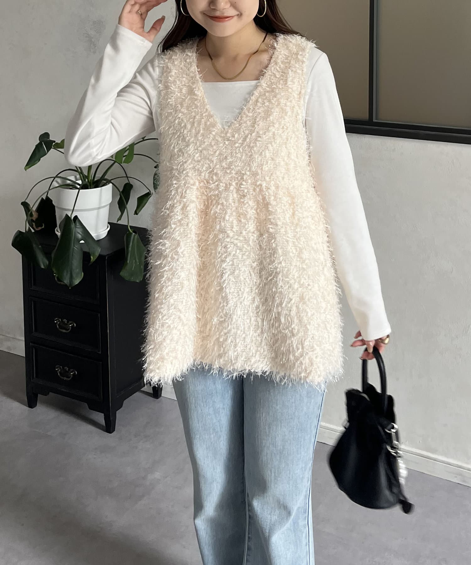 コーデにプラスするだけでお洒落見えが叶うラメシャギーベスト